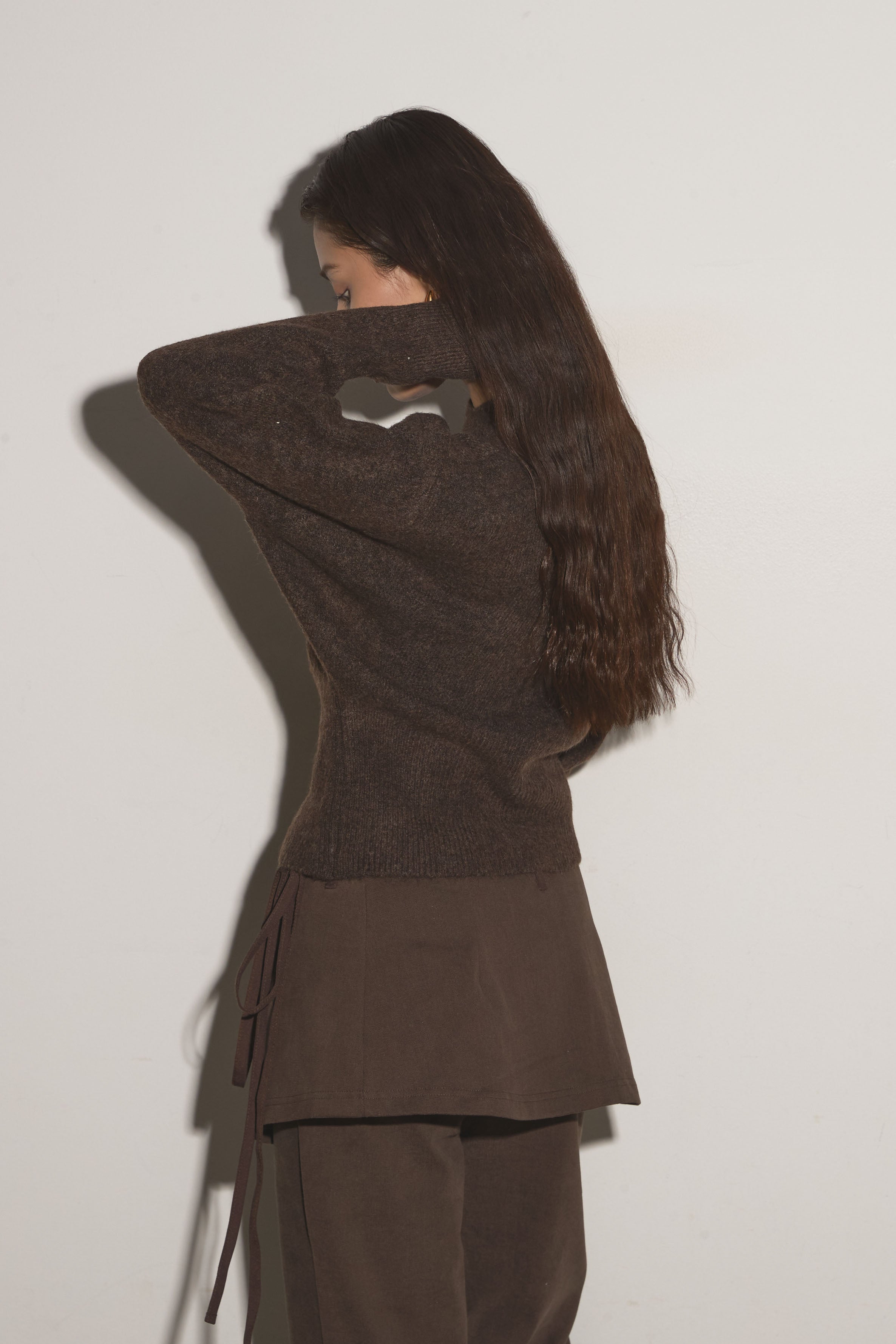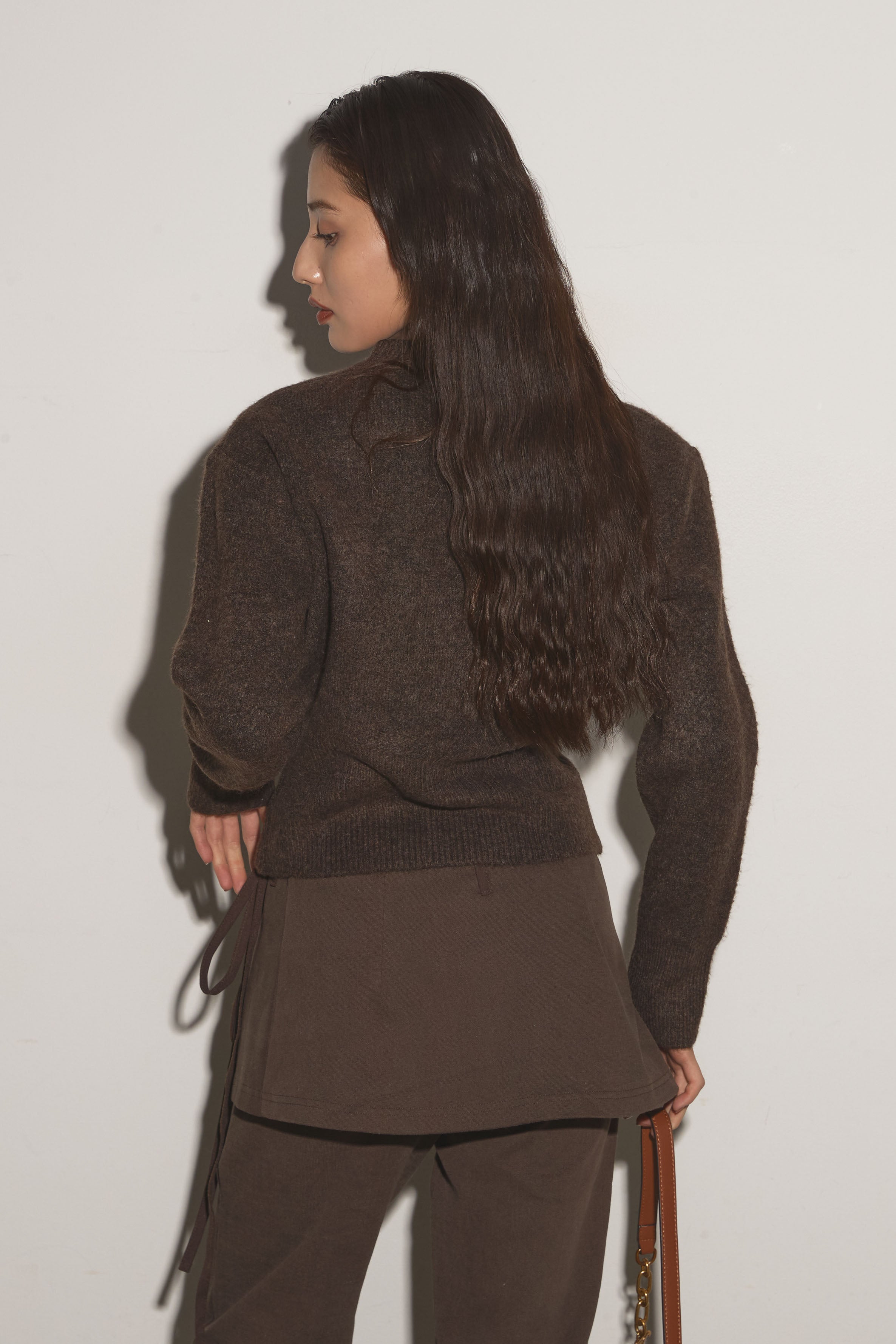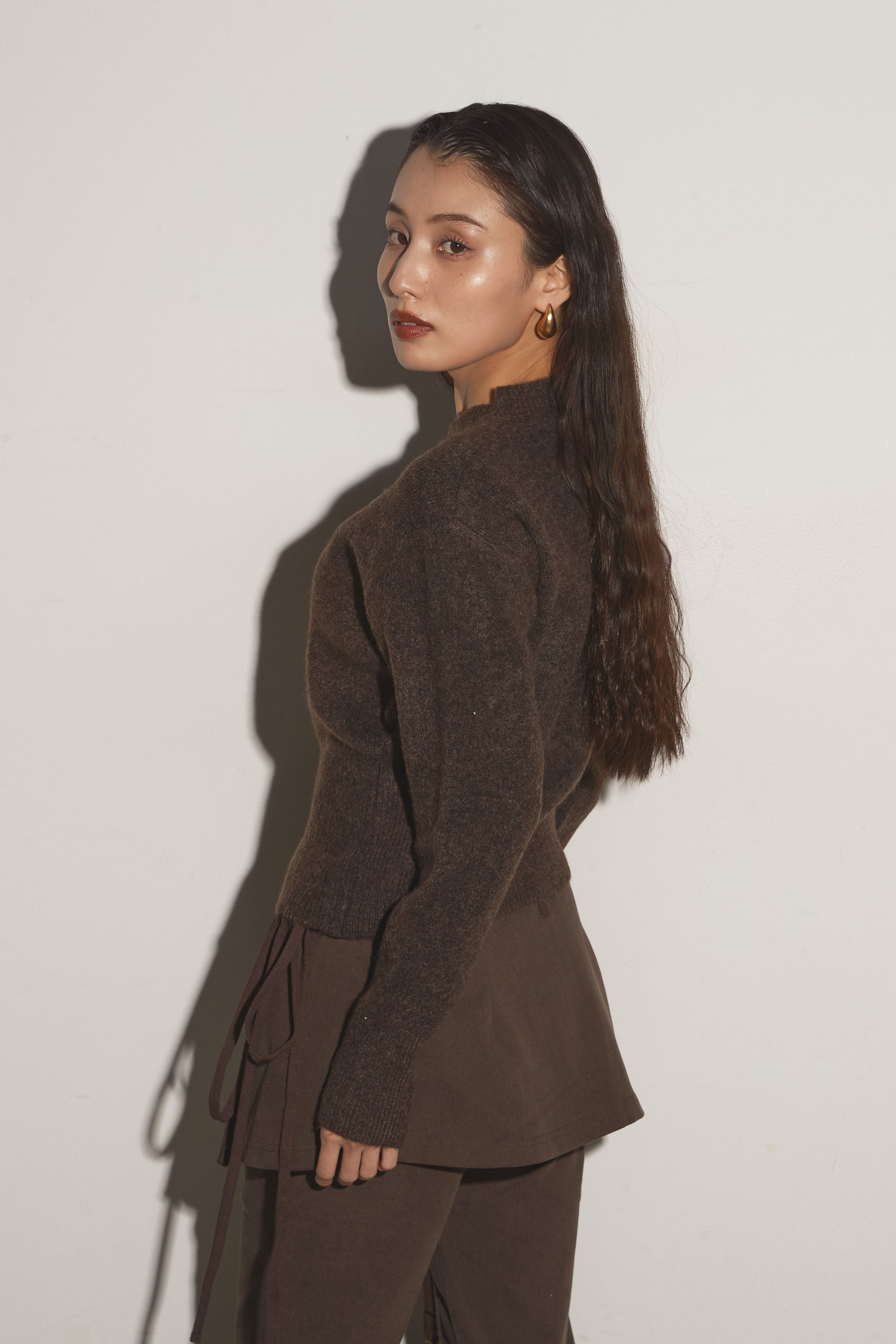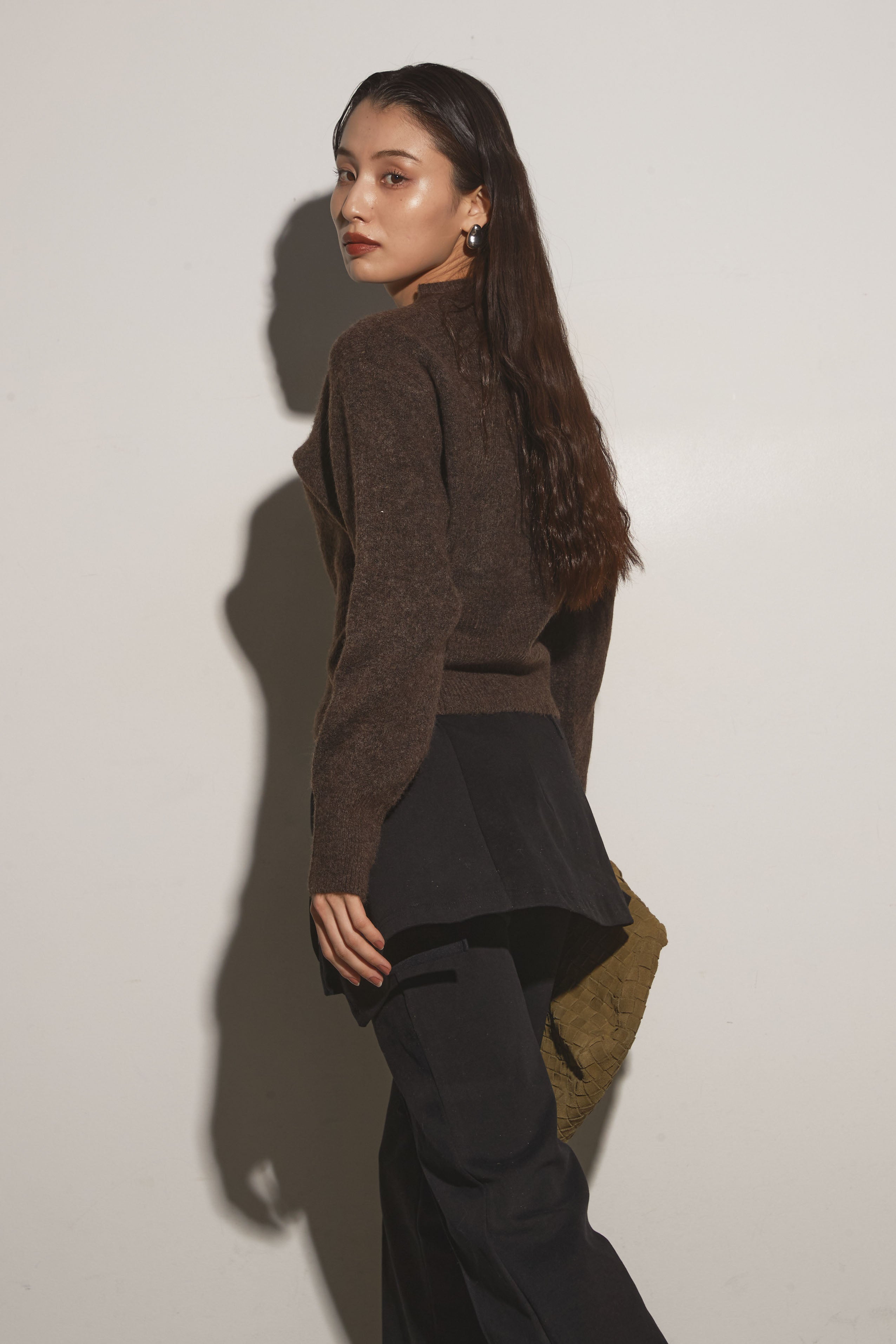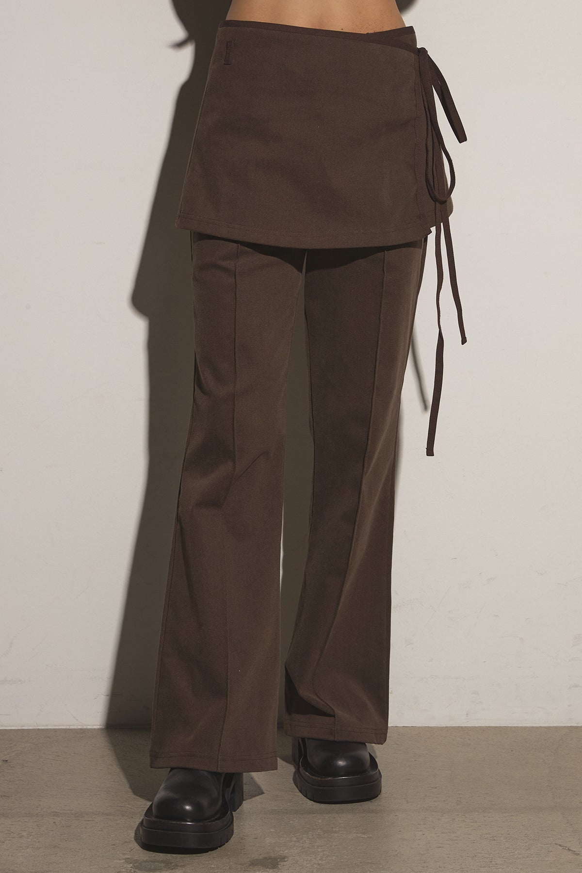 【SET】フロントジップニット+ラップスカートフレアパンツ