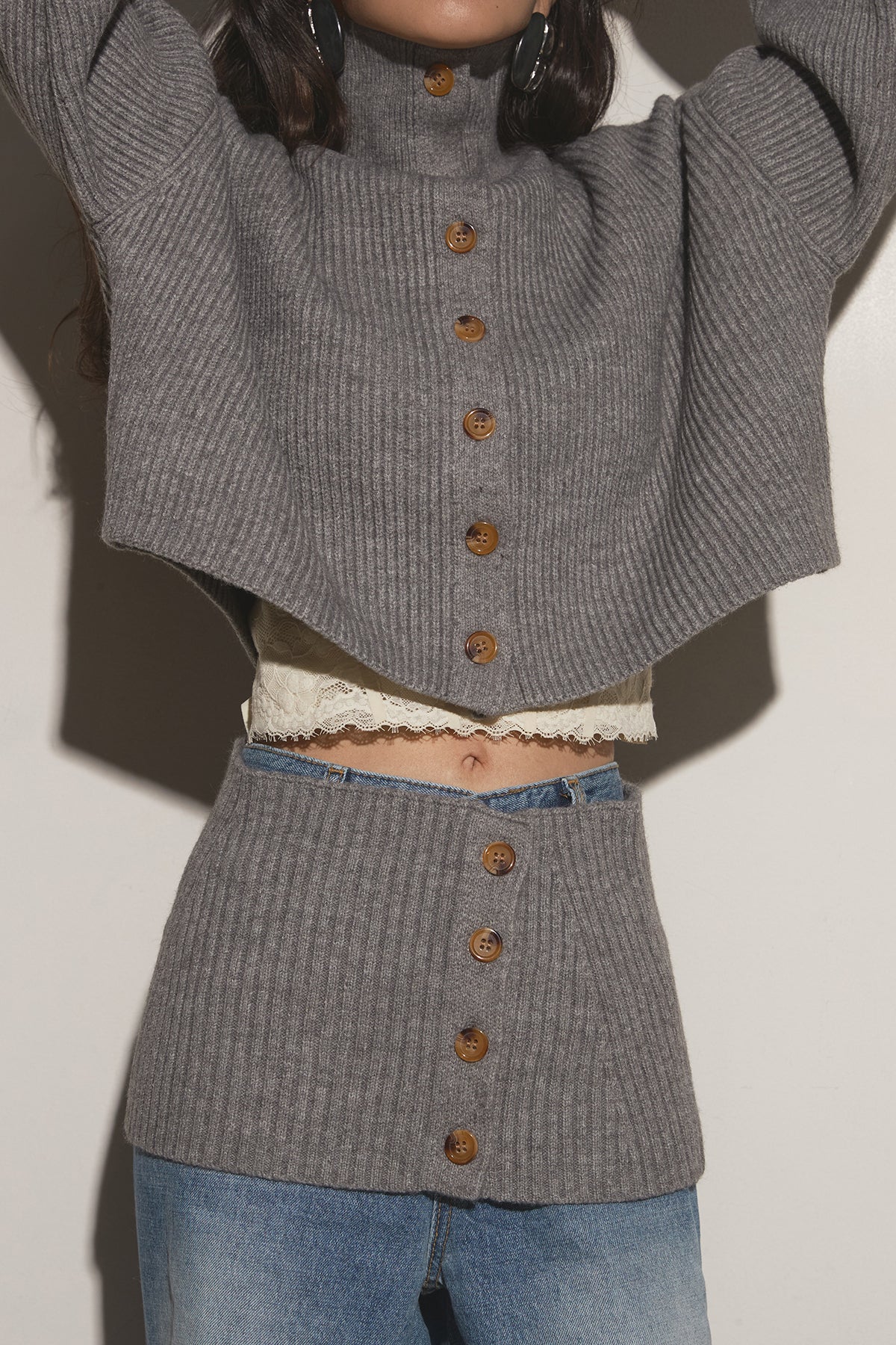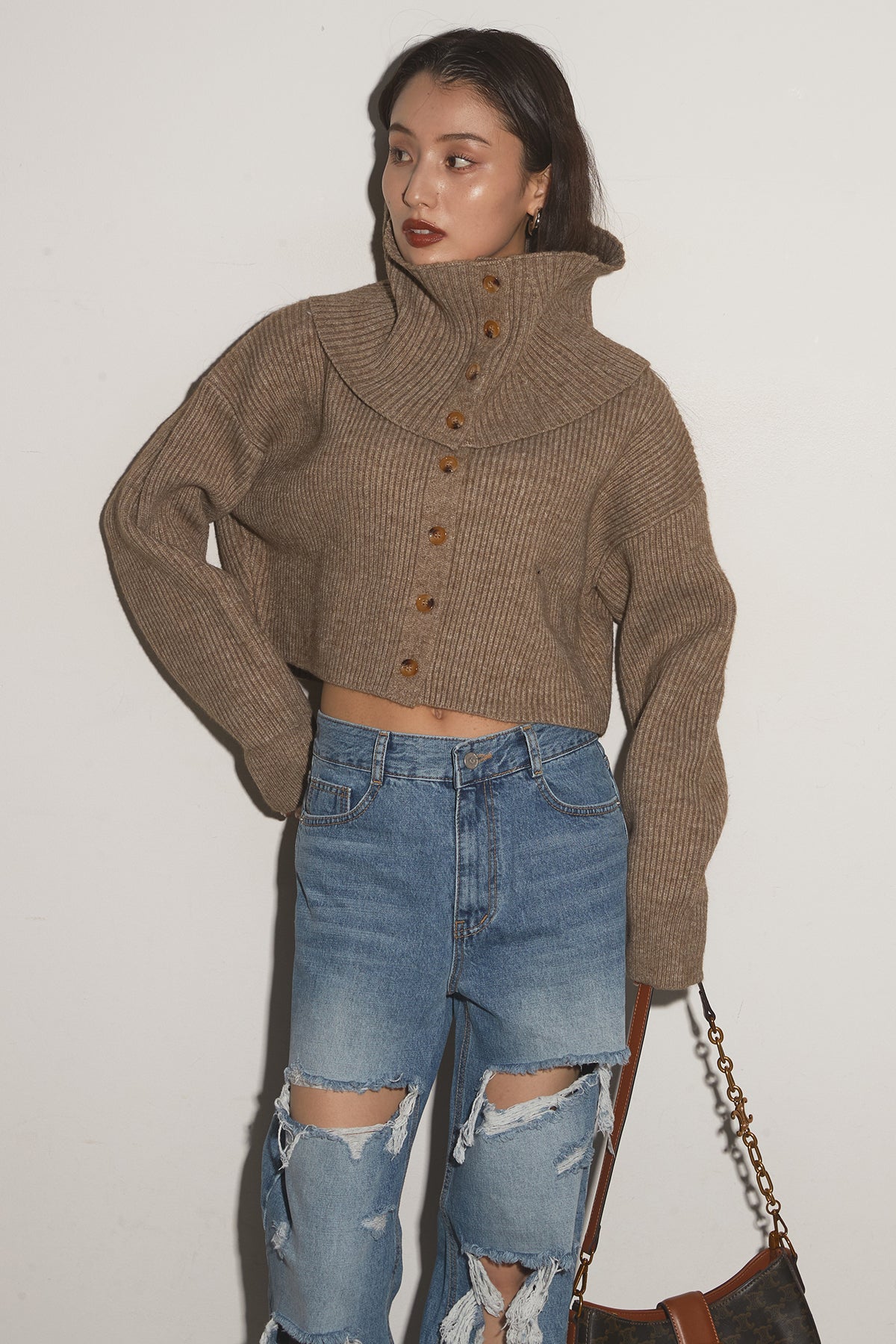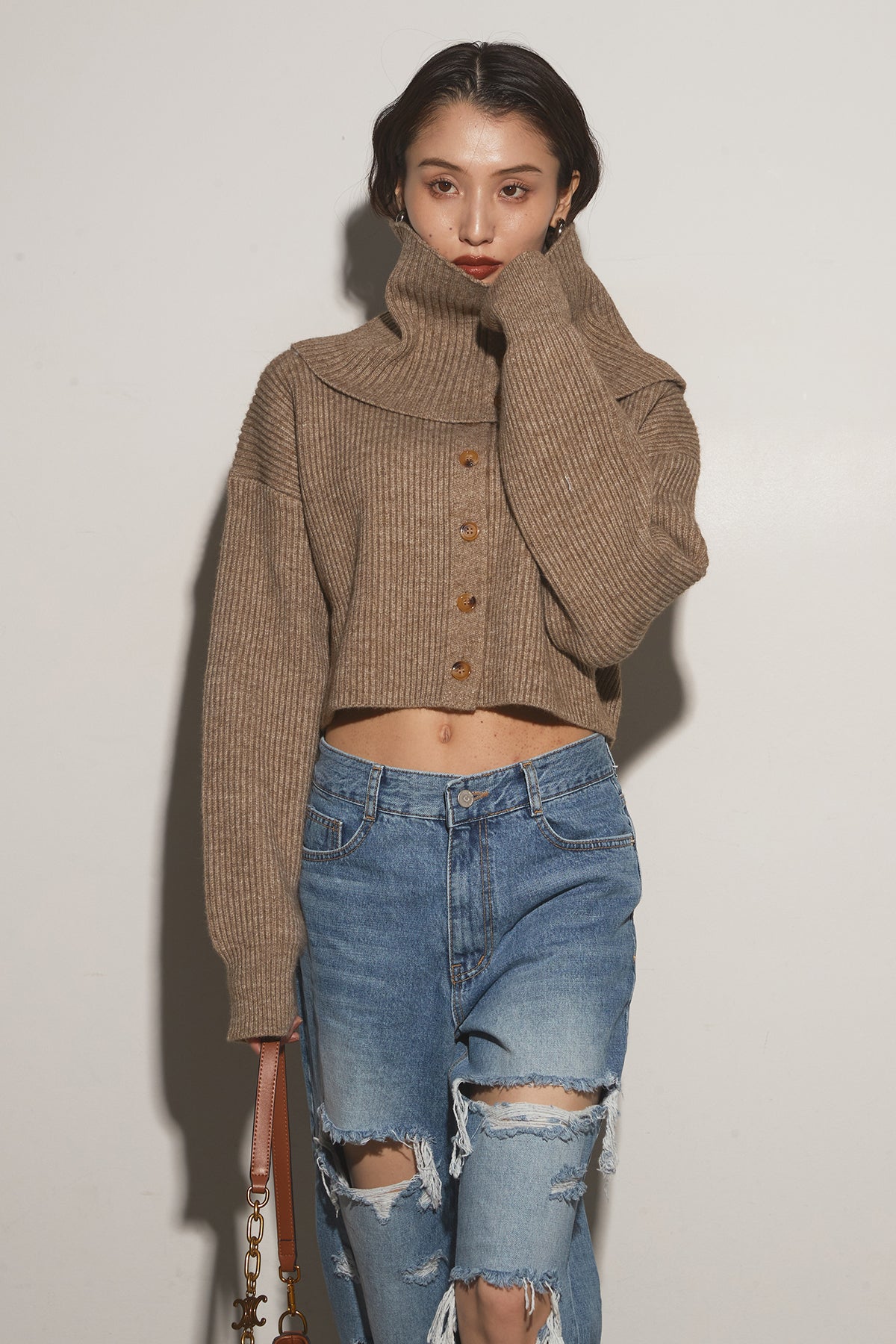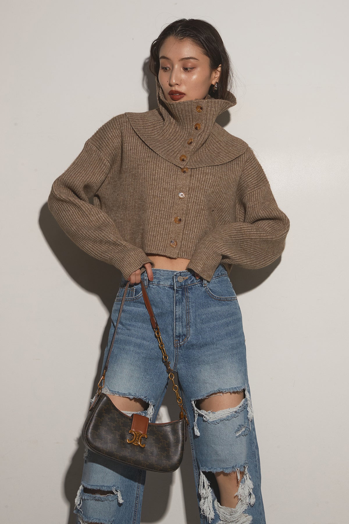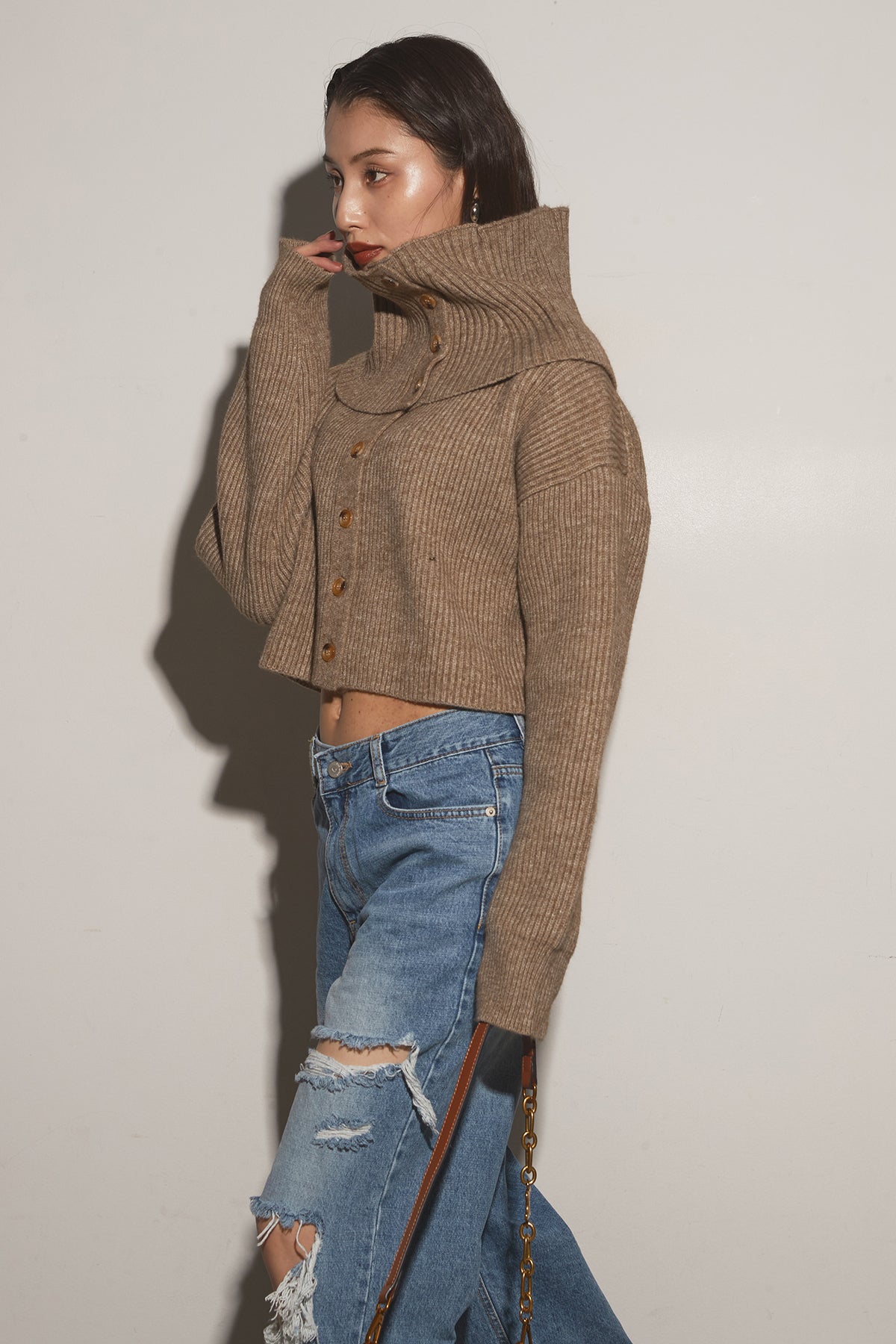 【SET】2Wayレイヤーニット+クラッシュワイドデニムパンツ
