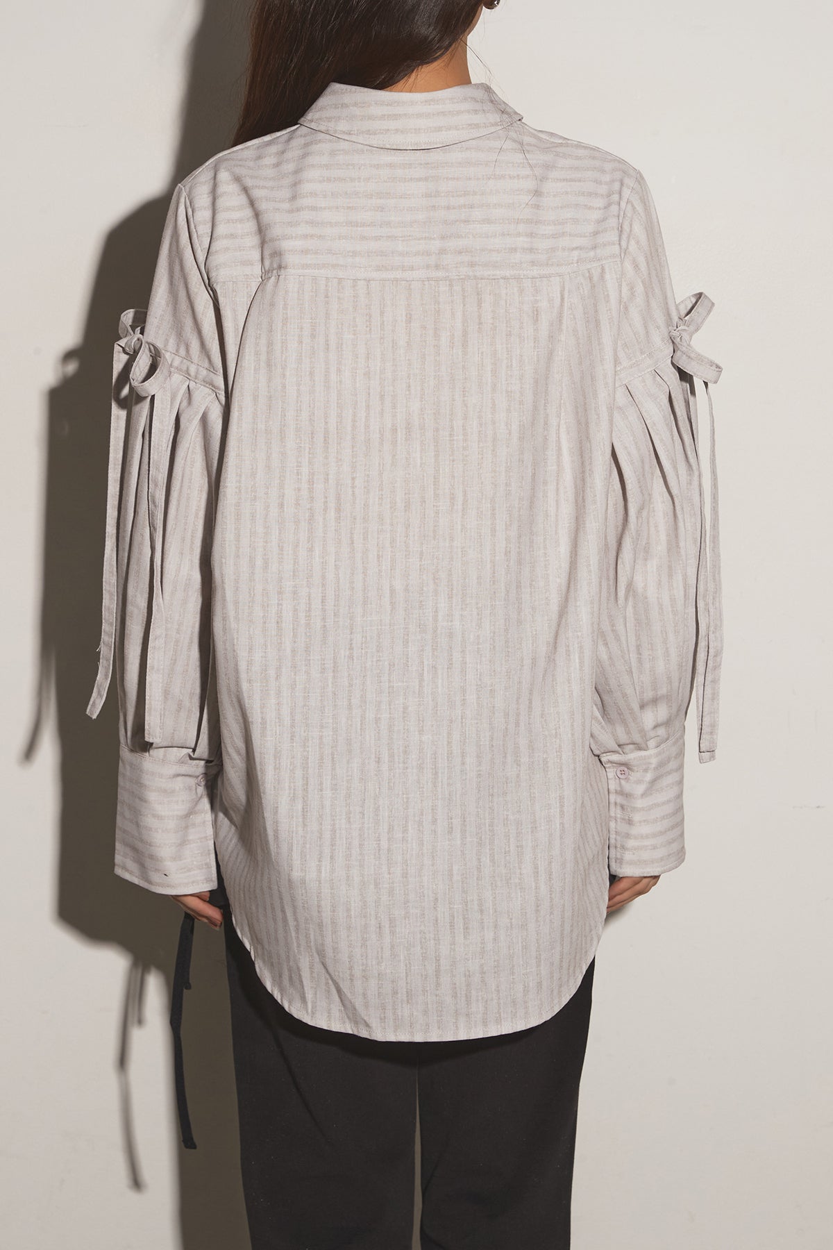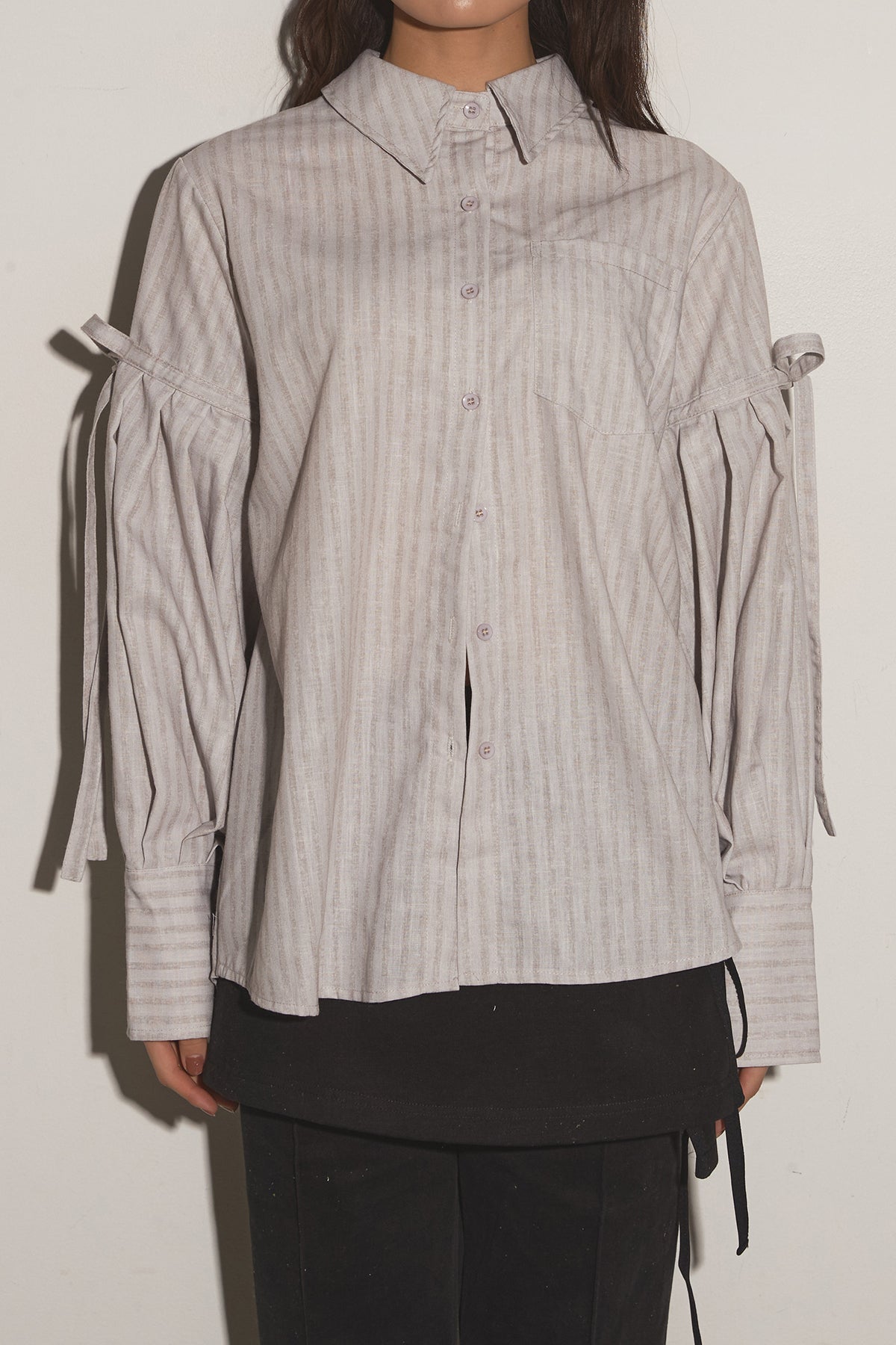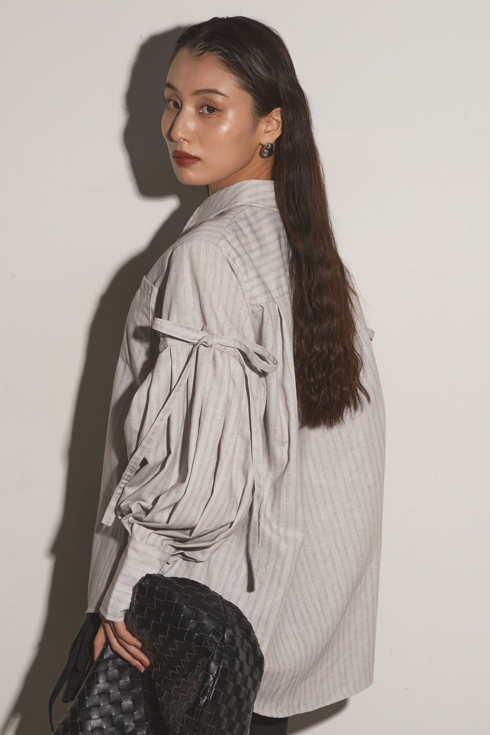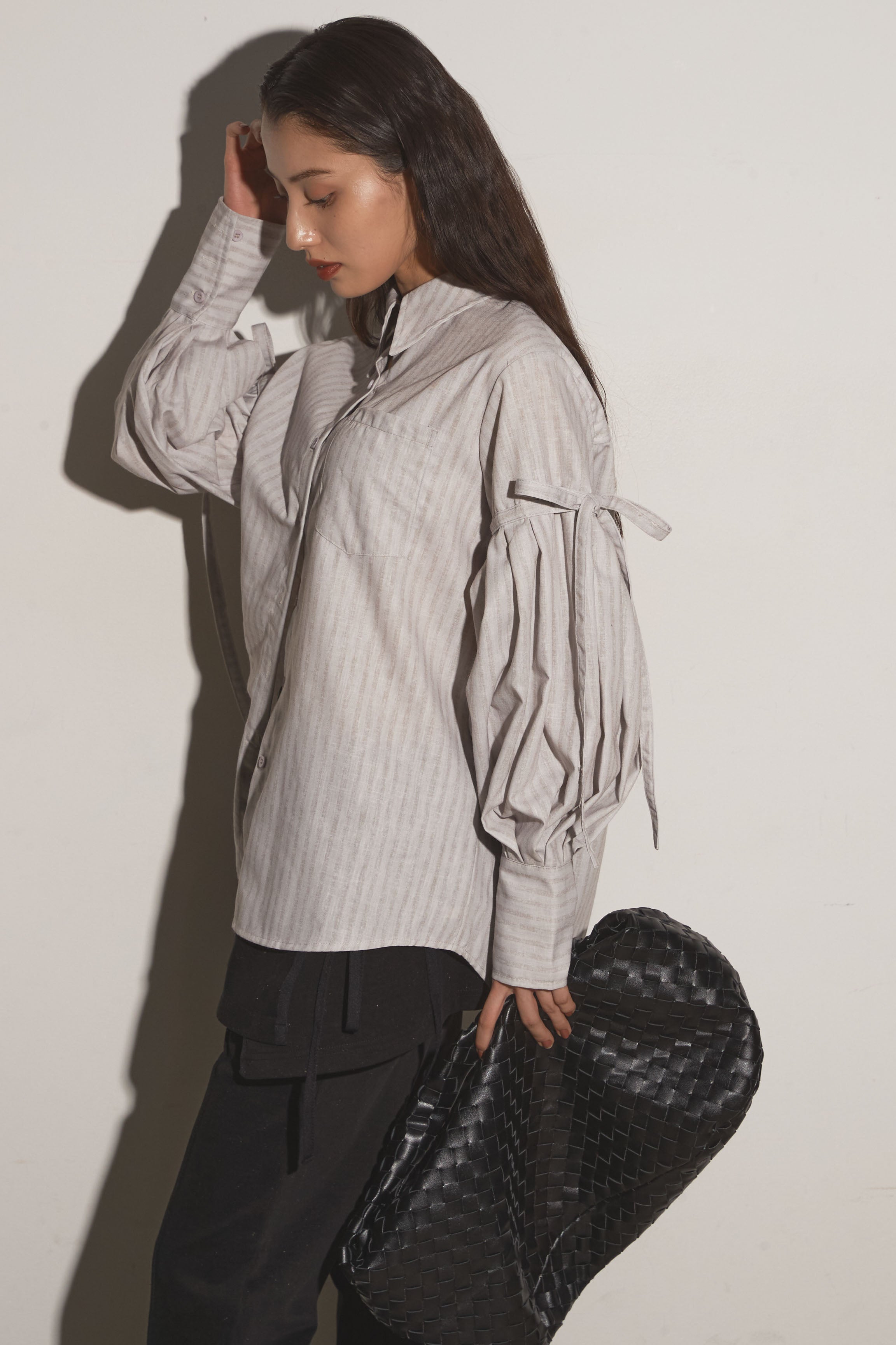 【SET】ストライプリボンスリーブシャツ+ラップスカートフレアパンツ