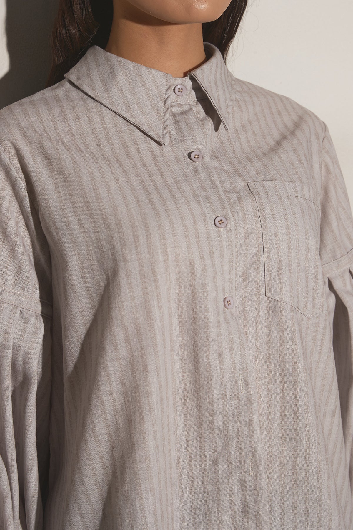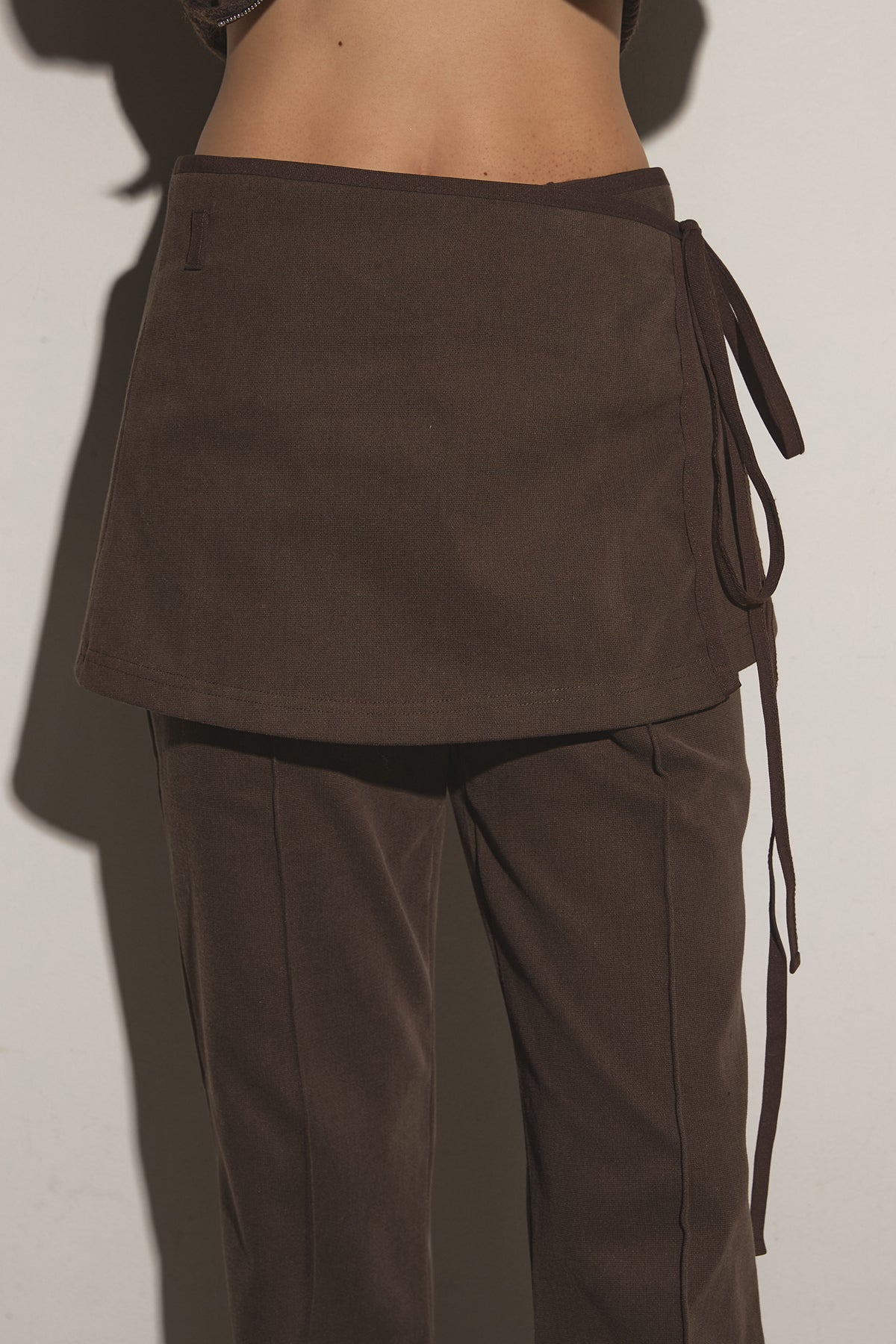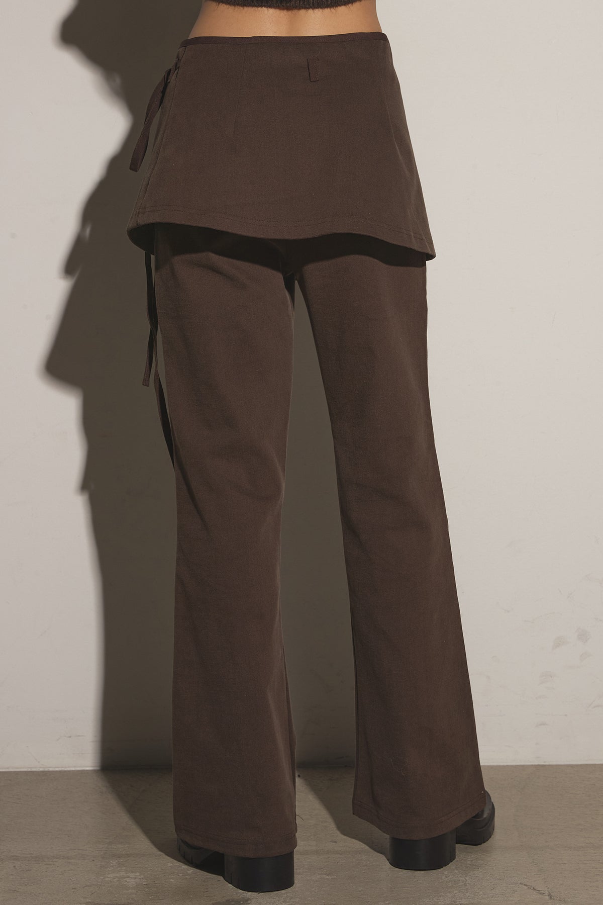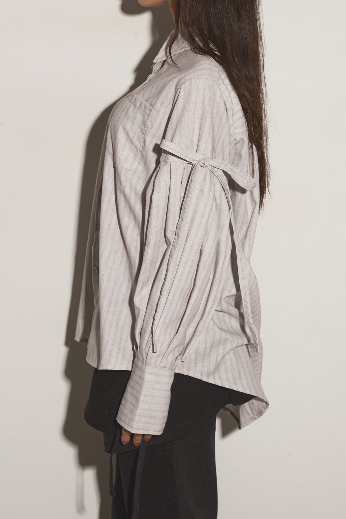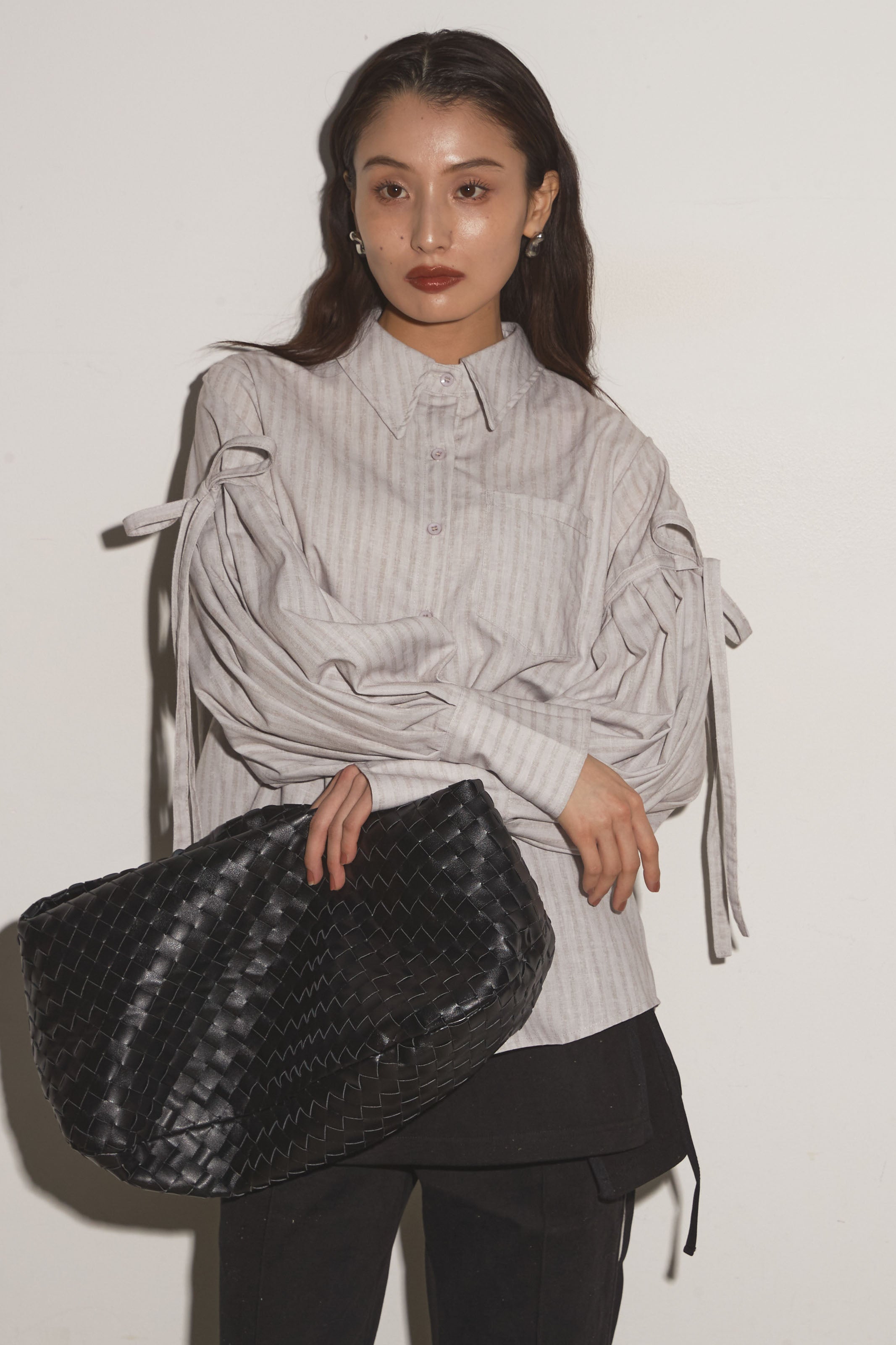 【SET】ストライプリボンスリーブシャツ+ラップスカートフレアパンツ