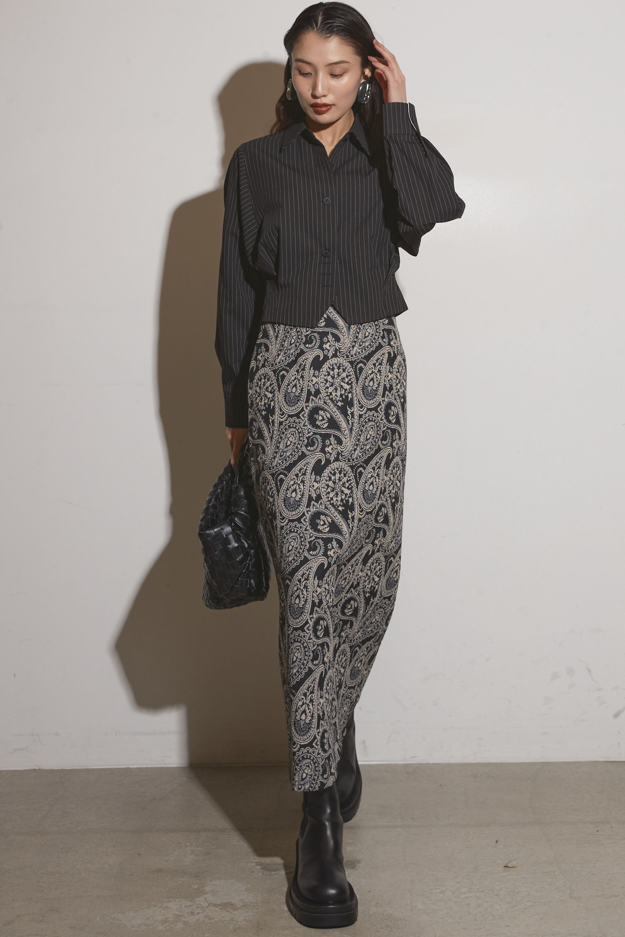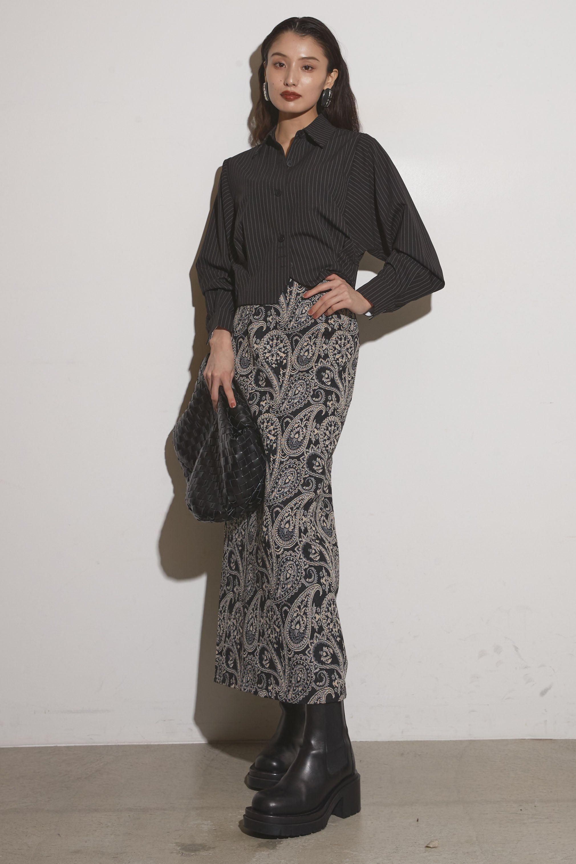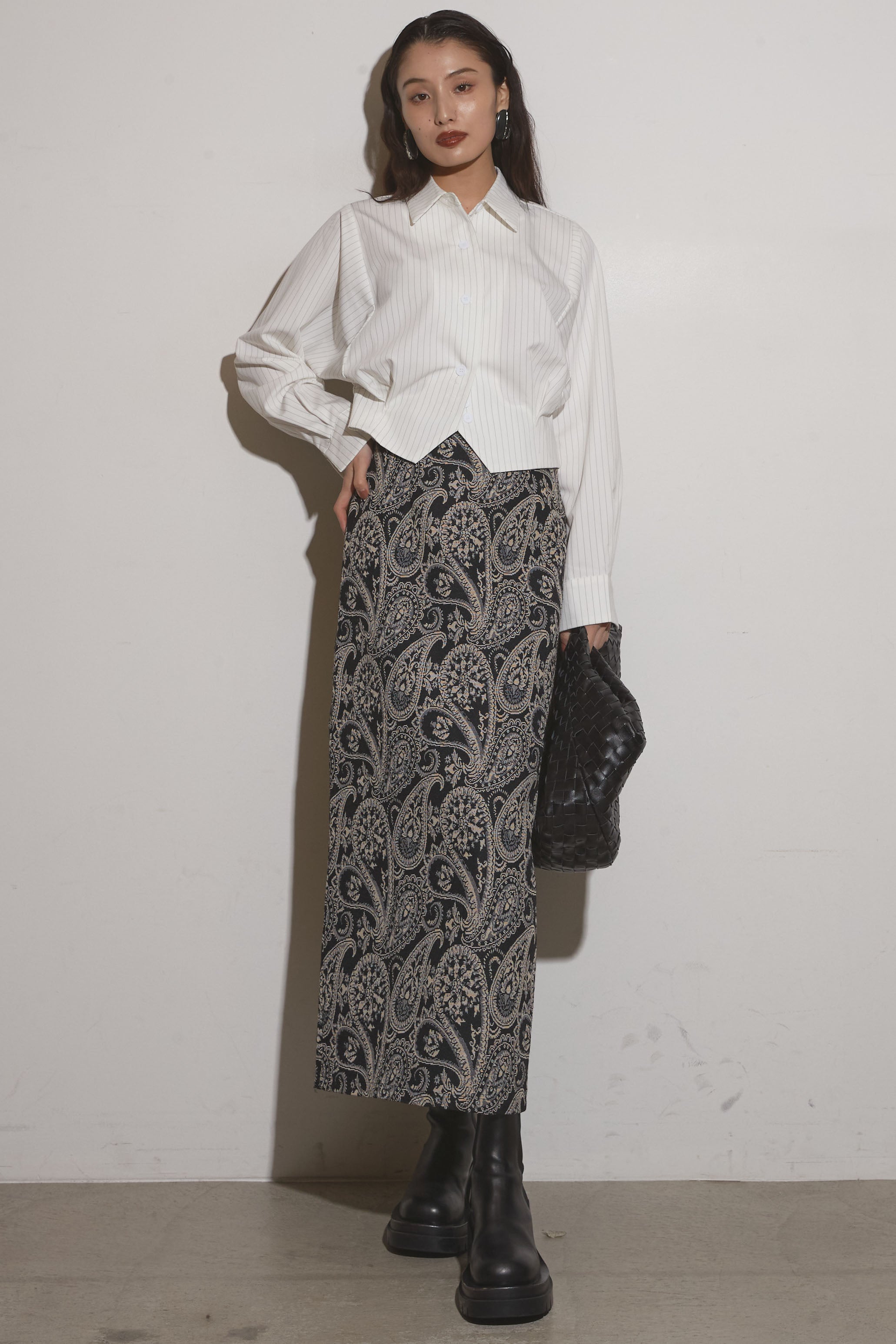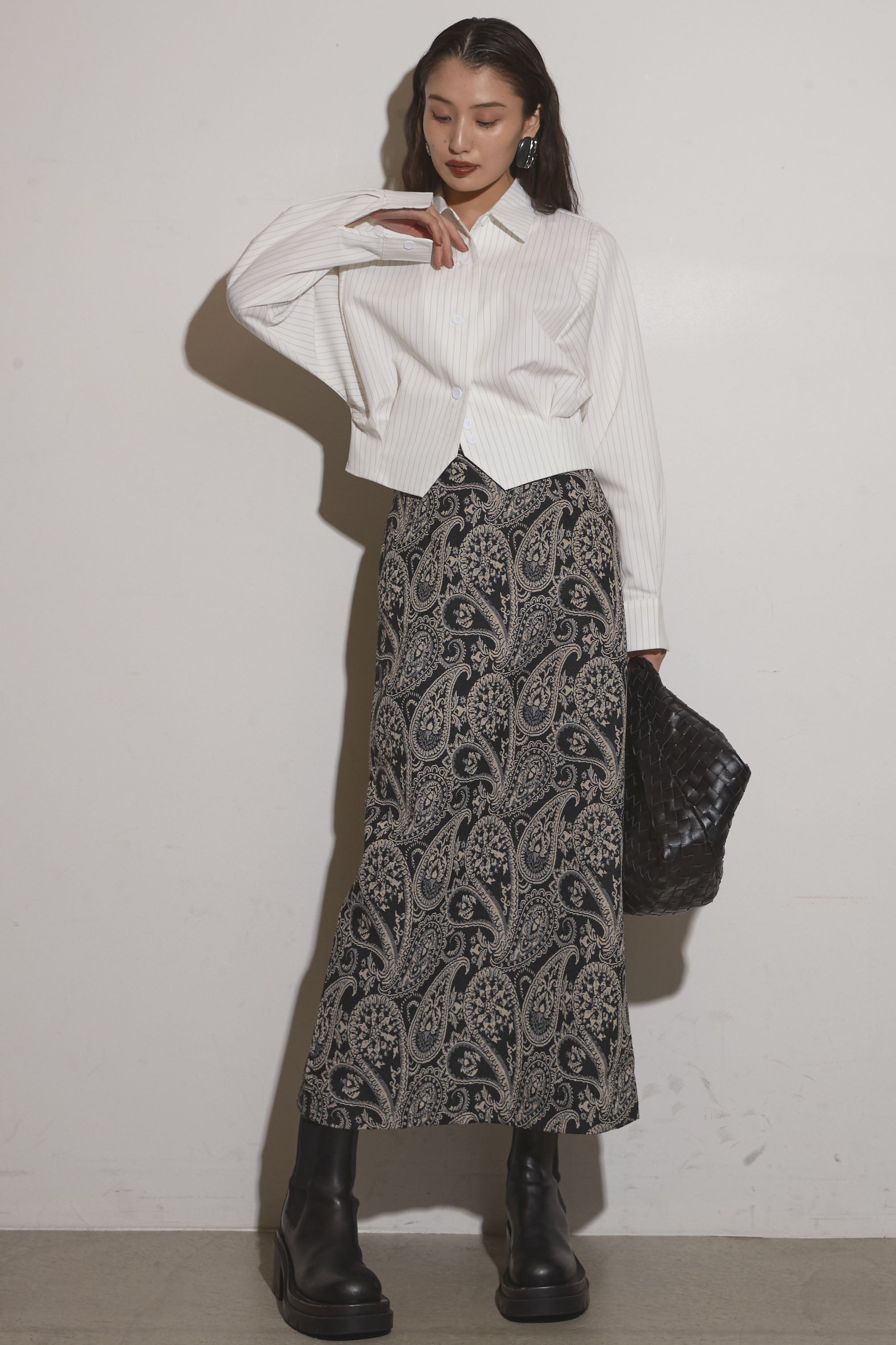 【SET】ストライプショートシャツ+ペーズリージャガードスカート