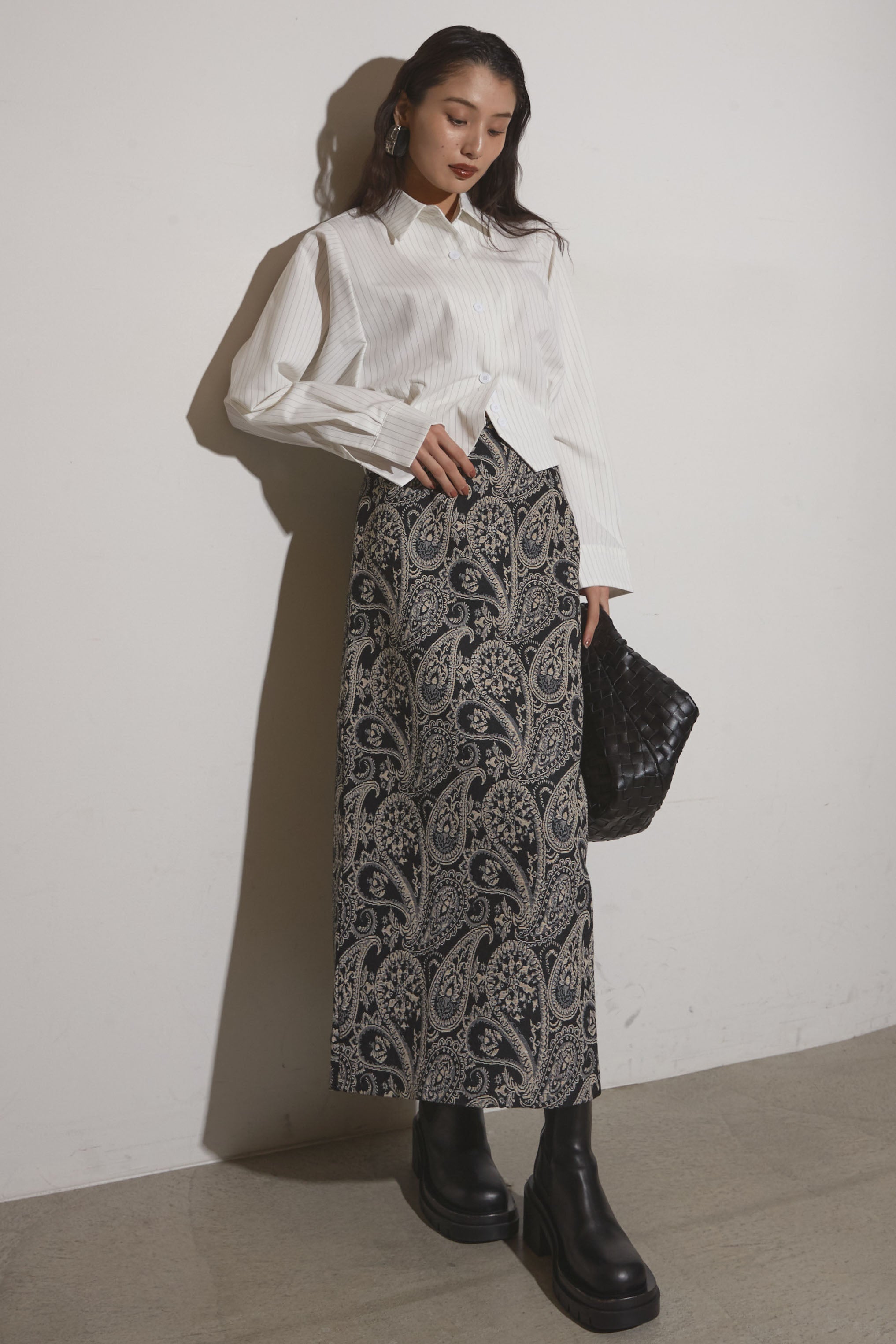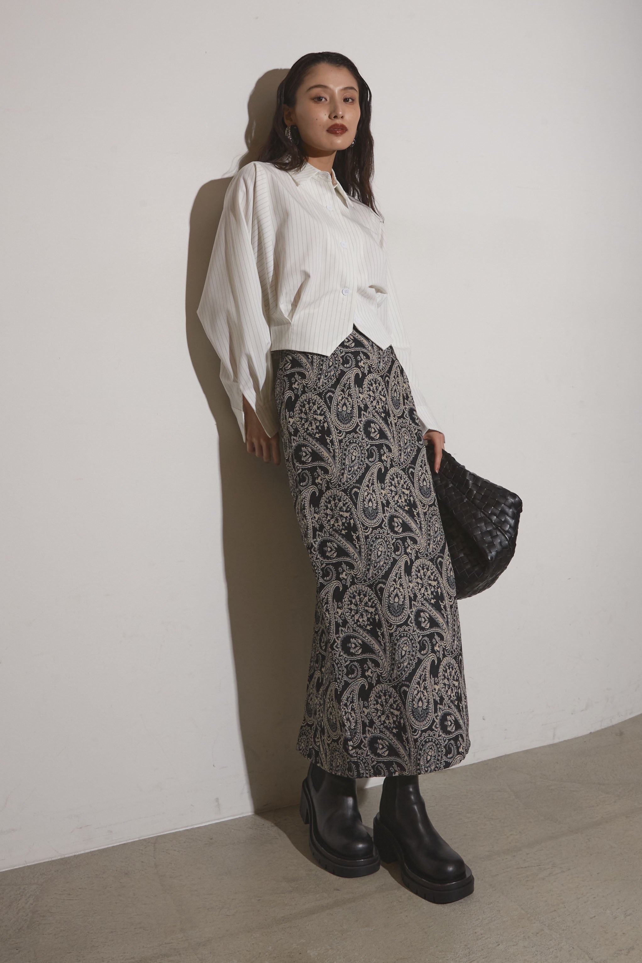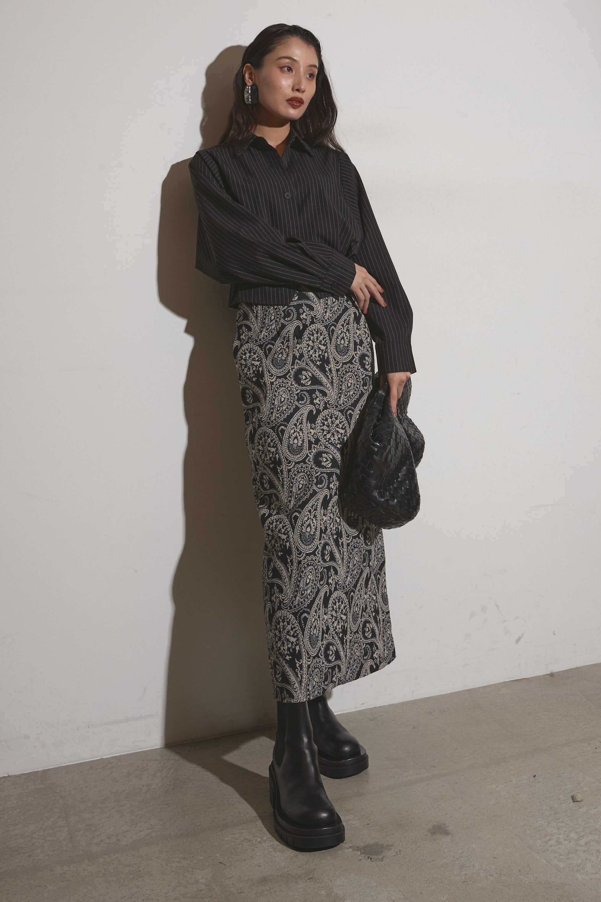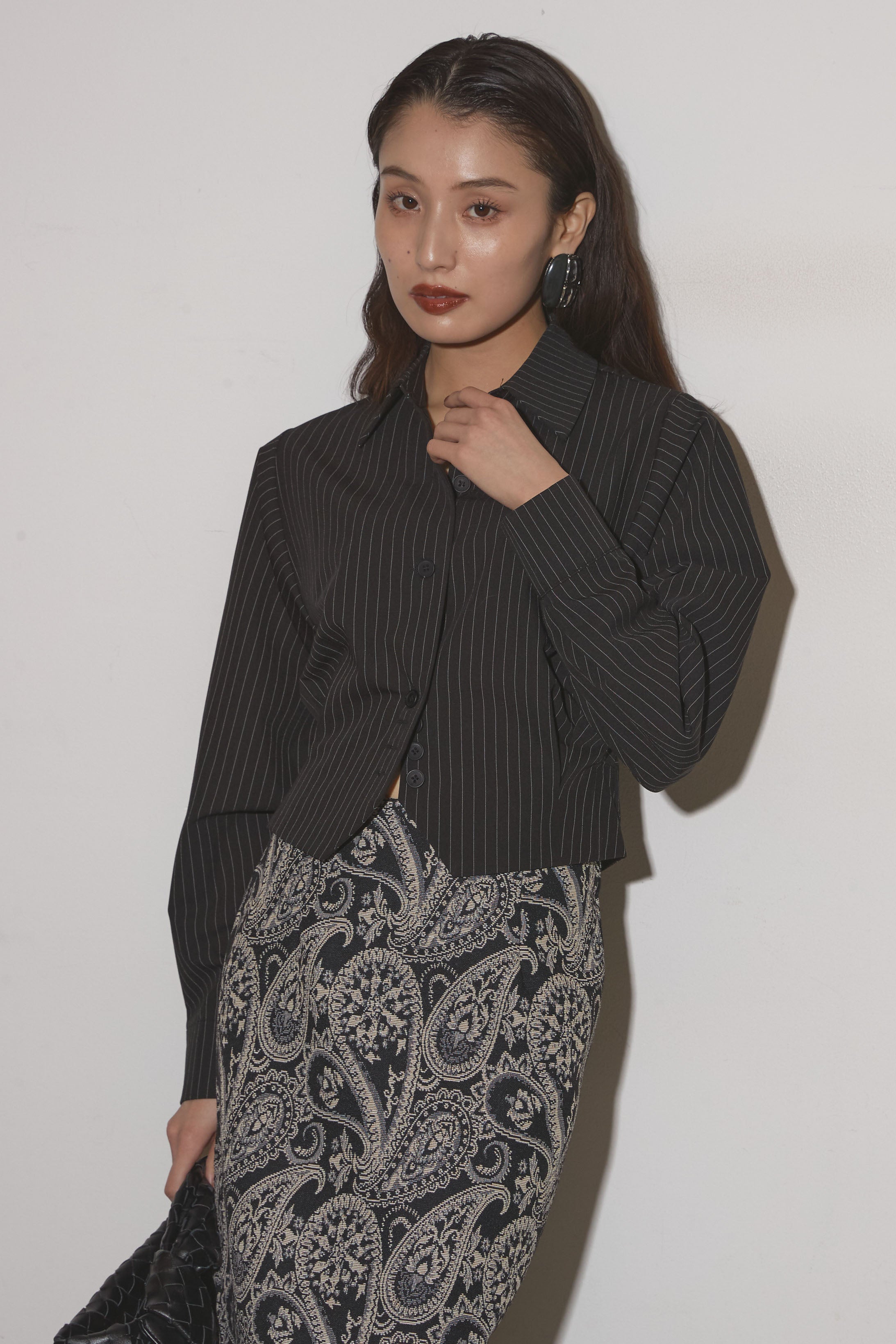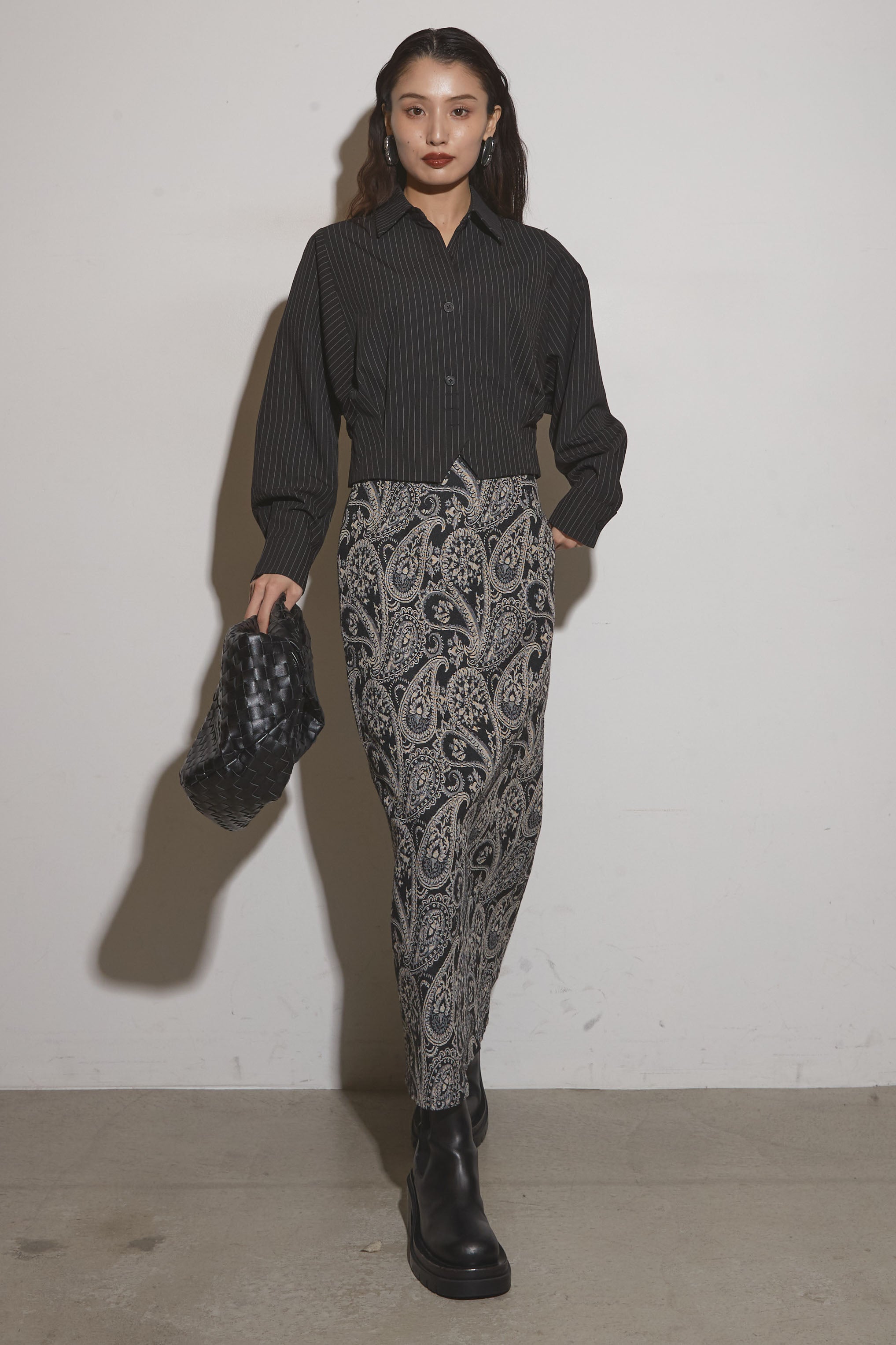【SET】ストライプショートシャツ+ペーズリージャガードスカート