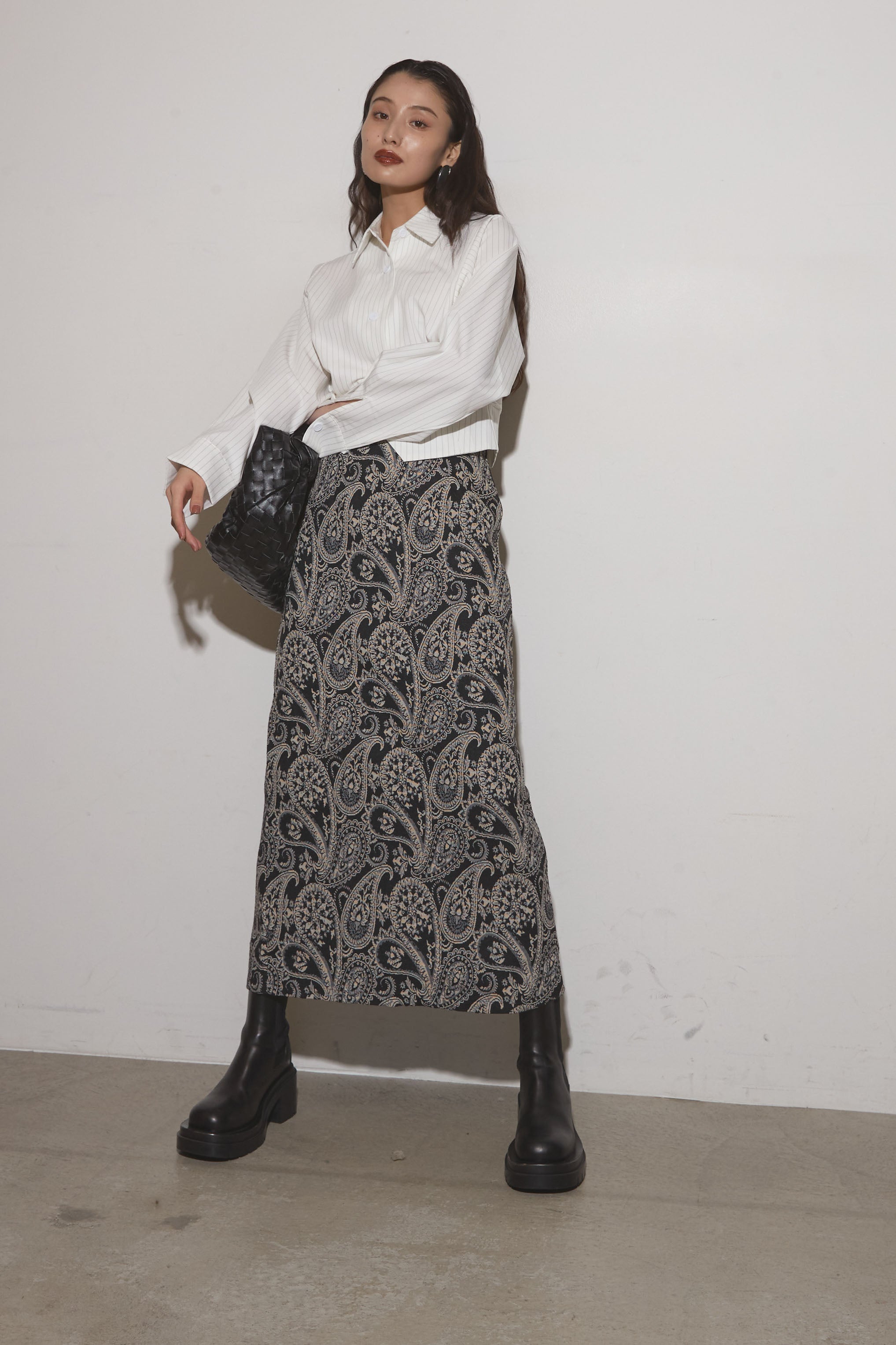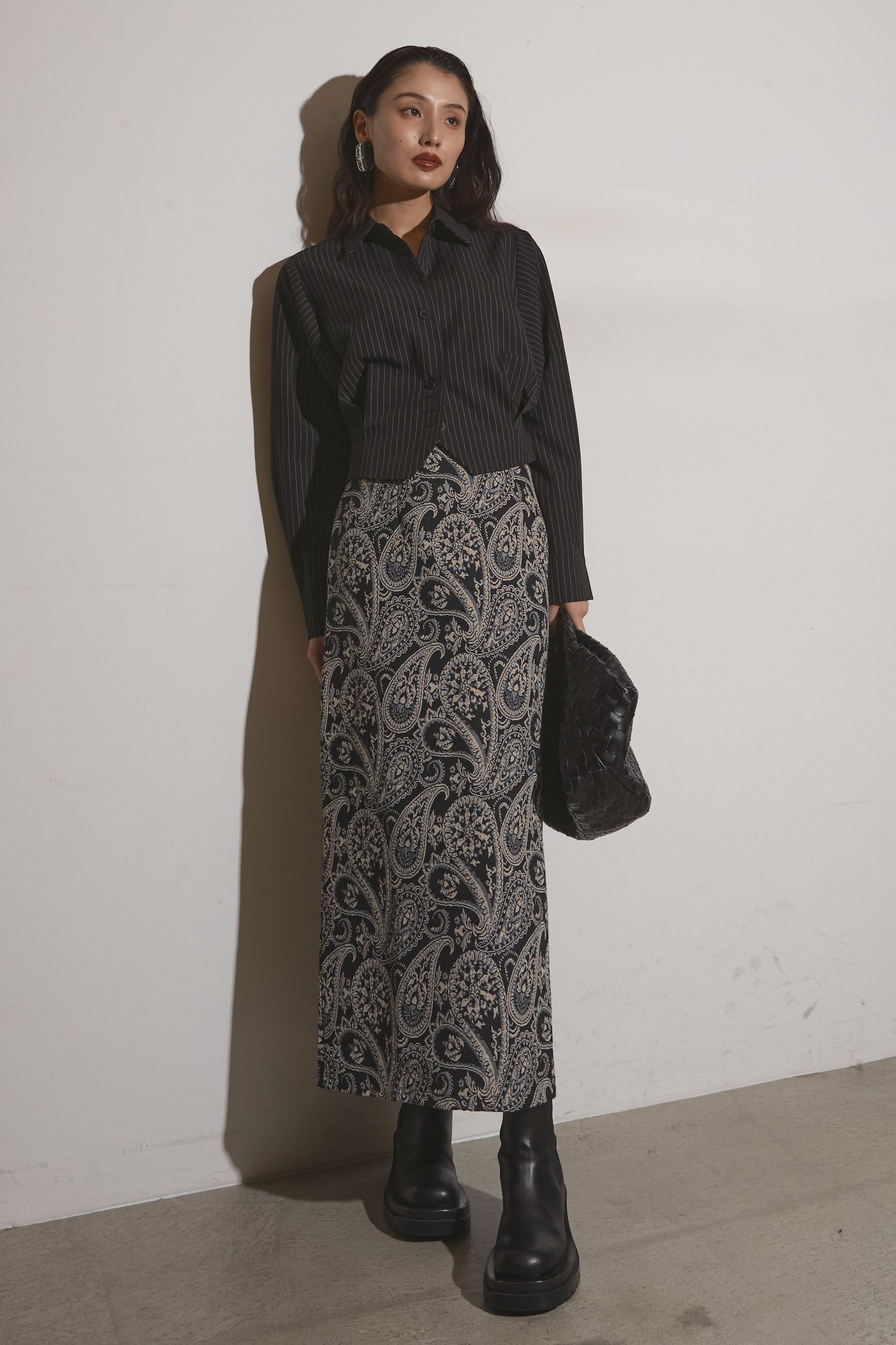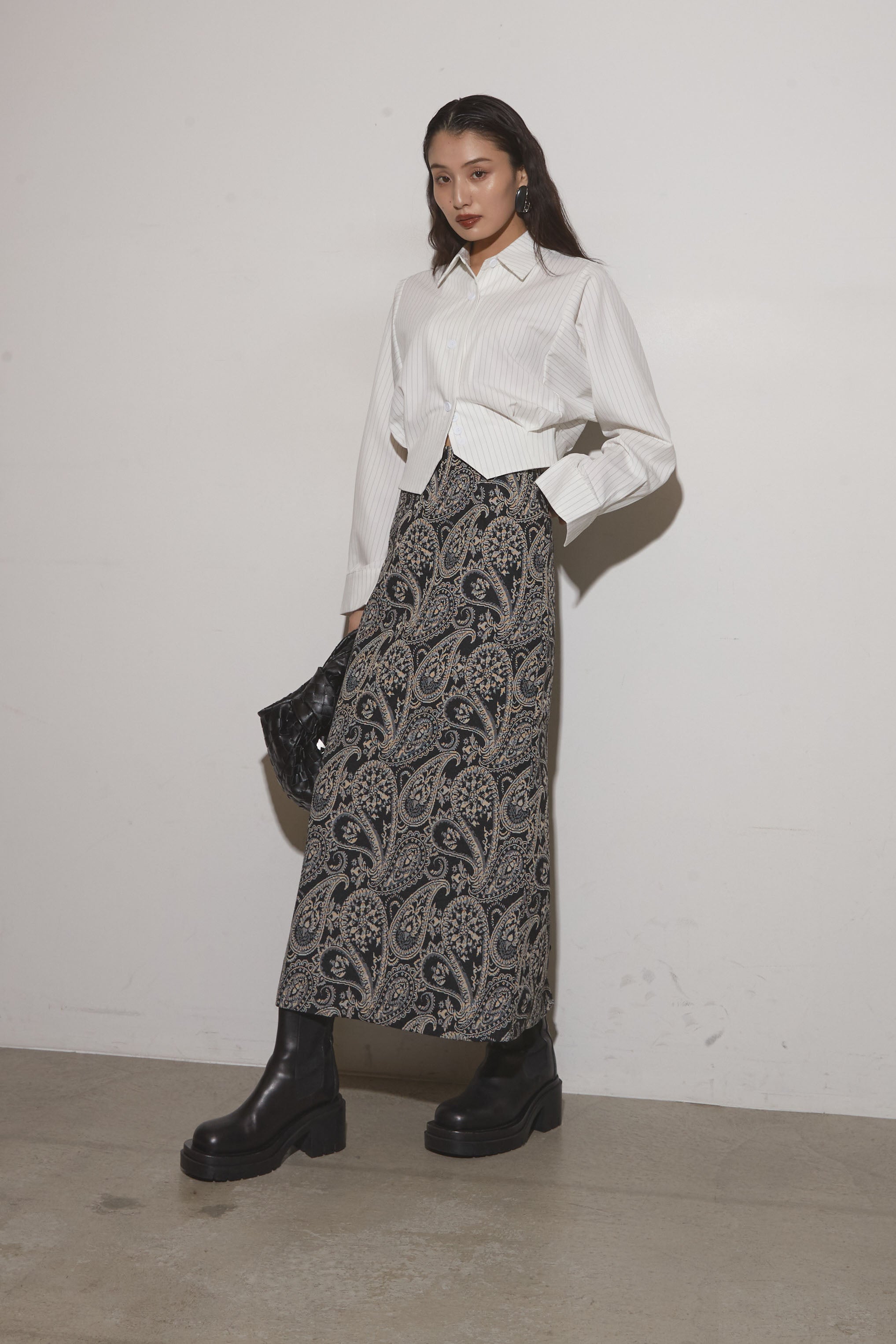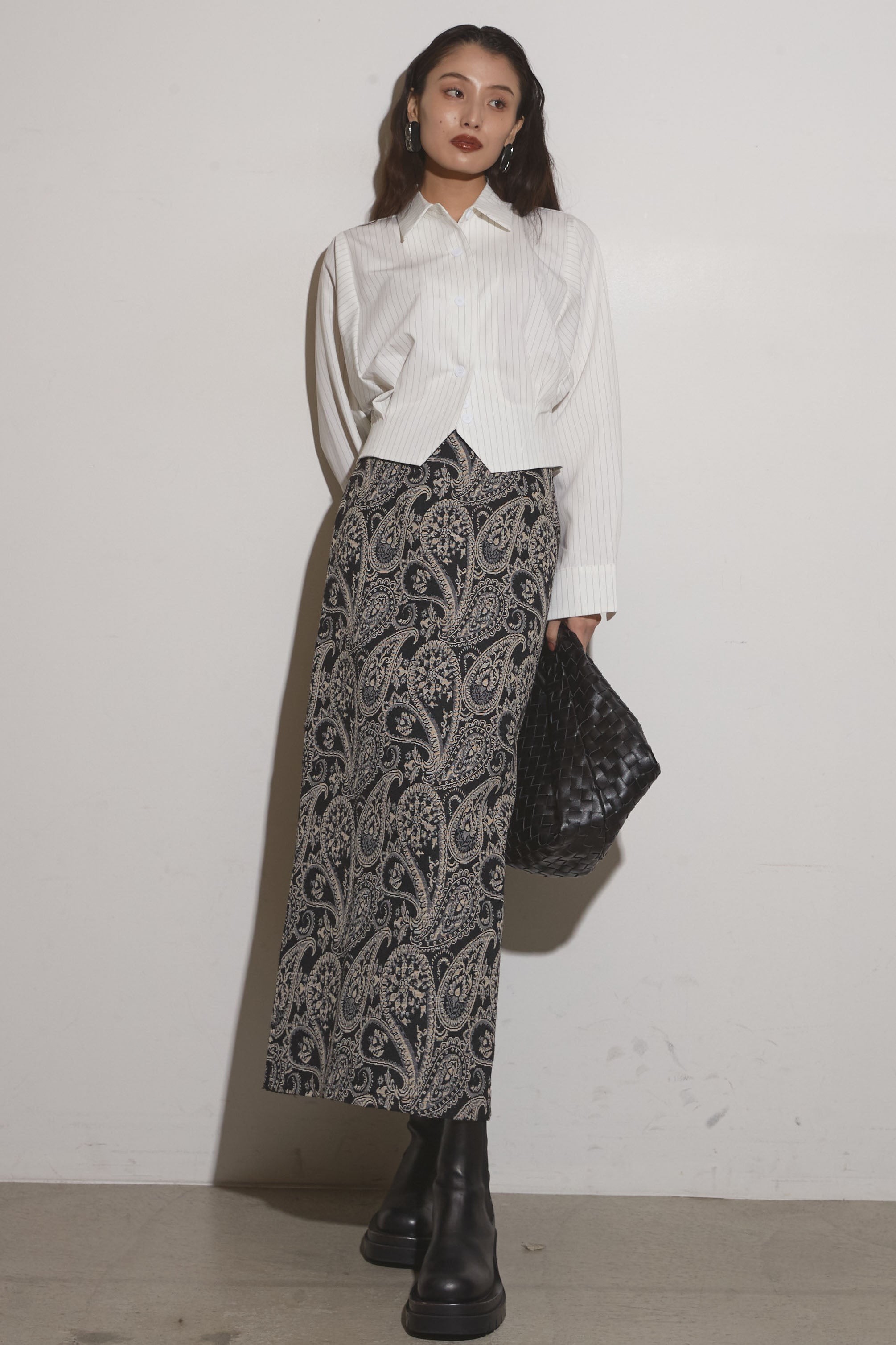 【SET】ストライプショートシャツ+ペーズリージャガードスカート