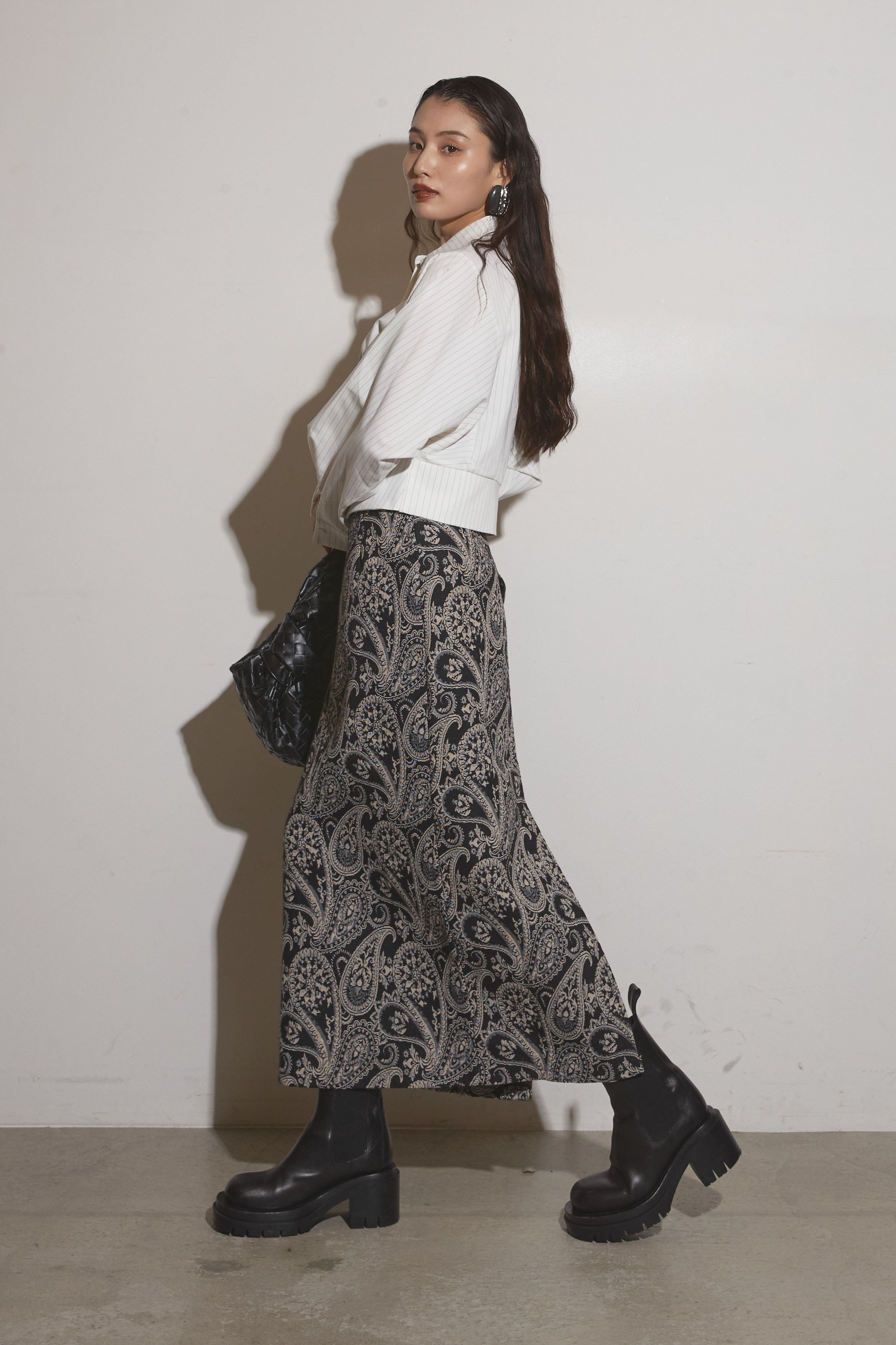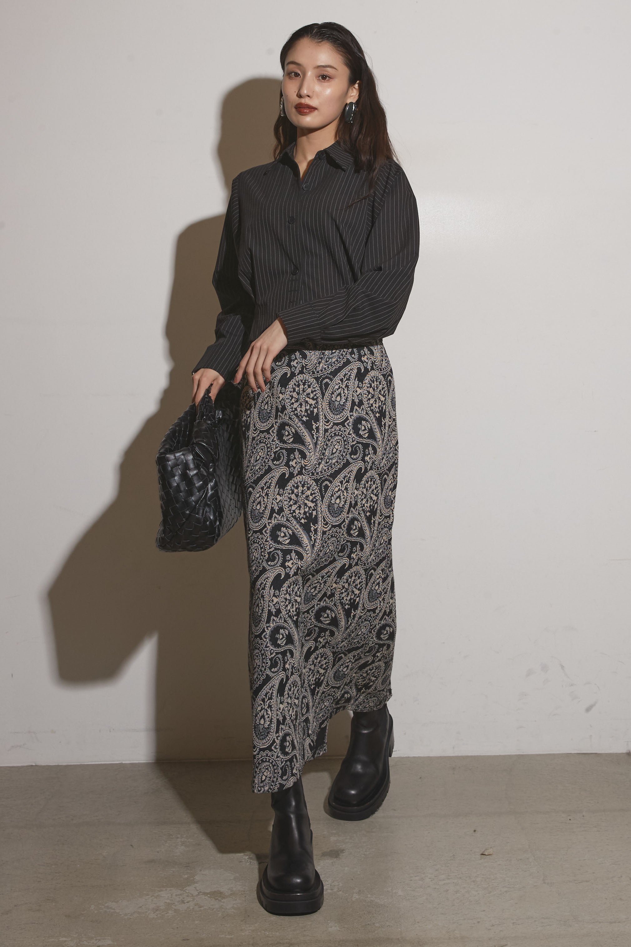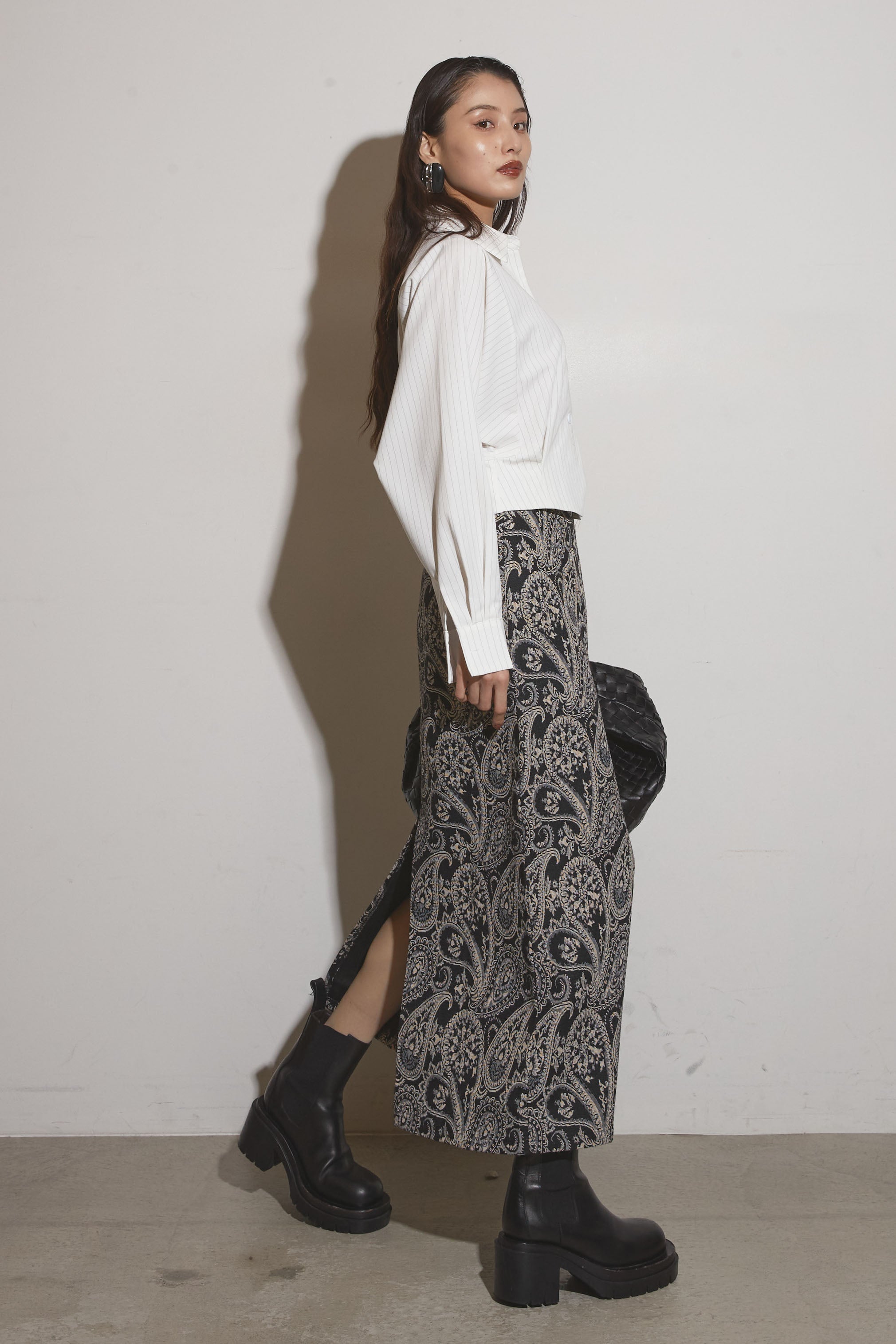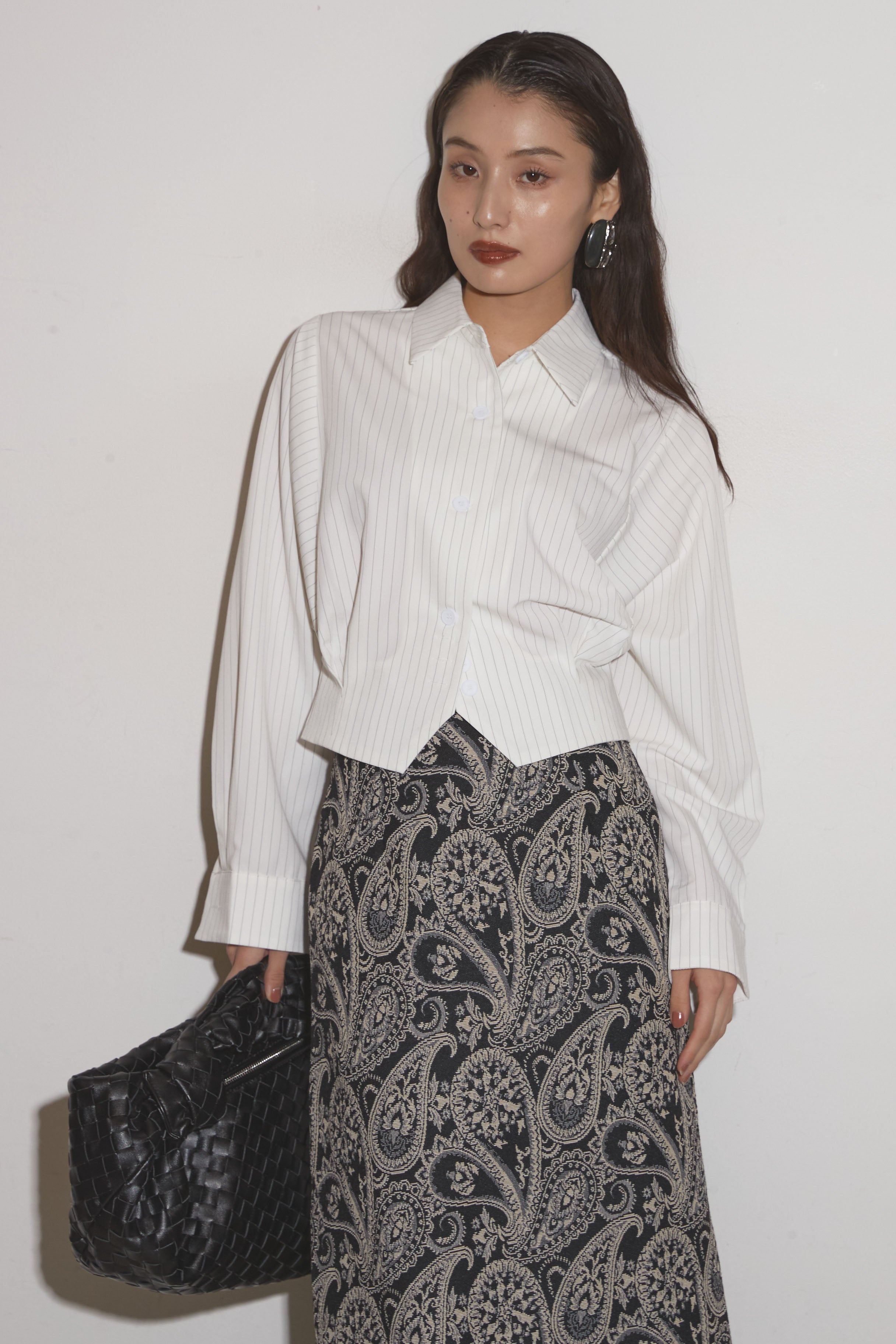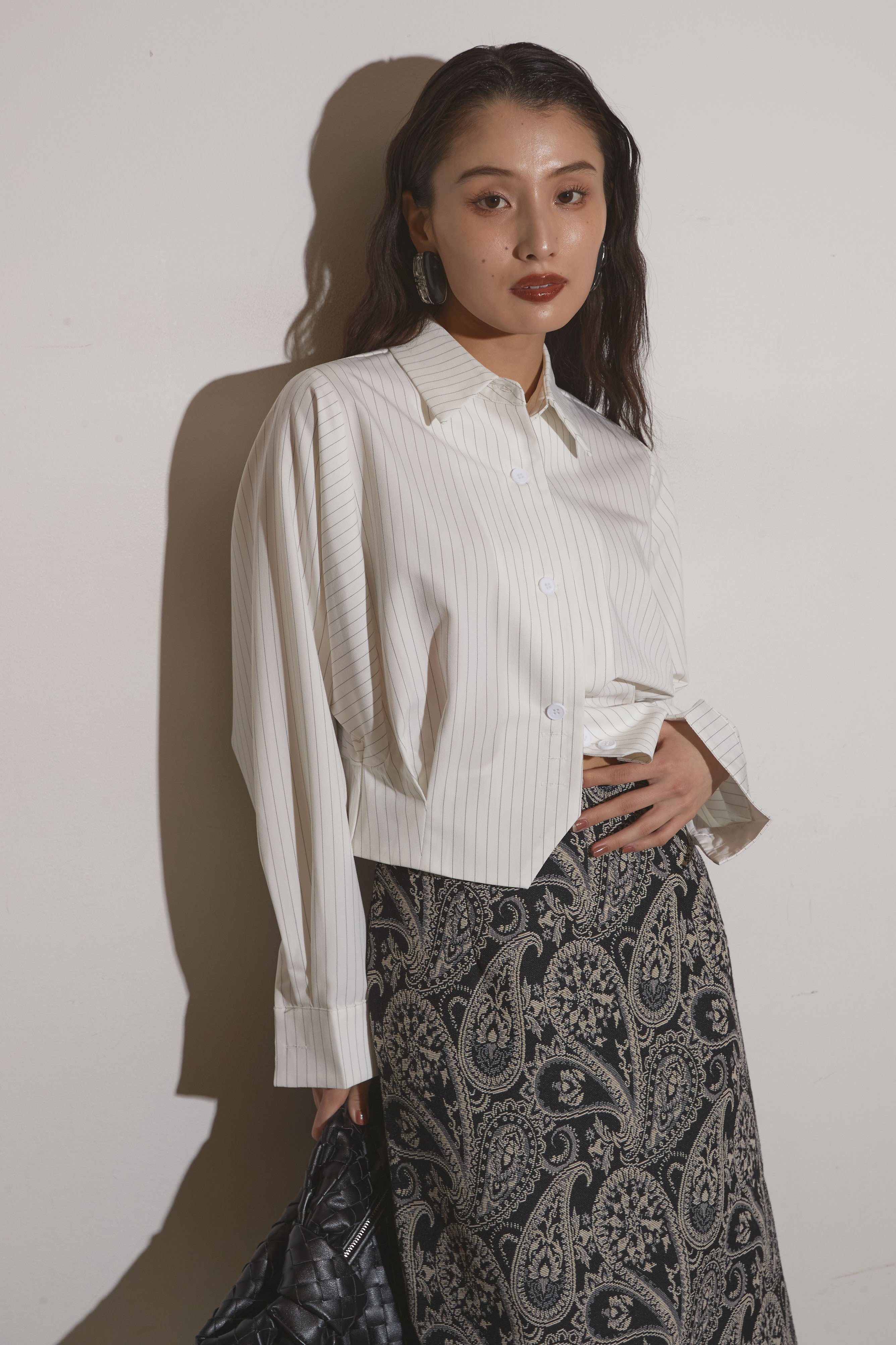 【SET】ストライプショートシャツ+ペーズリージャガードスカート