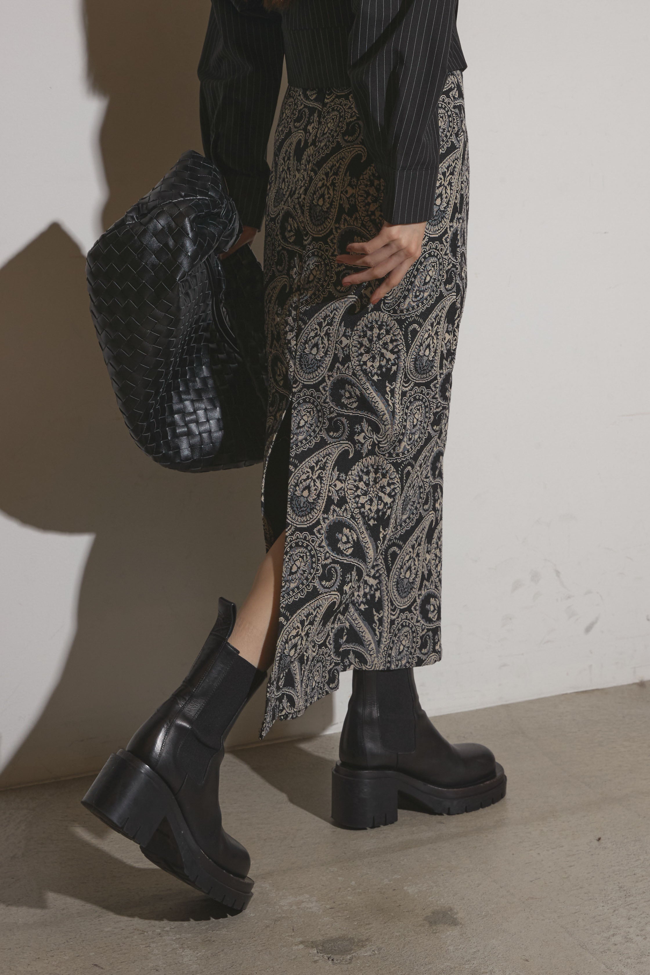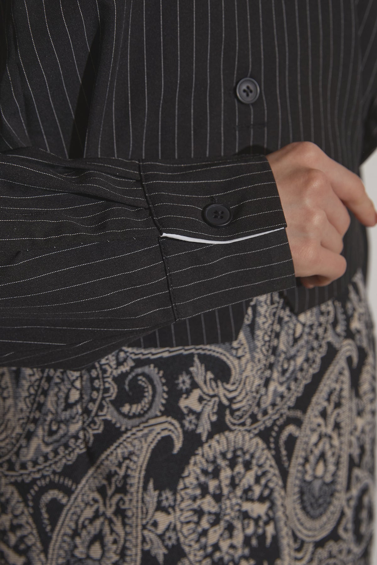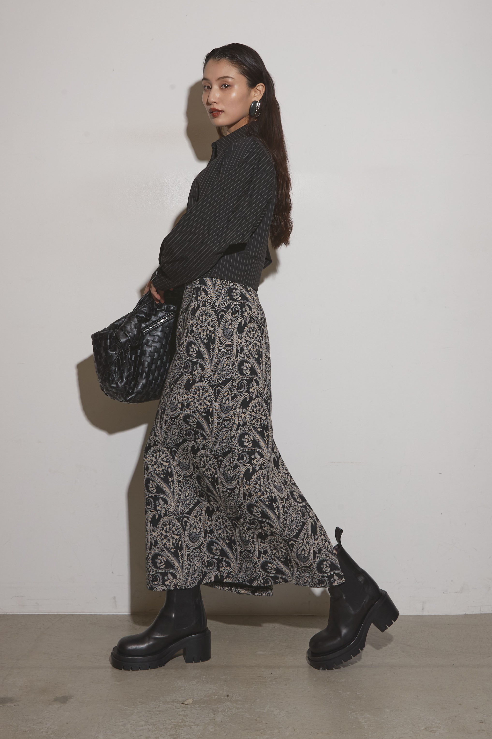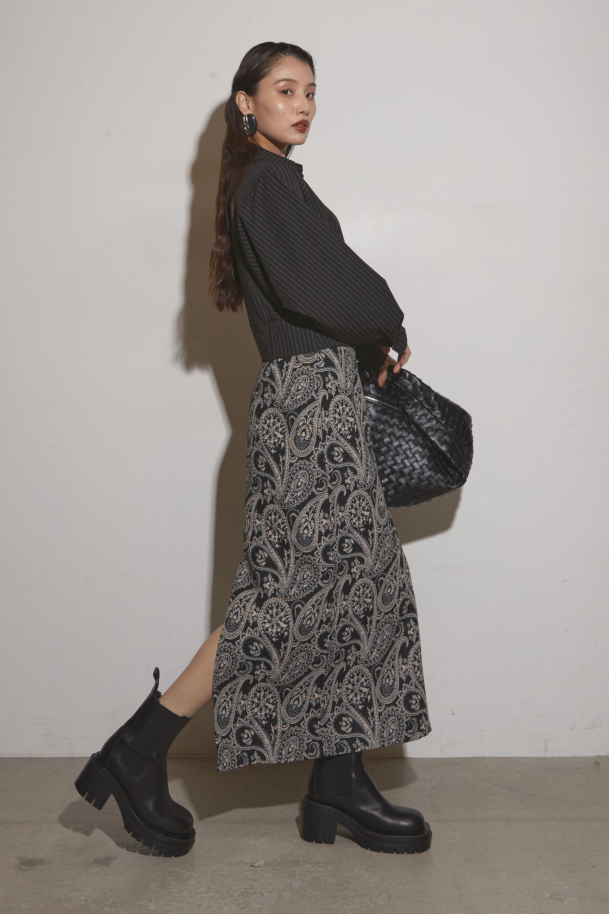 【SET】ストライプショートシャツ+ペーズリージャガードスカート