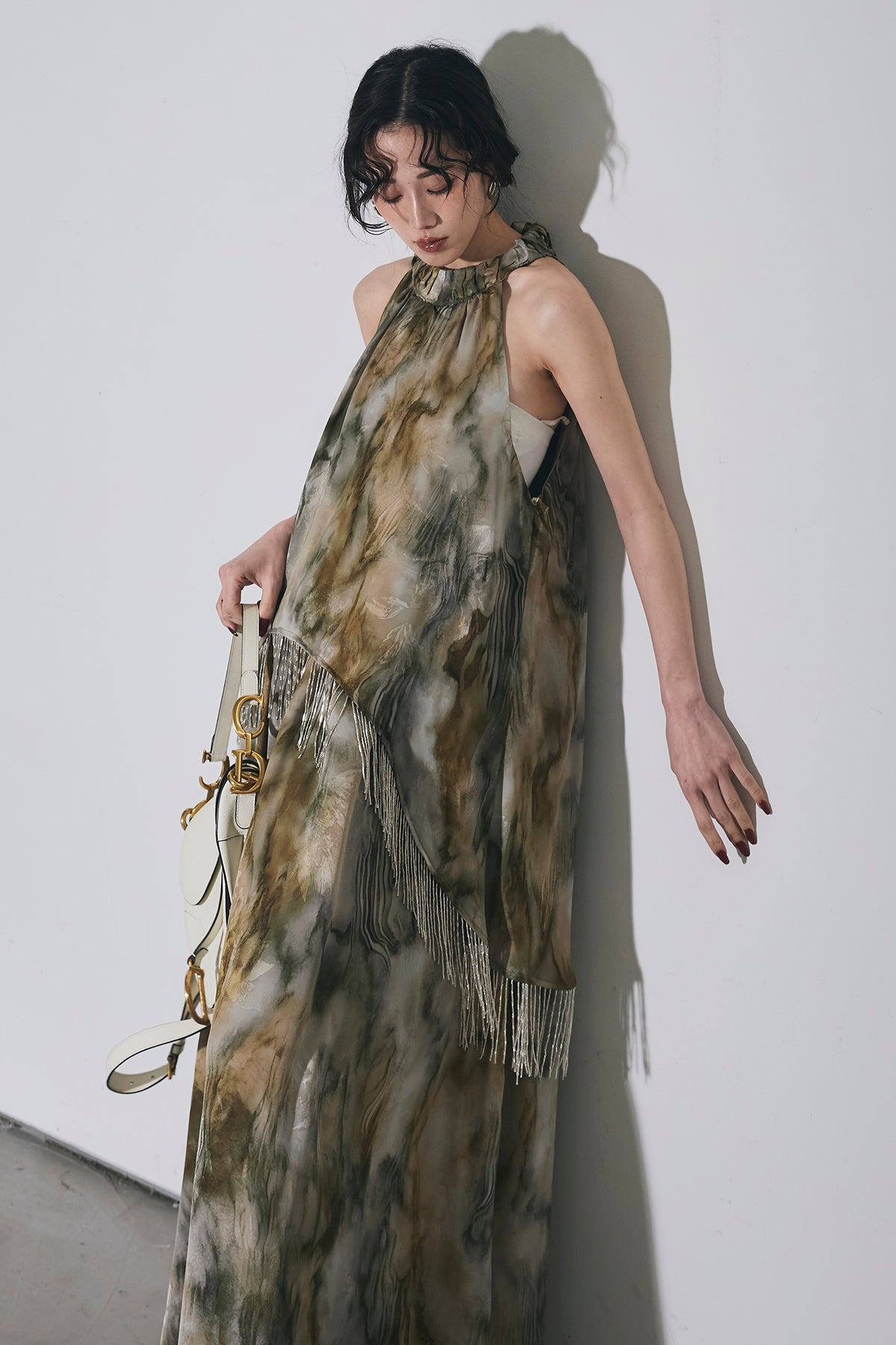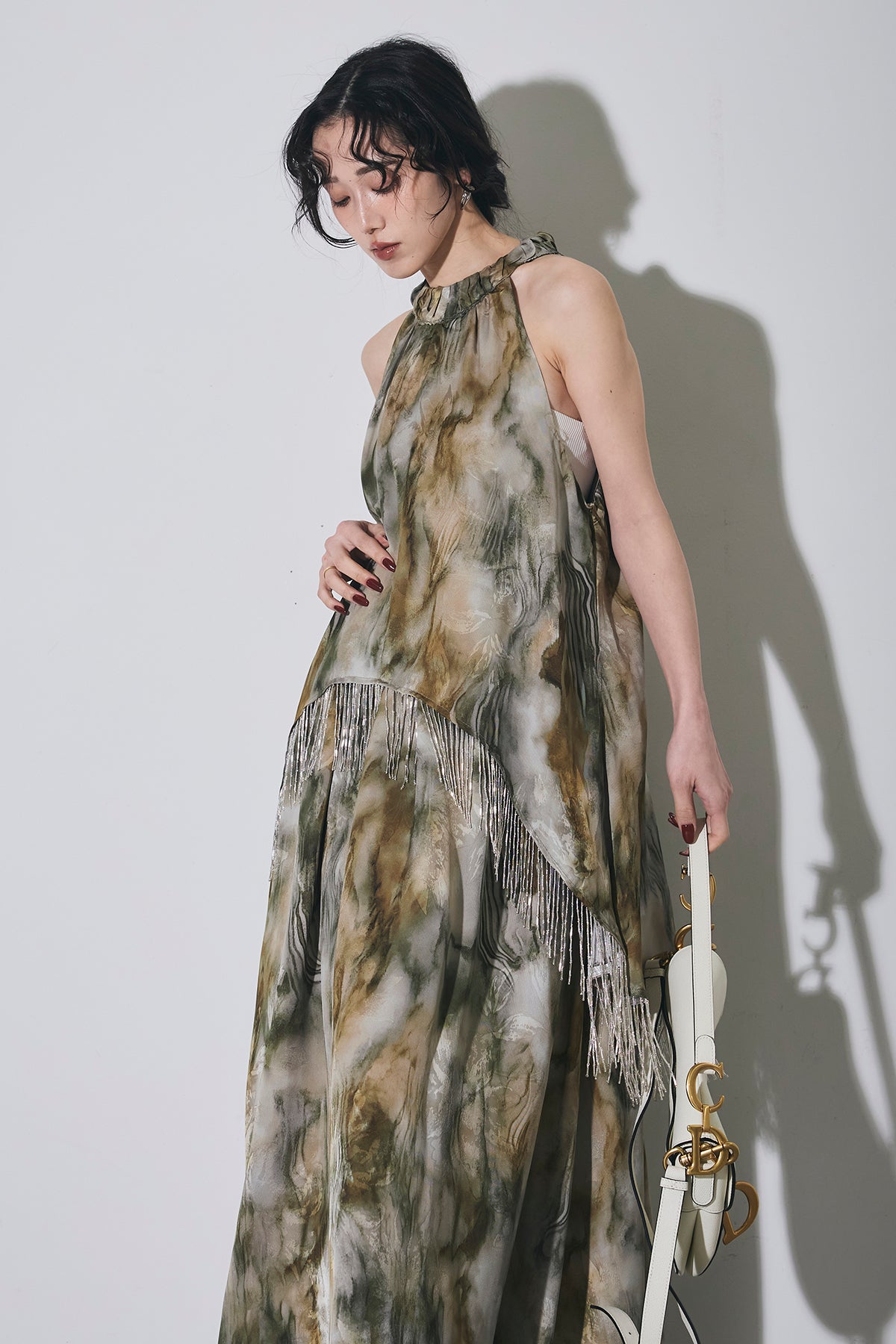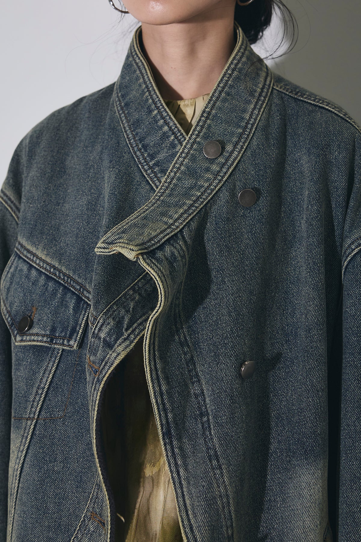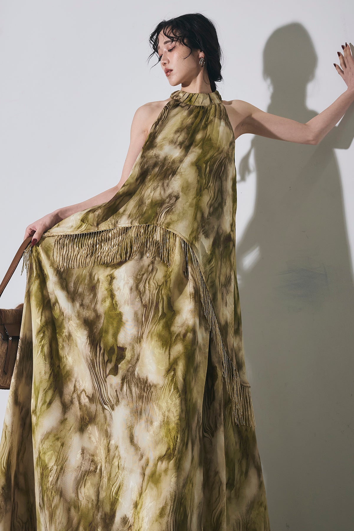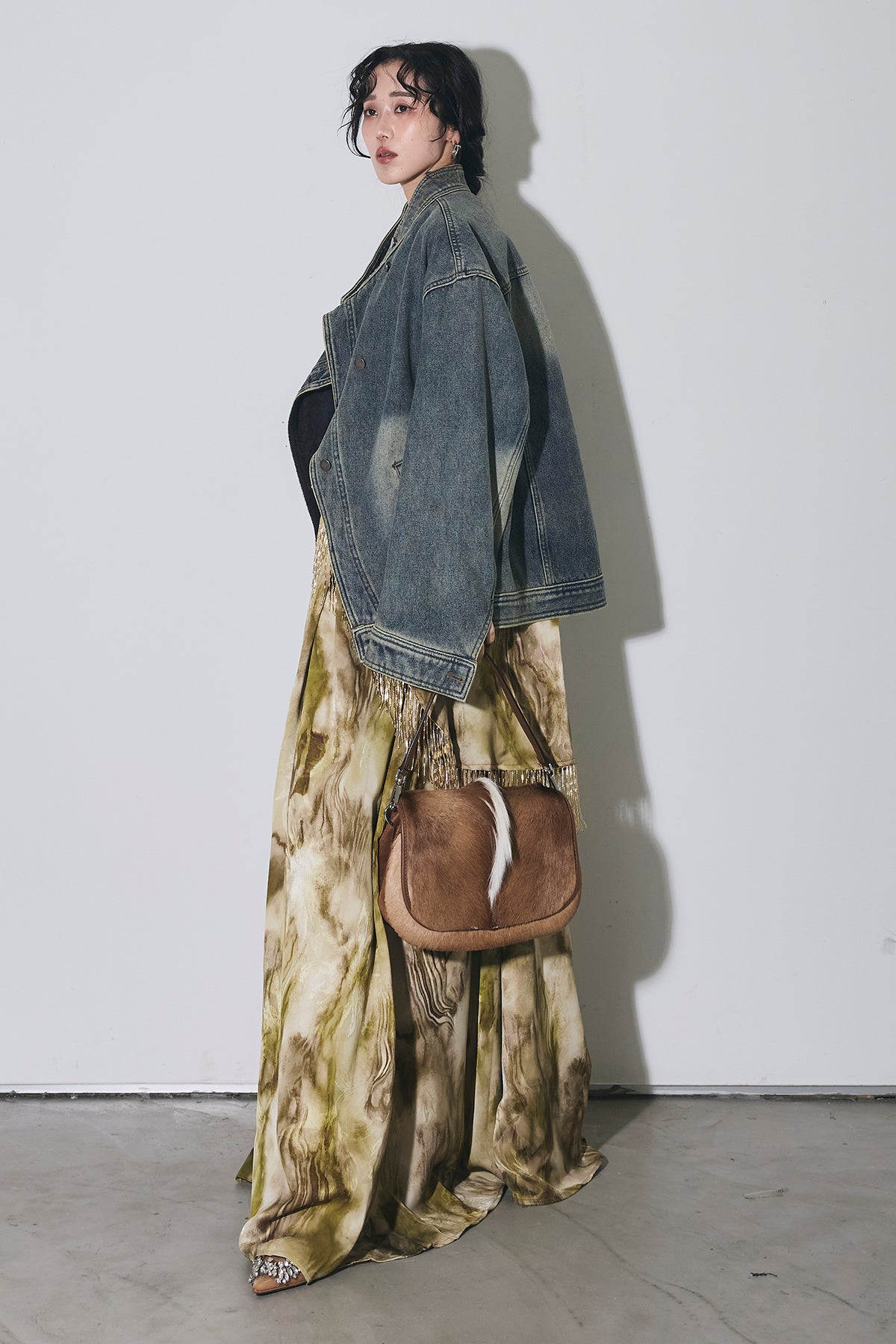 【SET】タイダイフリンジアートワンピース+スタンドカラーデニムジャケット
