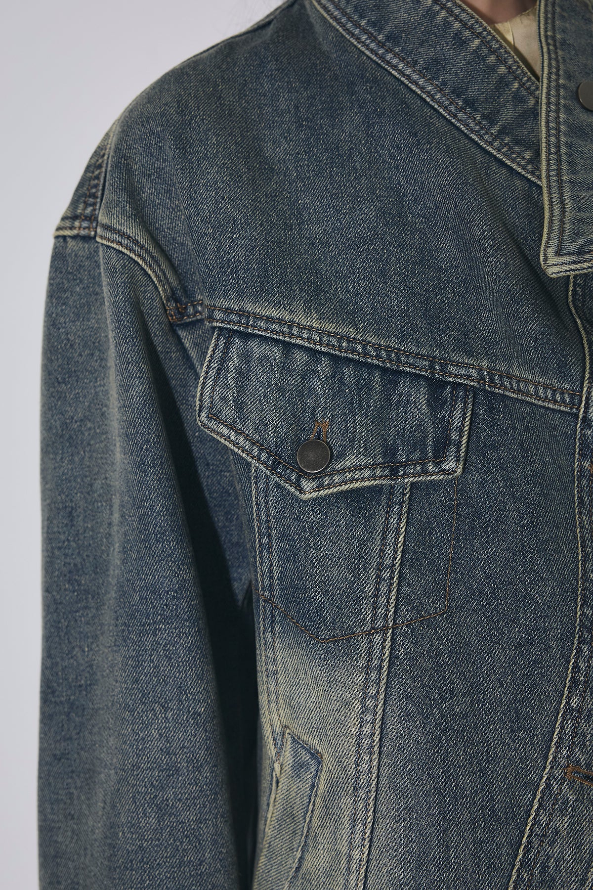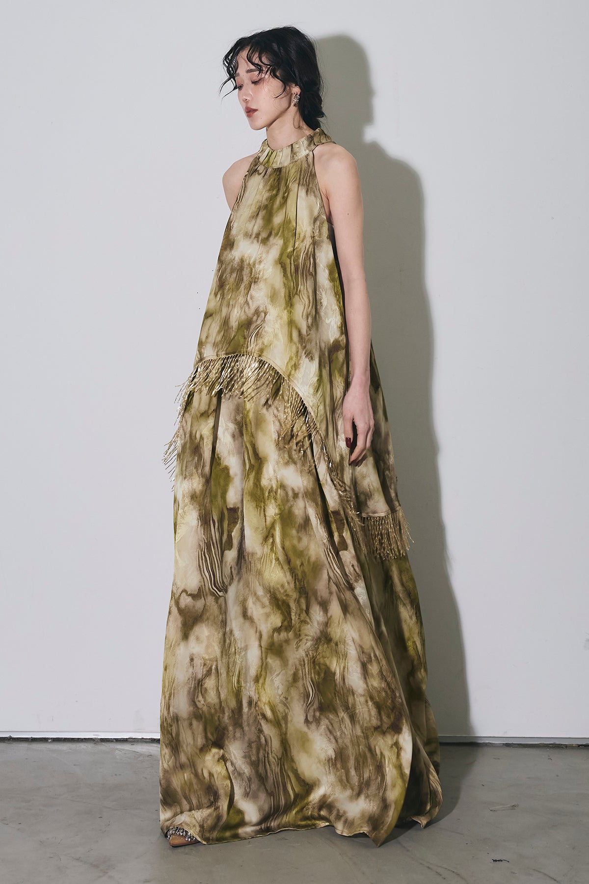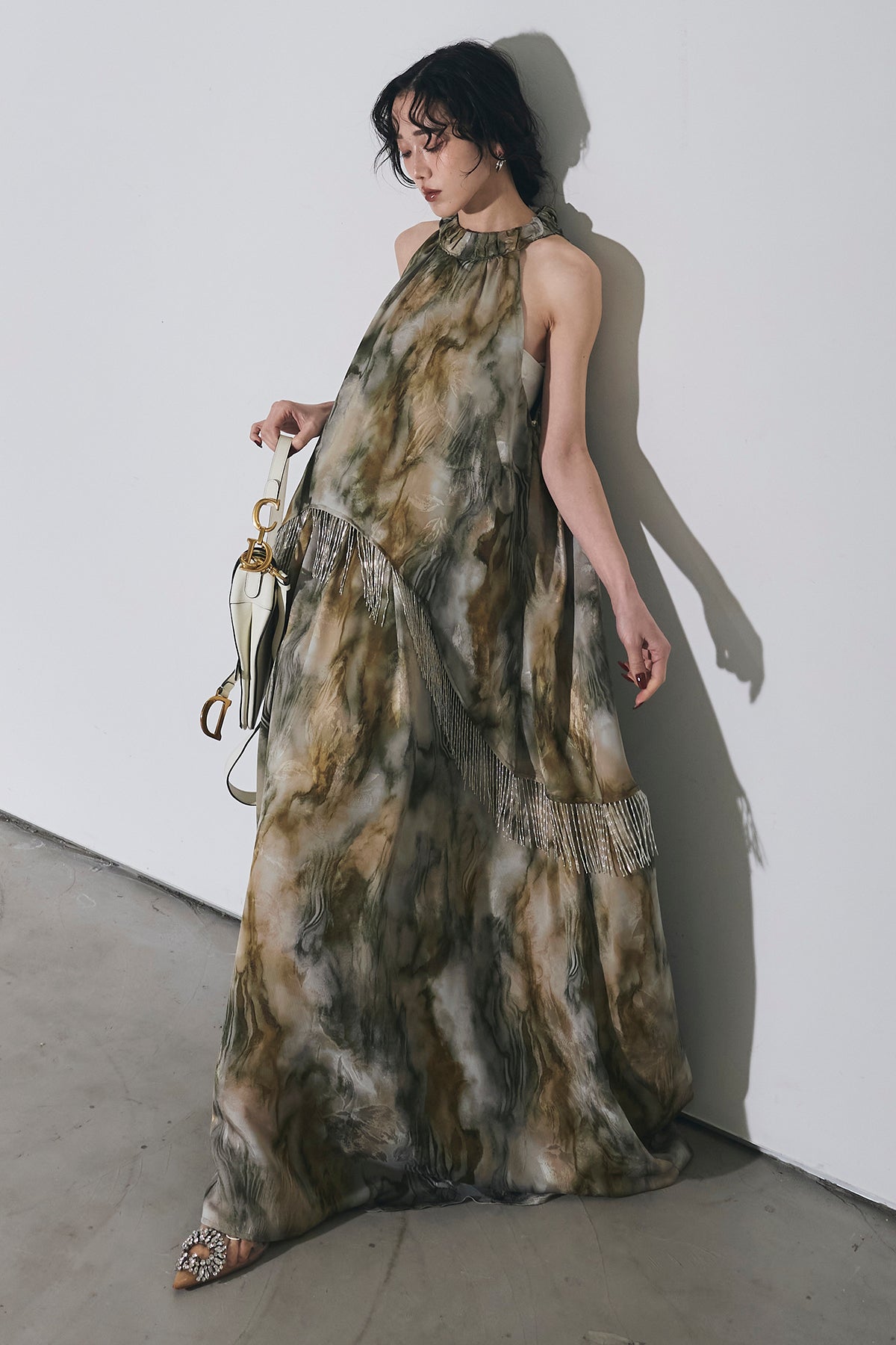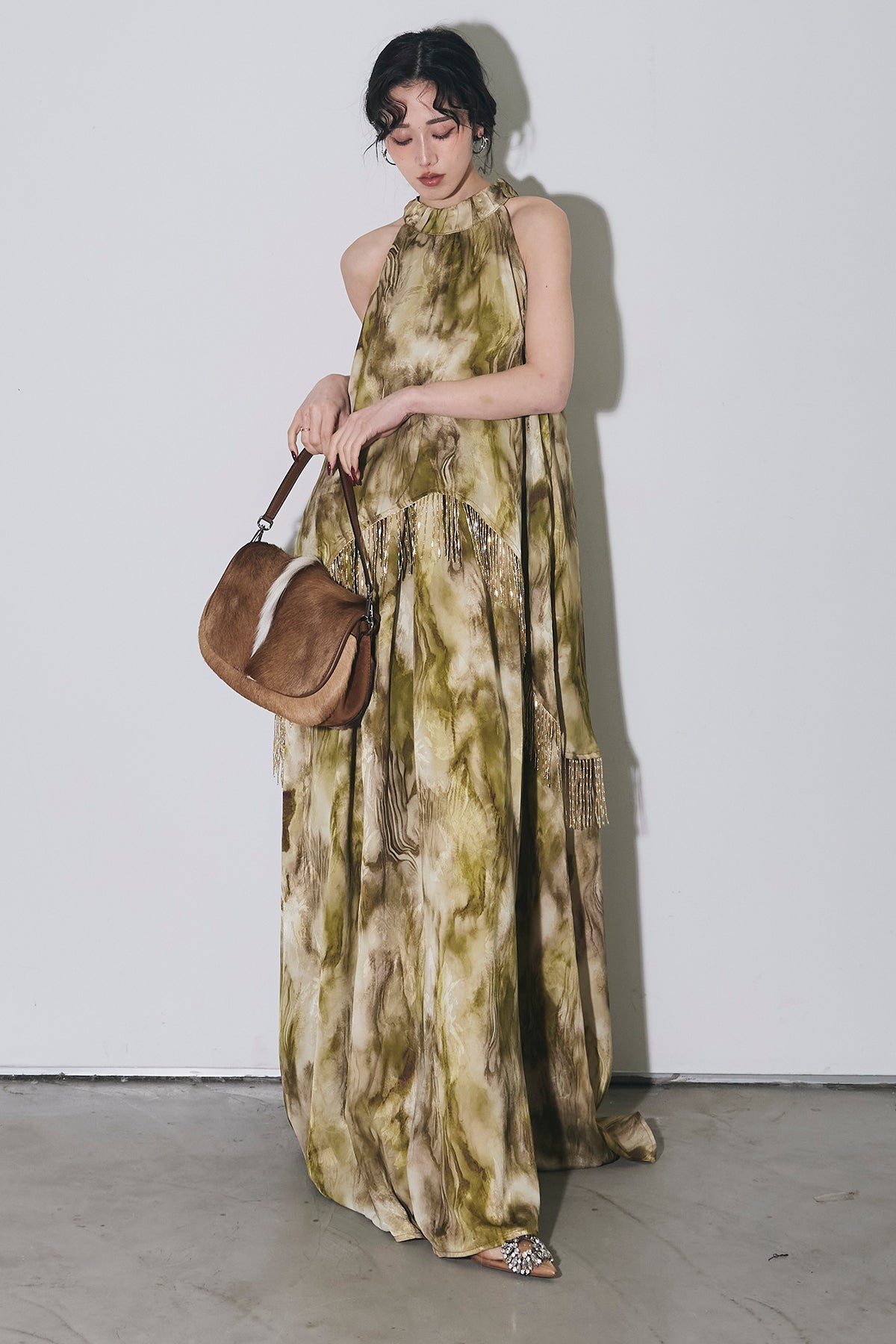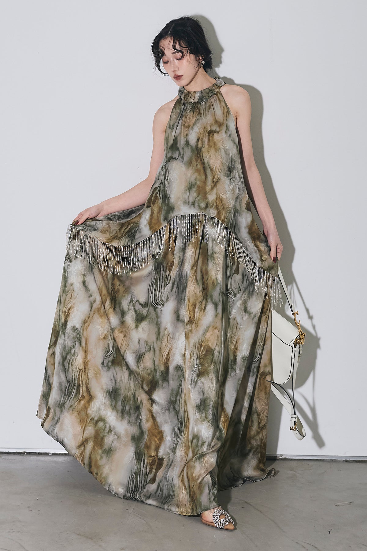 【SET】タイダイフリンジアートワンピース+スタンドカラーデニムジャケット