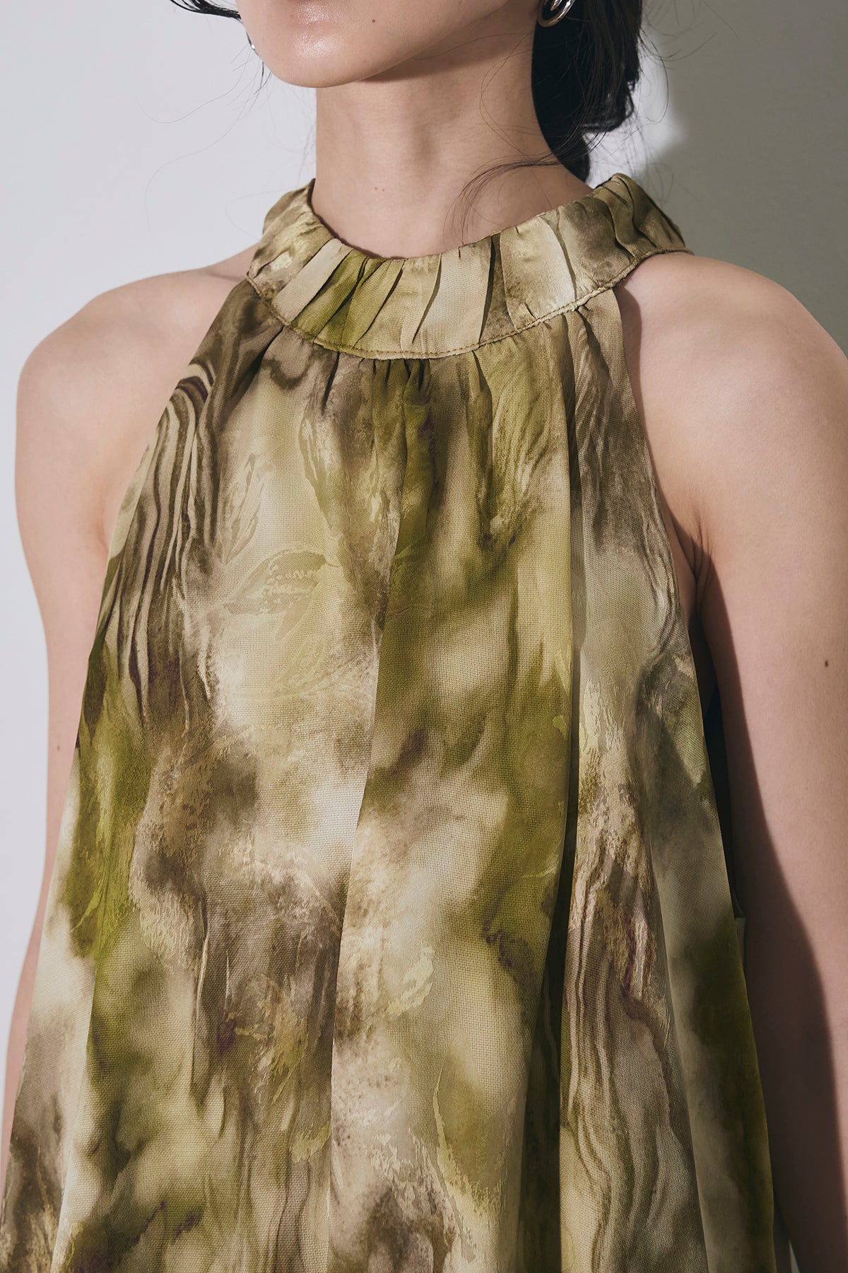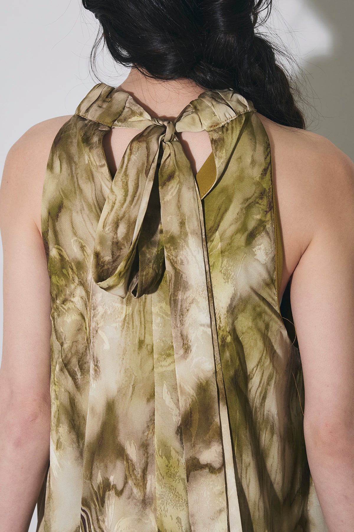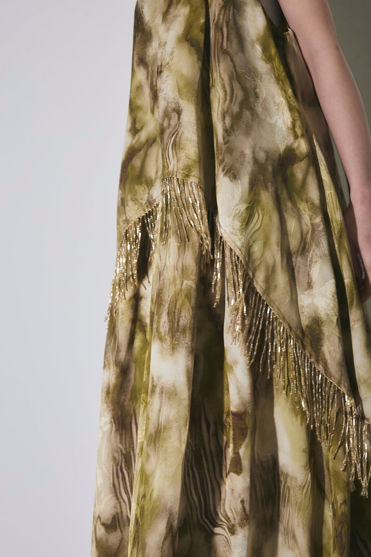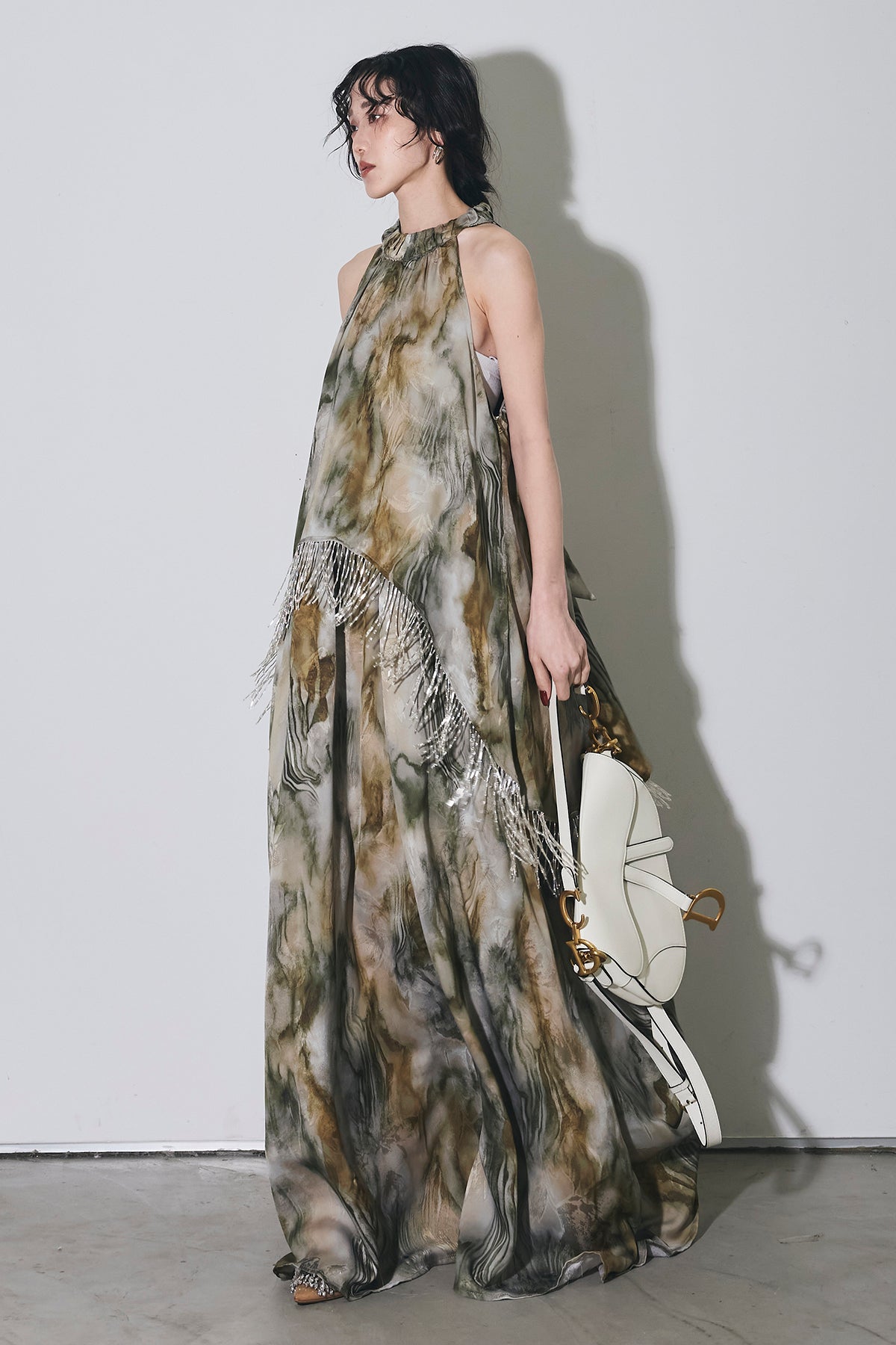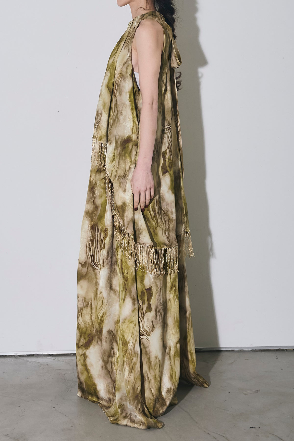 【SET】タイダイフリンジアートワンピース+スタンドカラーデニムジャケット