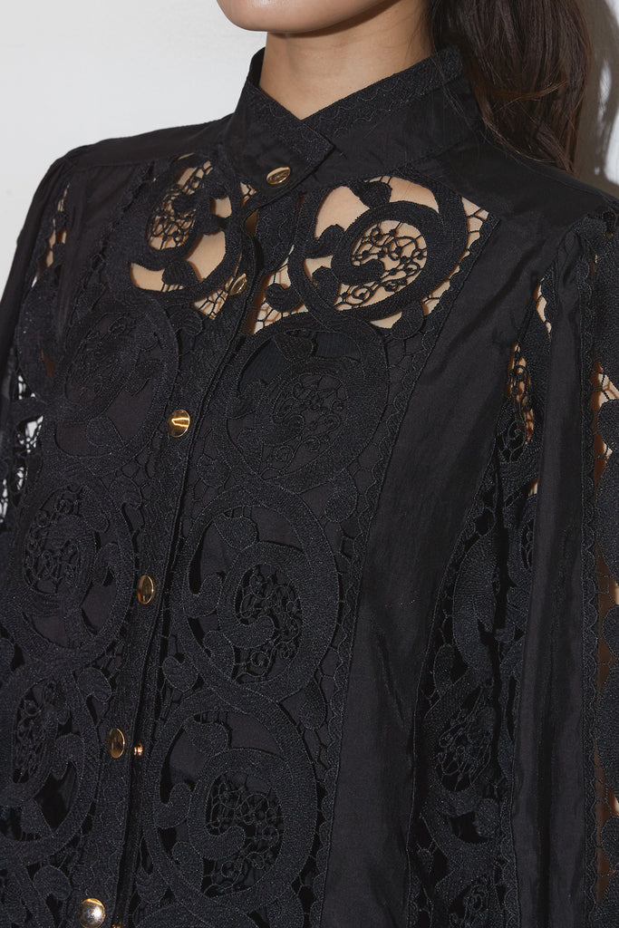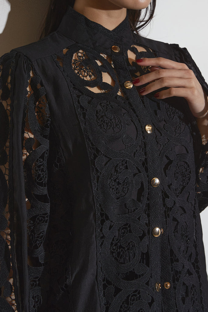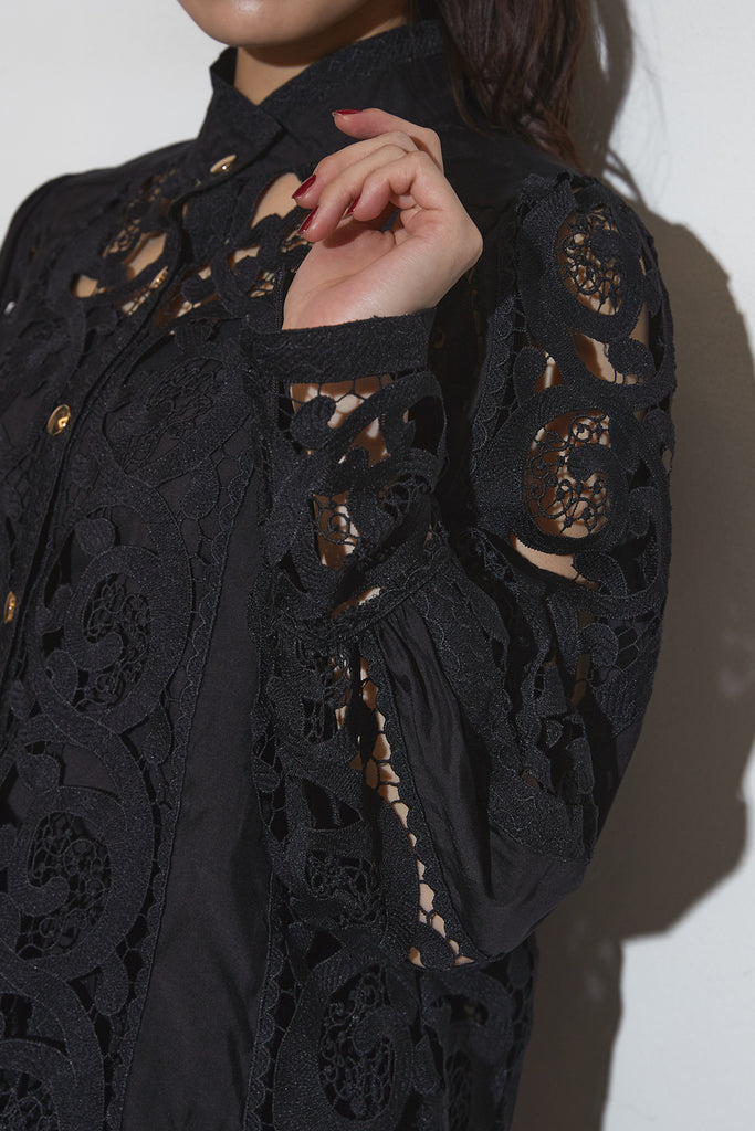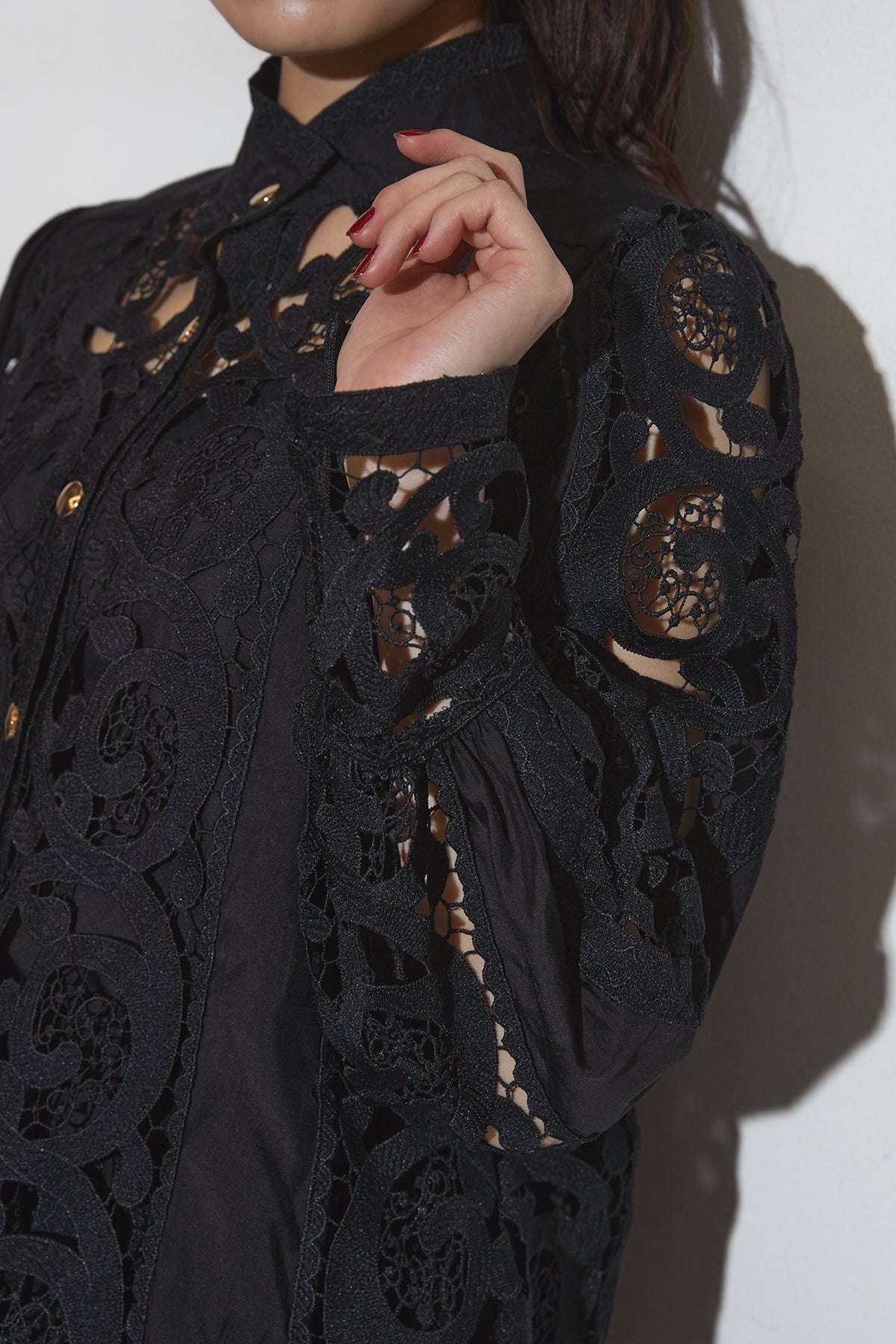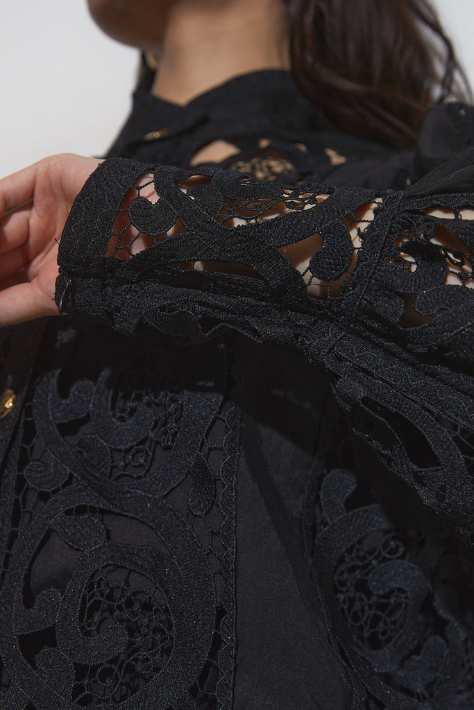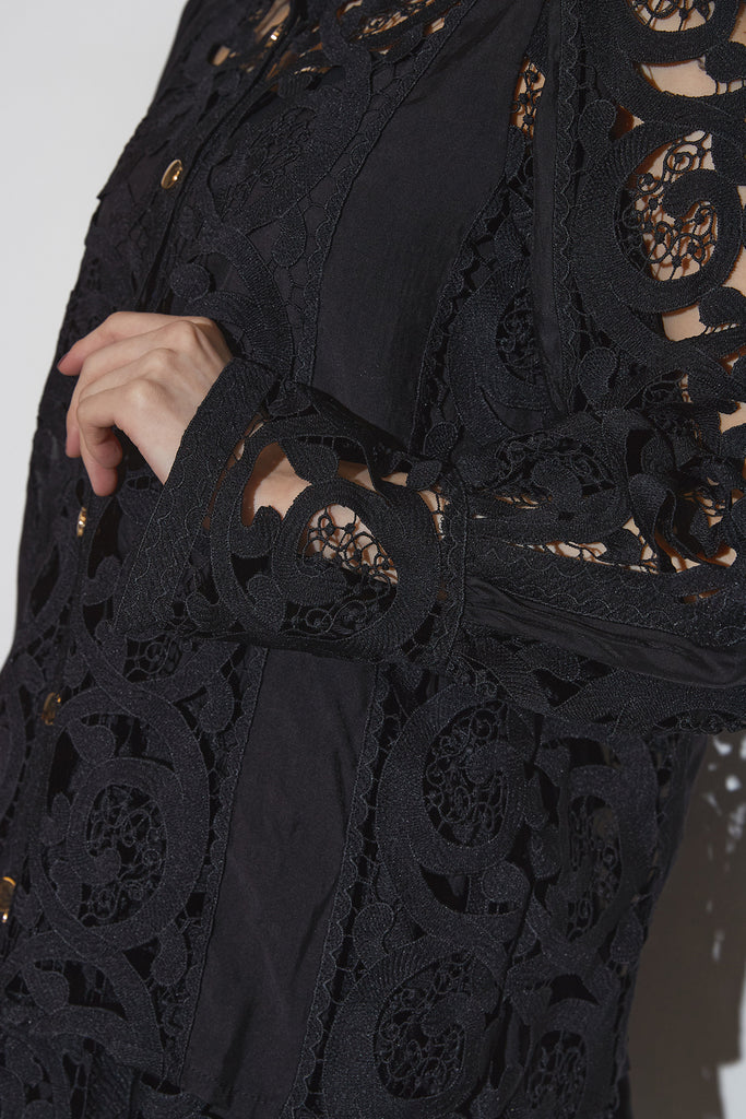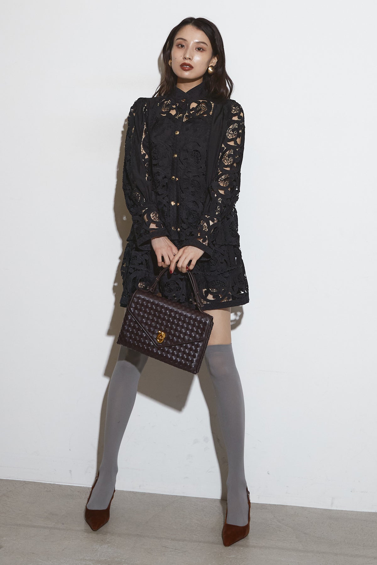 繊細なレースデザインが目を惹くセットアップ。 程よい透け感と立体的な柄が上品な印象を与え、 シンプルながらも存在感のあるスタイルを演出します。 セットではもちろん、単品使いでもコーディネートを華やかにしてくれるアイテムです。
