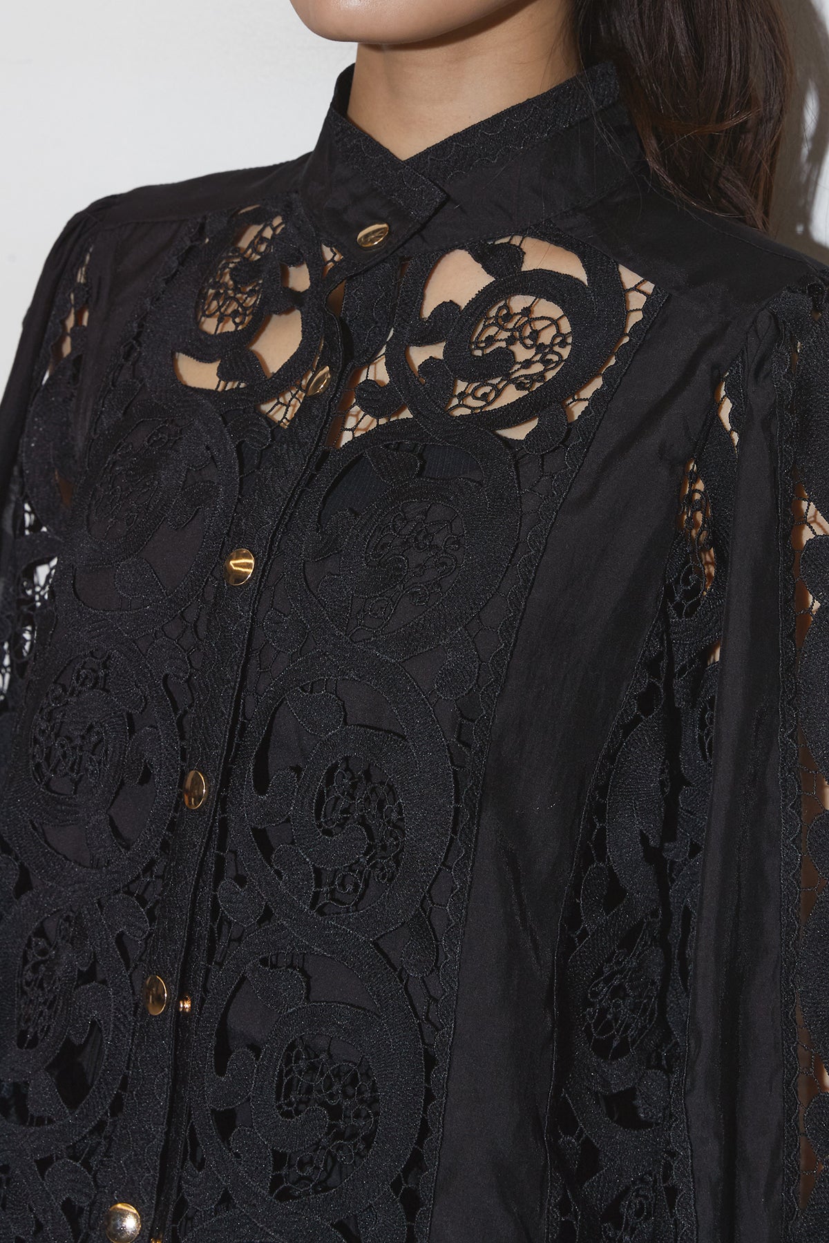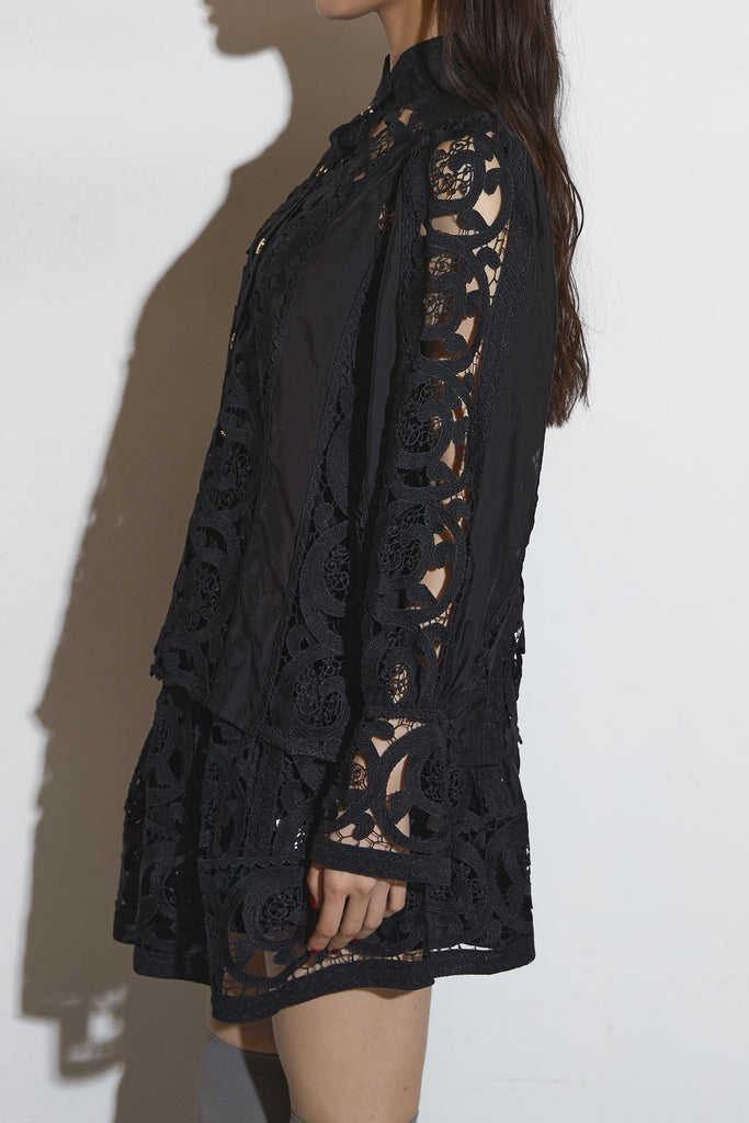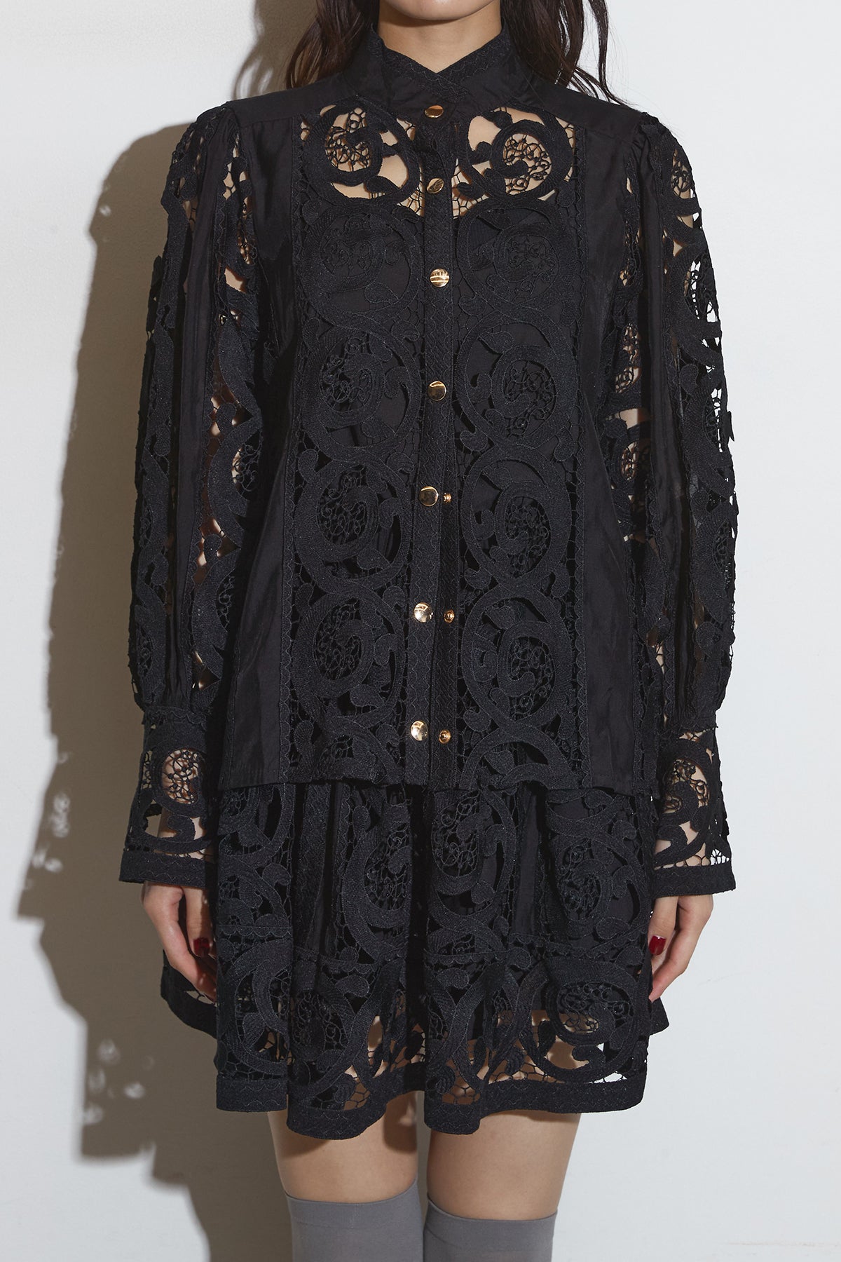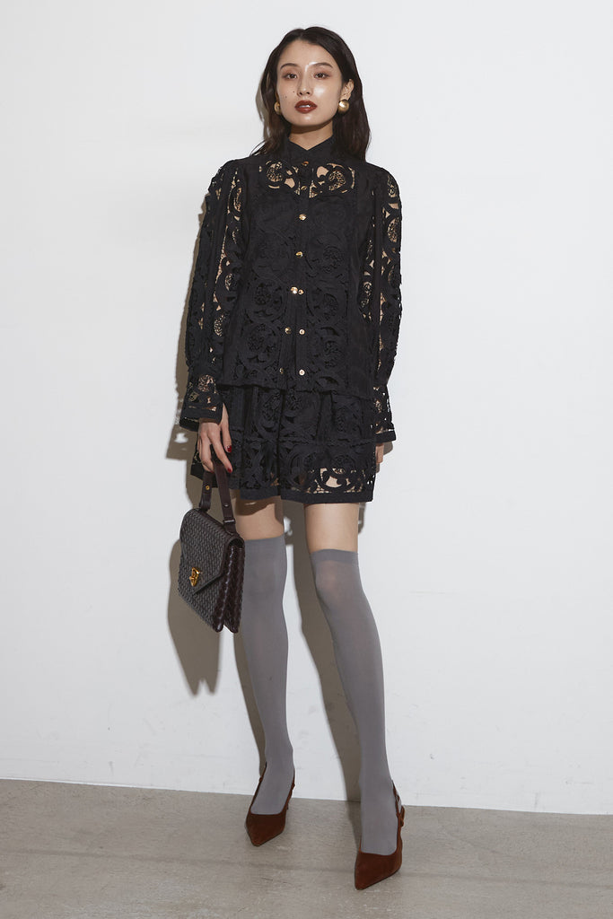 レースゴールドボタンブラウス& レースショートパンツ