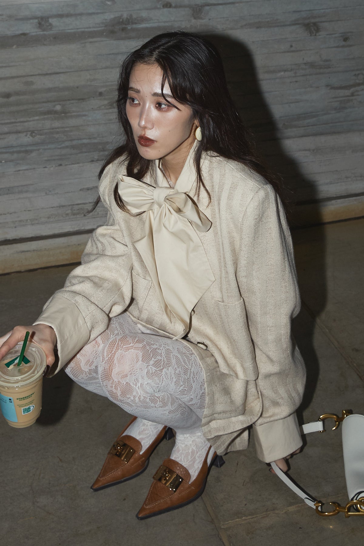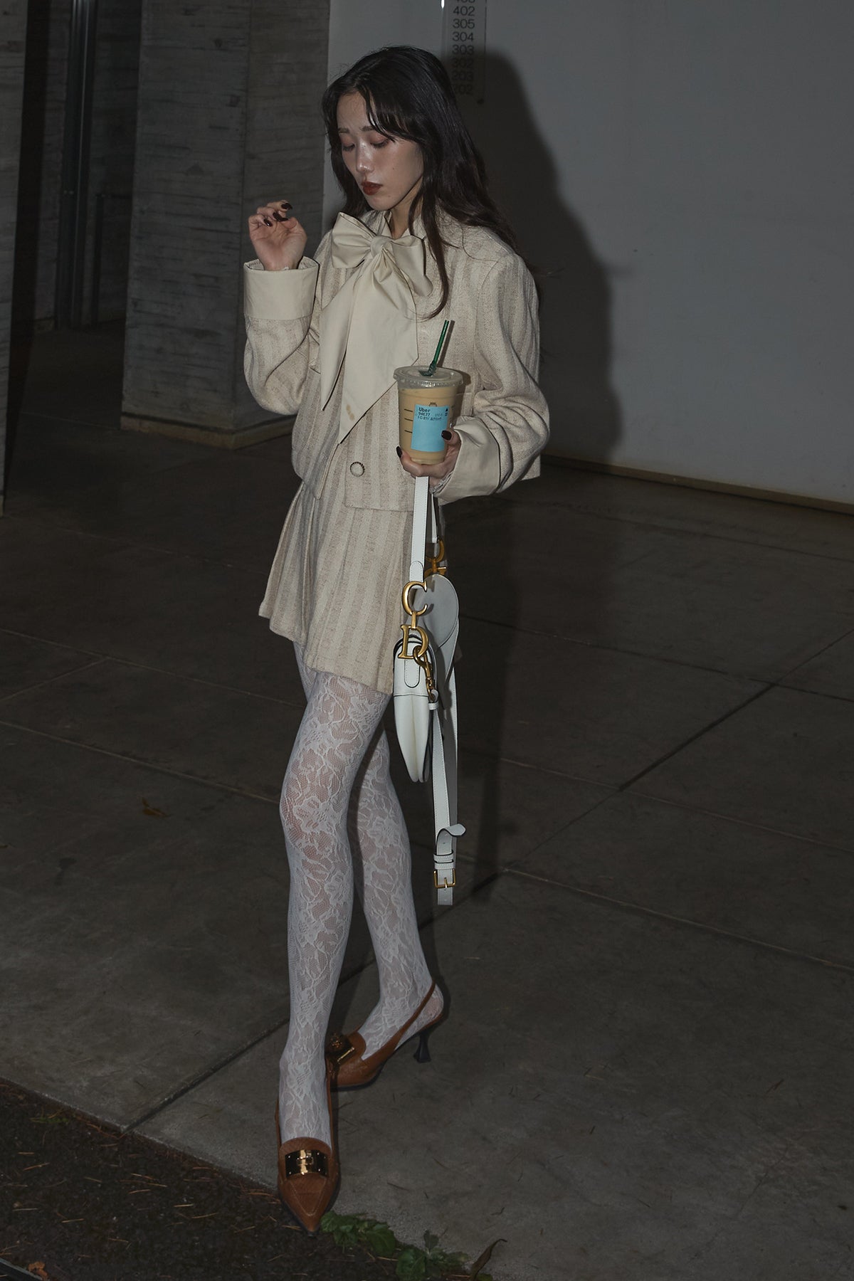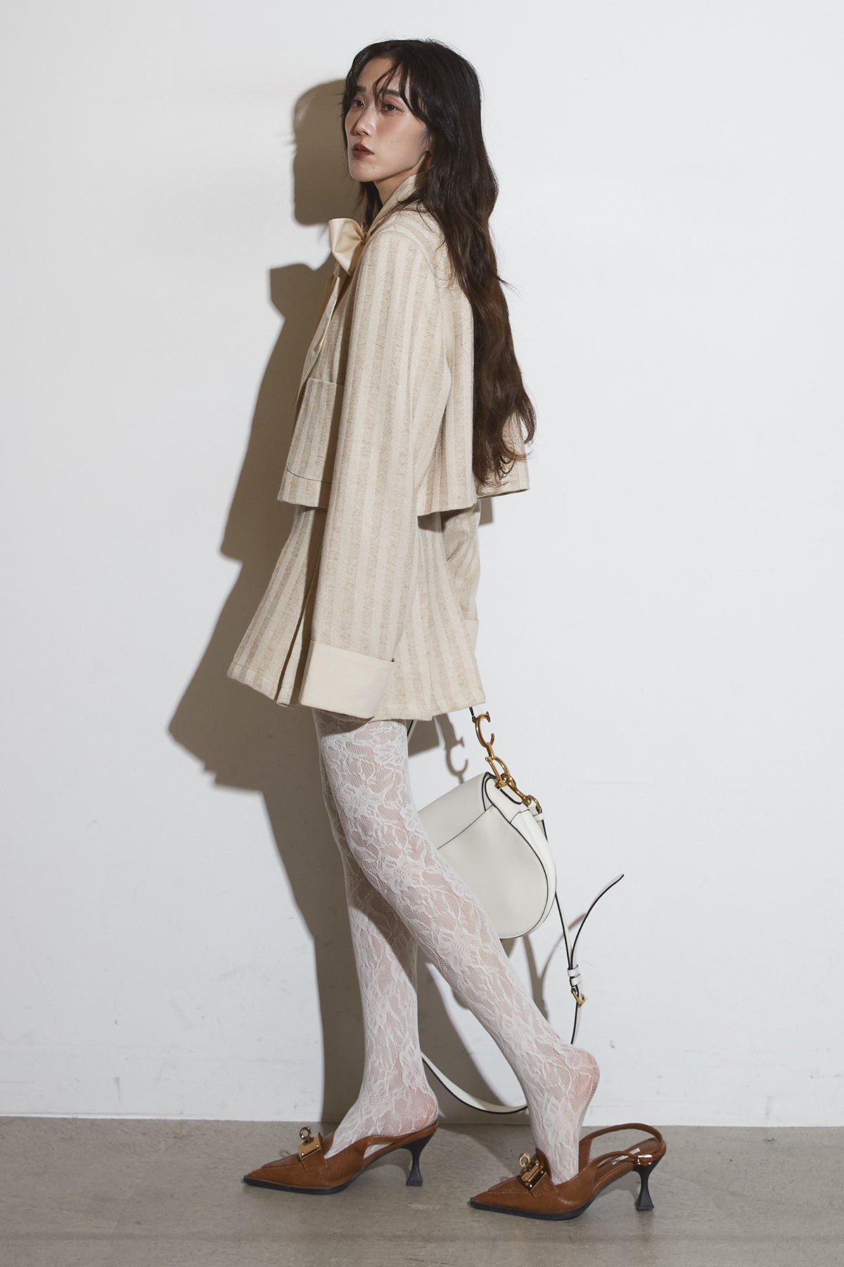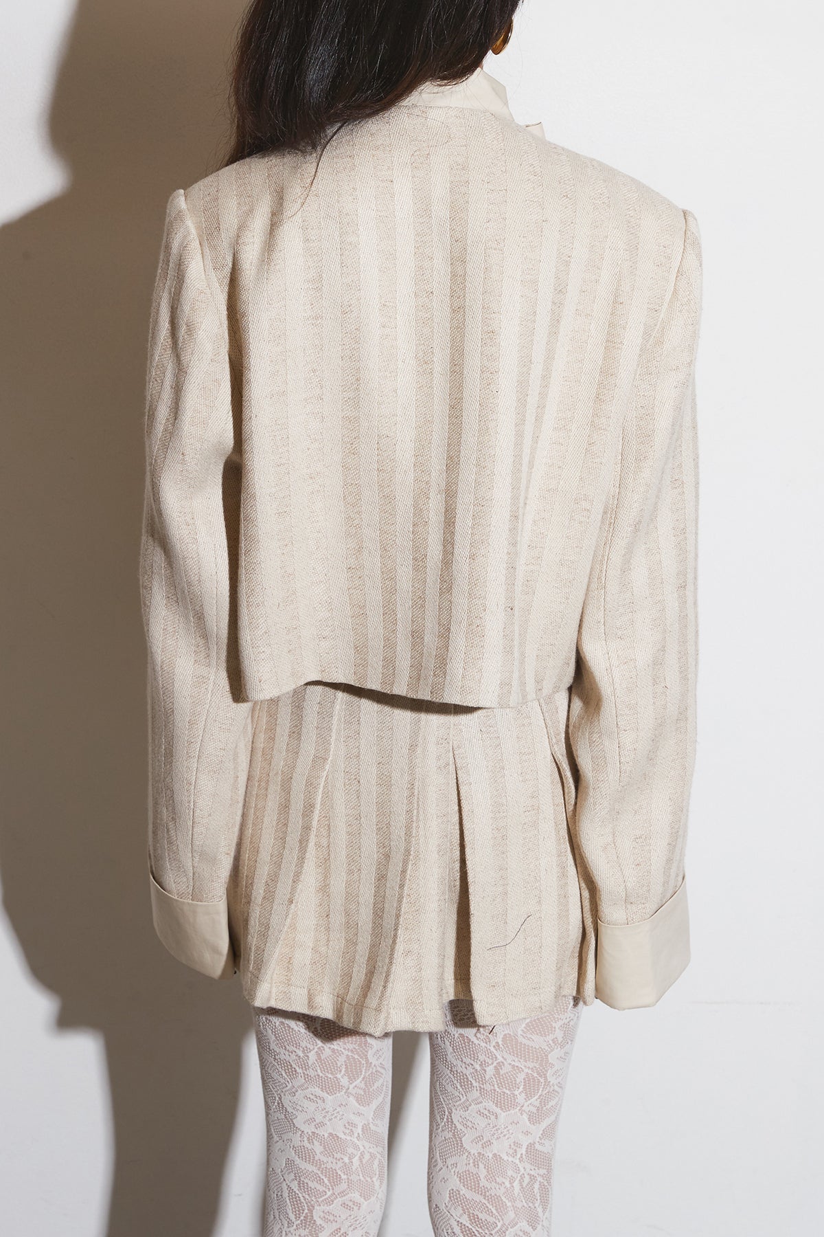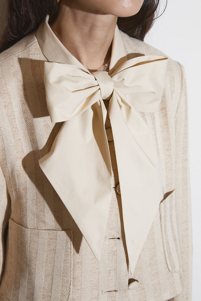 上品な印象を与えるセットアップ。 コンパクトなジャケットと、動きのあるショート丈ボトムのバランスが新鮮なスタイルです。 シンプルなデザインの中に、立体的なシルエットと細部のディテールが映える一着。 セットでの着用はもちろん、それぞれ単品でも着回しの幅が広がります。