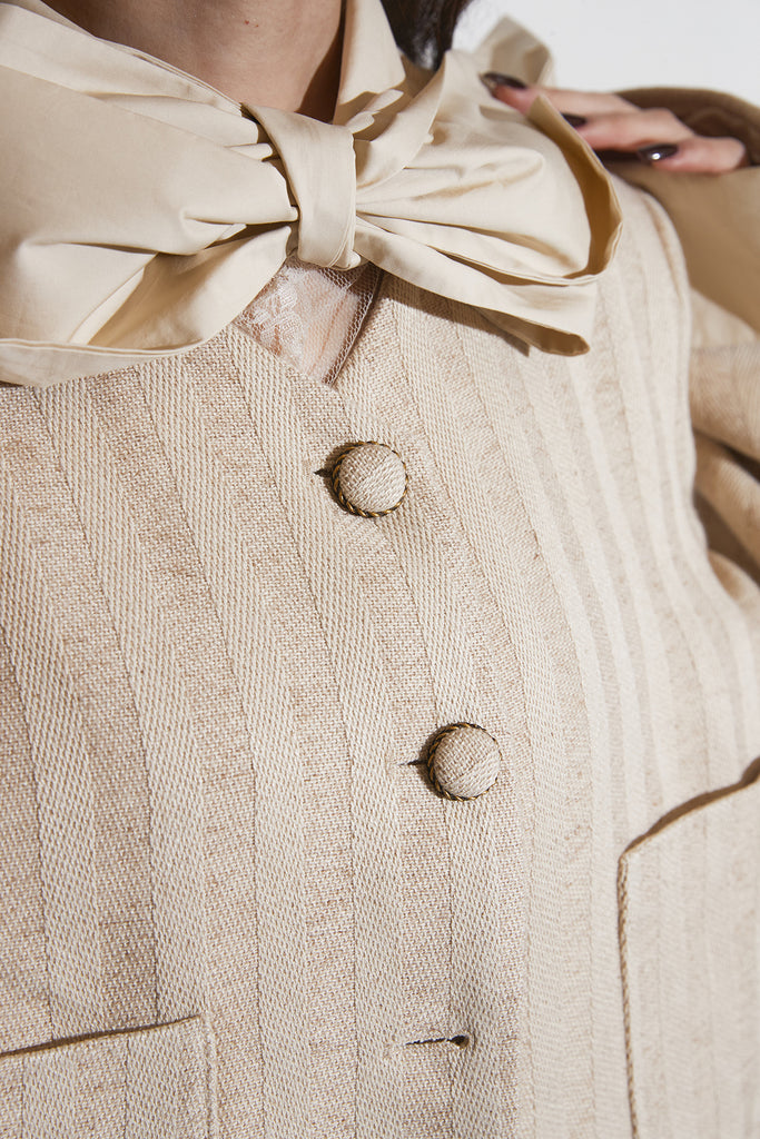 ・素材:トップス表地 本体 ポリエステル90% 麻10% 別布 綿100% 裏地 ポリエステル100% パンツ 表地:ポリエステル90%、麻10% 裏地:ポリエステル100%