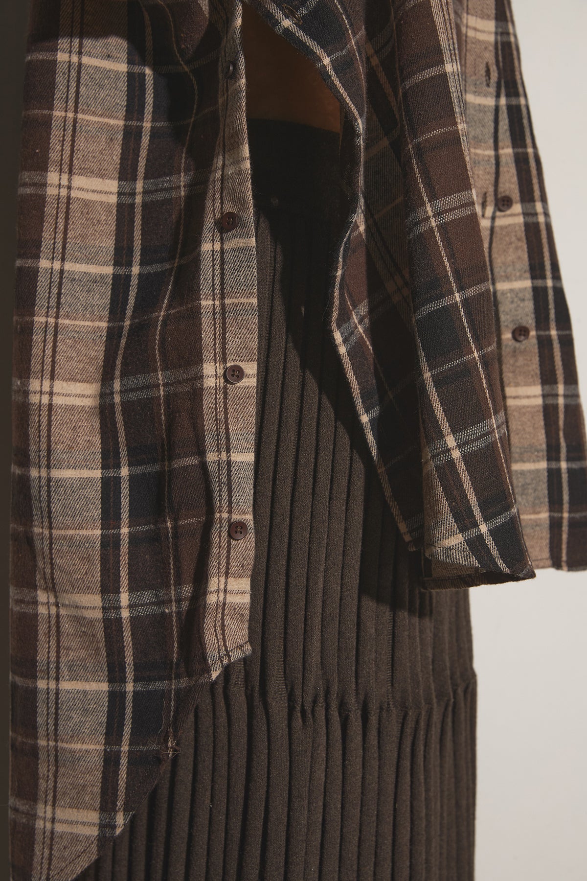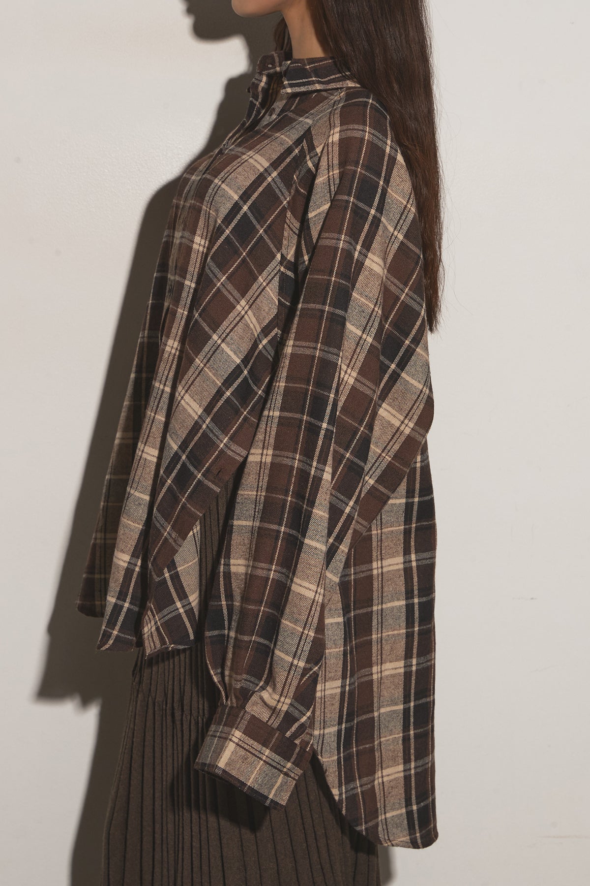 サイドのボタンでシルエットをアレンジできるデザインシャツ。留め方次第でドレープ感や広がりが変わり、着こなしに変化をつけられます。フロントボタン仕様で羽織としても活躍し、パンツにもスカートにも合わせやすい一着です。