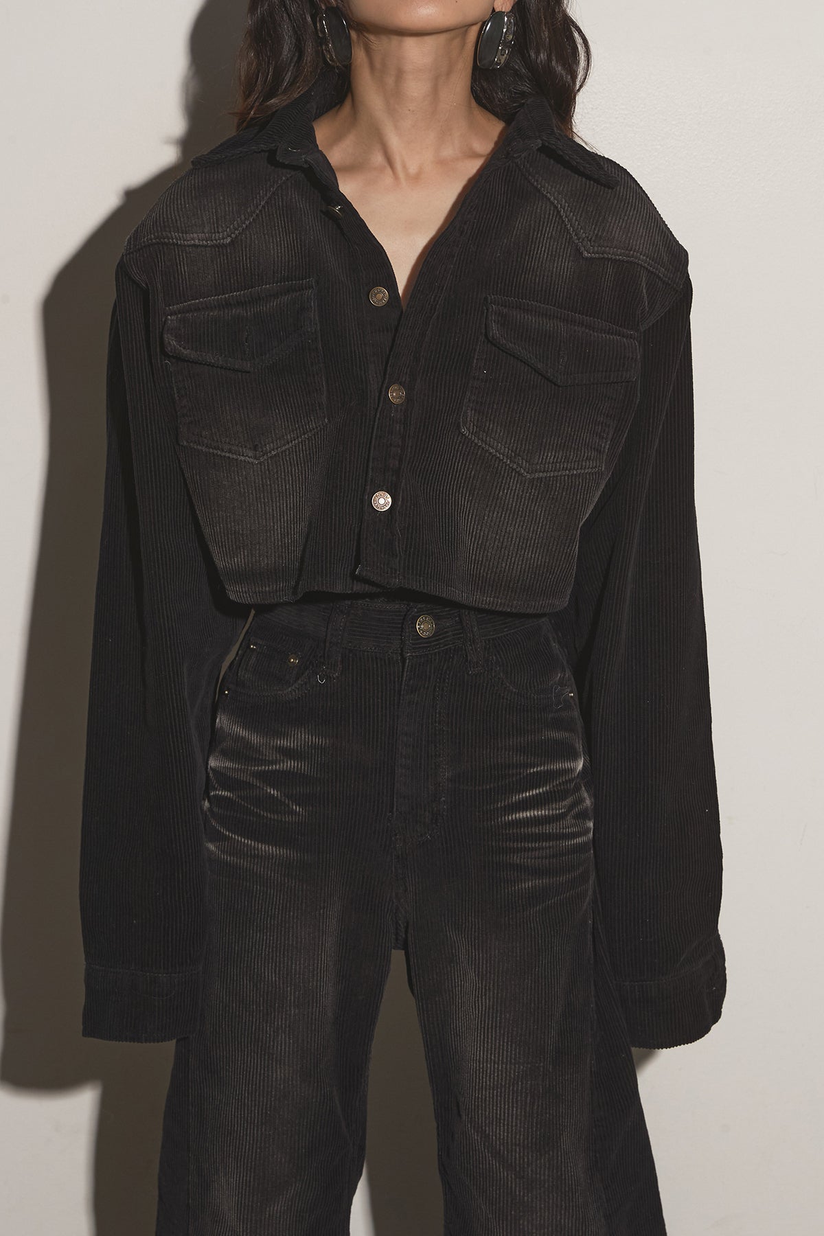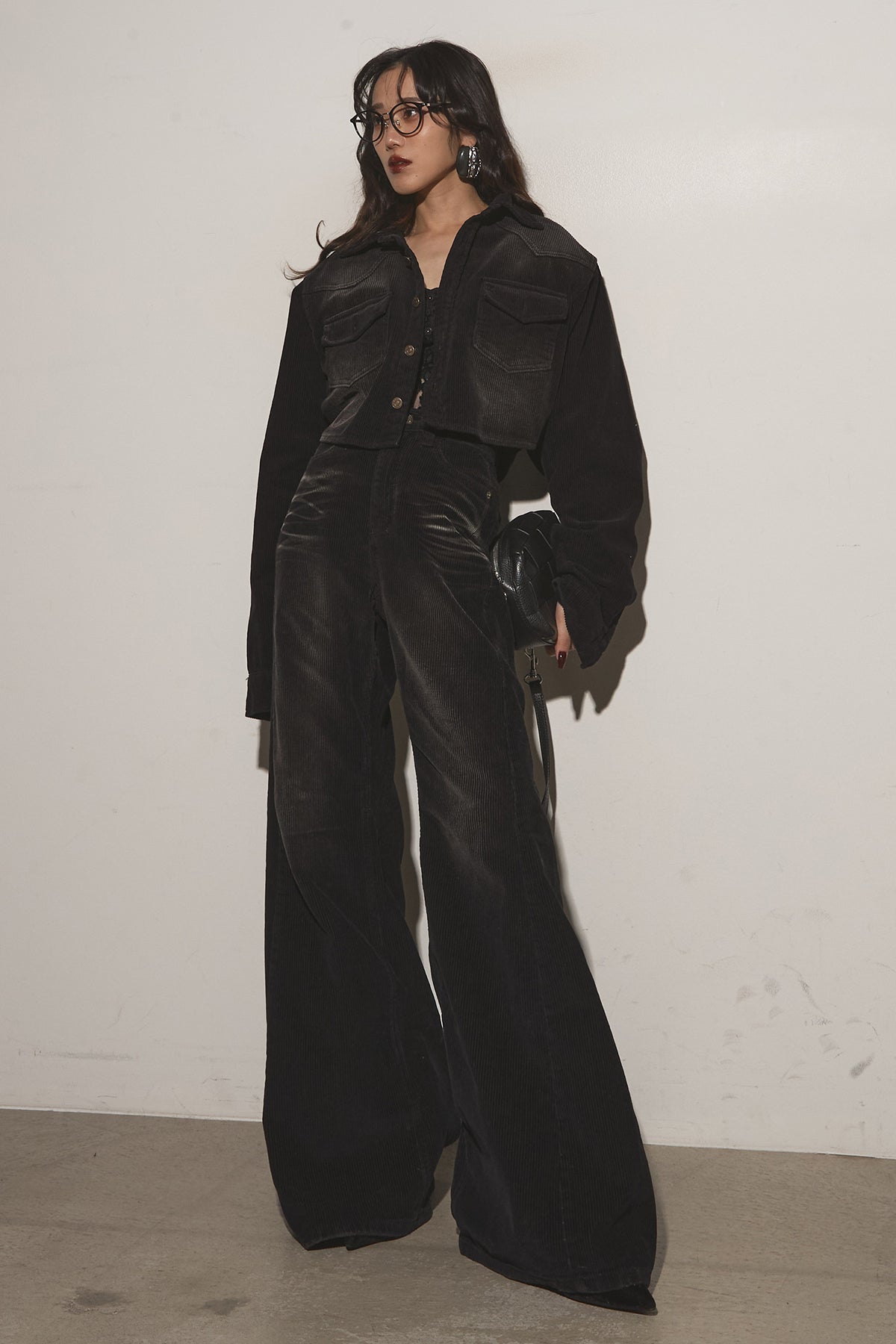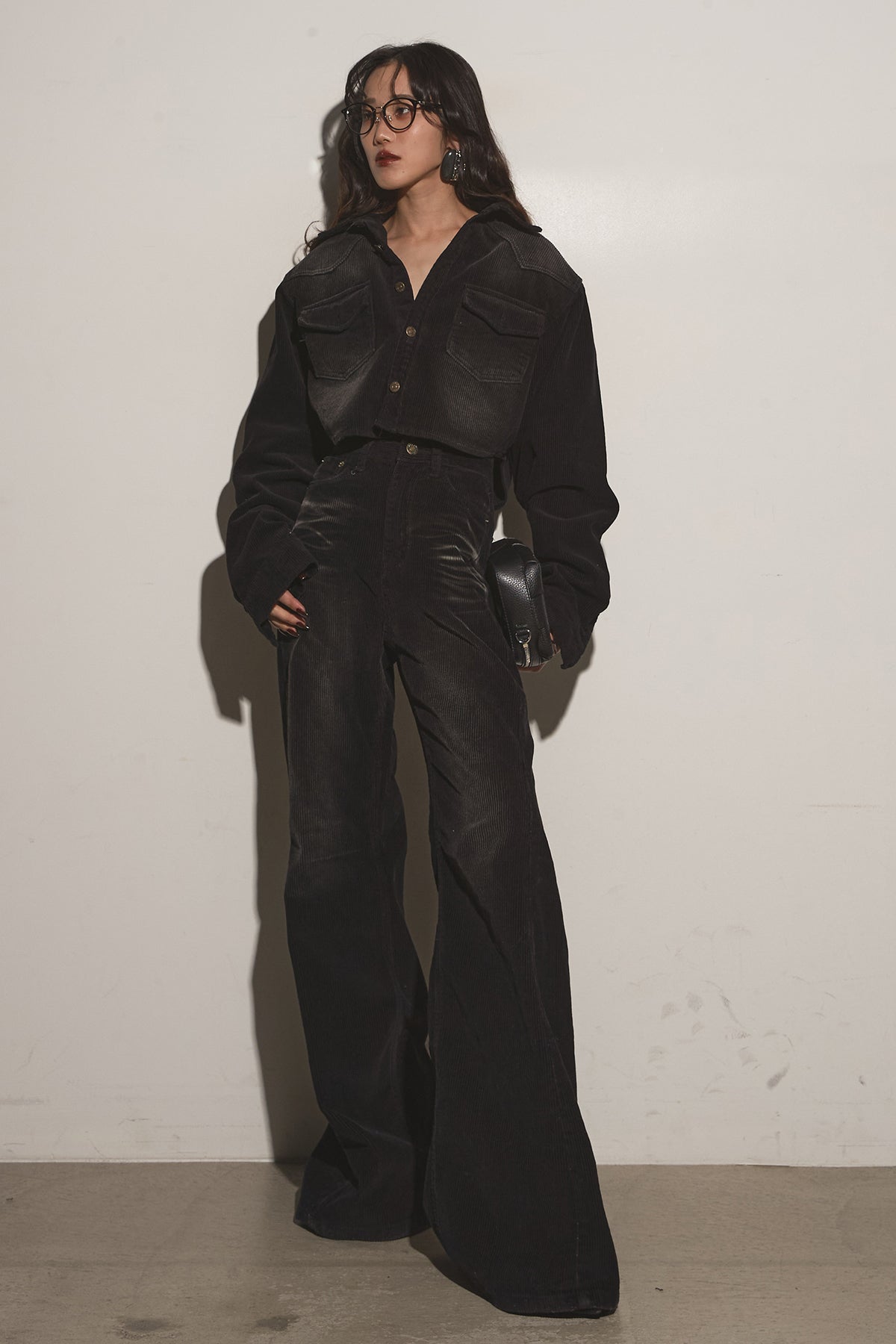 ご注文前に必ずページ下部「お届け期間」をご確認くださいませ。ショート丈トップスと、脚長見えするフレアパンツのセット。上下で着るだけでバランス良く決まり、それぞれ単品でも着回しやすい万能アイテム。トップスは胸ポケット付きで程よくカジュアル、パンツはハイウエスト仕様でスタイルアップが叶います。