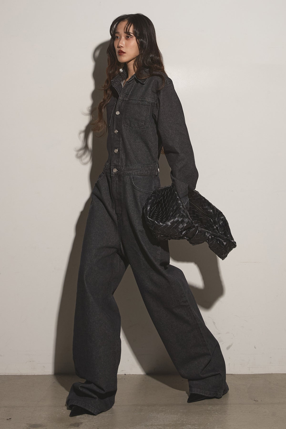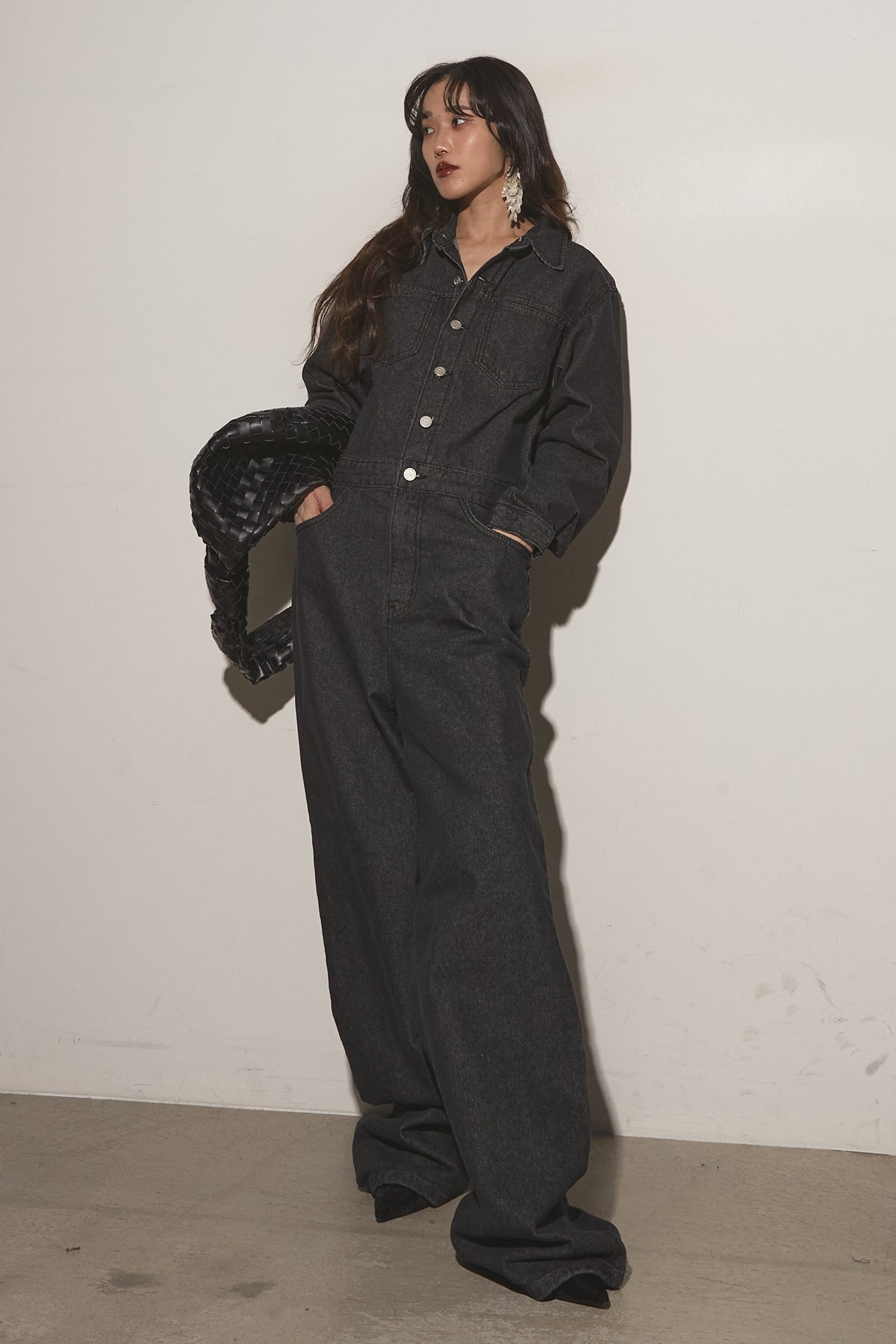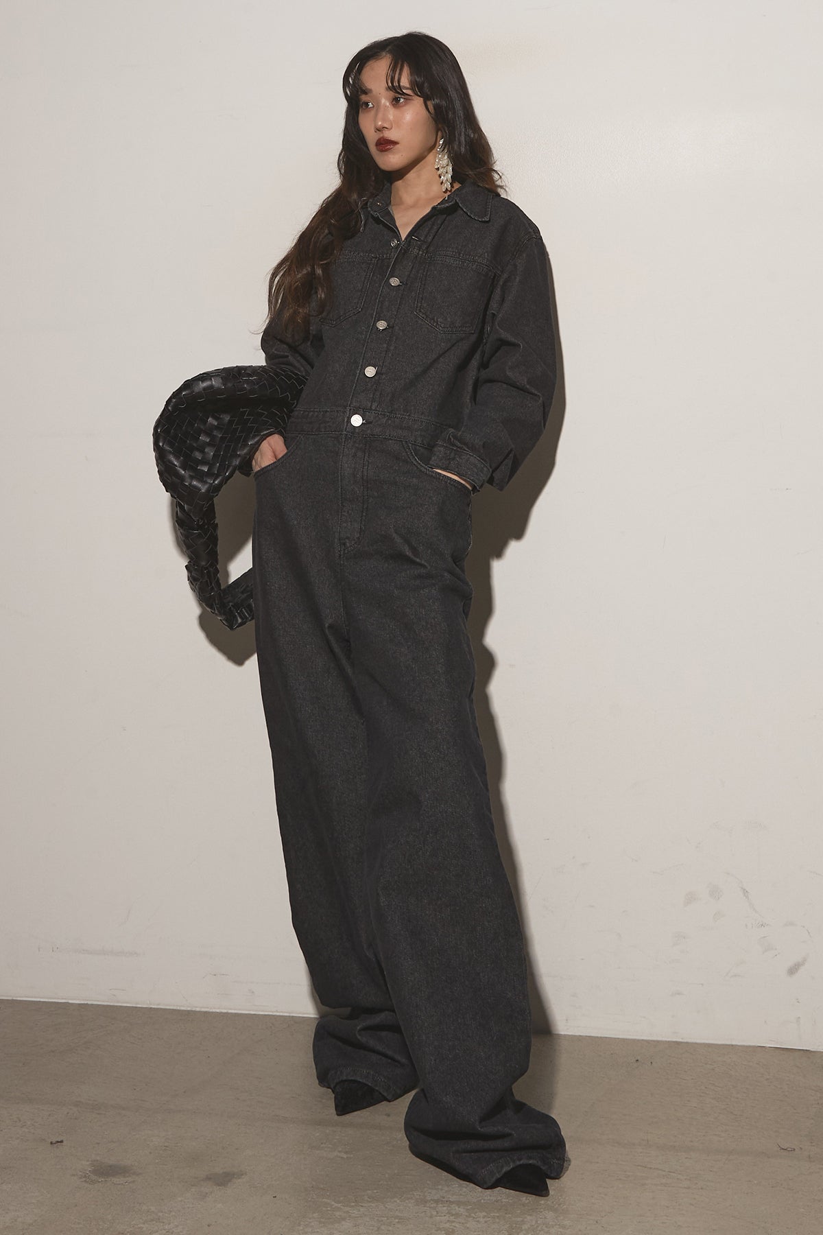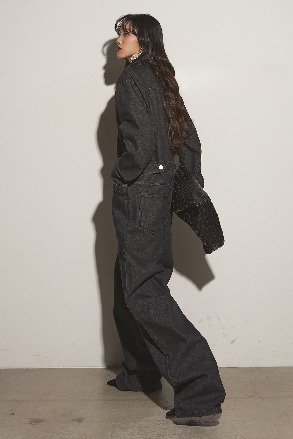 ワークテイストを品よく落とし込んだデニムオールインワン。フロントボタンで着脱しやすく、胸元のポケットや切替ラインが程よいアクセントに。ゆったりとしたシルエットとワイドなレッグでこなれ感が出て、1枚でコーデが完成します。