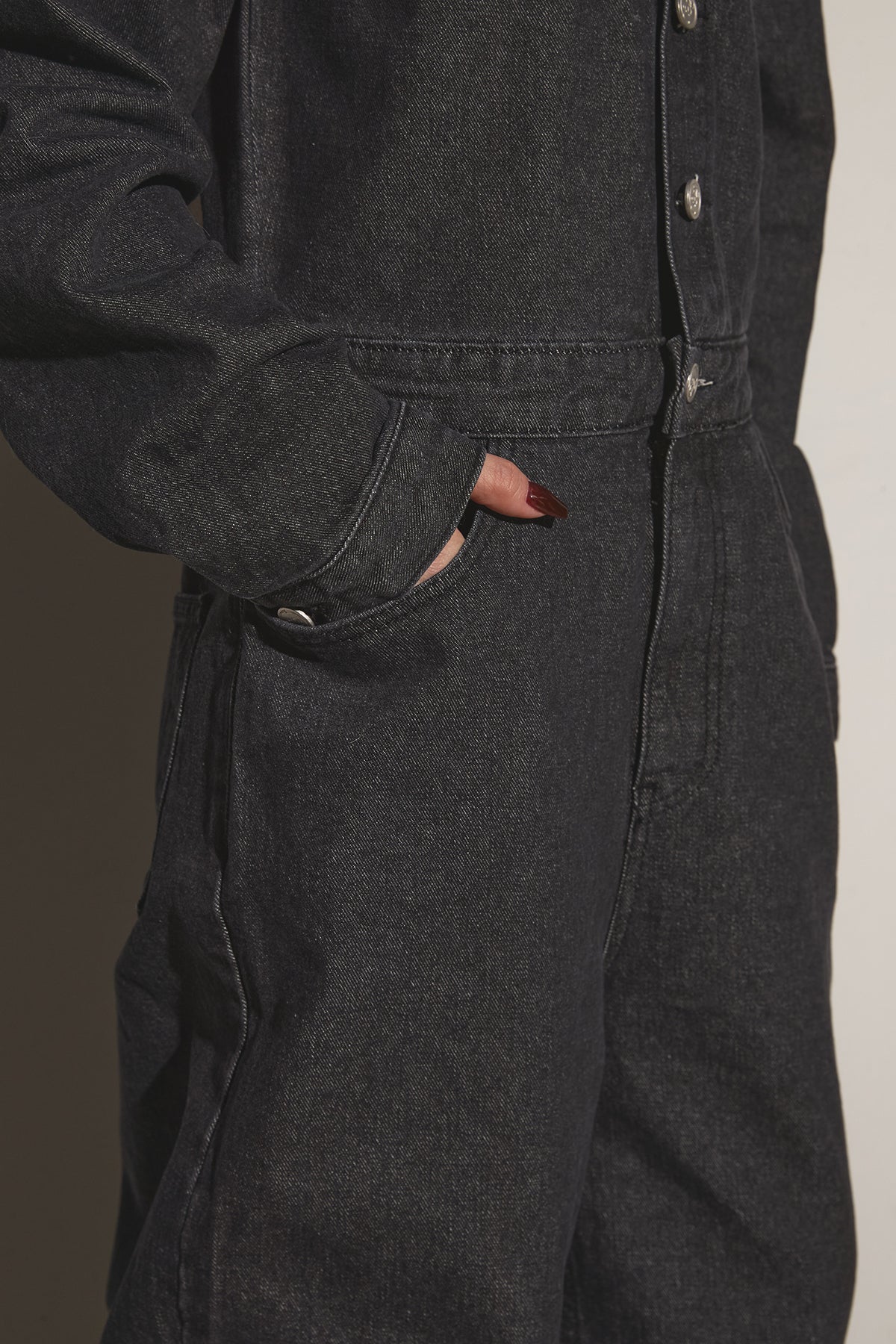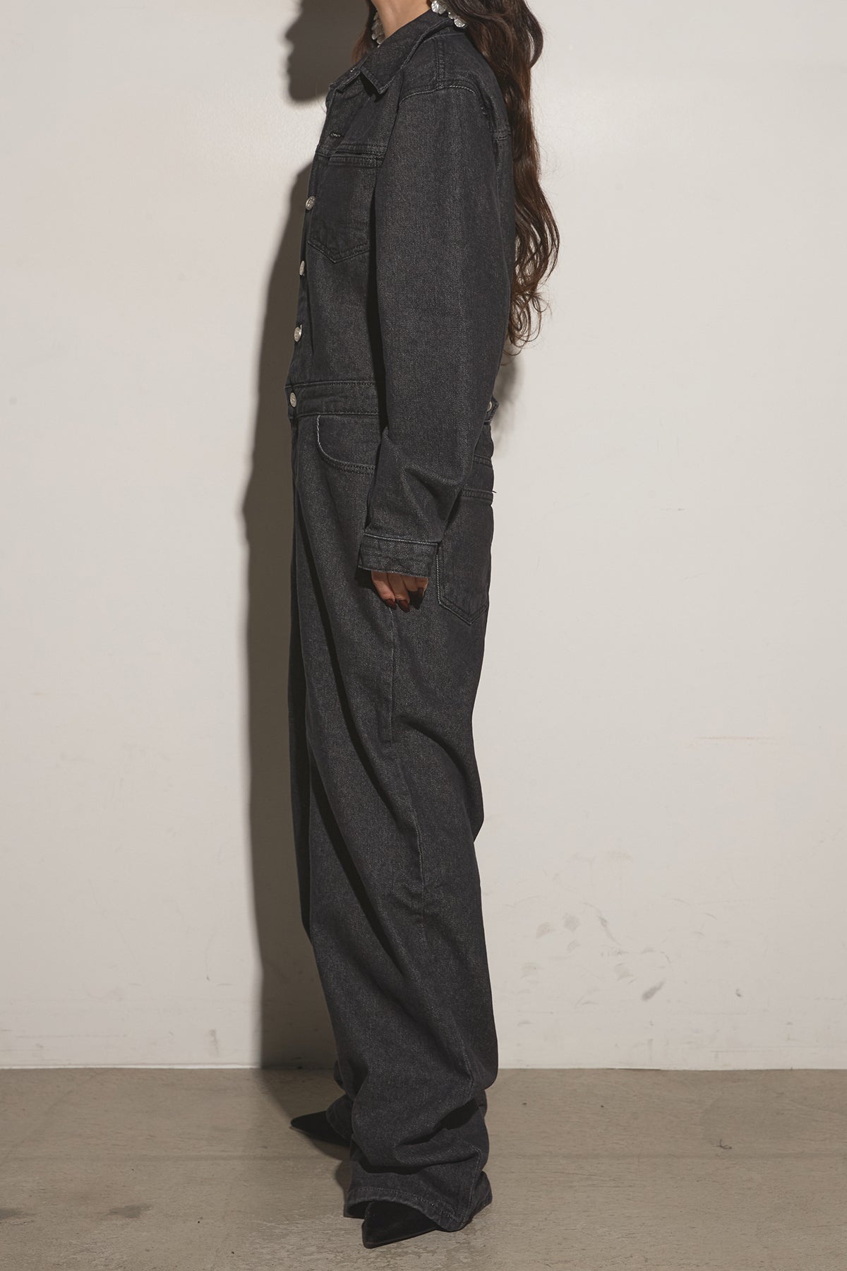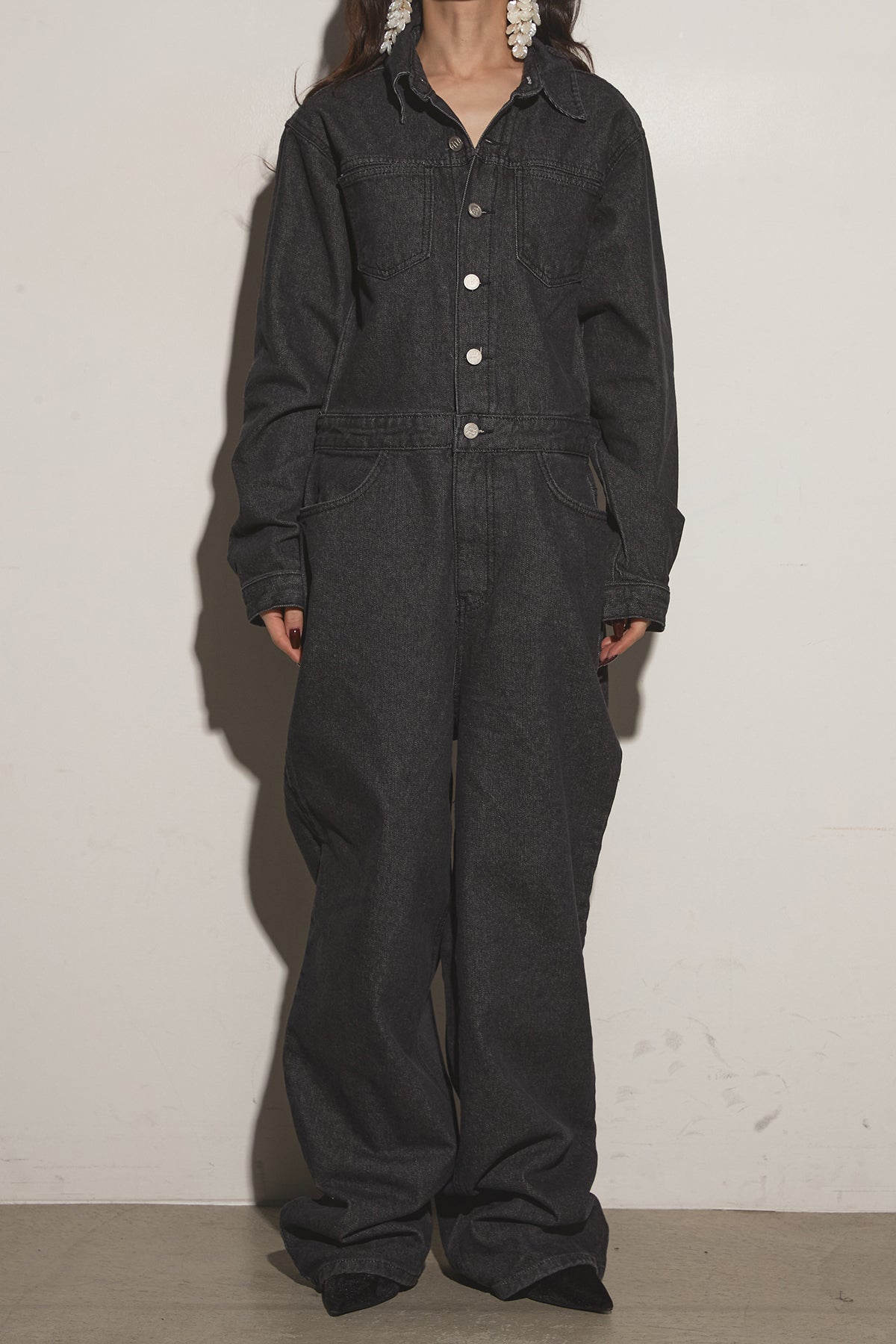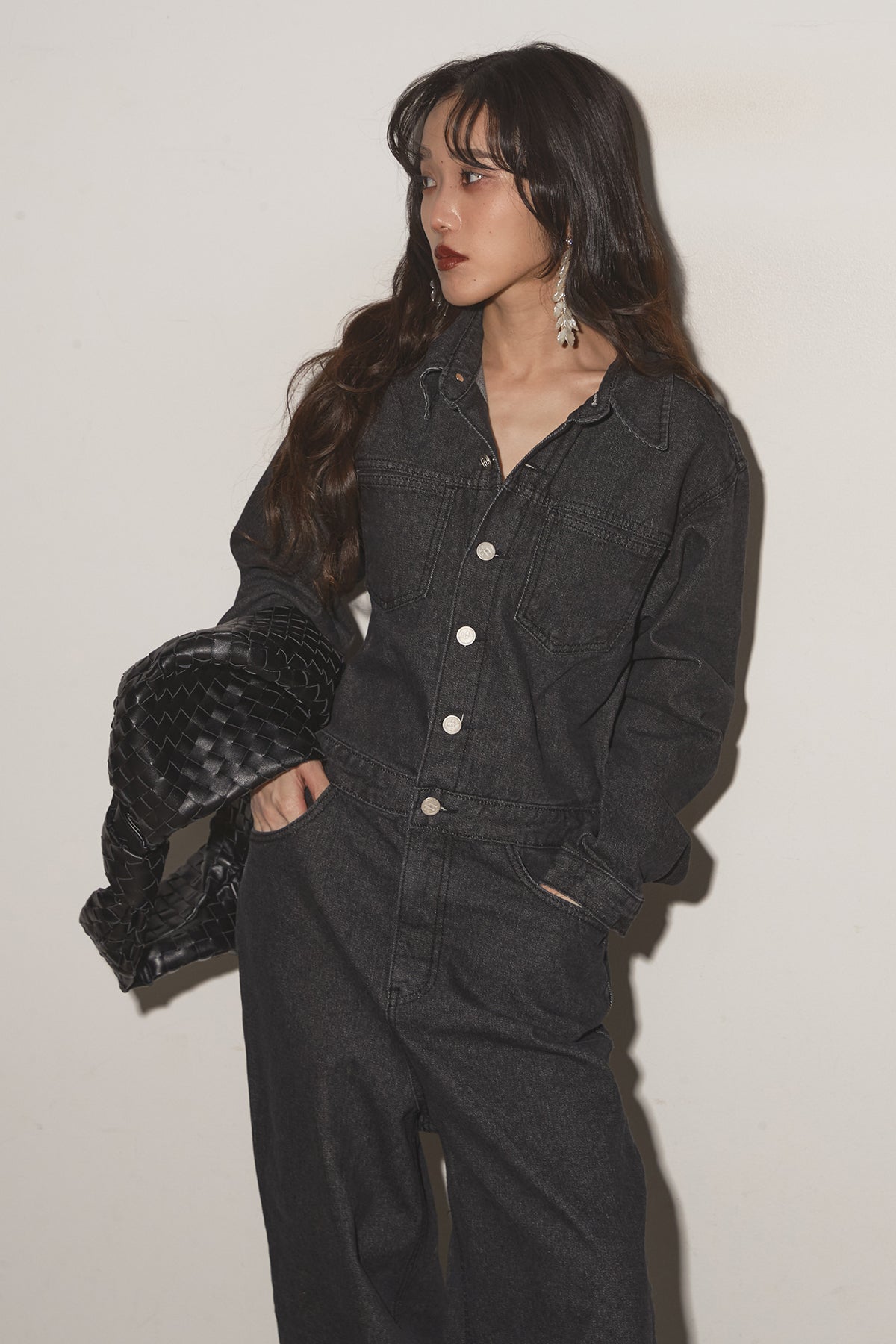 ワークテイストを品よく落とし込んだデニムオールインワン。フロントボタンで着脱しやすく、胸元のポケットや切替ラインが程よいアクセントに。ゆったりとしたシルエットとワイドなレッグでこなれ感が出て、1枚でコーデが完成します。
