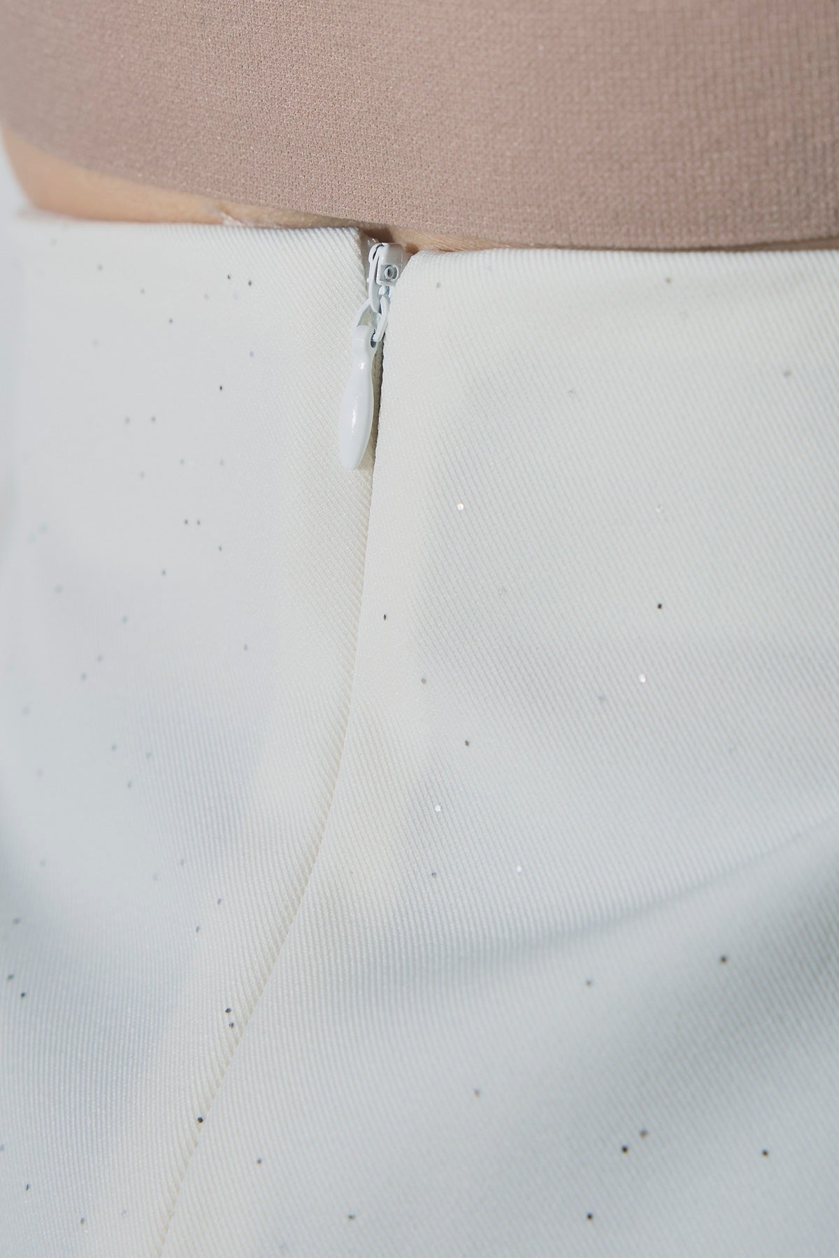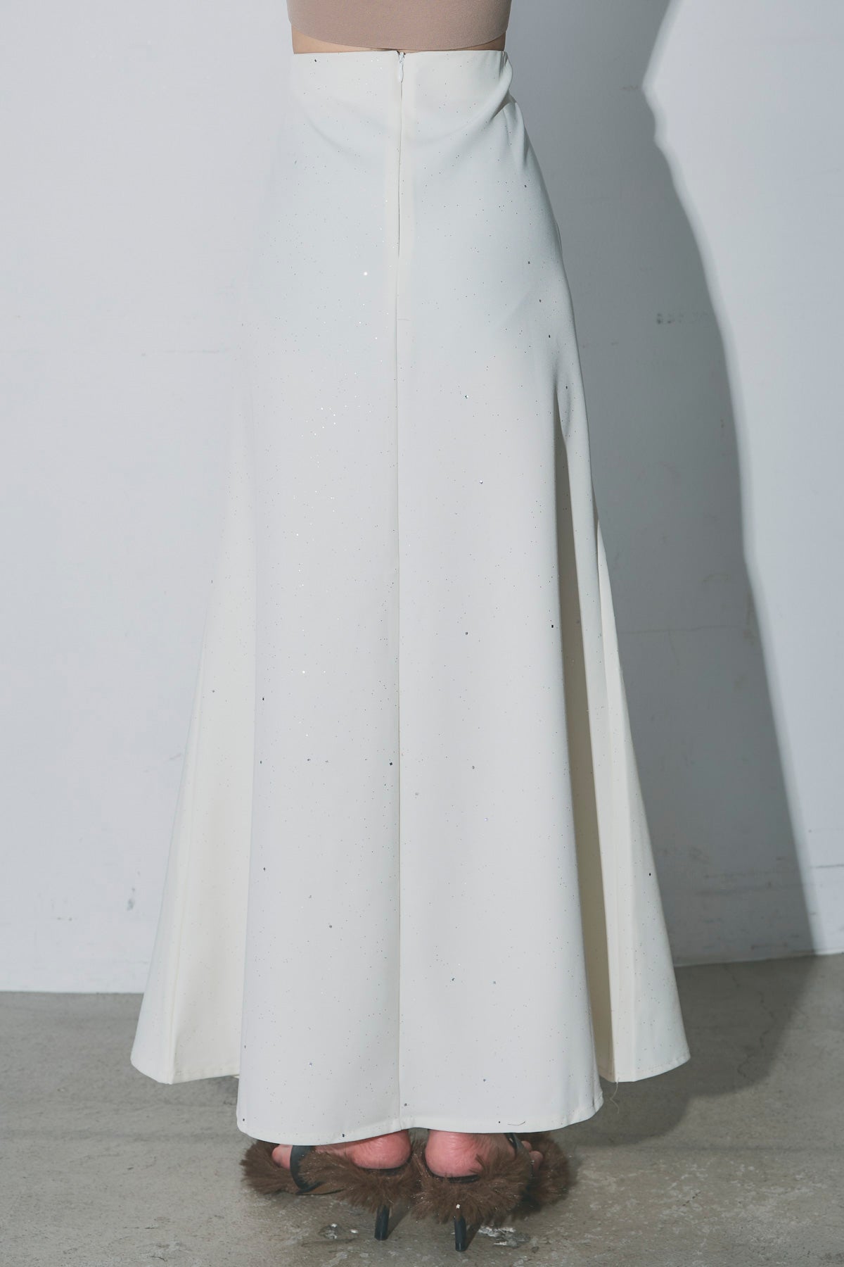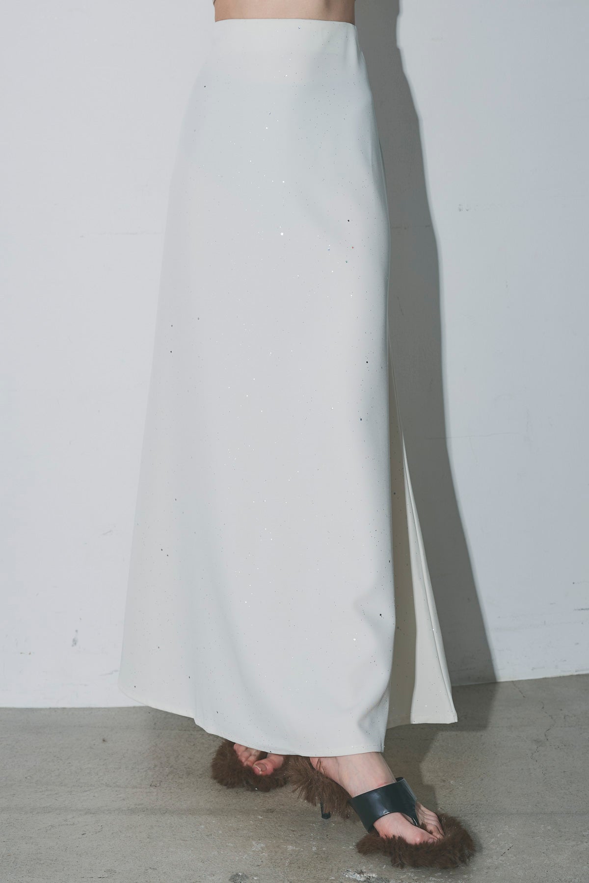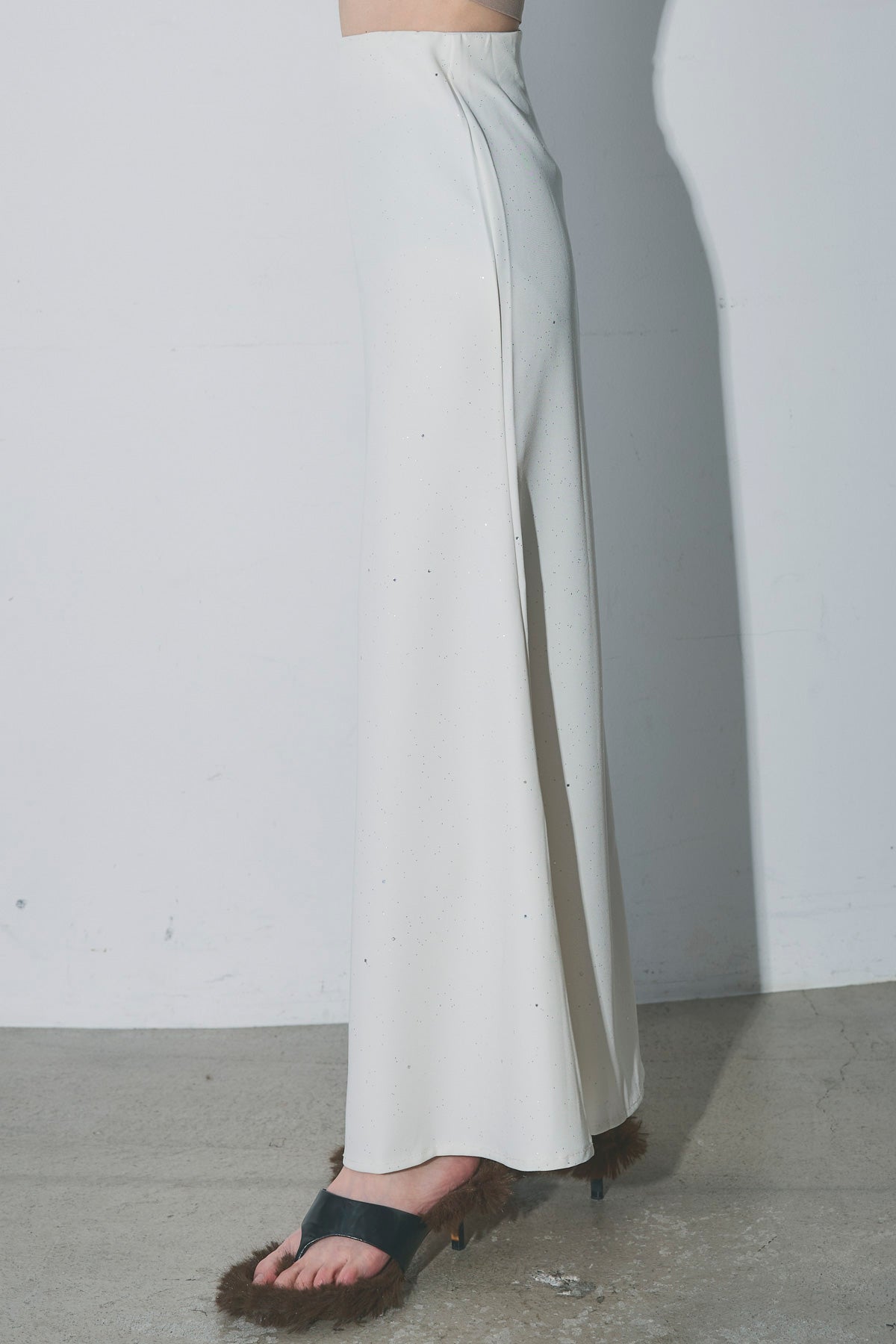 ウエストからヒップにかけてのフィット感が美しいマーメイドスカート。裾に向かって広がるシルエットが女性らしさを引き立てます。ビジューのさりげない装飾が、上品な華やかさをプラス。シンプルなトップスと合わせても、洗練されたスタイルが完成します。