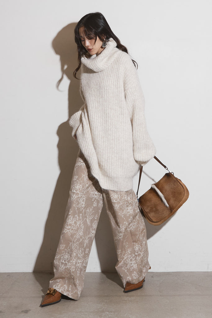 【SET】ペールウールコート+クロップドプリントプルオーバー+バルーンフレアスカート