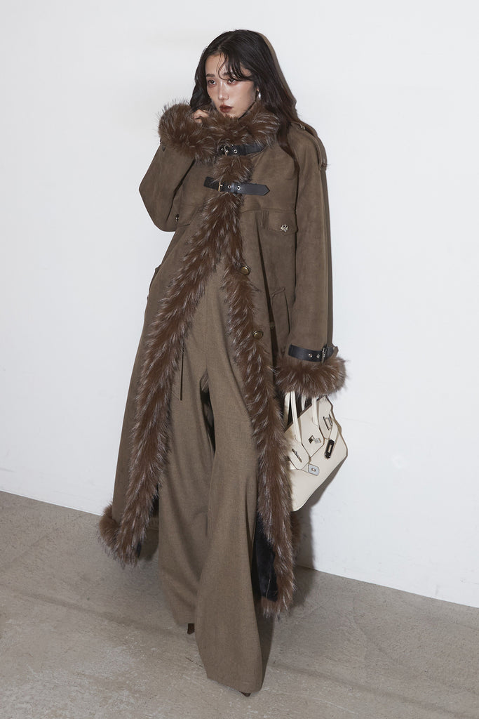 【SET】クロップドベルト付きベスト& ウエストスマートパンツ+Wファースエードロングコート