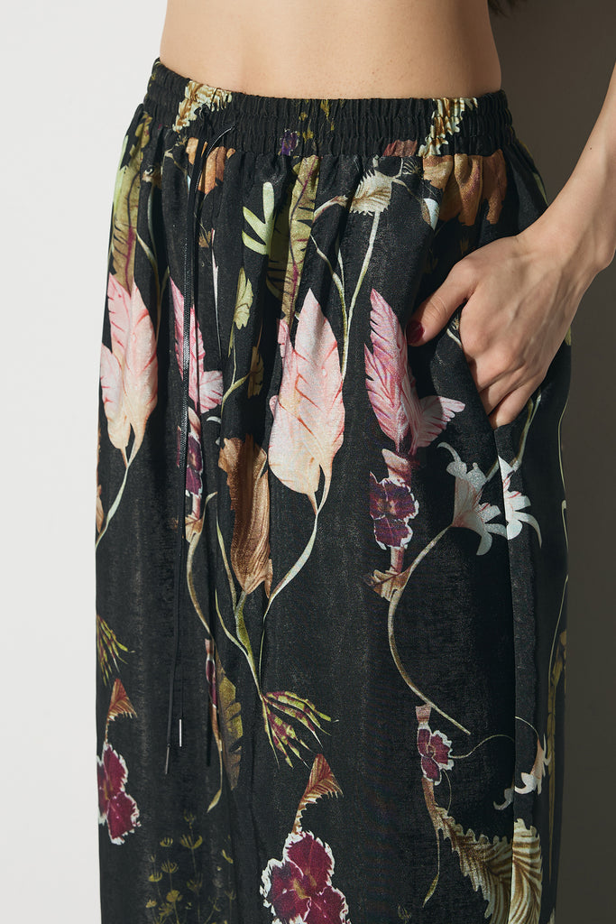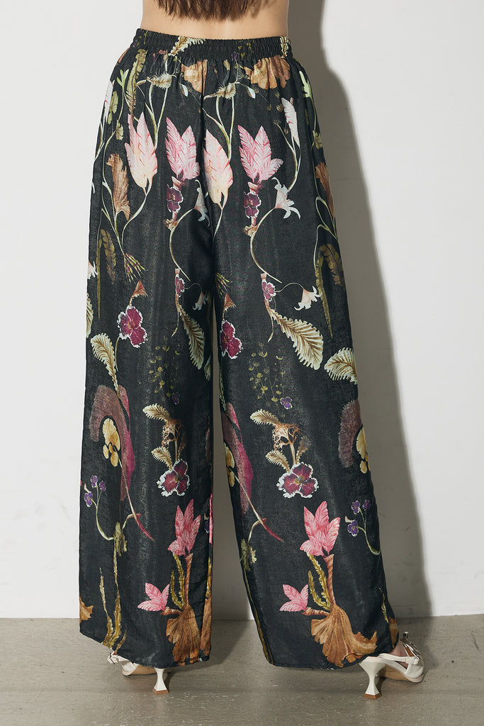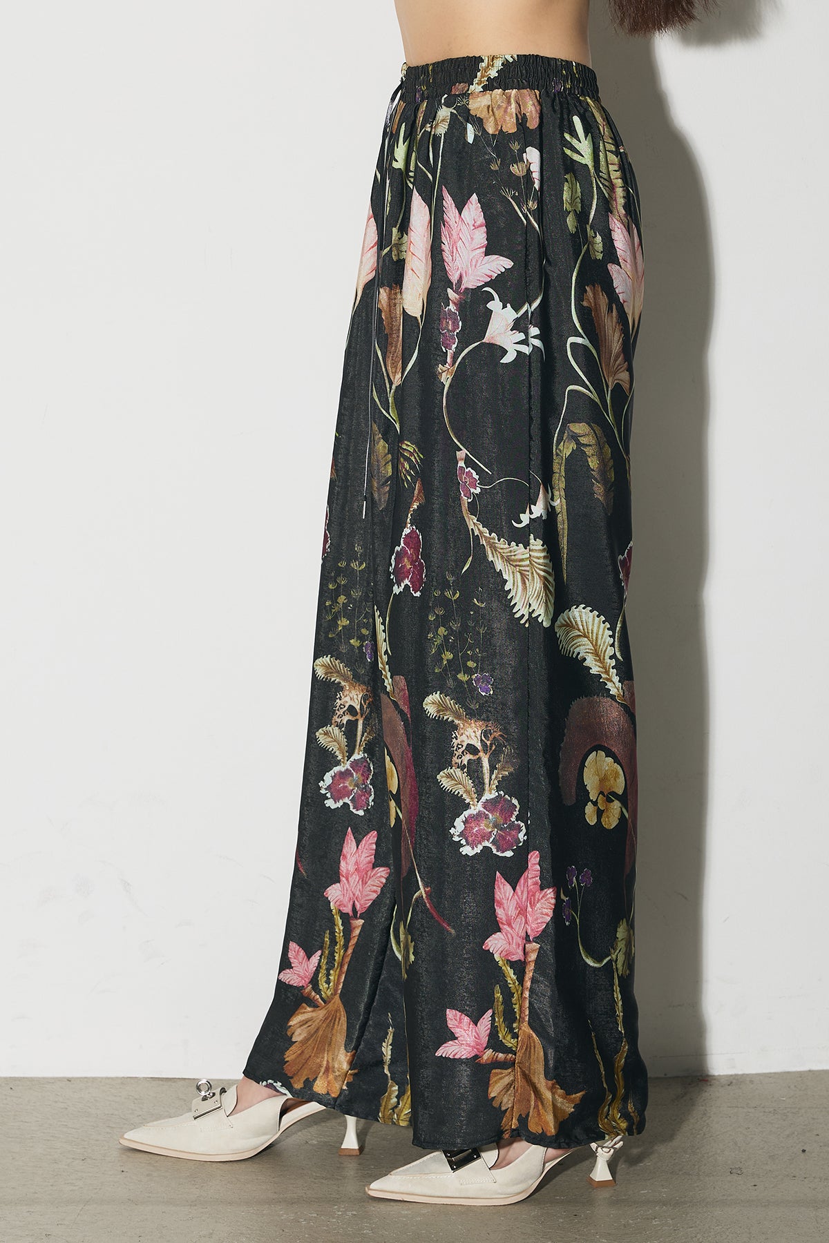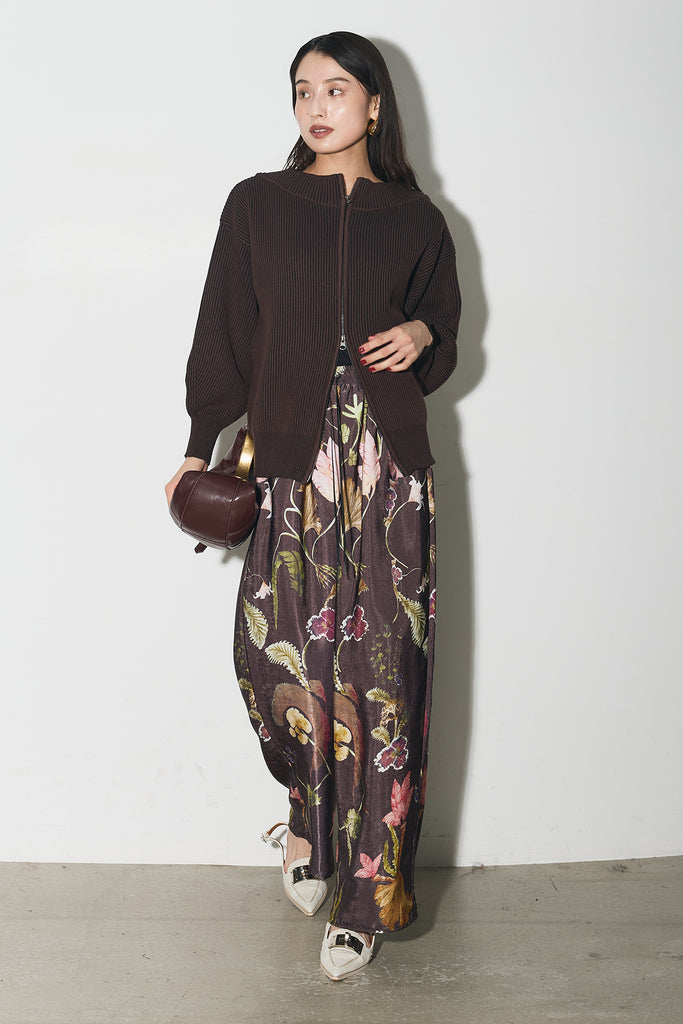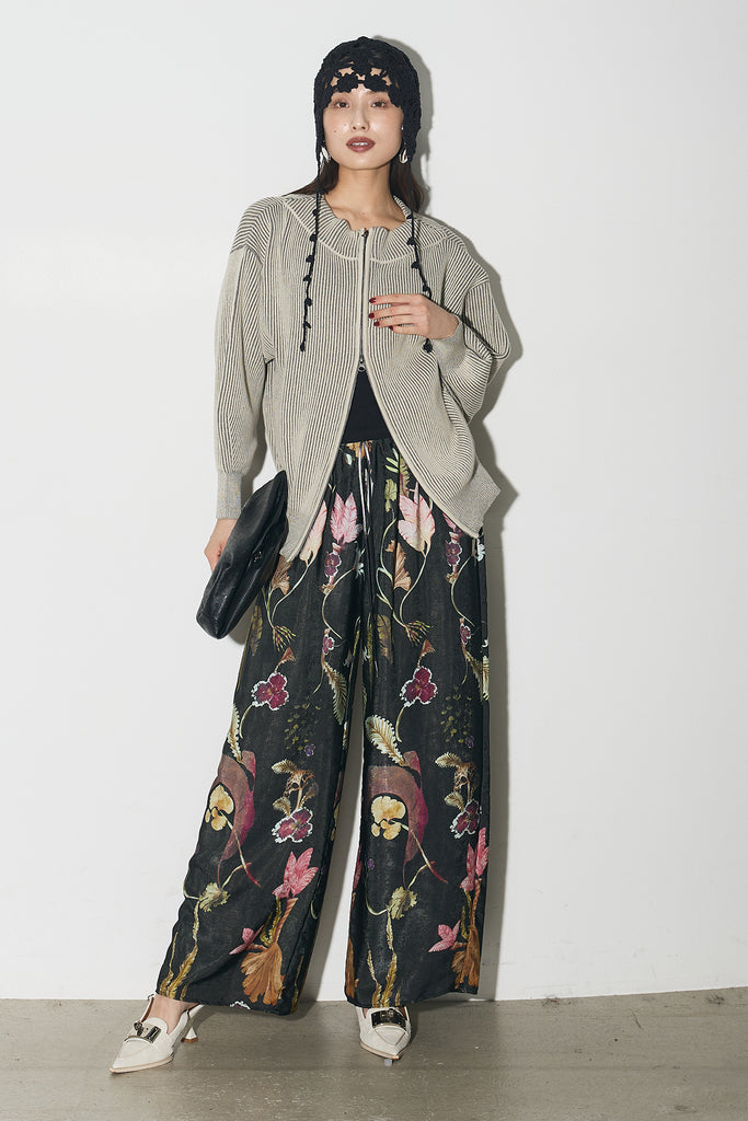 花柄が目を惹くリラックスムード漂うワイドパンツ。軽やかな素材感で動きやすく、スタイリングの主役になるアイテムです。シンプルなトップスと合わせるだけで華やかな印象に。