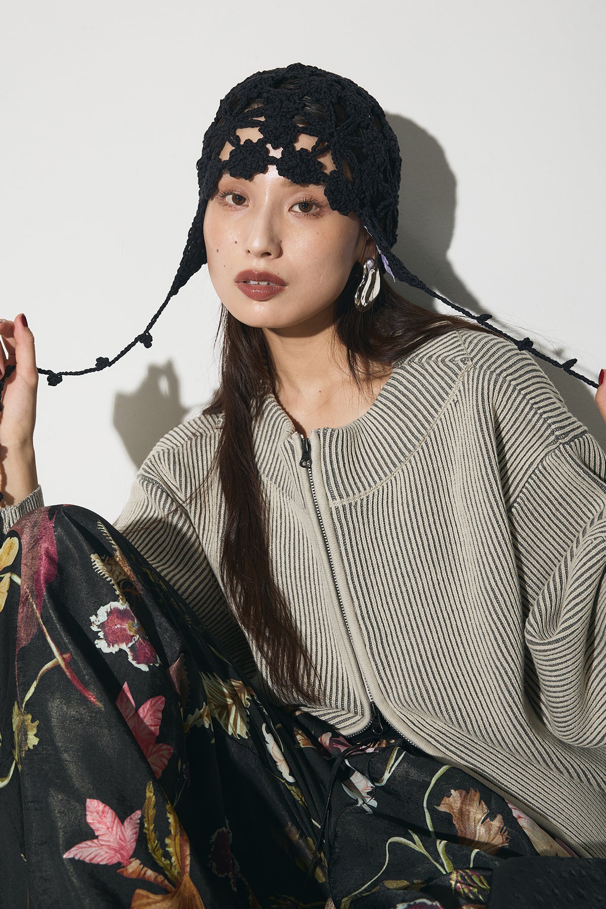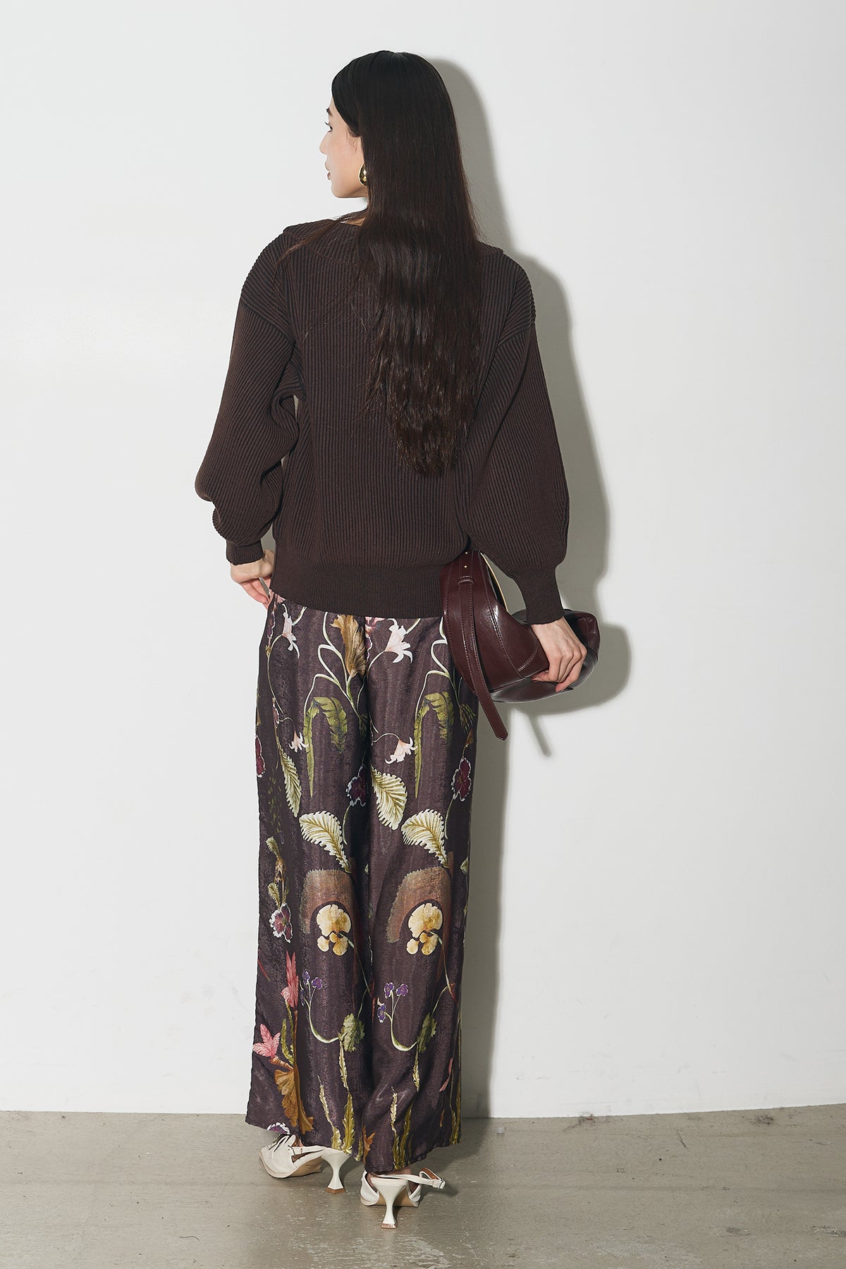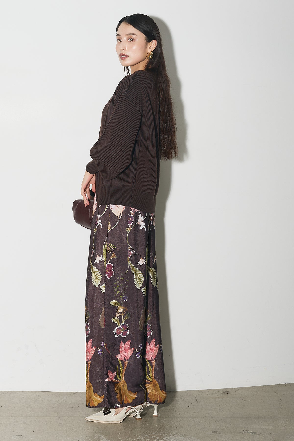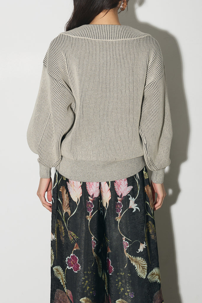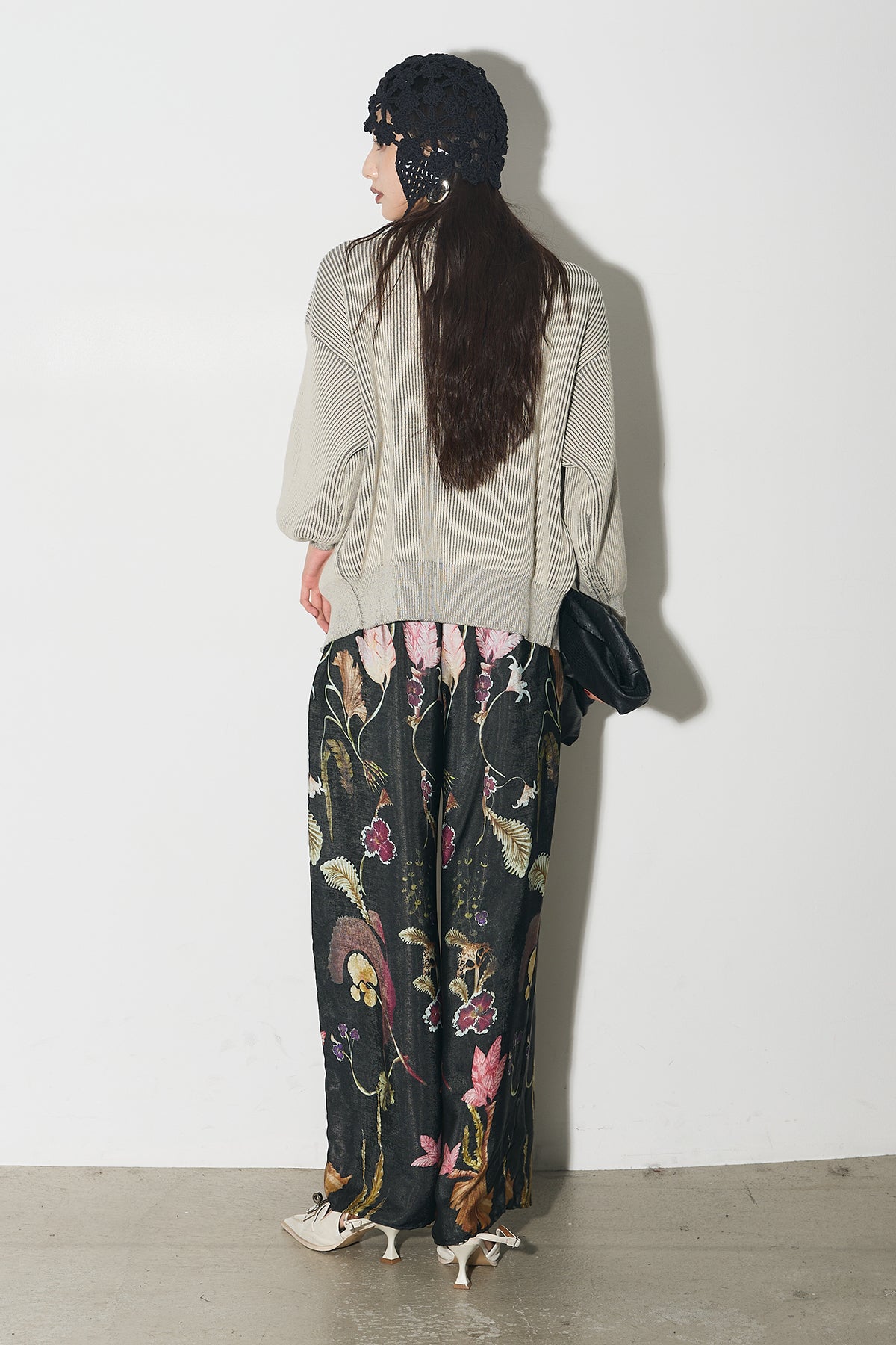 【SET】配色リブジップニット+ボタニカルリラックスパンツ