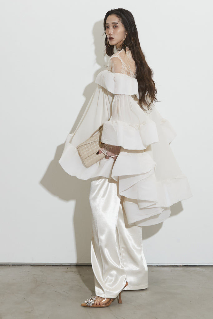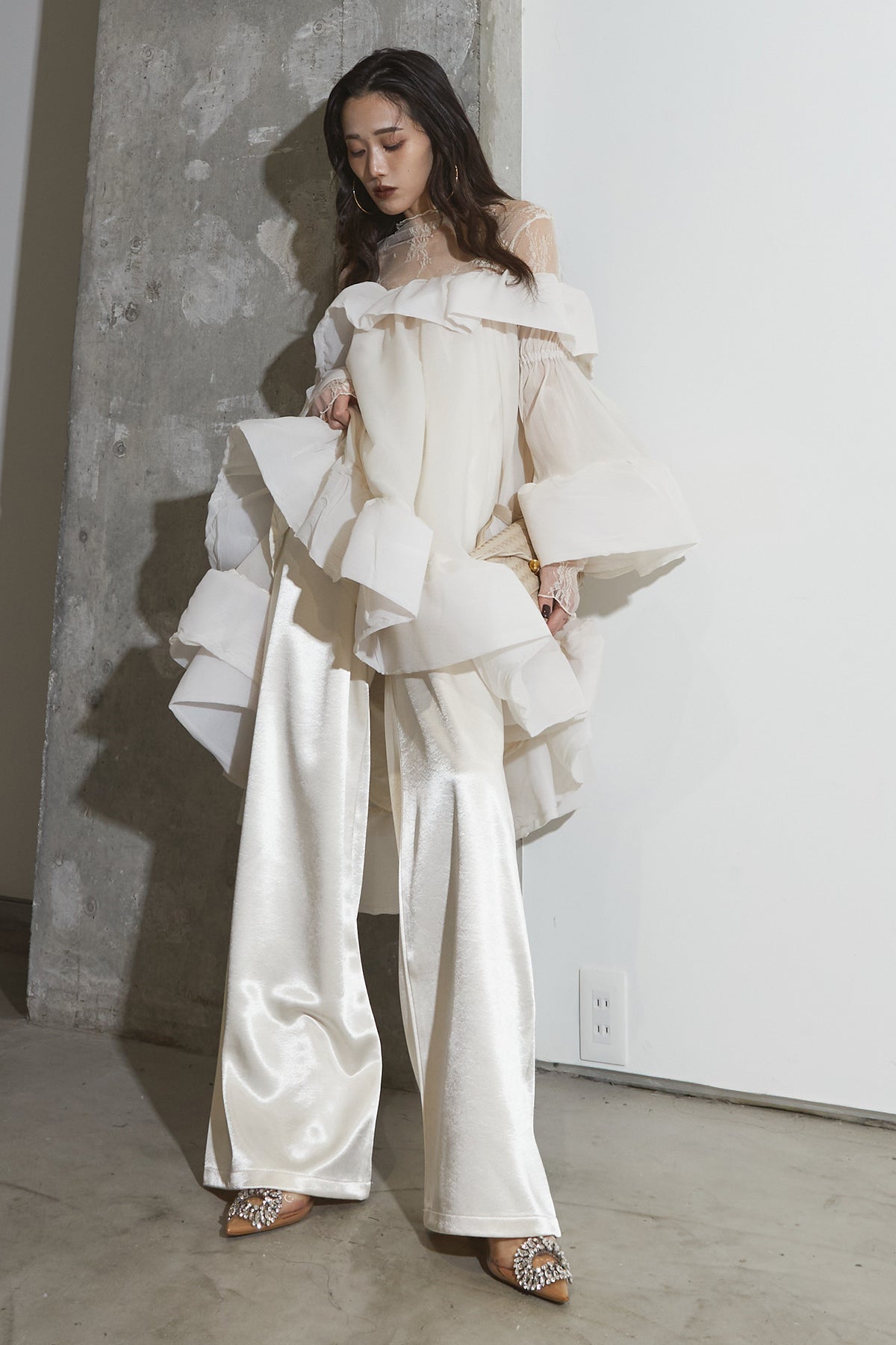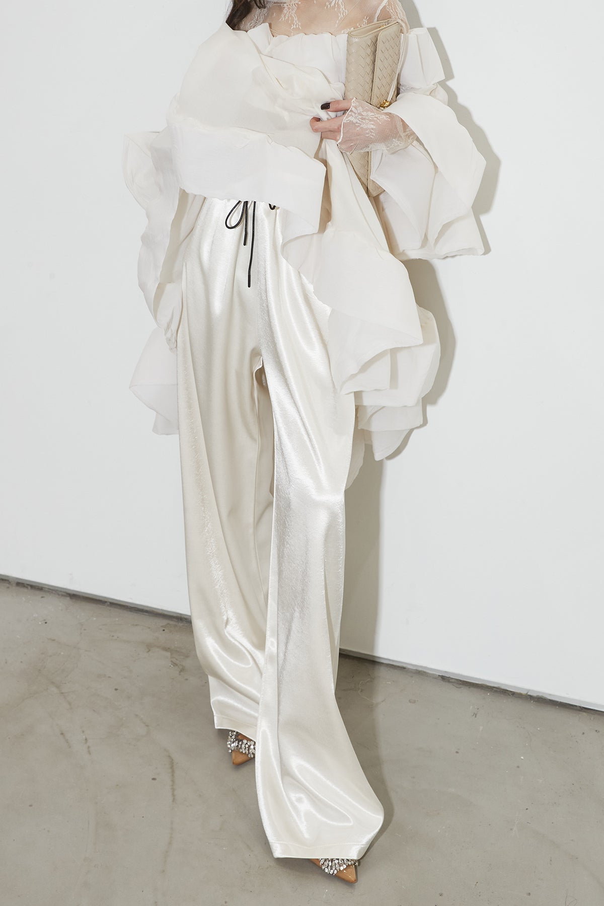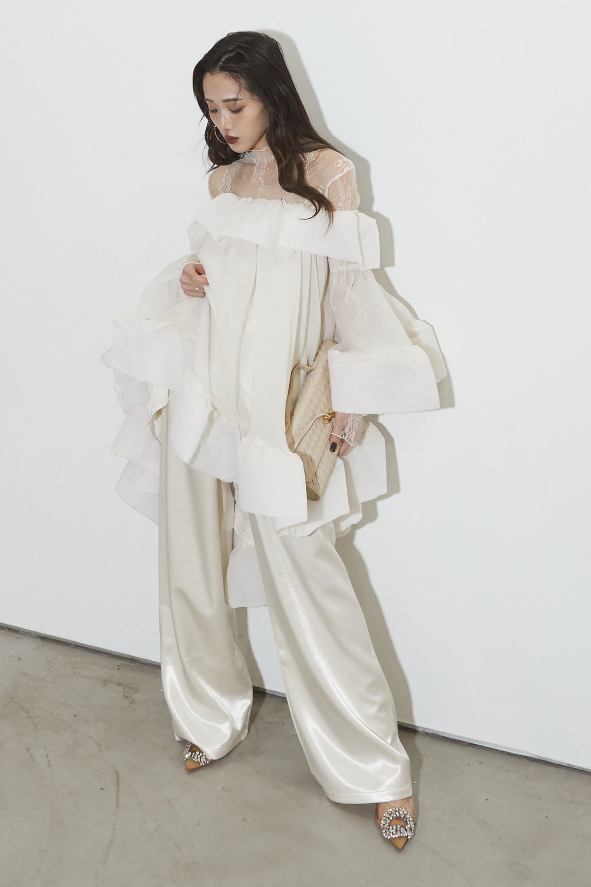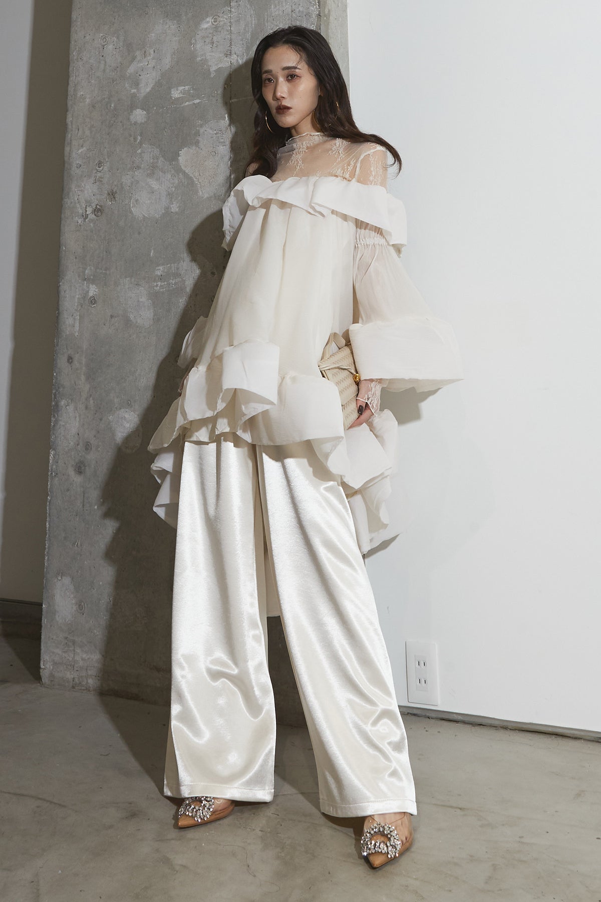 【SET】フリルオフショルチュニック+サテンコードパンツ
