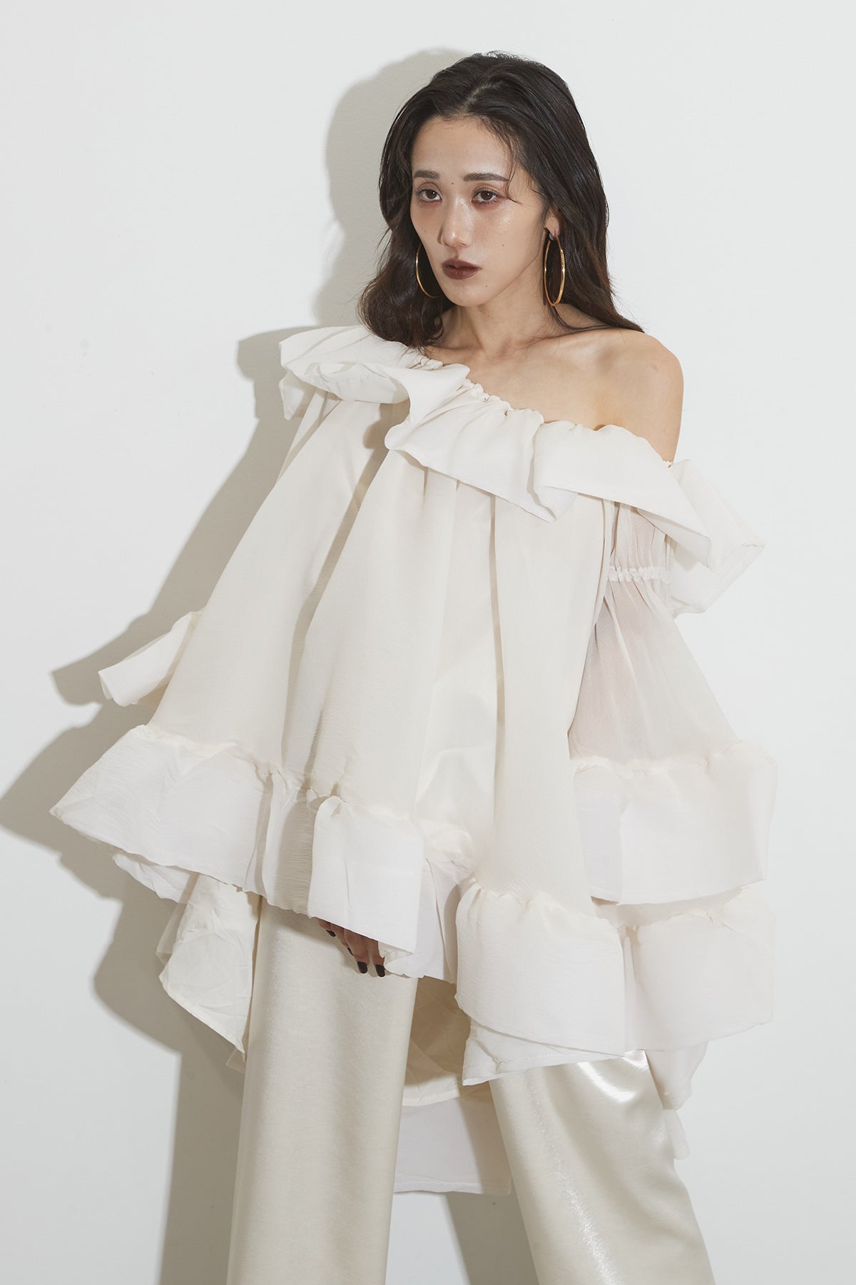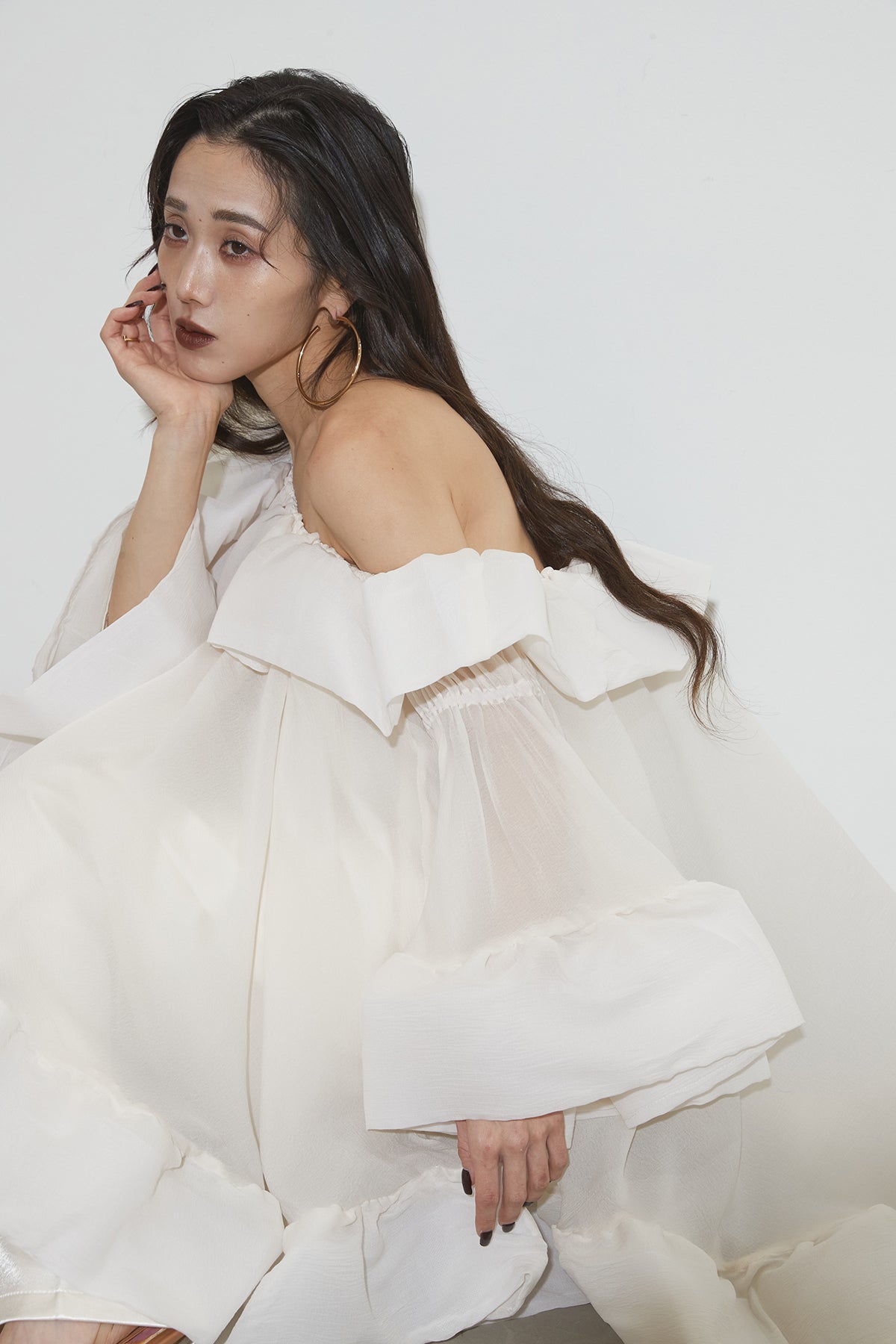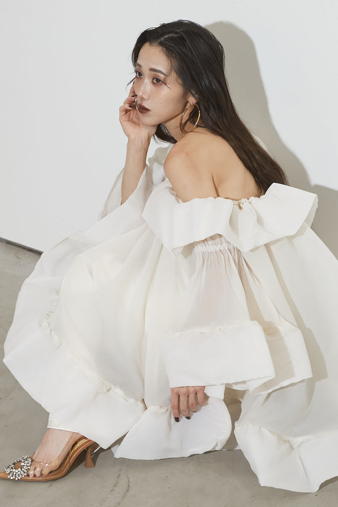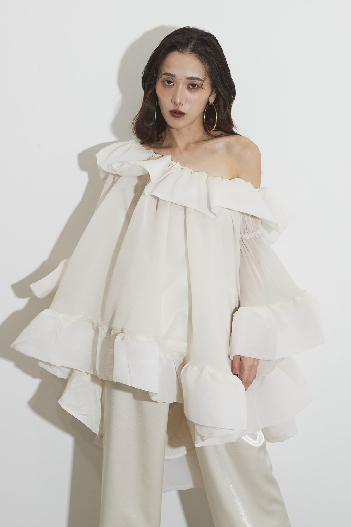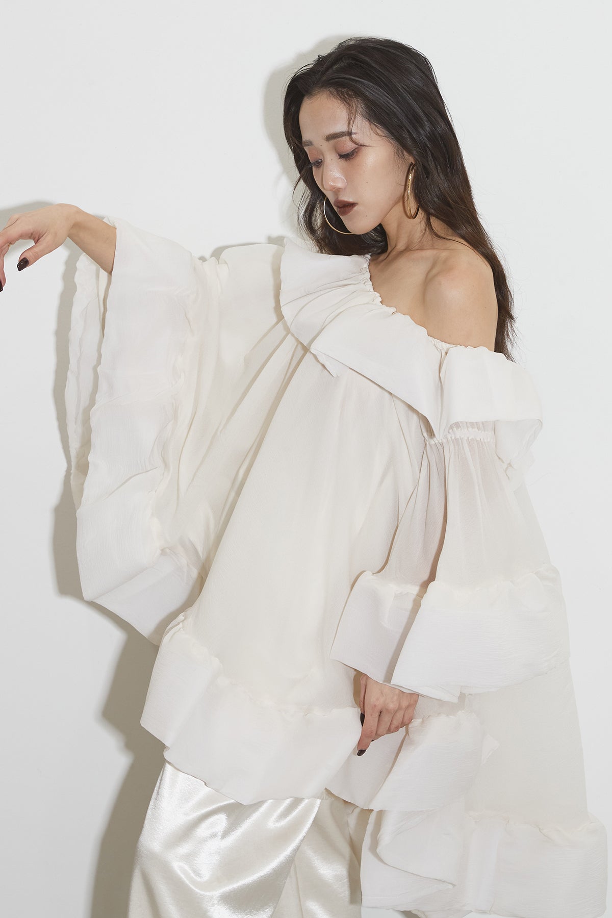 【SET】フリルオフショルチュニック+サテンコードパンツ