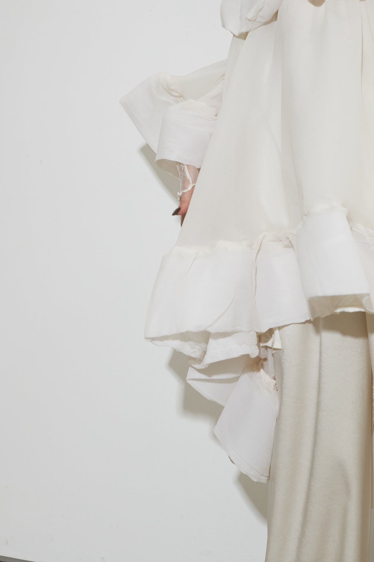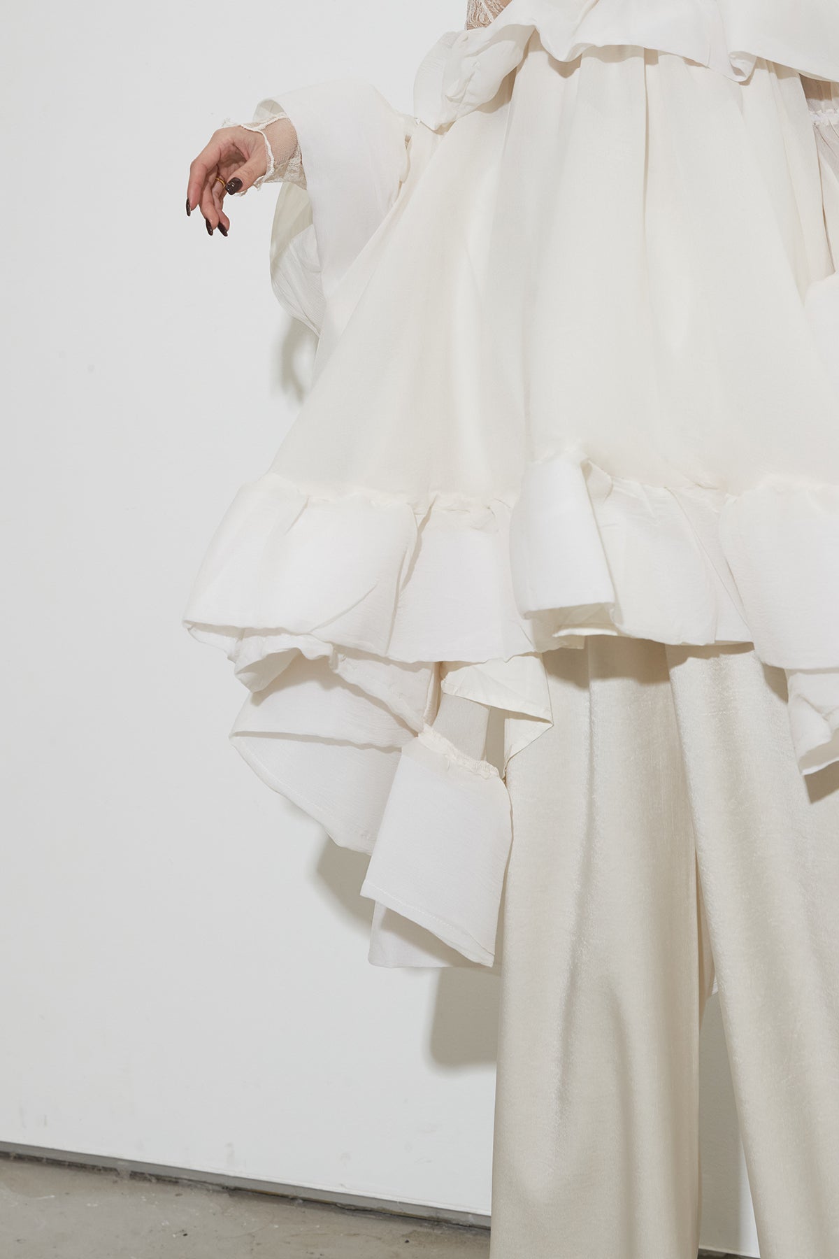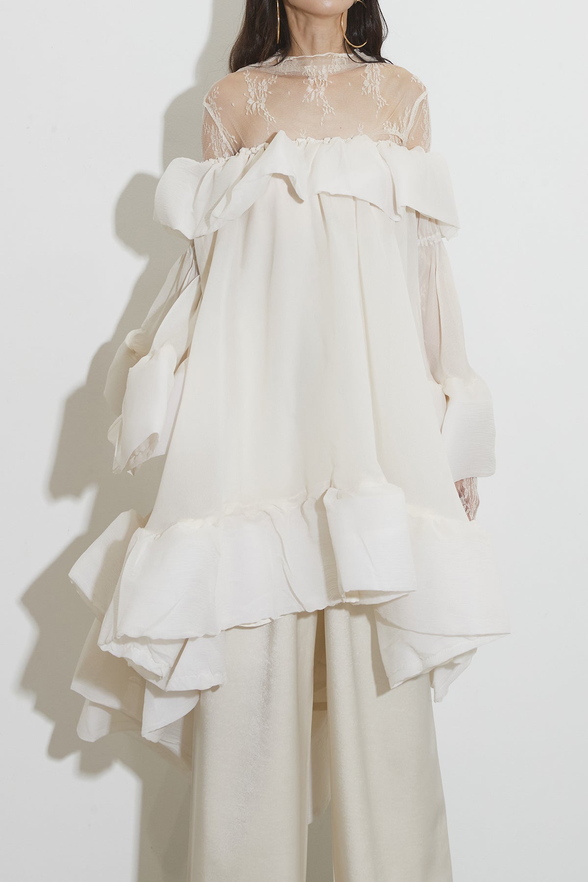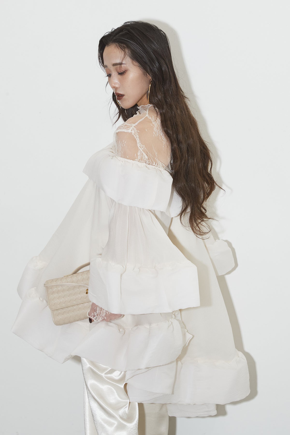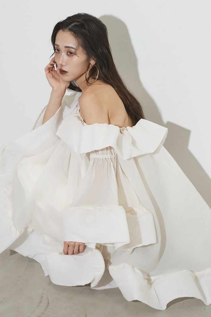 【SET】フリルオフショルチュニック+サテンコードパンツ