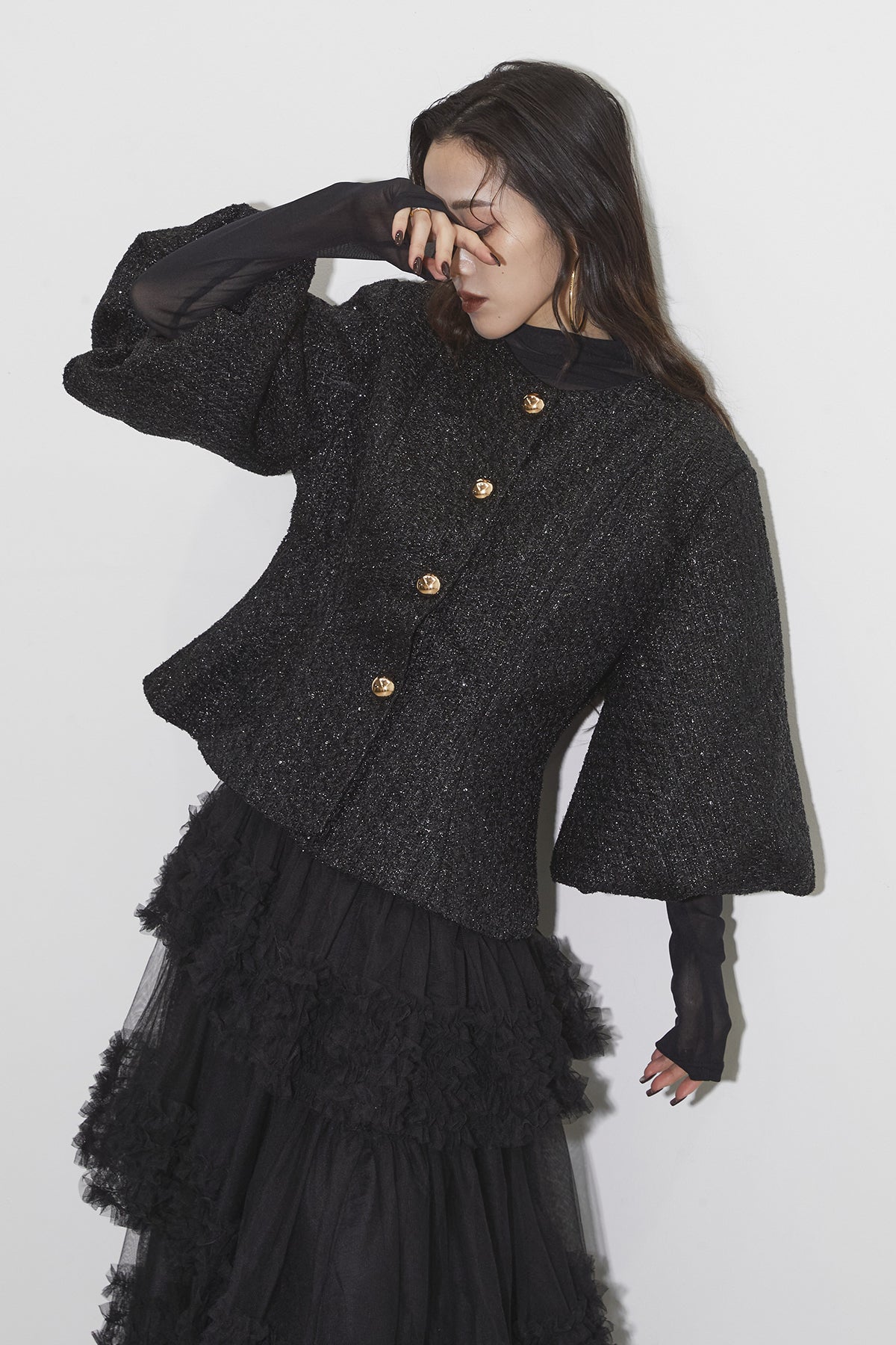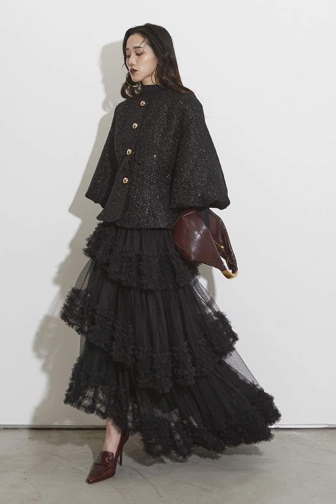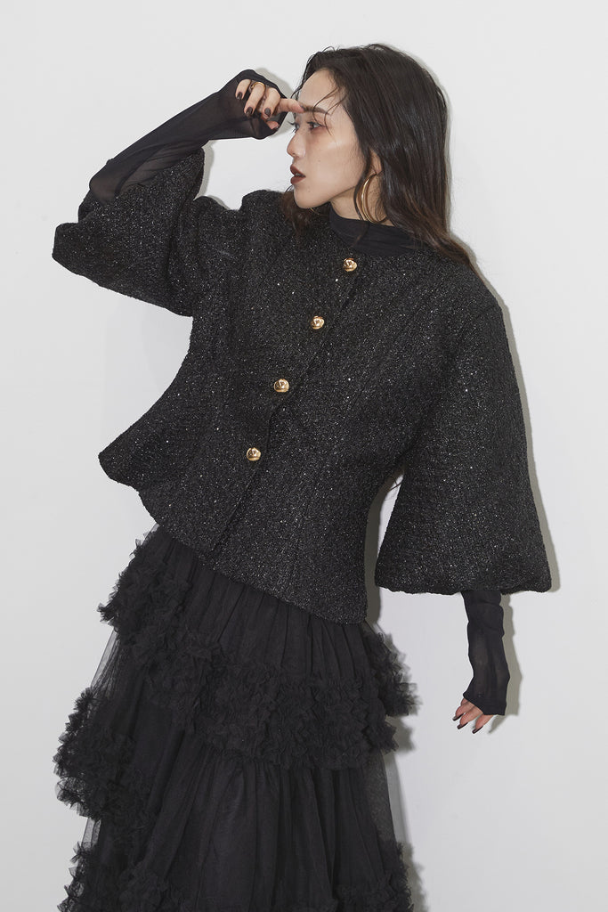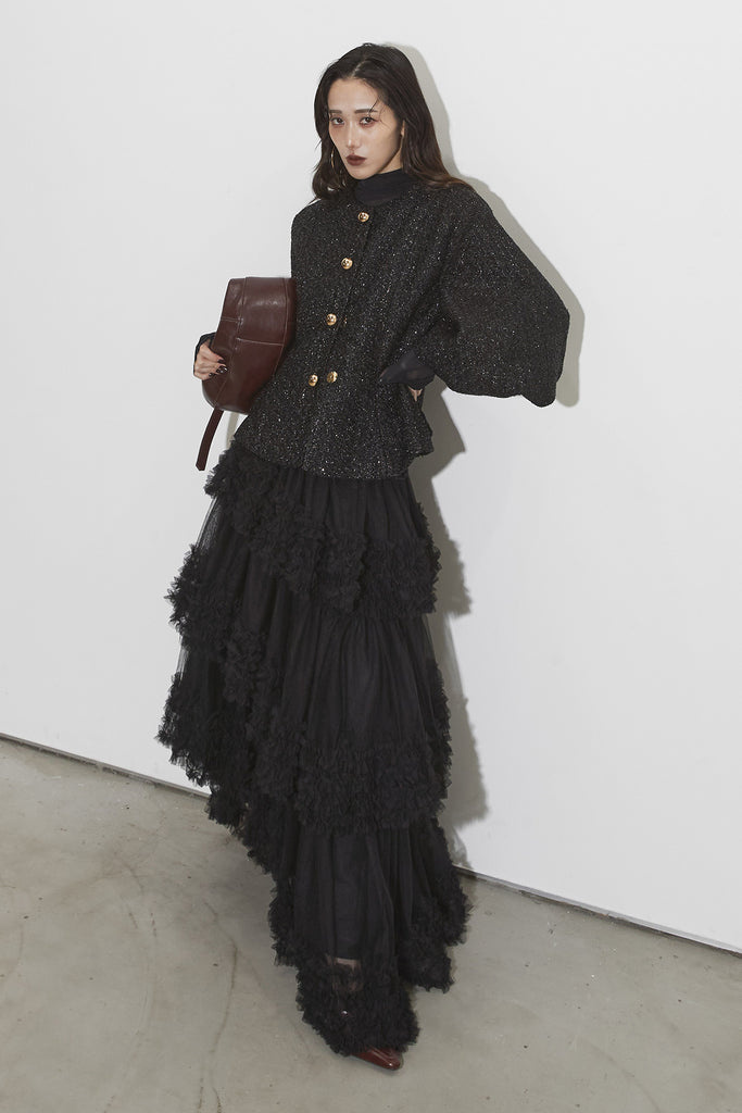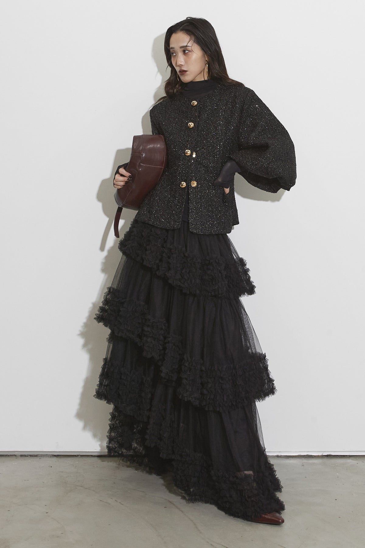 【SET】ツイードパフスリーブジャケット+チュールラインティアードスカート