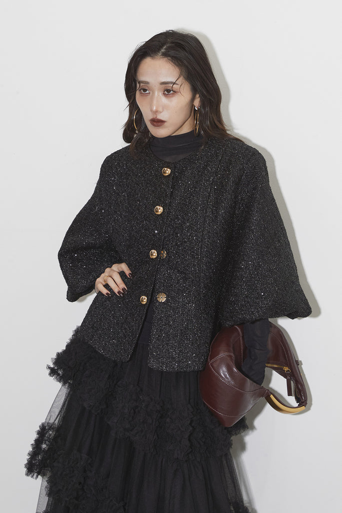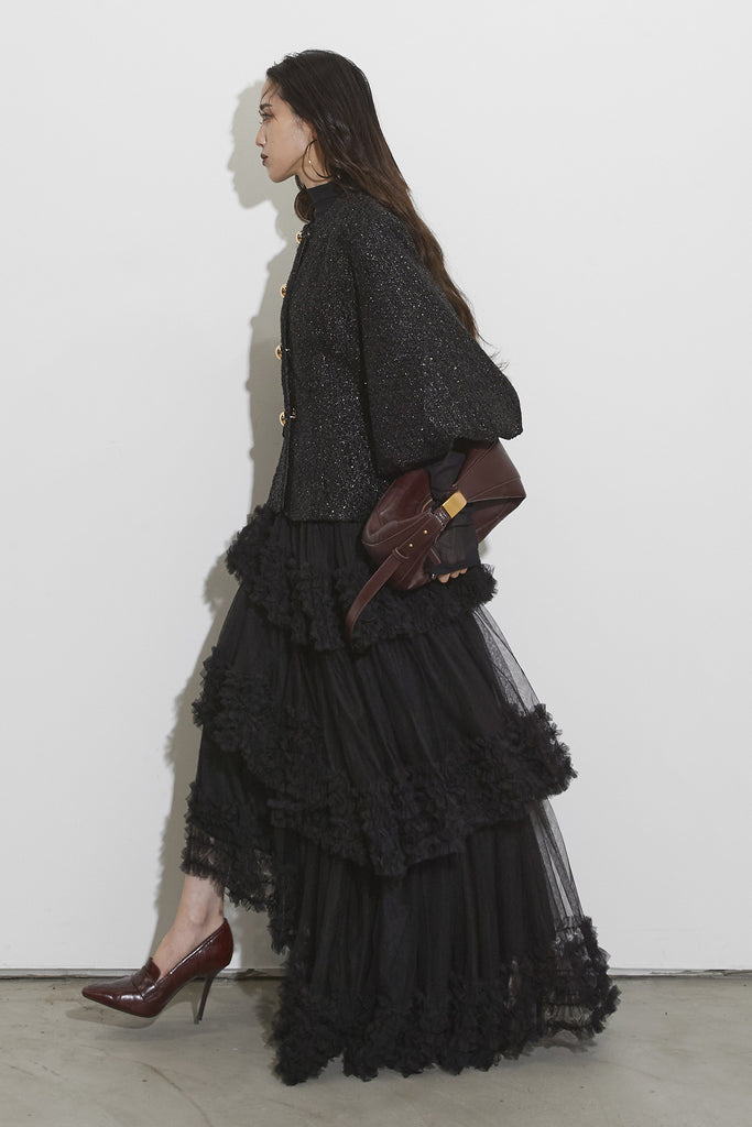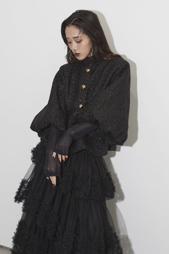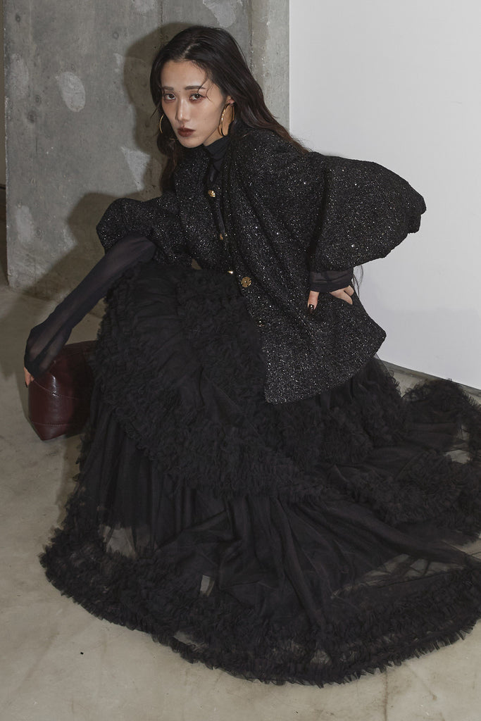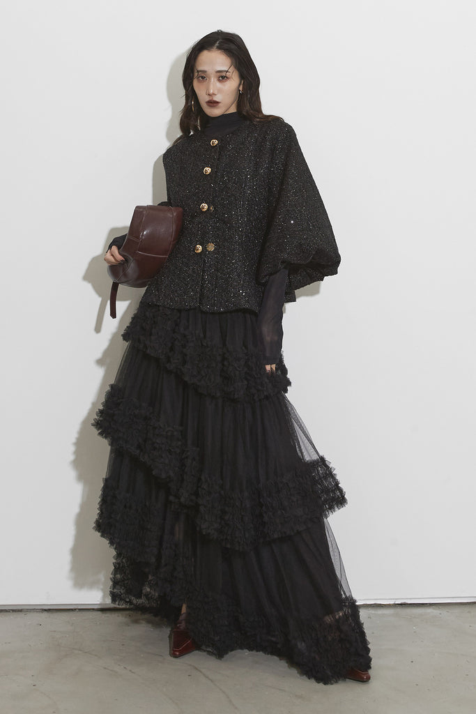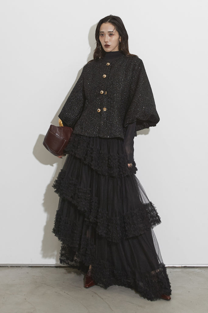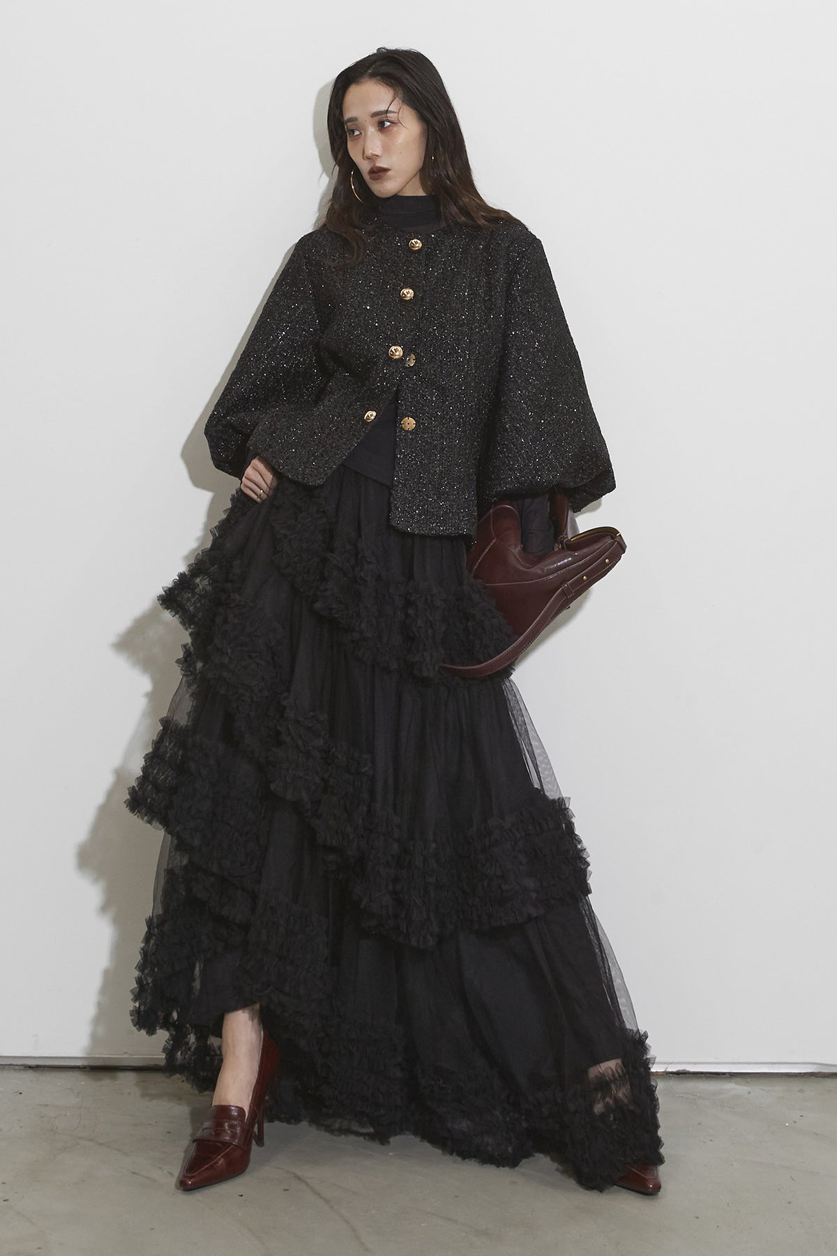 【SET】ツイードパフスリーブジャケット+チュールラインティアードスカート
