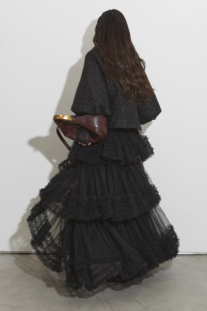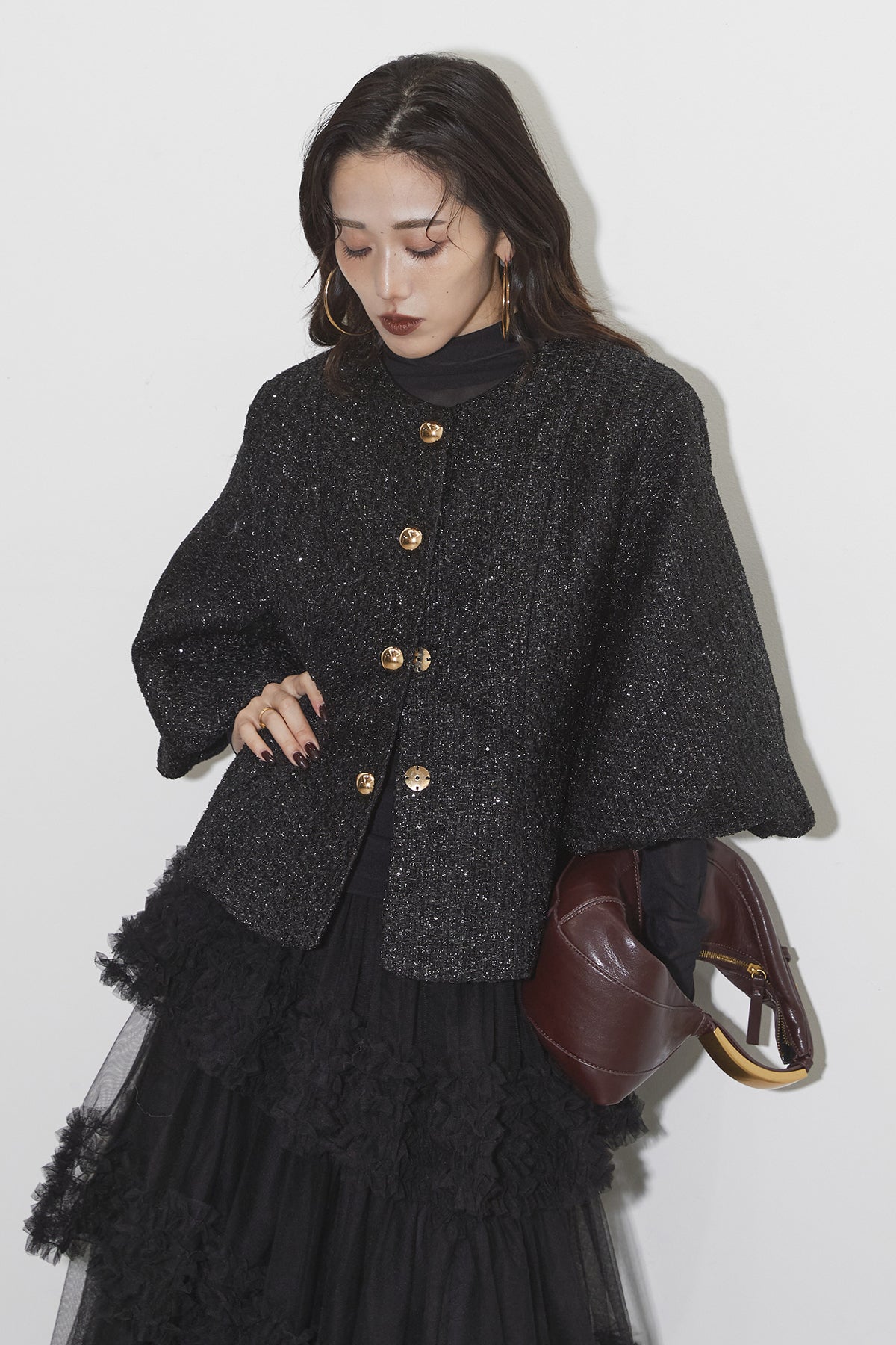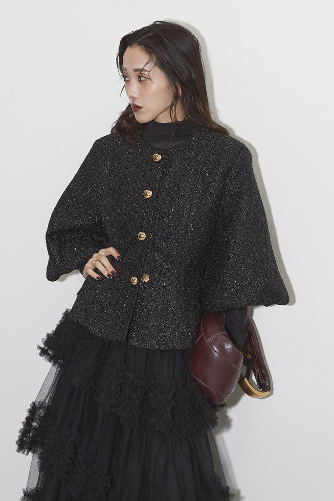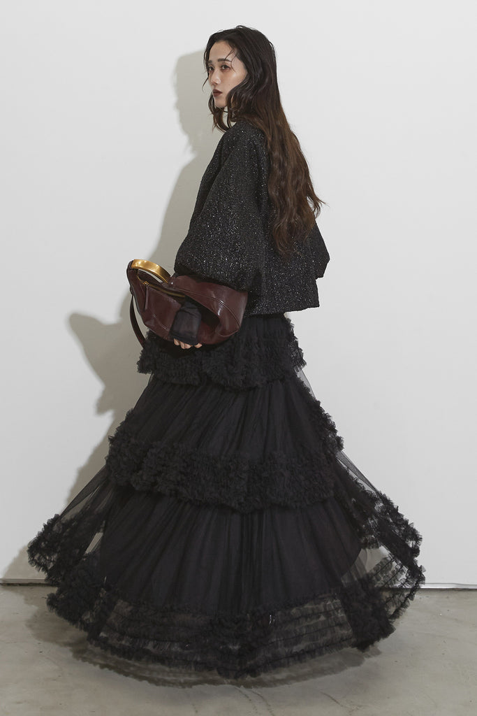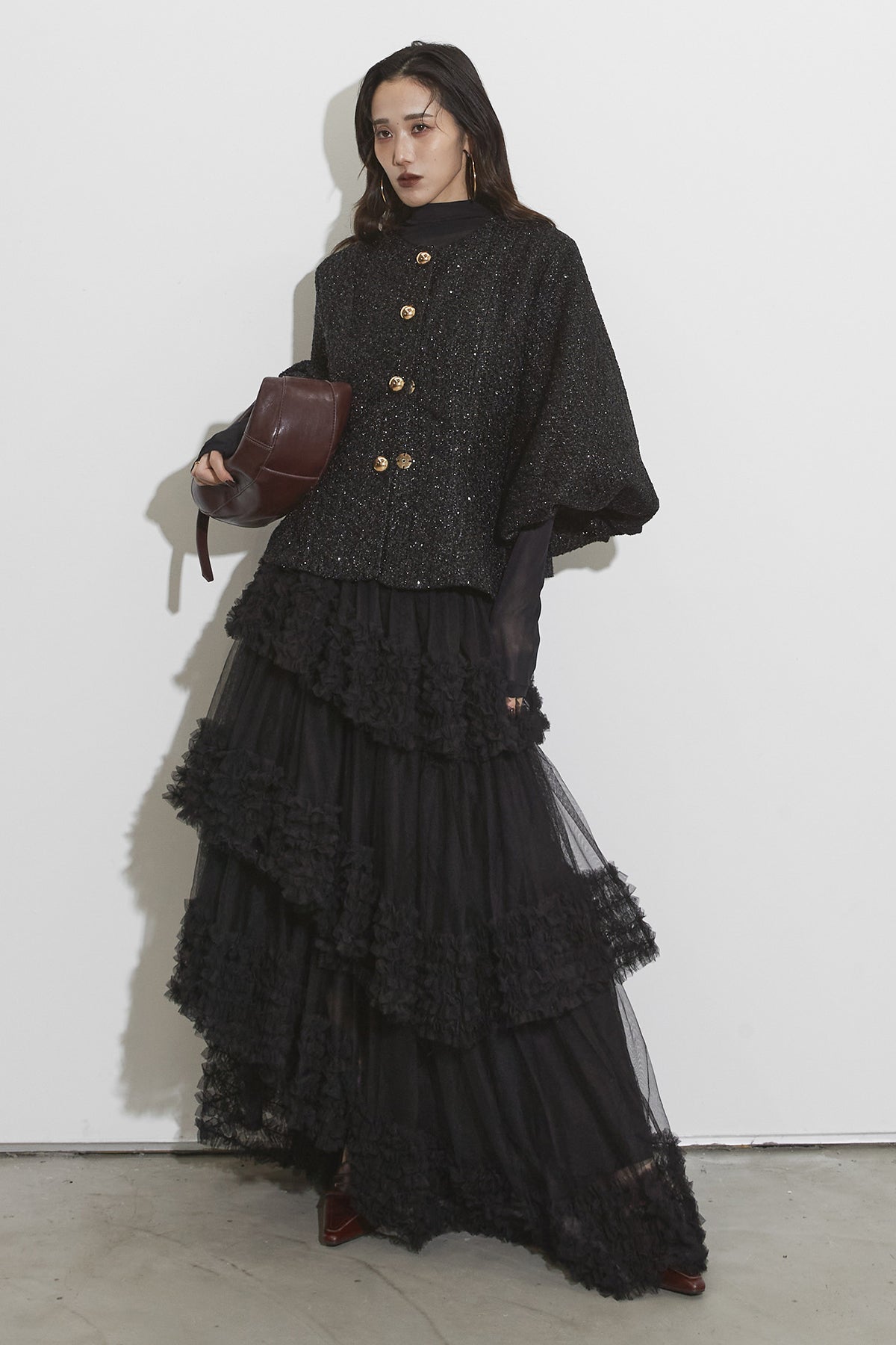 【SET】ツイードパフスリーブジャケット+チュールラインティアードスカート