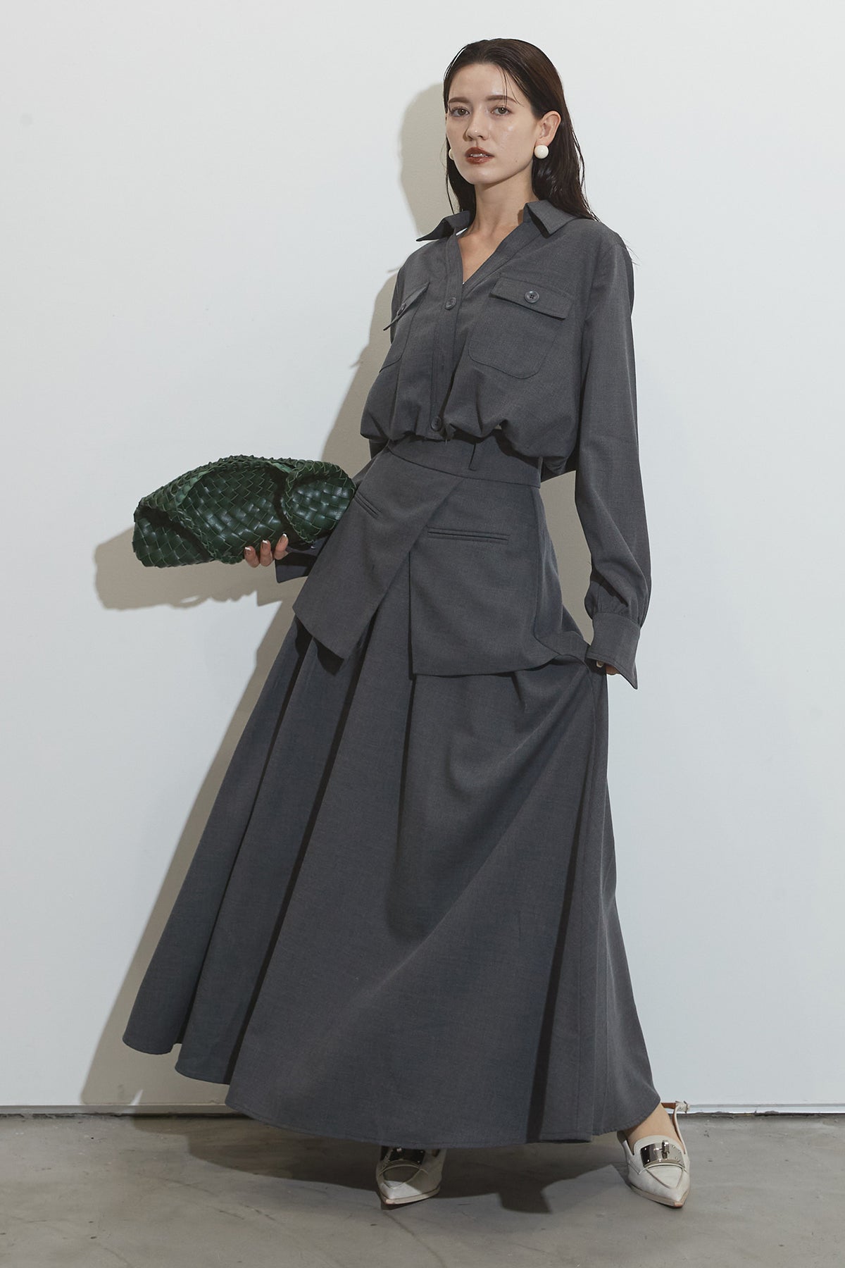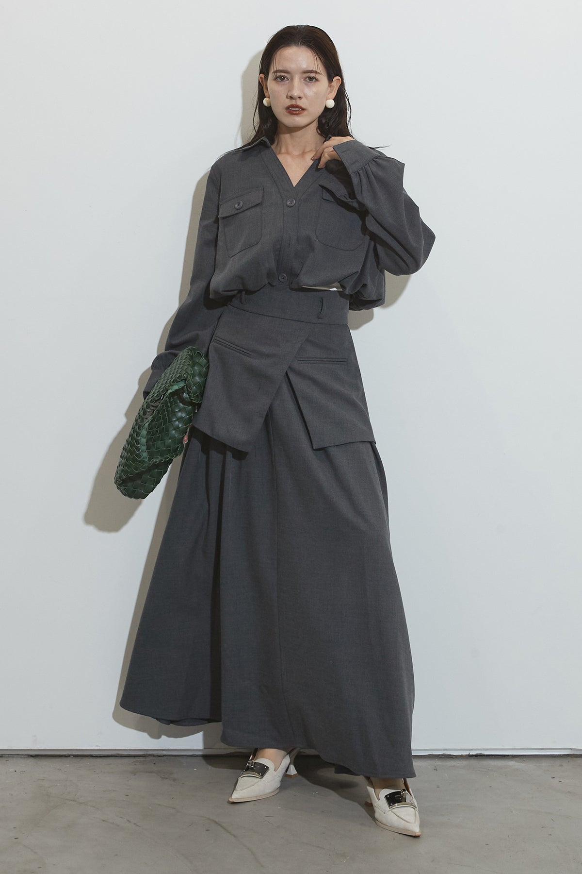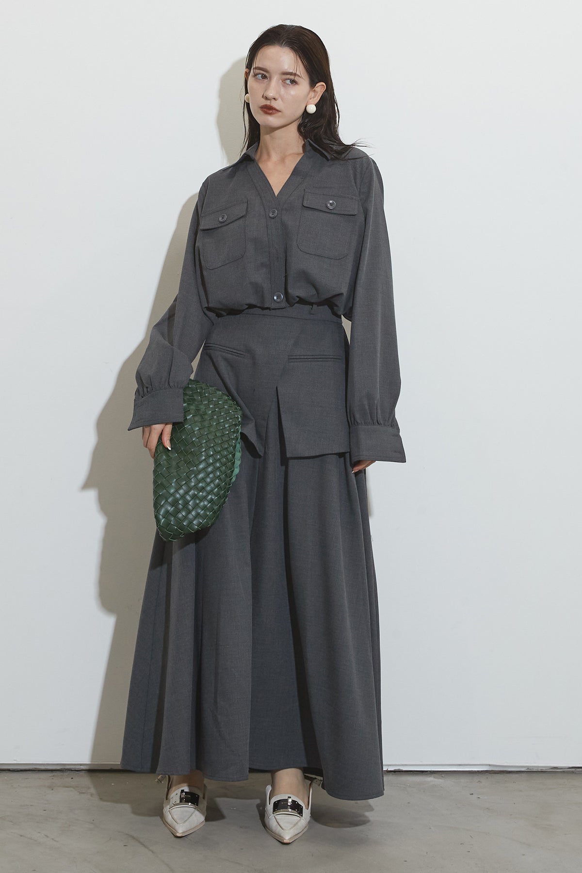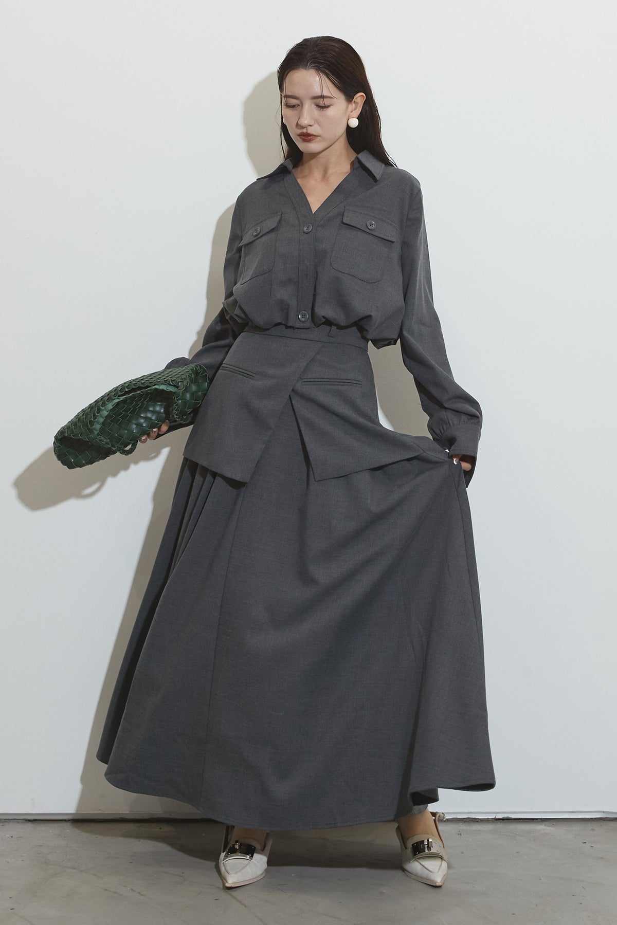 スキッパーブラウス&ラップレイヤースカート