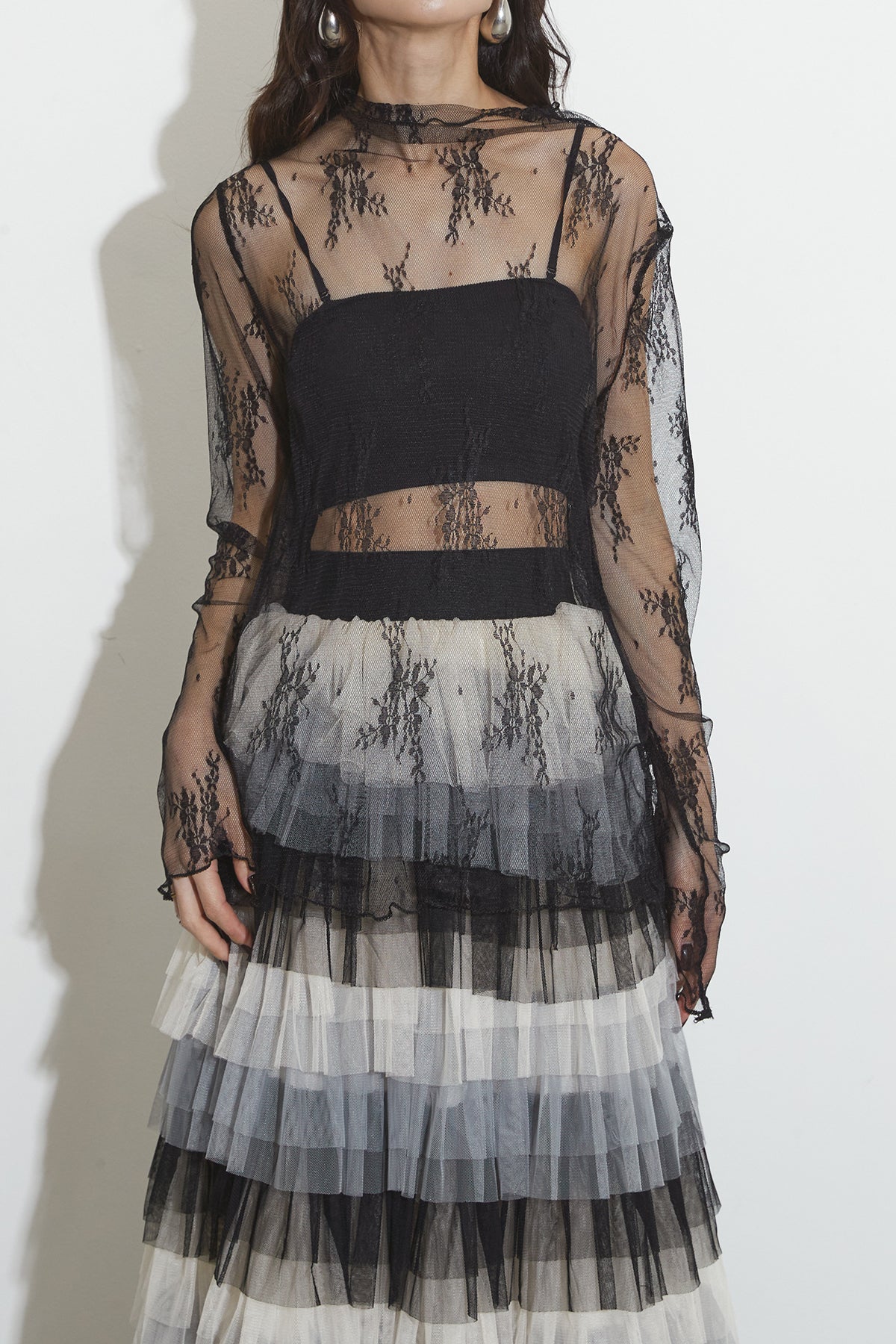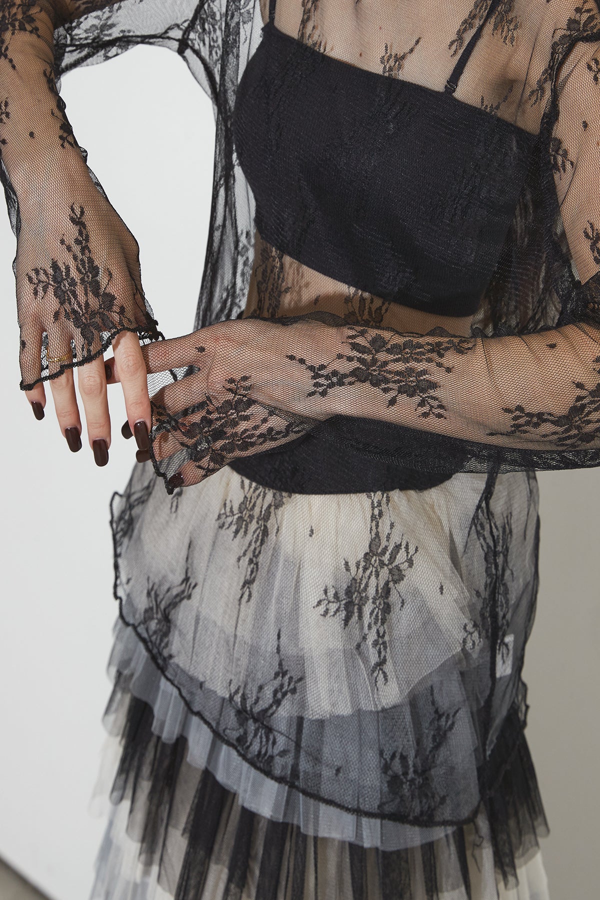 繊細なレース素材が魅力的なシアートップス。程よい透け感がスタイリングに抜け感をプラスします。キャミソールやタンクトップとのレイヤードスタイルで、女性らしいコーディネートを楽しめます。ドレッシーにもカジュアルにも合わせやすい一着です。