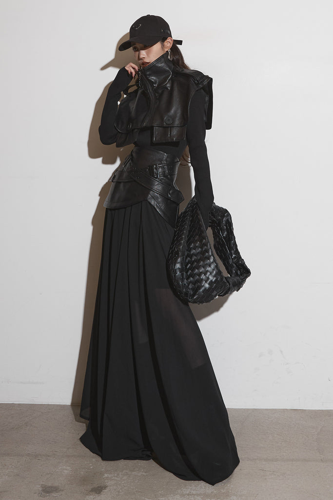 【SET】フェイクファーライダースベスト+スパンコールスカート
