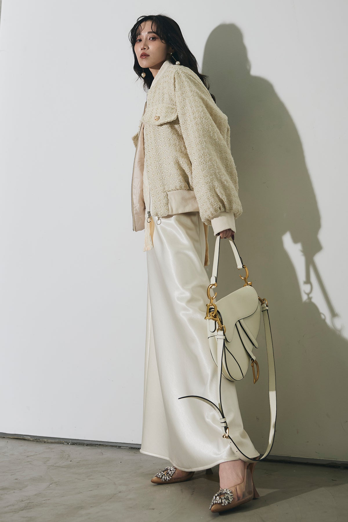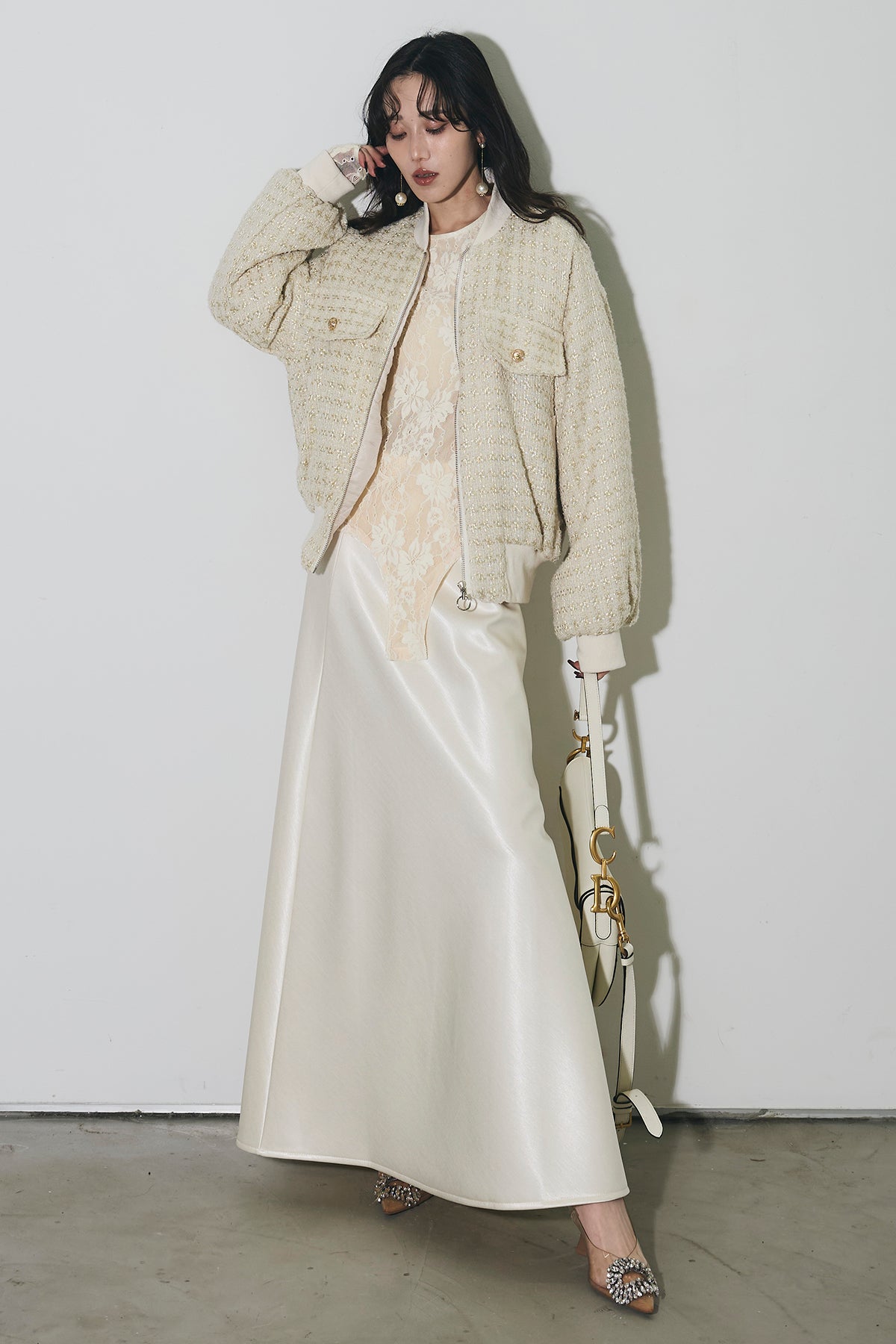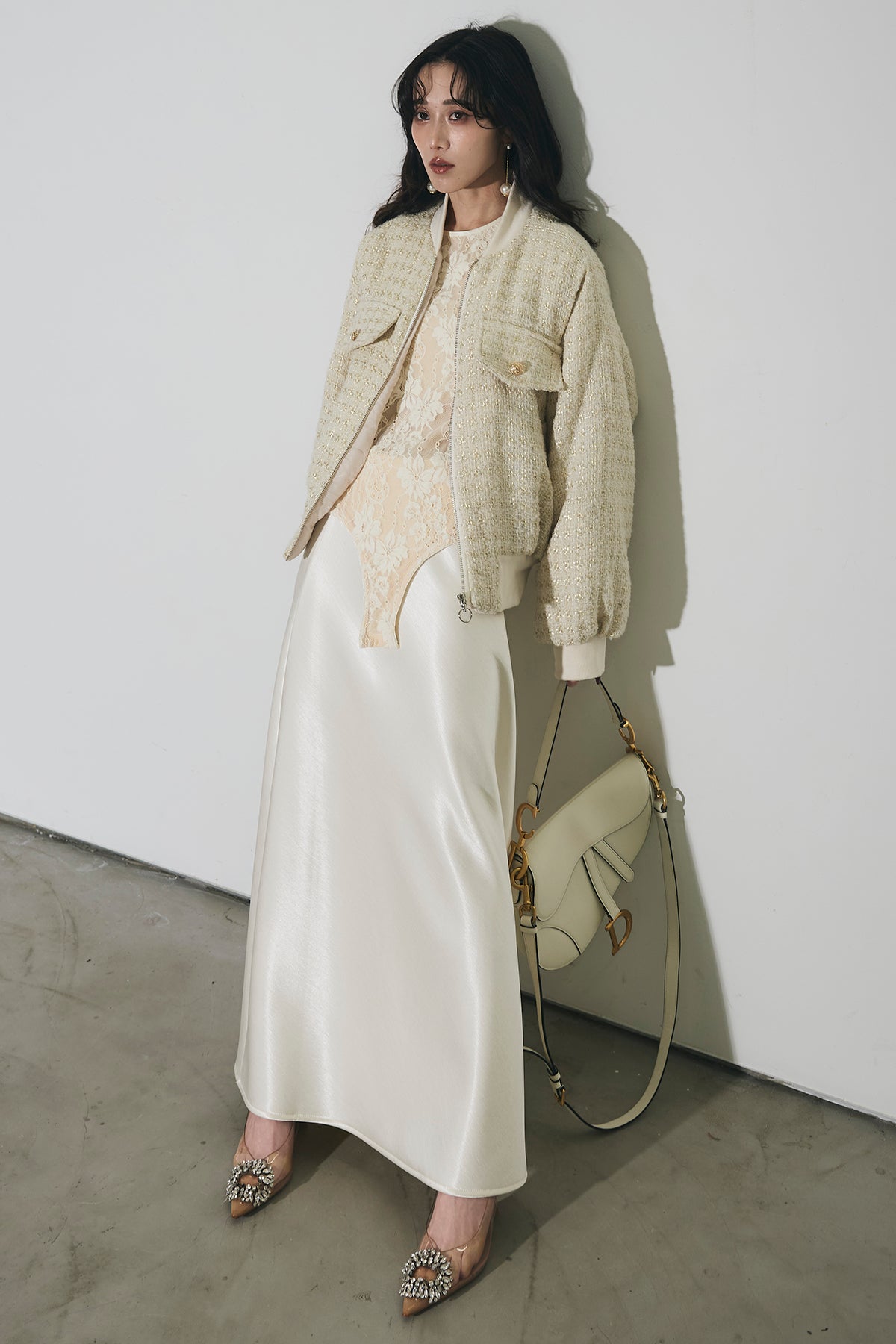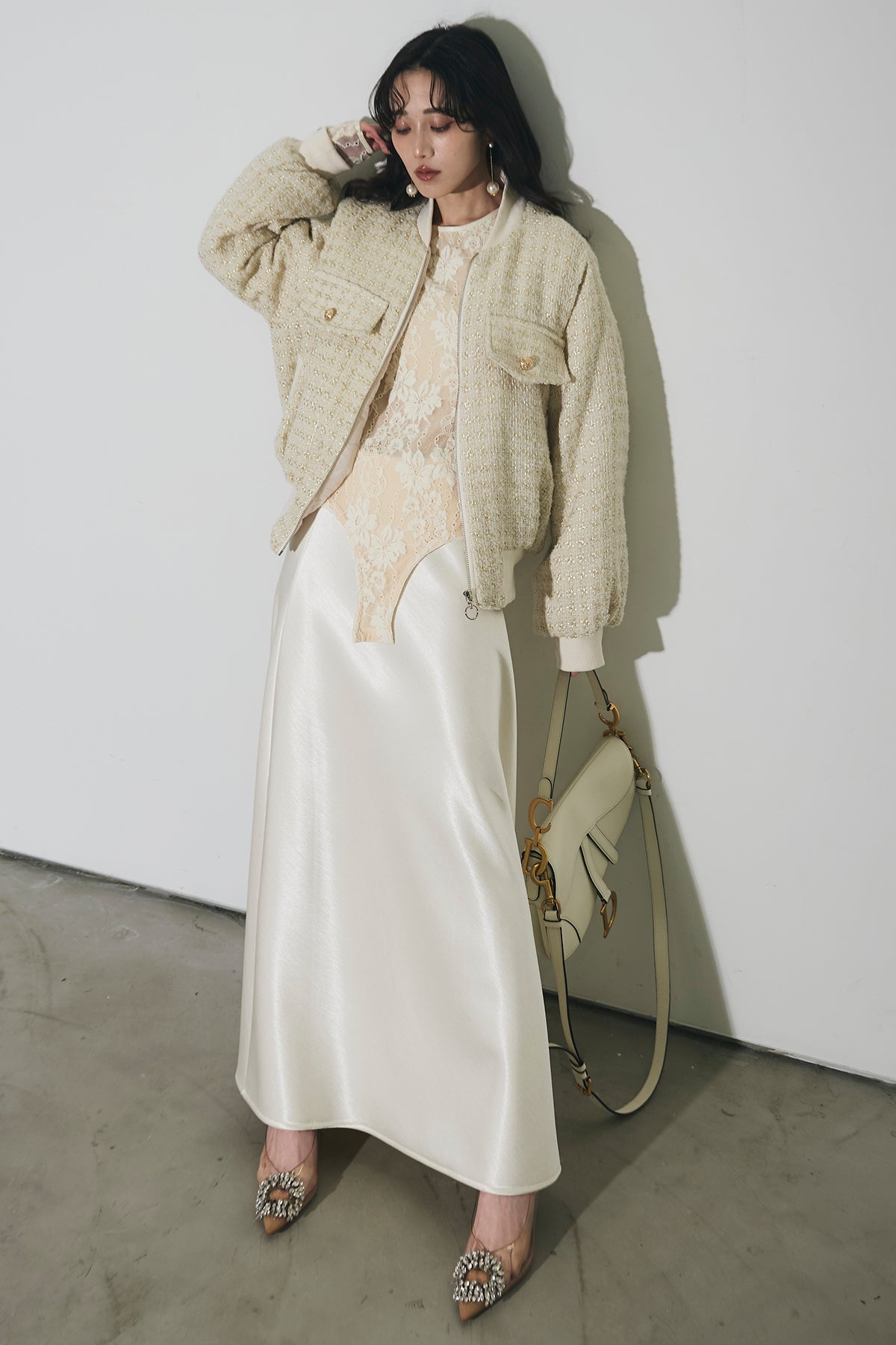 ご注文前に必ずページ下部「お届け期間」をご確認くださいませ。上品な光沢感が魅力のサテンスカート。なめらかな素材が動くたびに美しく揺れ、スタイリングに洗練された印象をプラスします。程よく落ち感のあるシルエットで、腰まわりはすっきりと、裾に向かって自然に広がるラインが女性らしさを引き立てます。レースやシアートップスと合わせたフェミニンな着こなしはもちろん、ニットやジャケットと合わせて抜け感のあるスタイルもおすすめ。オン・オフ問わず活躍し、コーディネートを格上げしてくれる一着です。
