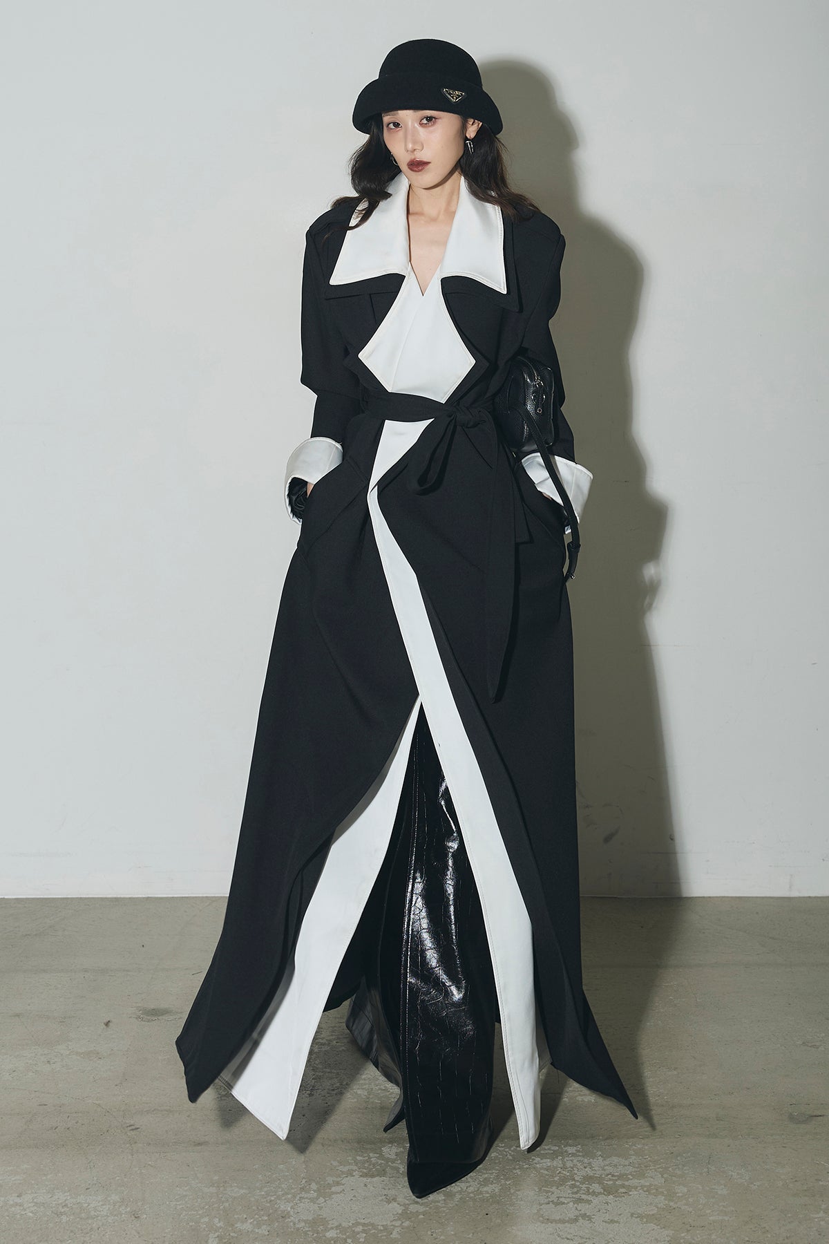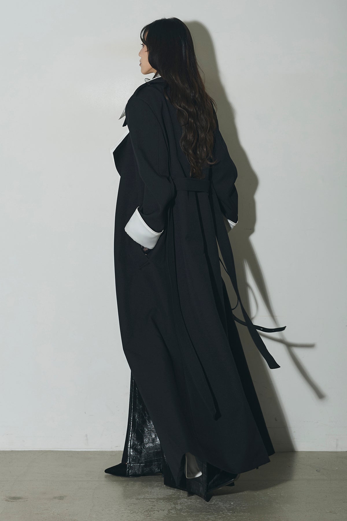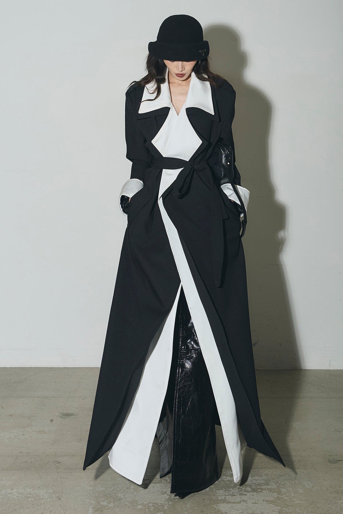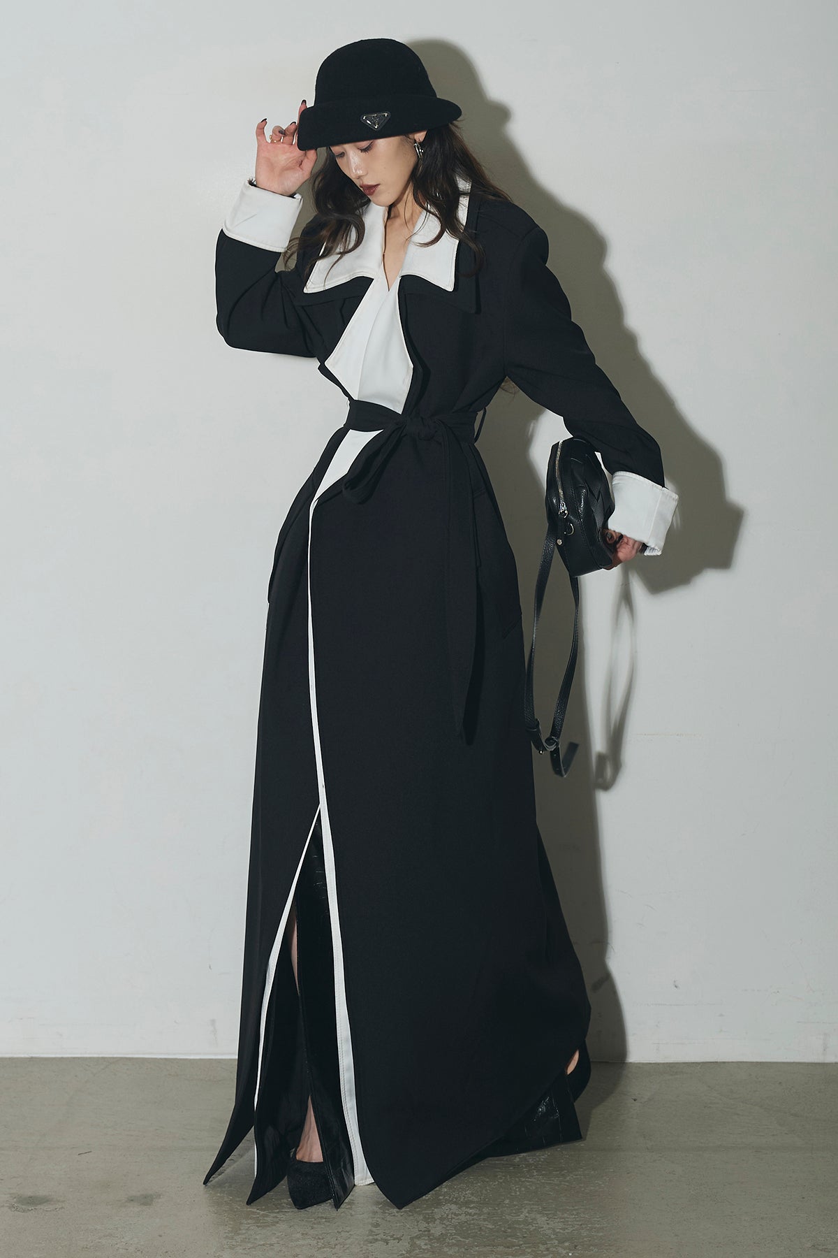 配色デザインが印象的なロングコート。シャープな襟元と縦のラインを強調するシルエットで、羽織るだけでスタイリングを引き締めます。すっきりとした落ち感のあるフォルムながら、程よい存在感があり、デイリーからオケージョンまで幅広く活躍。前を開けて軽く羽織るのはもちろん、閉じてワンピース感覚で着用するのもおすすめです。シンプルなコーデにプラスするだけで、洗練された印象に仕上がります。