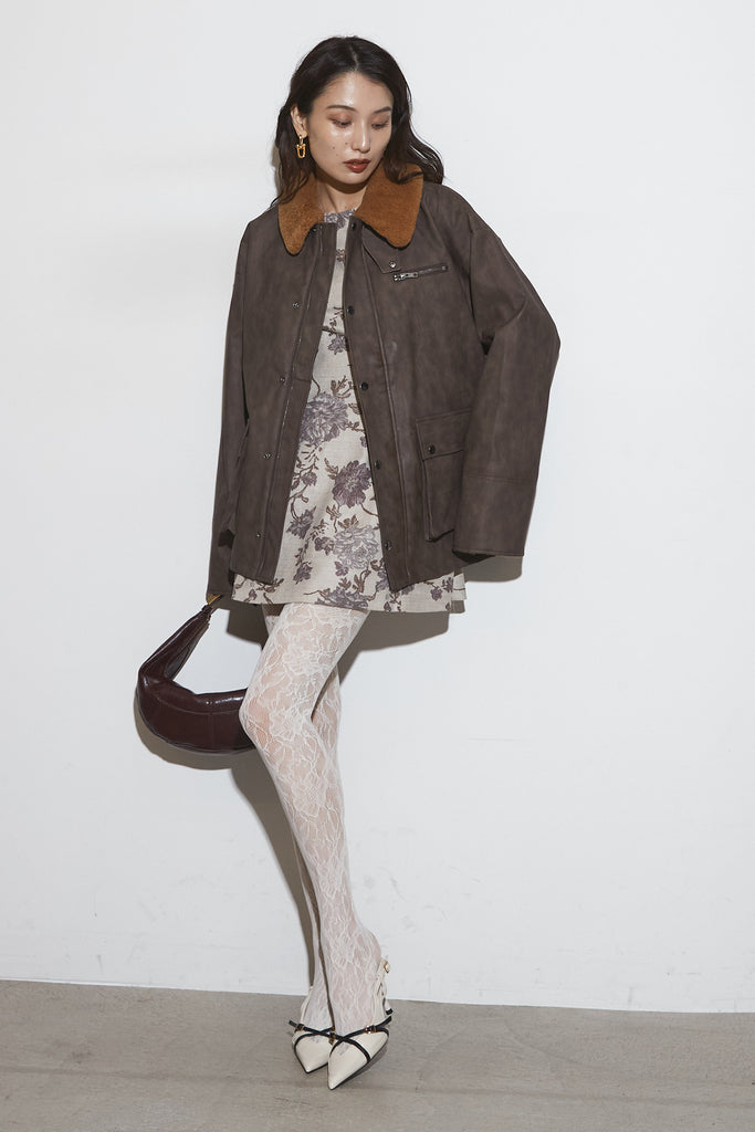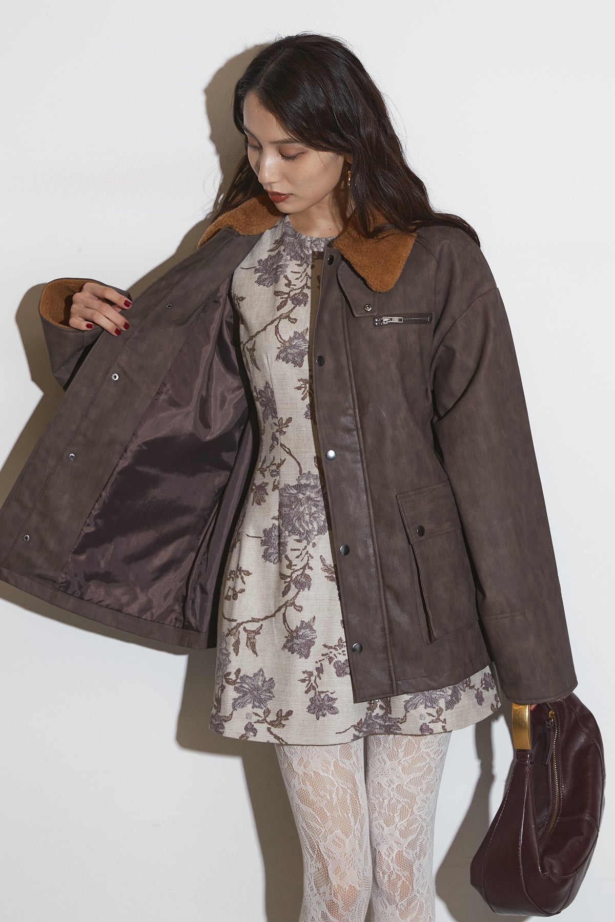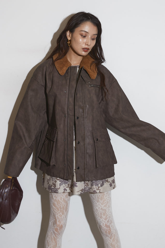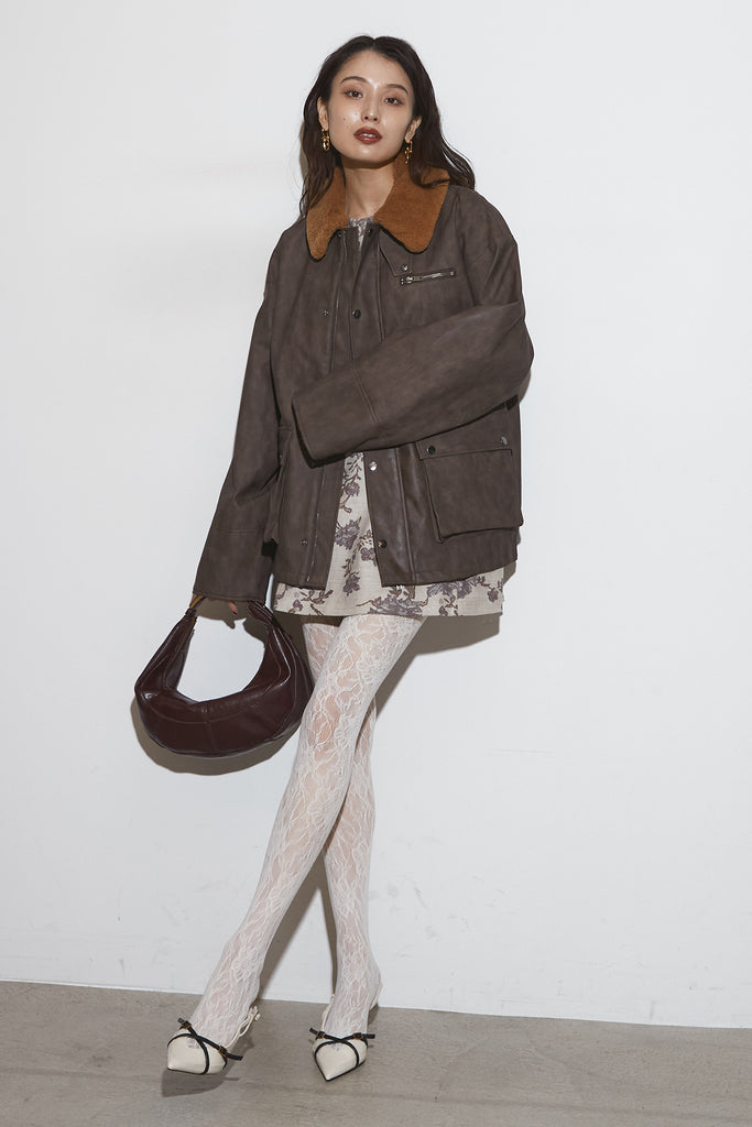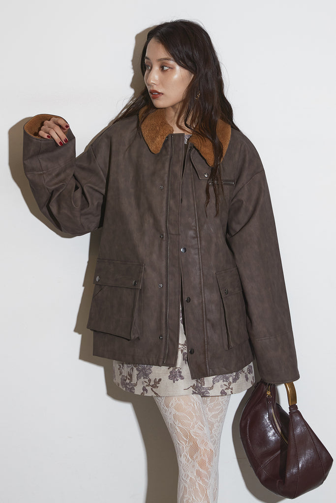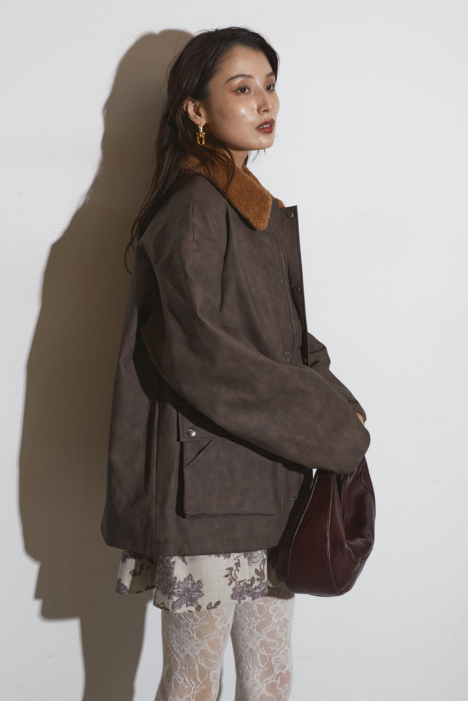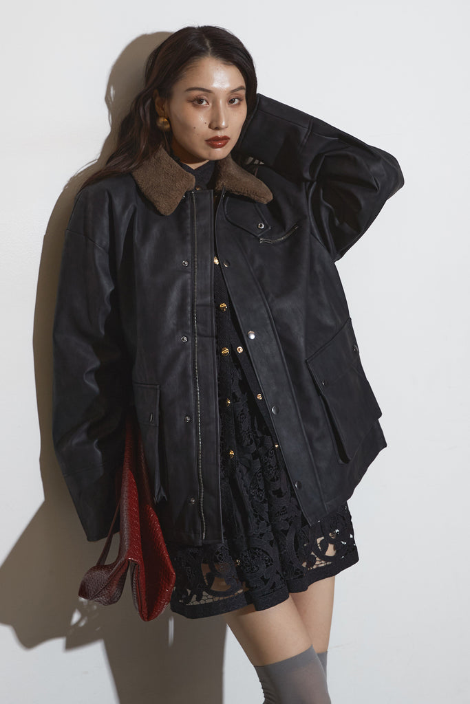 存在感のあるボア襟がポイントのブルゾン。 程よく厚みのある素材で、シーズンムードを高めてくれます。 短めの丈感でバランスが取りやすく、ワイドパンツやロングスカートとも好相性。 羽織るだけでスタイリングを引き締めてくれる一着です。