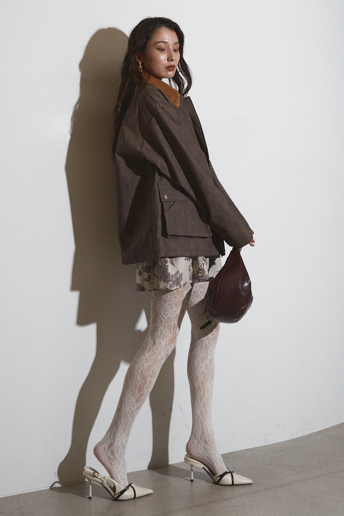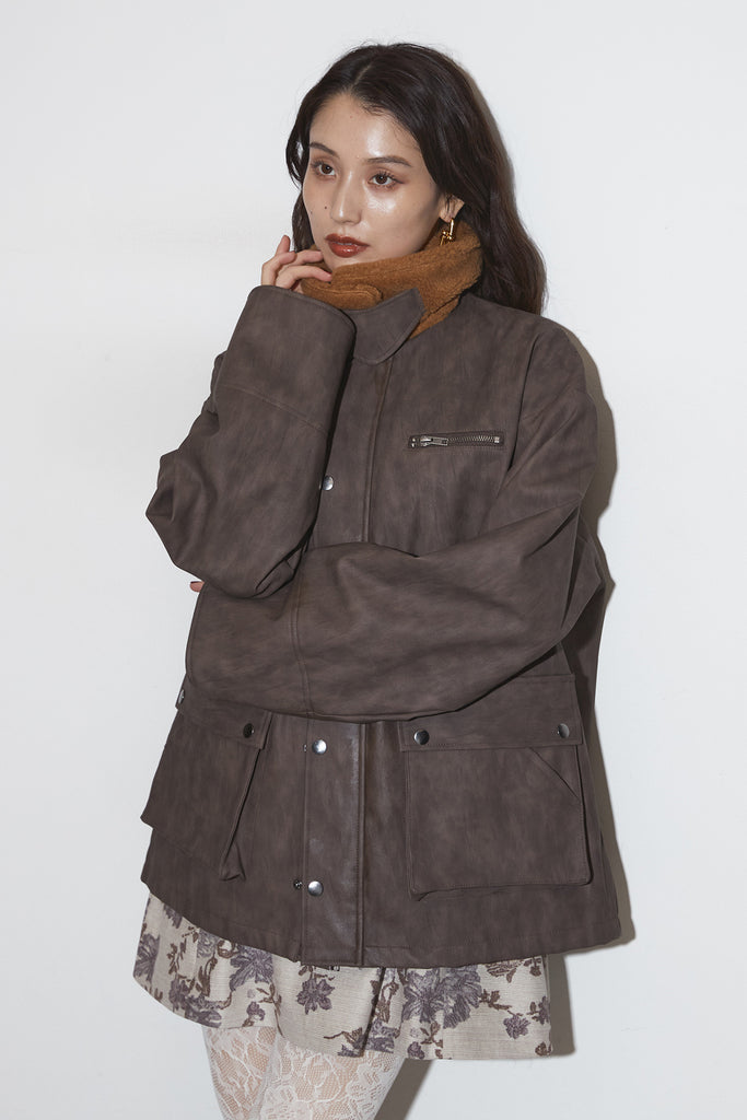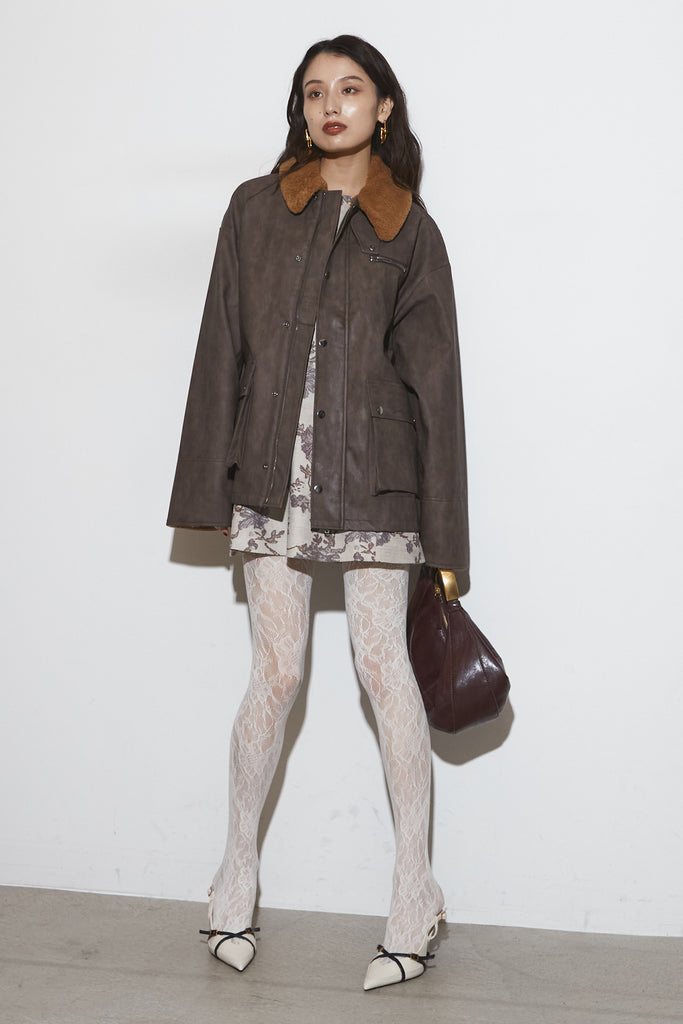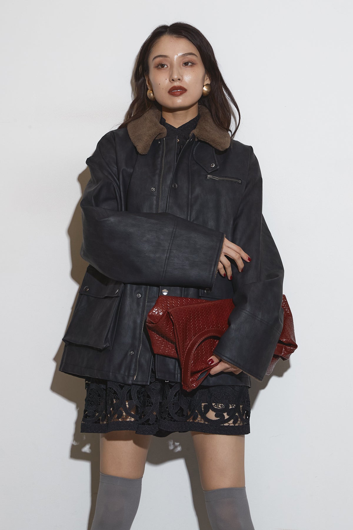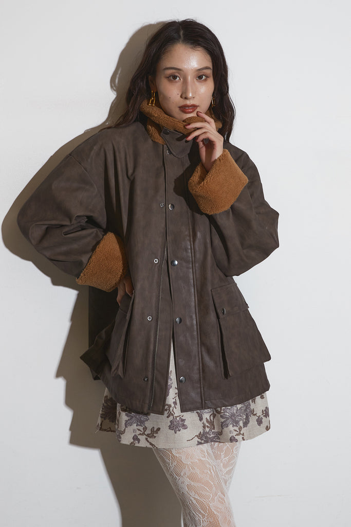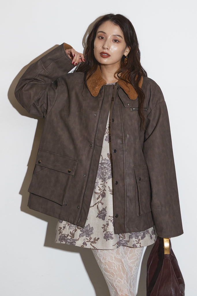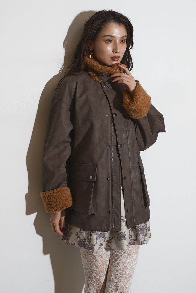 存在感のあるボア襟がポイントのブルゾン。 程よく厚みのある素材で、シーズンムードを高めてくれます。 短めの丈感でバランスが取りやすく、ワイドパンツやロングスカートとも好相性。 羽織るだけでスタイリングを引き締めてくれる一着です。