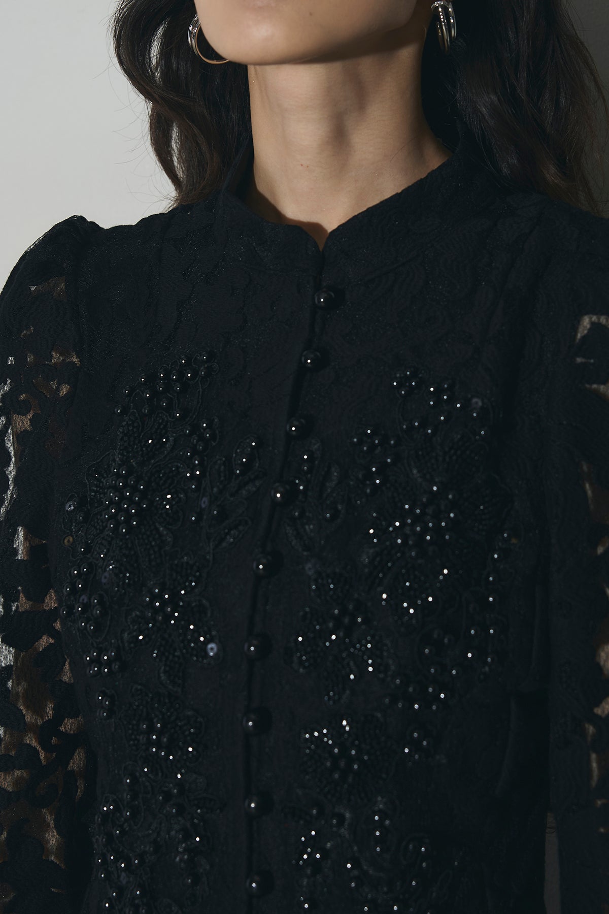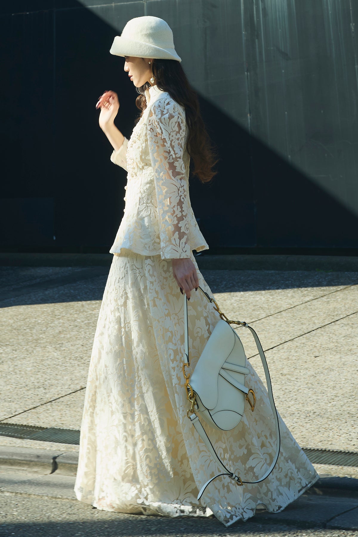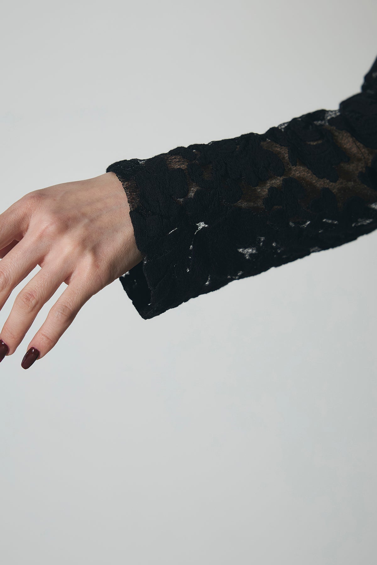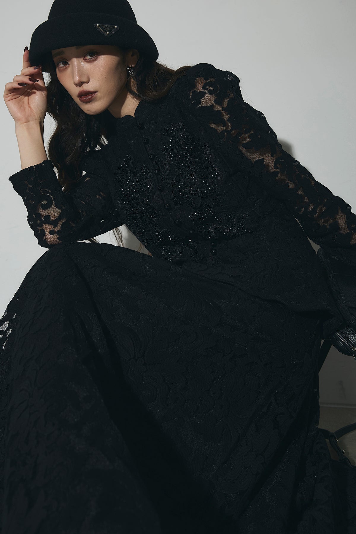繊細なレース素材を使用した、上品さとモード感を兼ね備えたセットアップ。トップスはコンパクトなシルエットで、程よい肌見せが女性らしさを引き立てます。スカートは縦ラインを強調するデザインで、スタイルアップ効果も◎。それぞれ単品使いはもちろん、セットで着用すれば特別感のある洗練されたコーディネートが完成します。