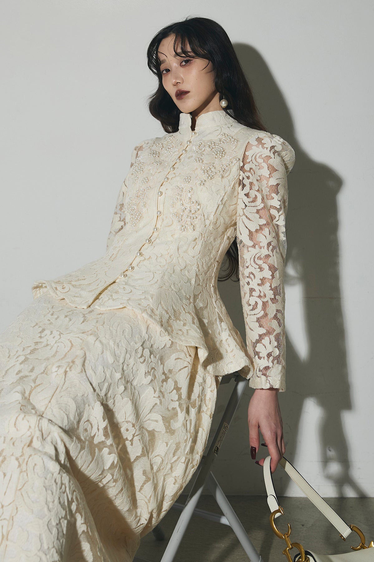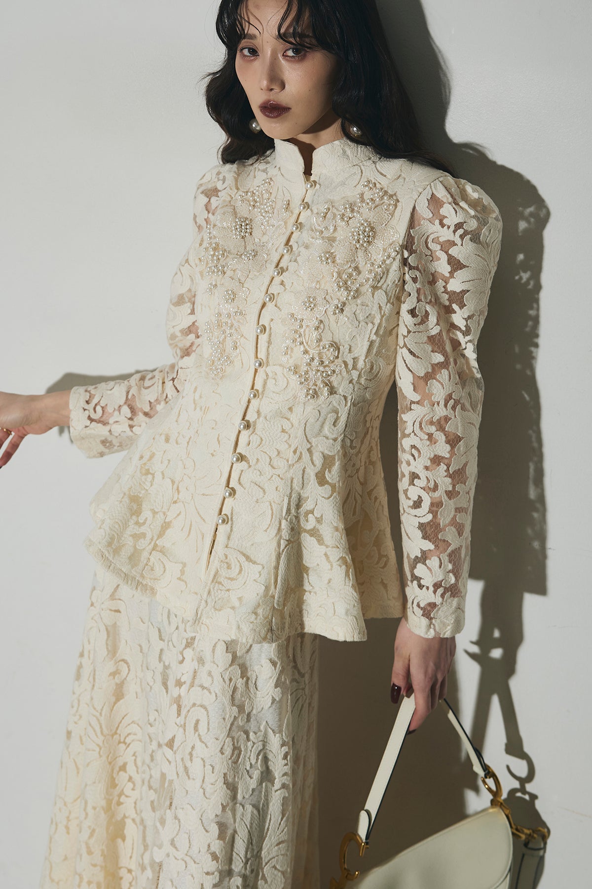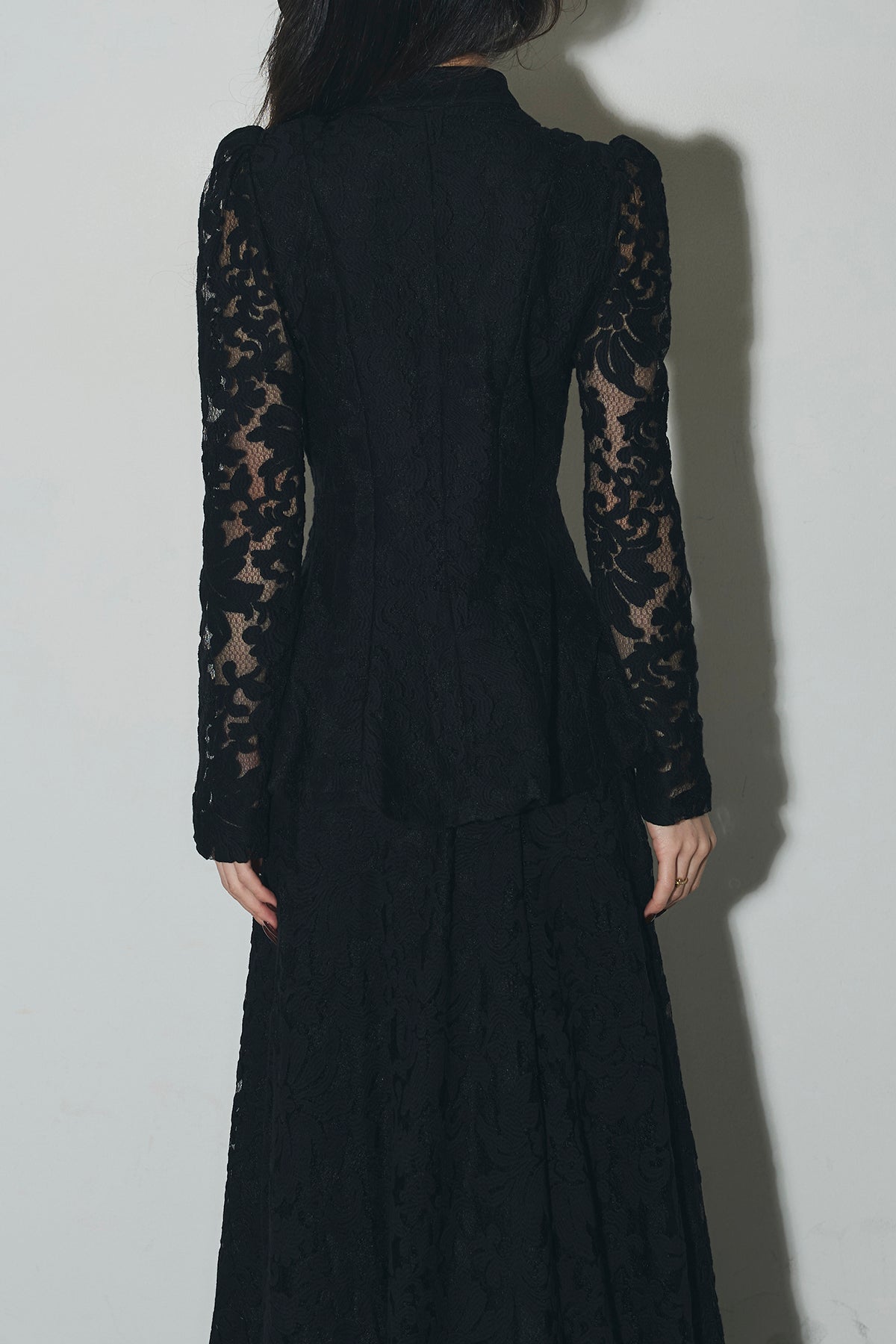 ビジューレースペプラムブラウス&レースフレアスカート