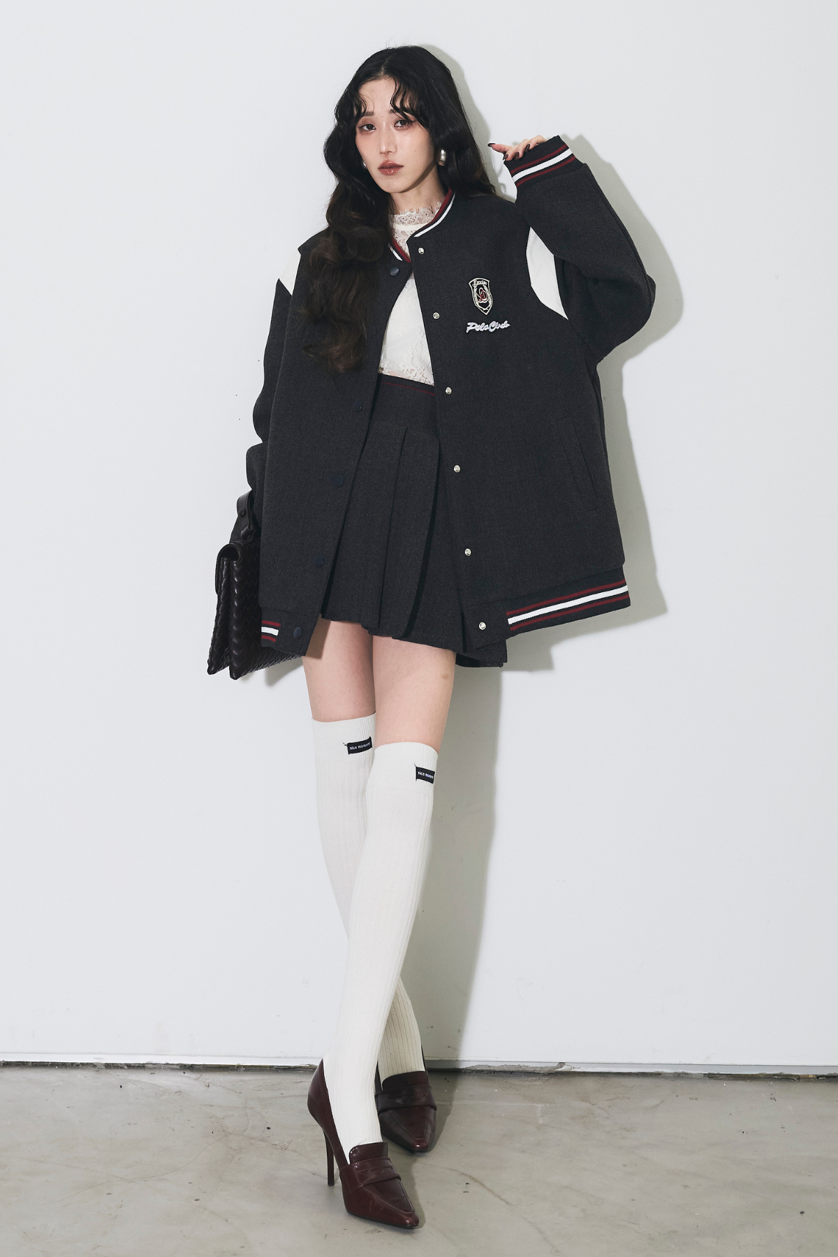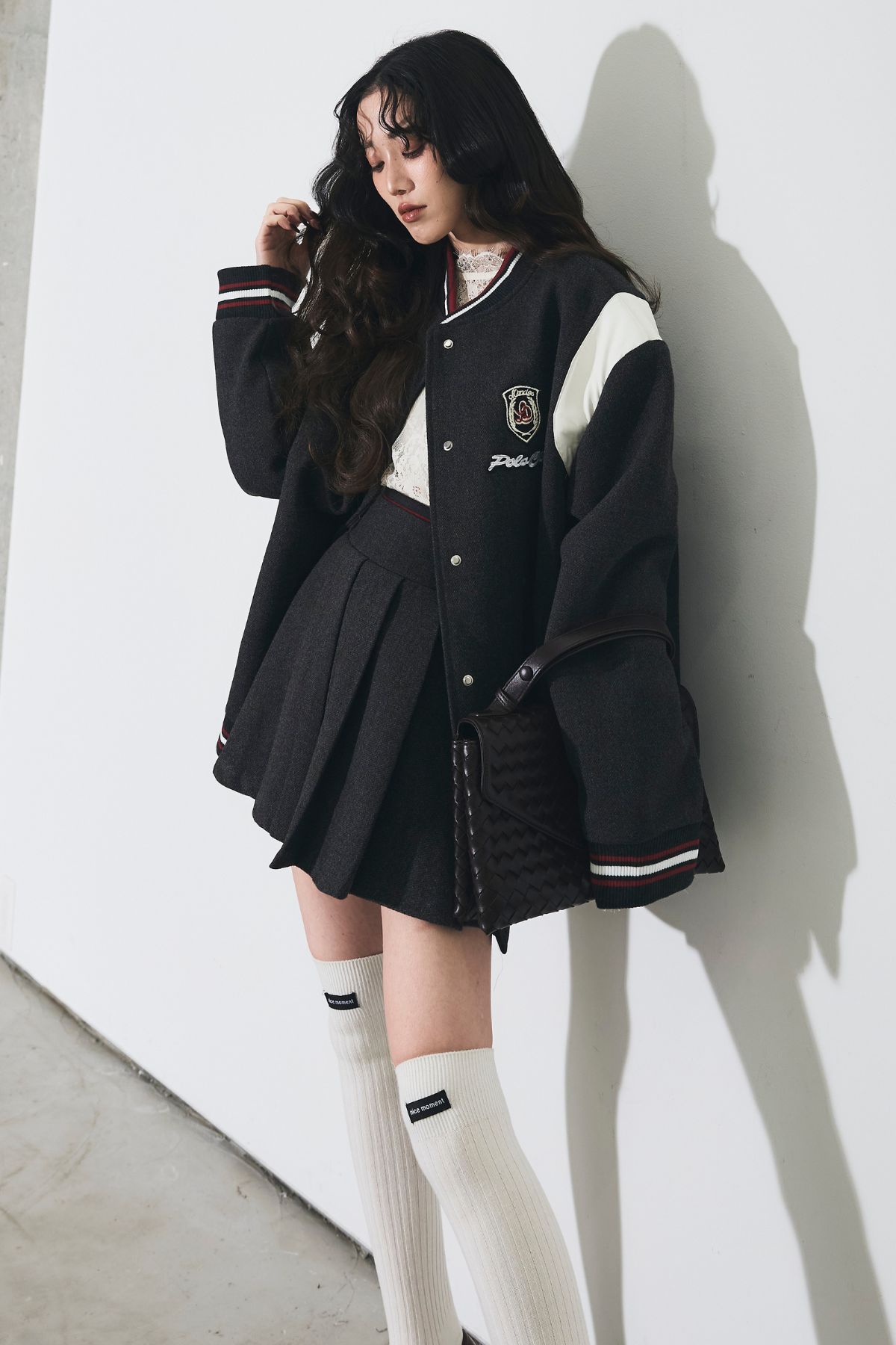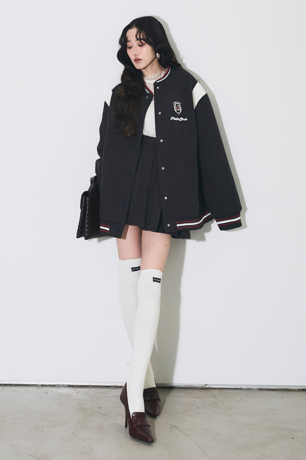 スポーティなムードが漂うジャケットとプリーツスカートのセットアップで、セットで着れば統一感のあるスタイリングが完成しつつ、ジャケット・スカートそれぞれ単品でも使えて着回しの幅が広がる万能アイテム。