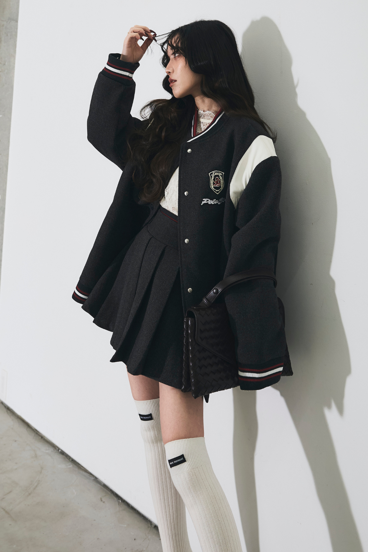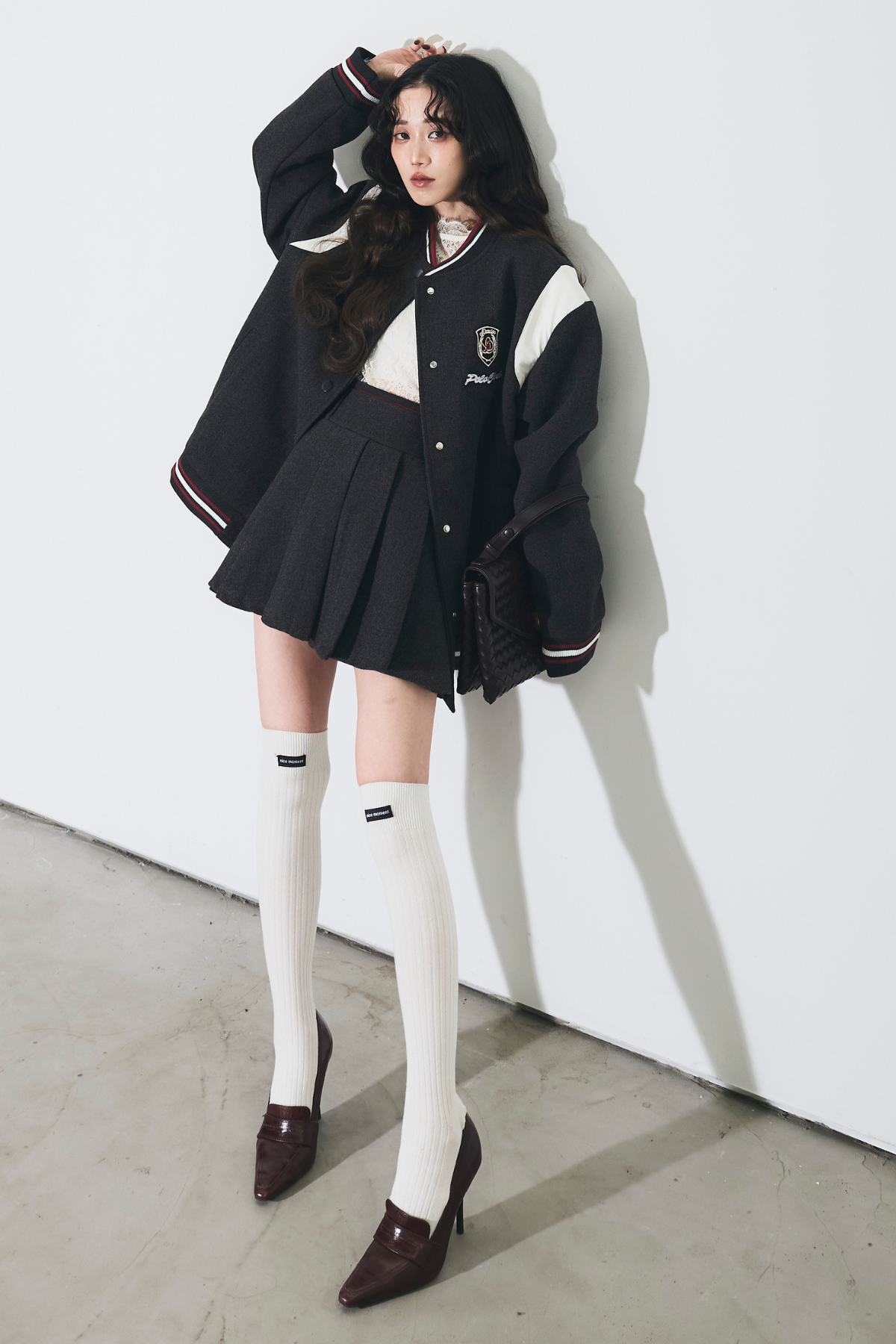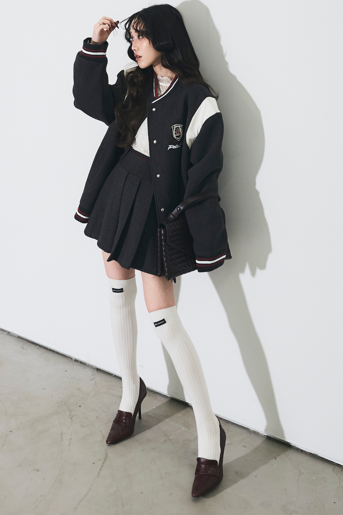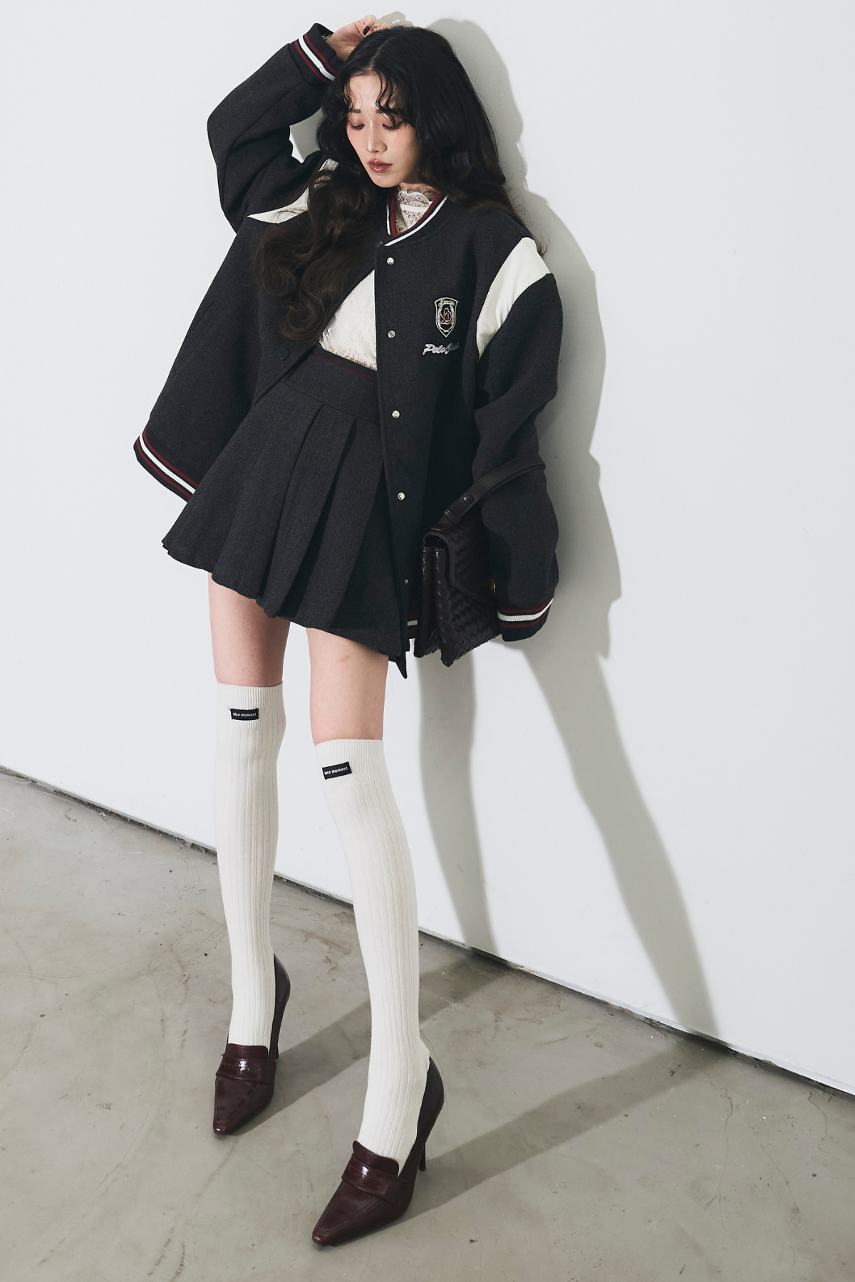 スポーティなムードが漂うジャケットとプリーツスカートのセットアップで、セットで着れば統一感のあるスタイリングが完成しつつ、ジャケット・スカートそれぞれ単品でも使えて着回しの幅が広がる万能アイテム。