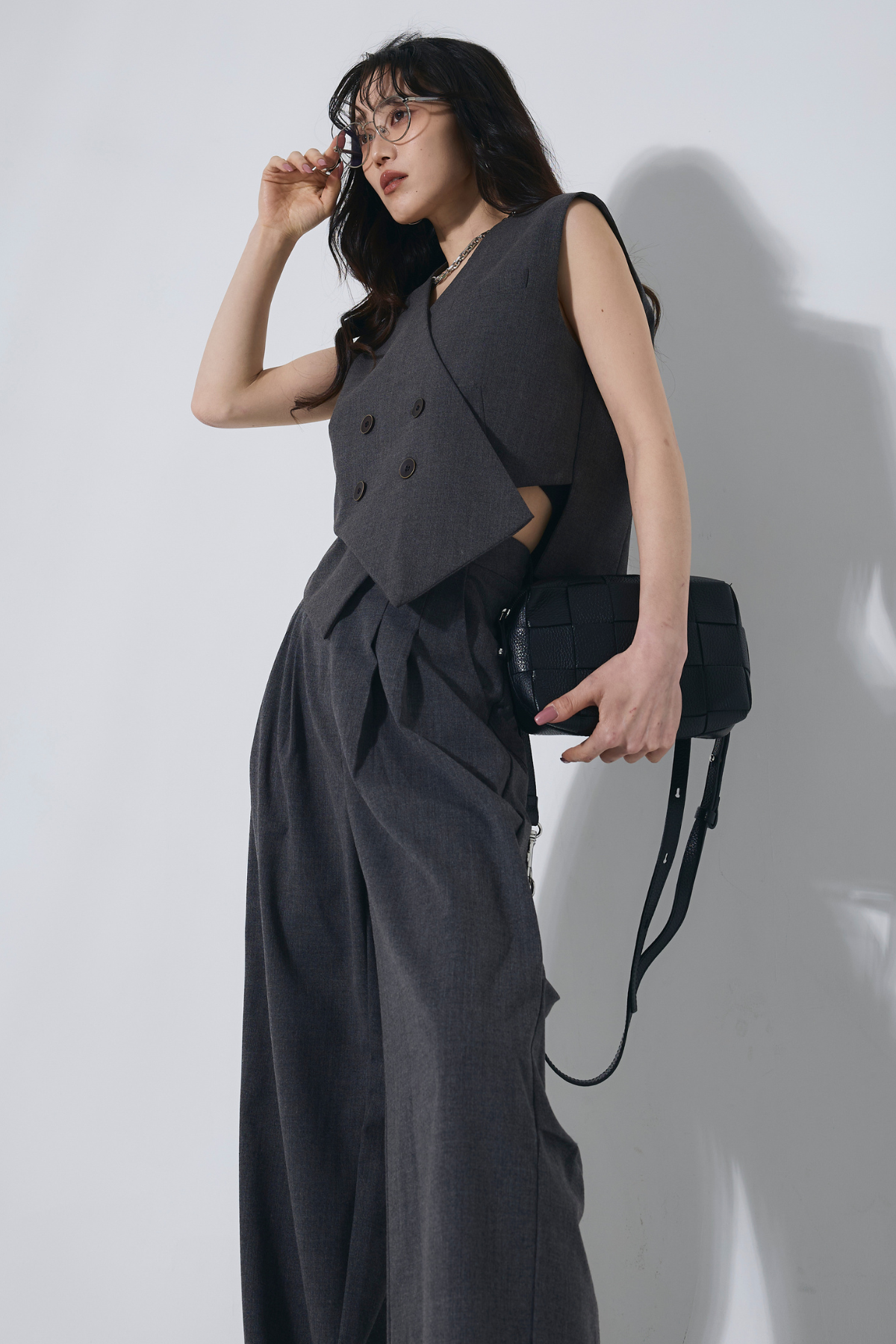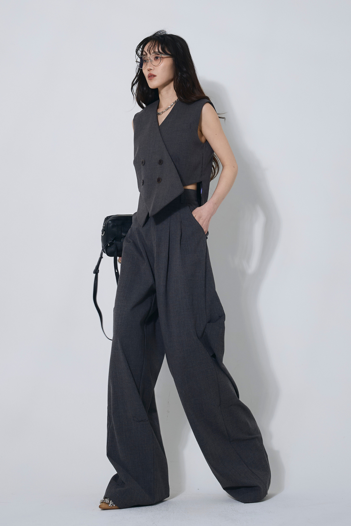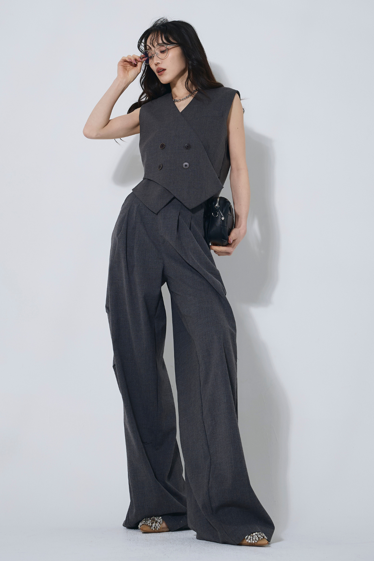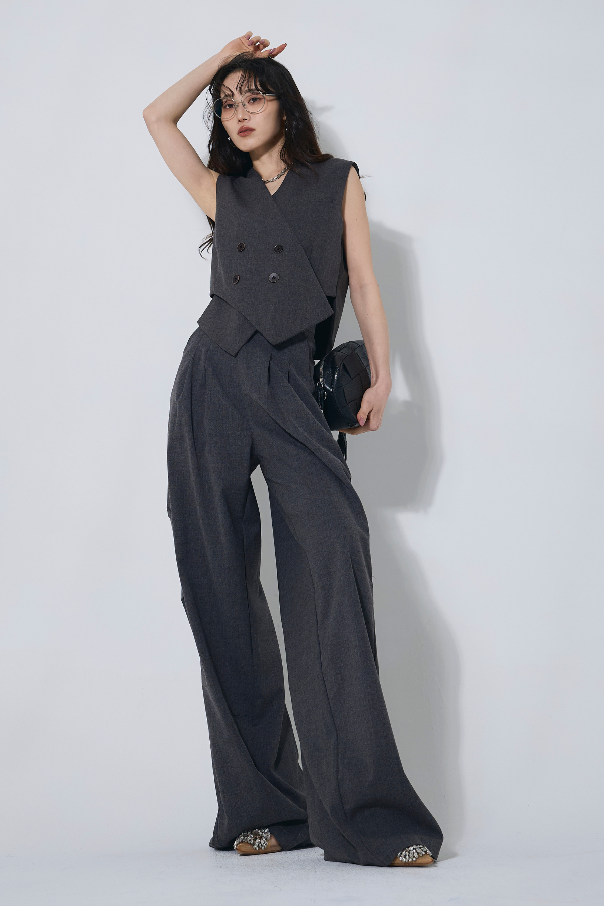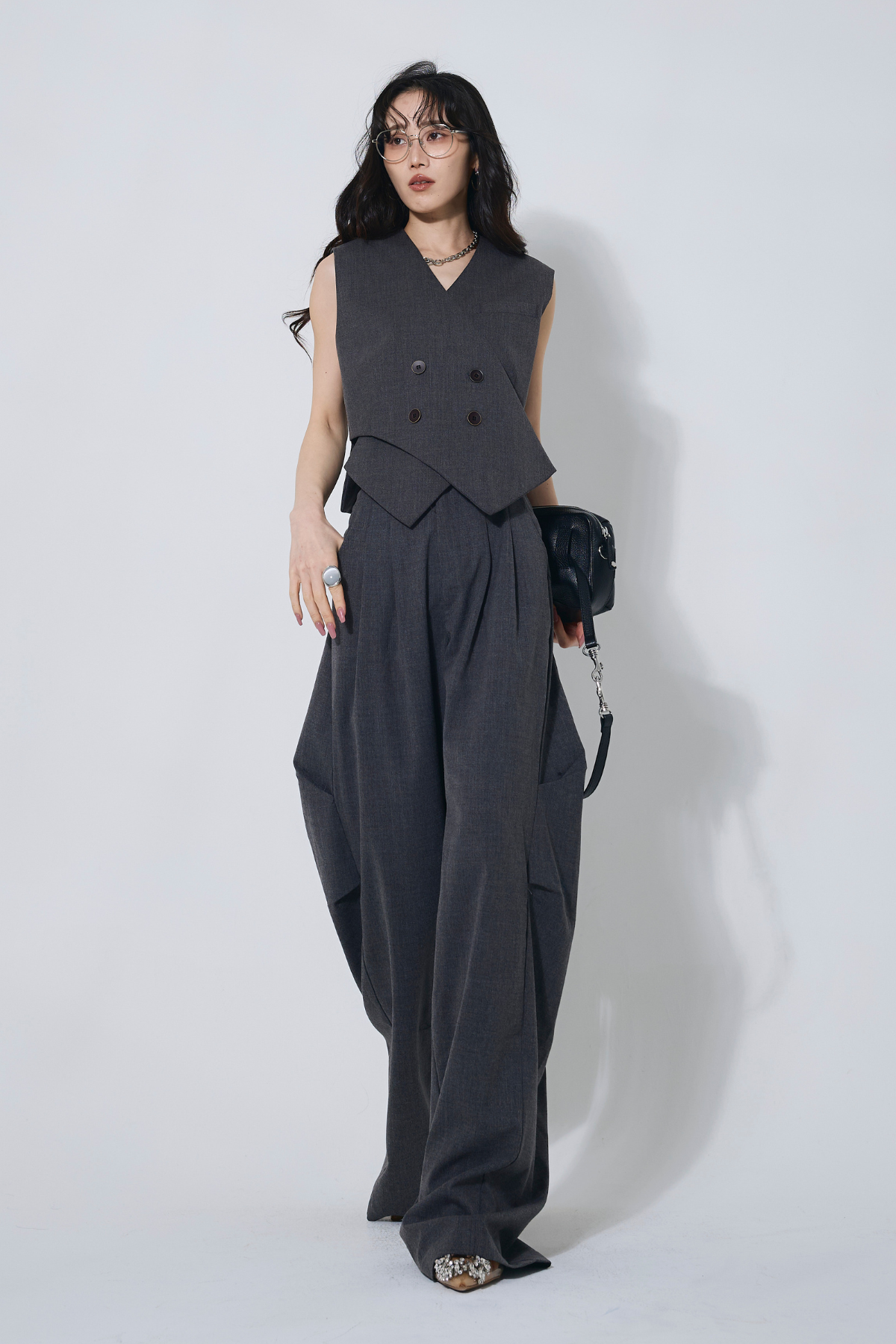 ご注文前に必ずページ下部「お届け期間」をご確認くださいませ。すっきりとしたシルエットが魅力のベスト。ミニマルなデザインで、上品かつ洗練された印象に仕上がります。別売りのパンツとセットでの着用もおすすめです。
