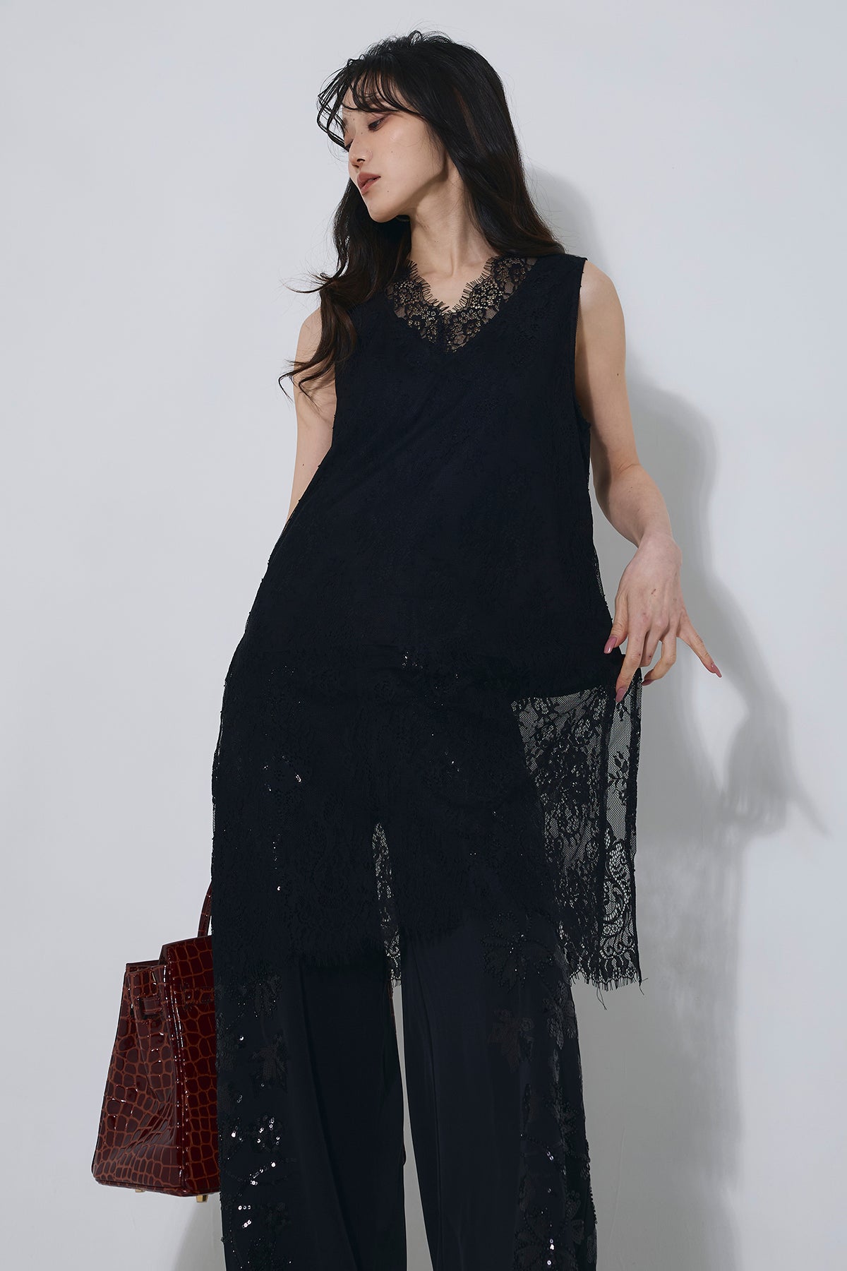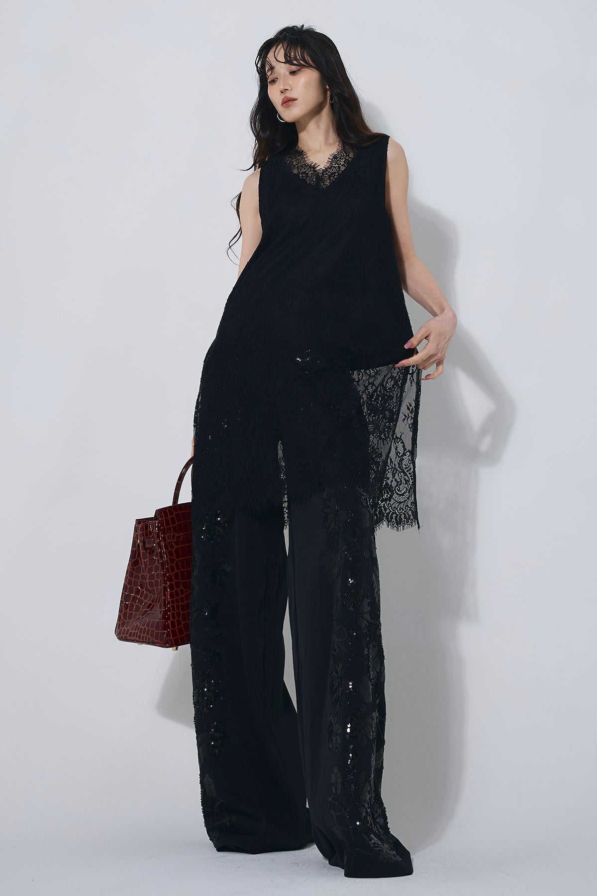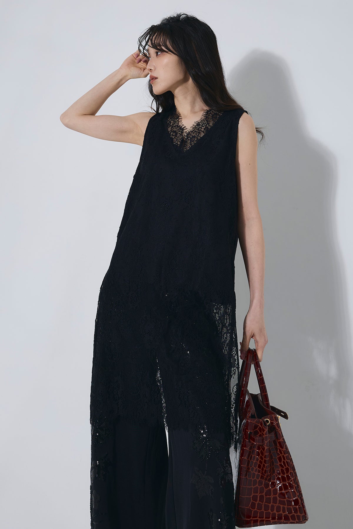 ご注文前に必ずページ下部「お届け期間」をご確認くださいませ。繊細なレースが上品な印象のチュニック。ゆとりのあるシルエットでリラックス感がありつつ、女性らしさを引き立てます。1枚で華やかなスタイリングが完成する一着です。