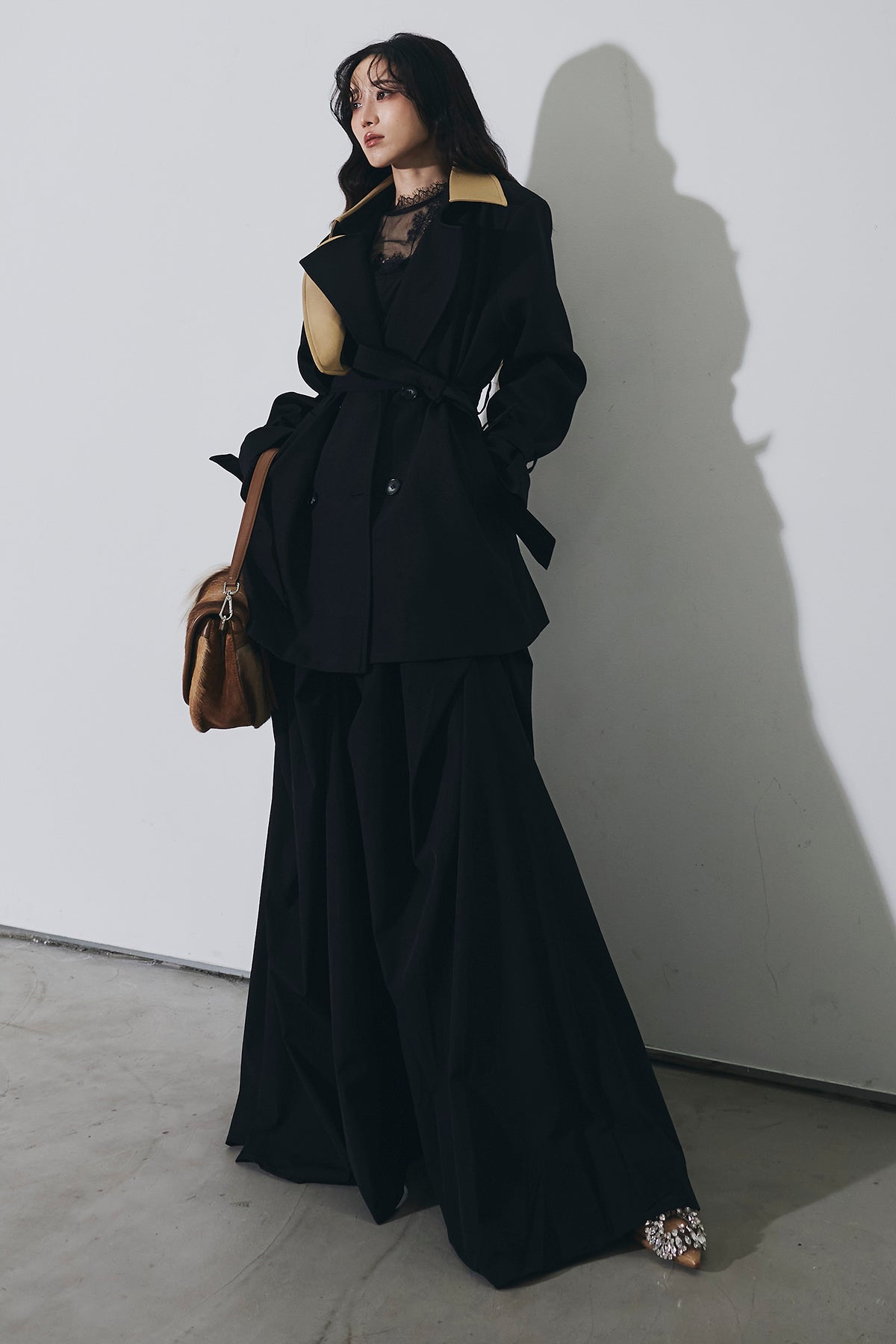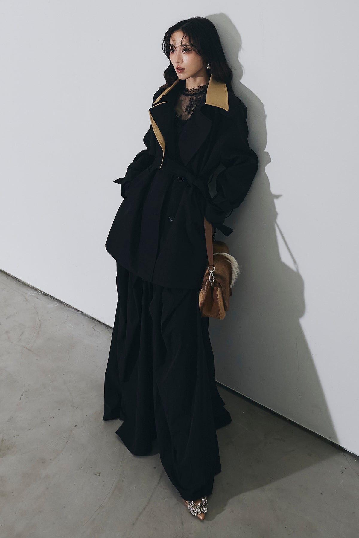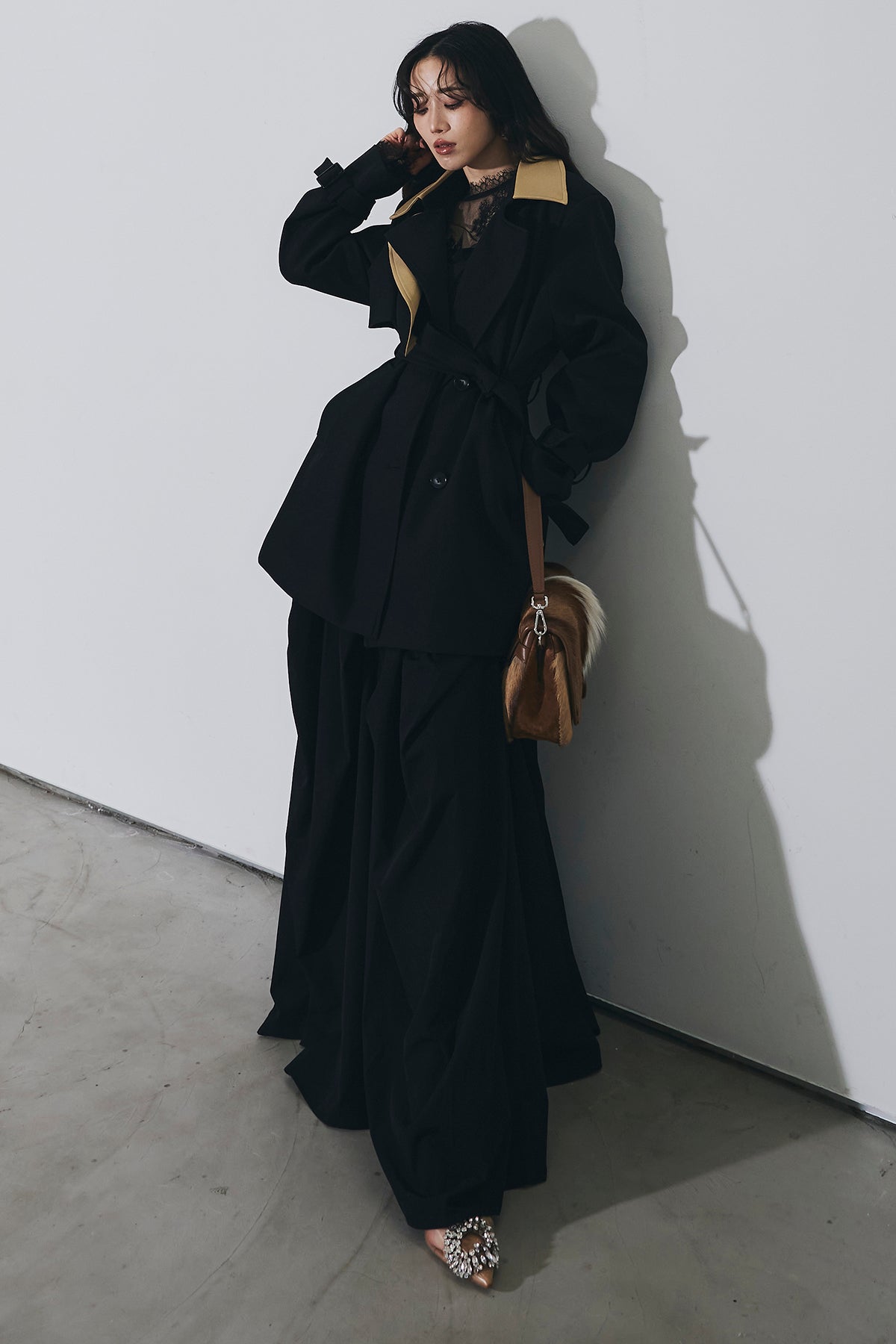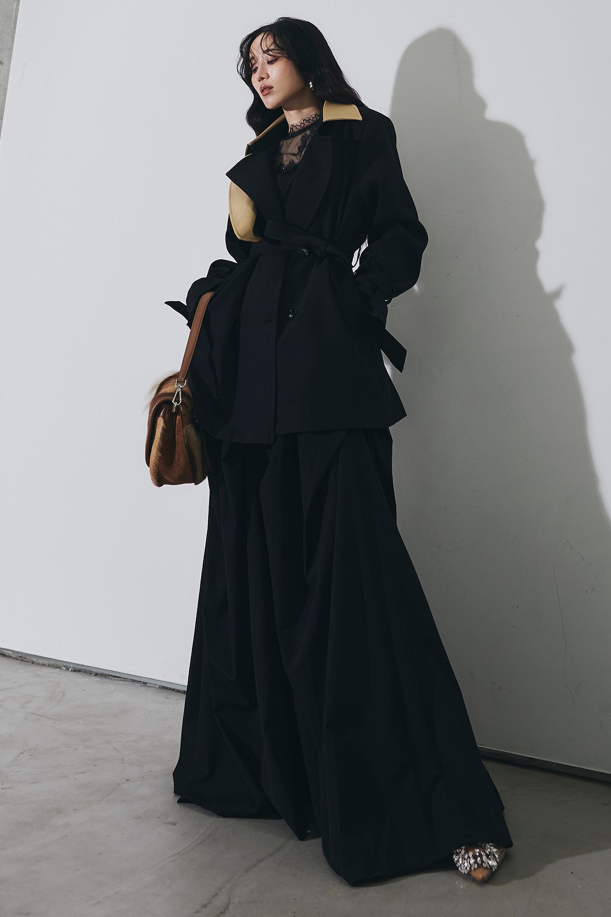 ご注文前に必ずページ下部「お届け期間」をご確認くださいませ。ドラマティックなシルエットが魅力のロングドレス。立体感のあるスカートデザインが動きに表情を生み、存在感のあるスタイルを演出します。インナーとのレイヤードで奥行きのある着こなしが楽しめる一着。特別なシーンにも映える、モードな雰囲気のアイテムです。