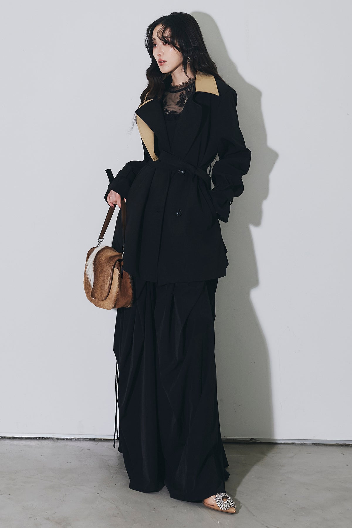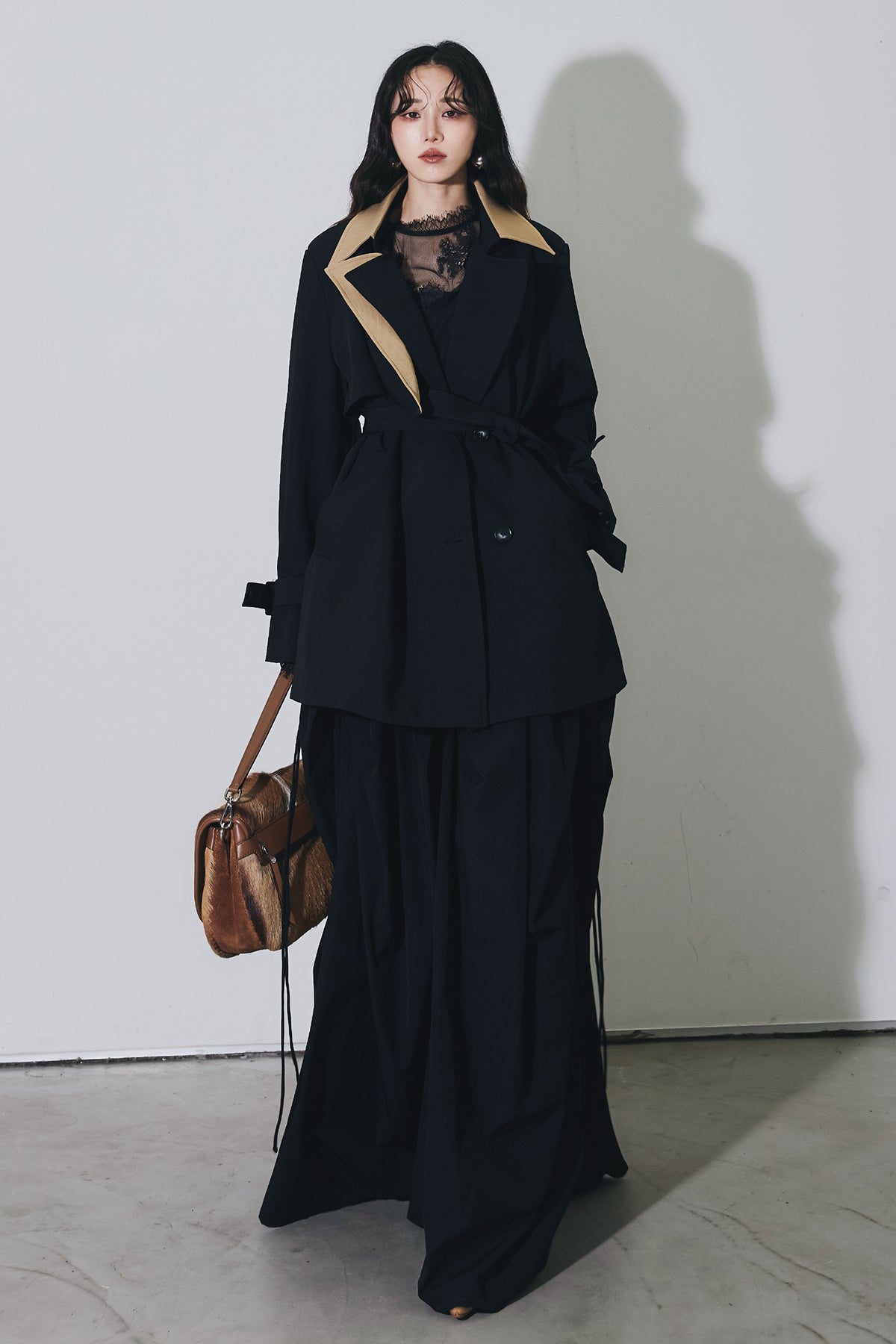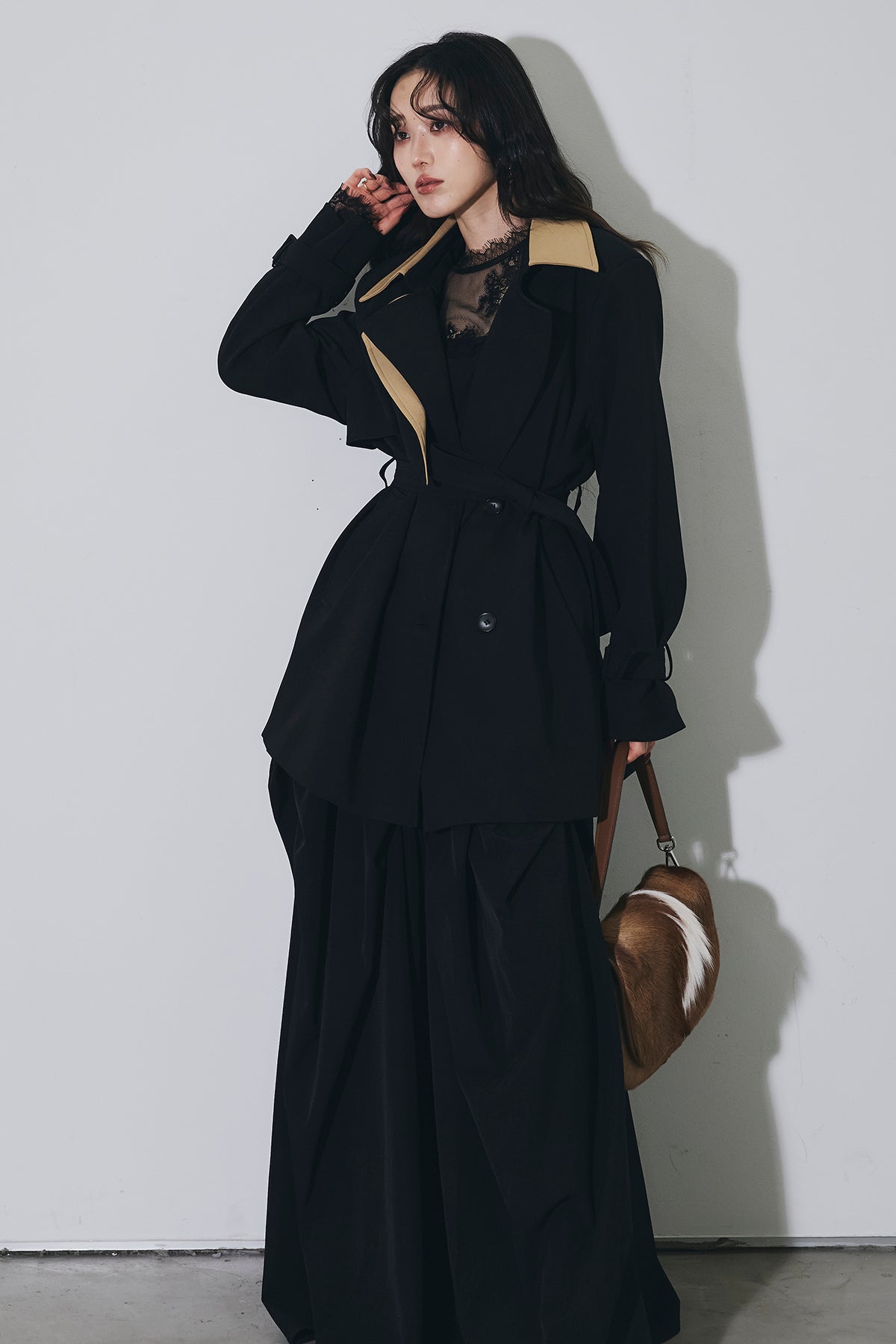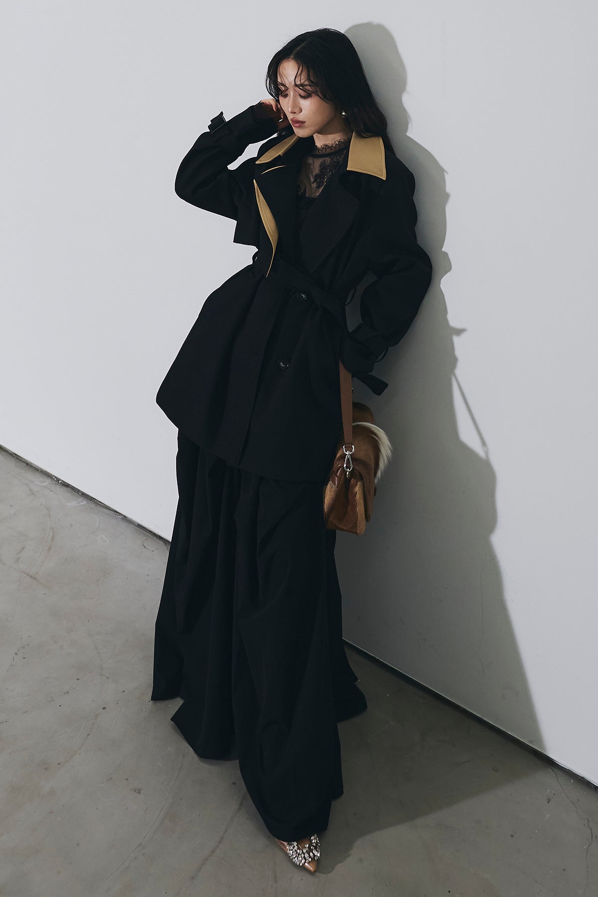 ご注文前に必ずページ下部「お届け期間」をご確認くださいませ。ドラマティックなシルエットが魅力のロングドレス。立体感のあるスカートデザインが動きに表情を生み、存在感のあるスタイルを演出します。インナーとのレイヤードで奥行きのある着こなしが楽しめる一着。特別なシーンにも映える、モードな雰囲気のアイテムです。