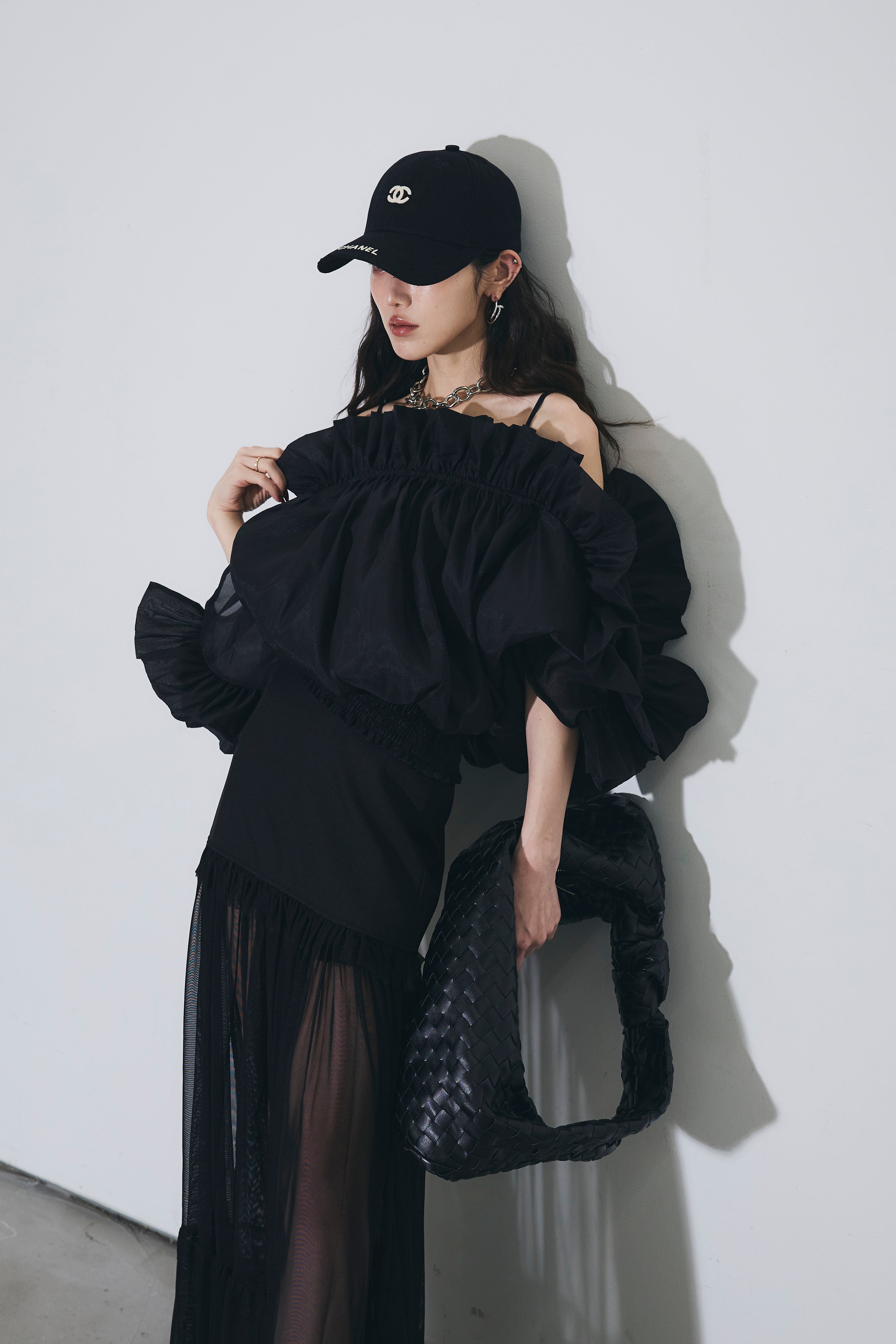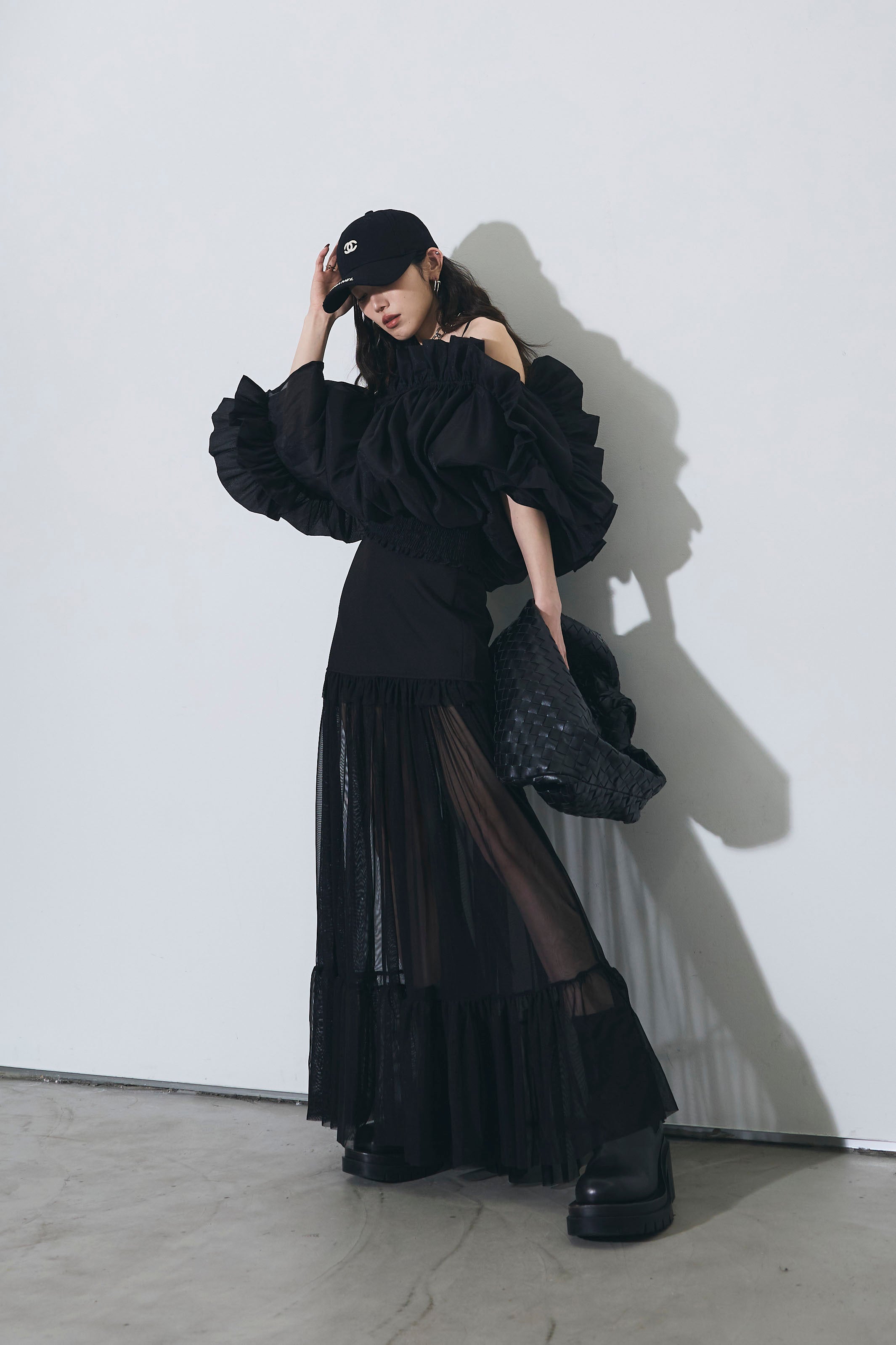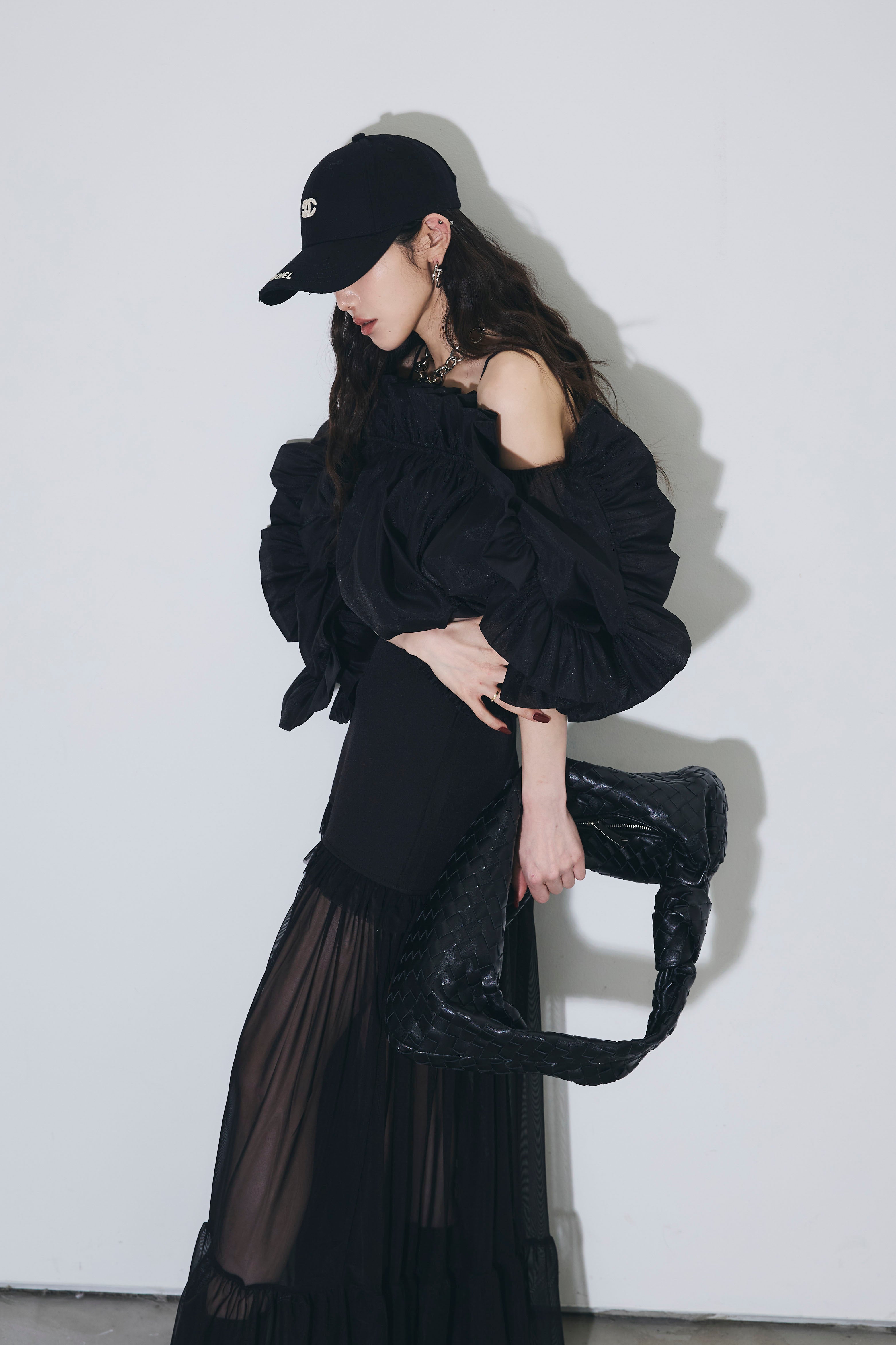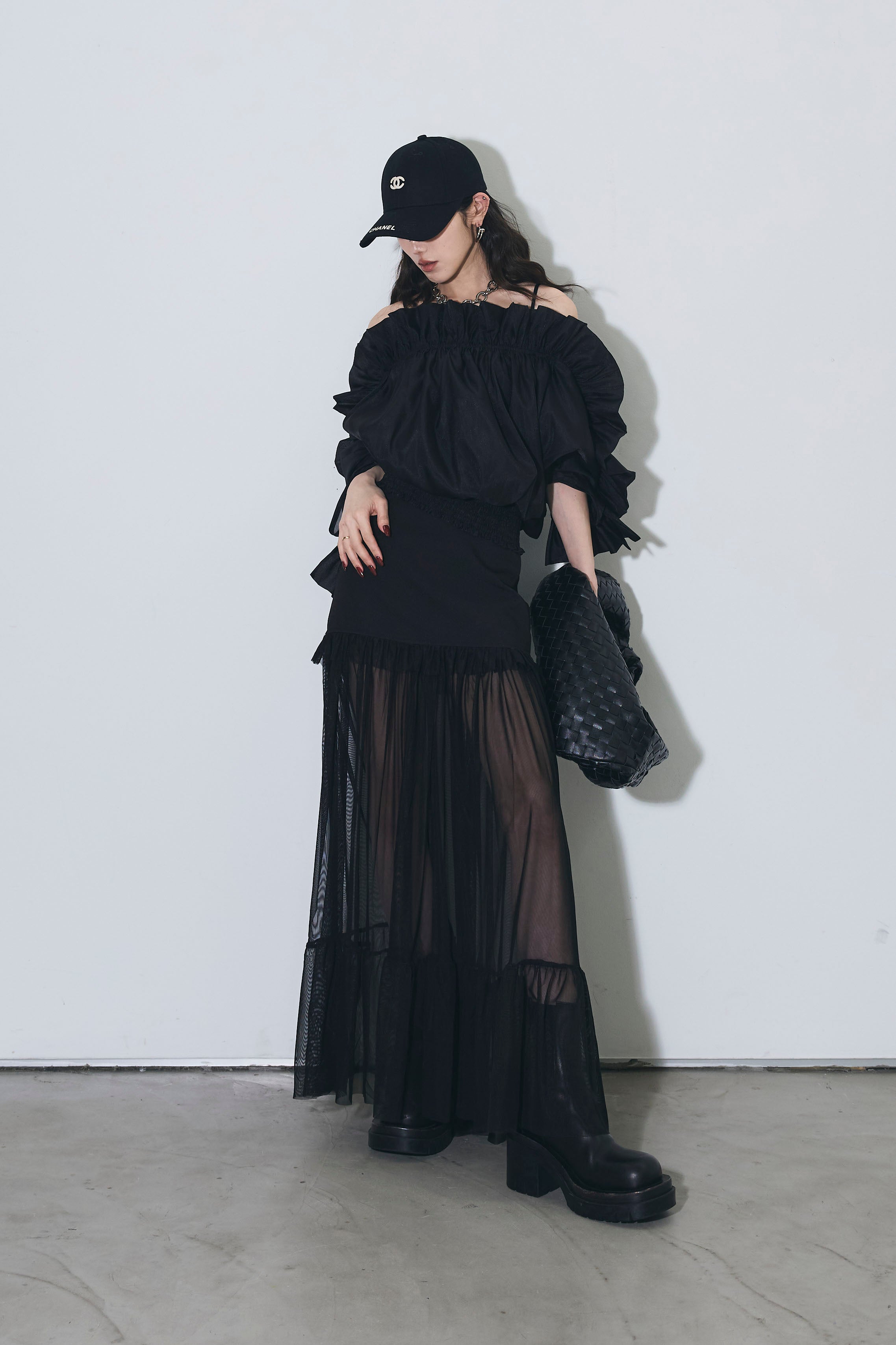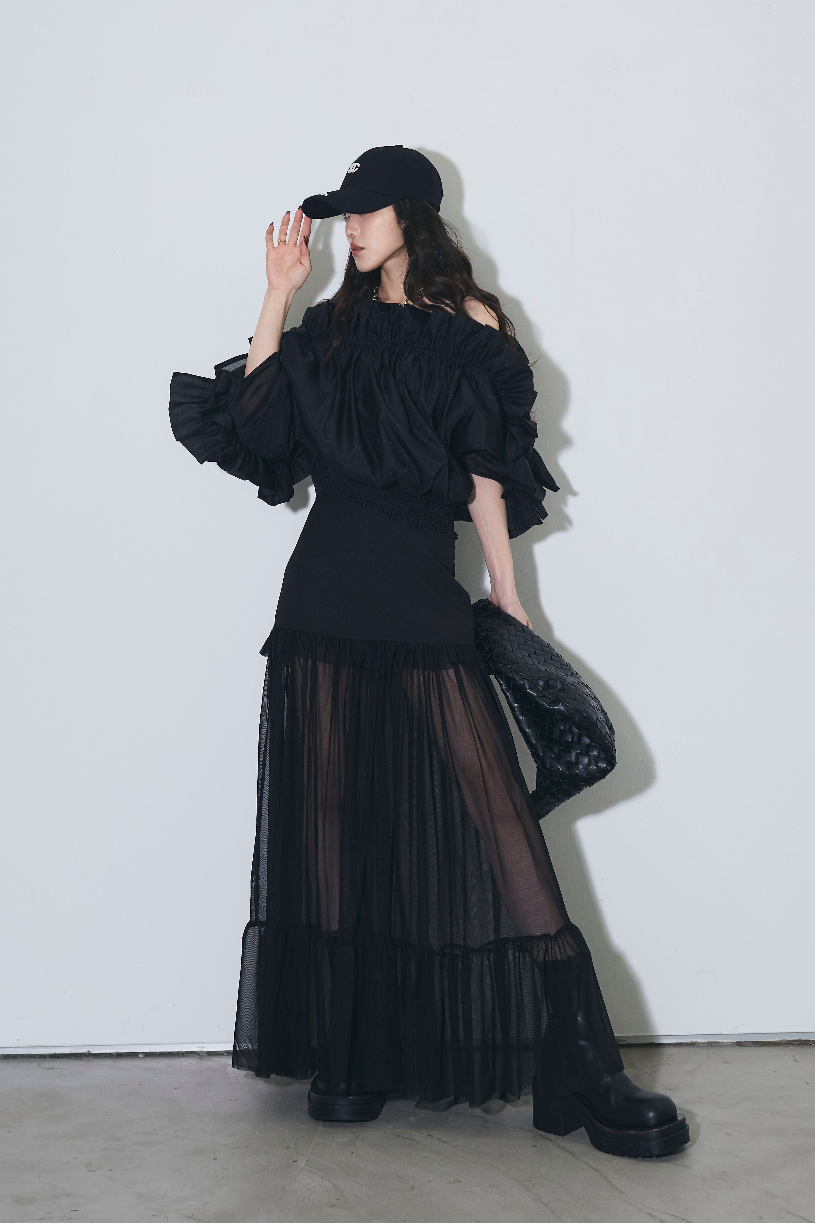 ご注文前に必ずページ下部「お届け期間」をご確認くださいませ。肩まわりを美しく見せるオフショルデザインに、たっぷり寄せたギャザーとボリュームスリーブがドラマティックな表情を添えるブラウスで、シンプルなボトムに合わせるだけで一気に華やぐ主役トップス。