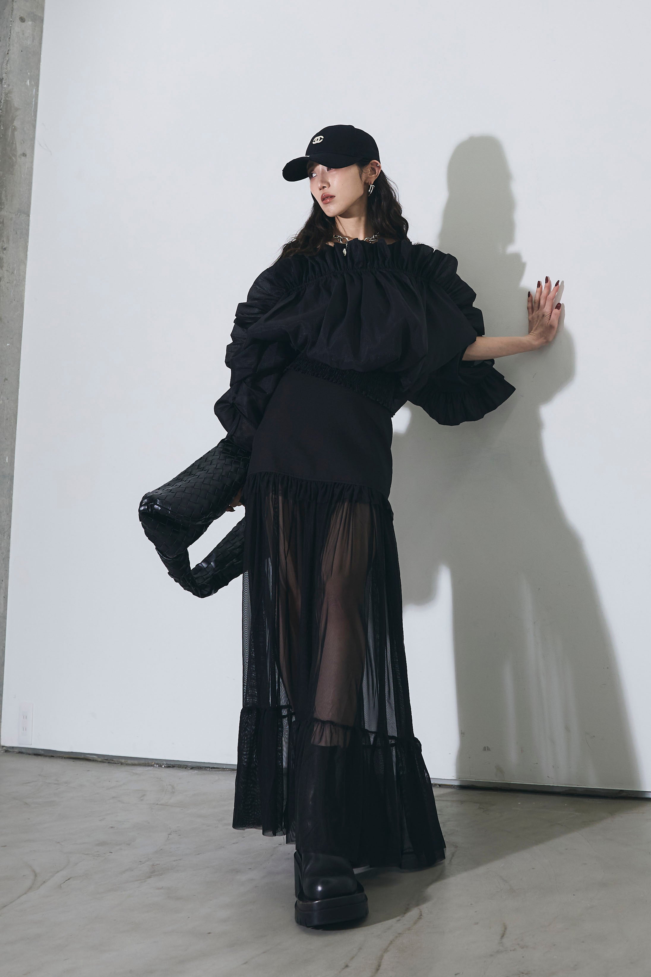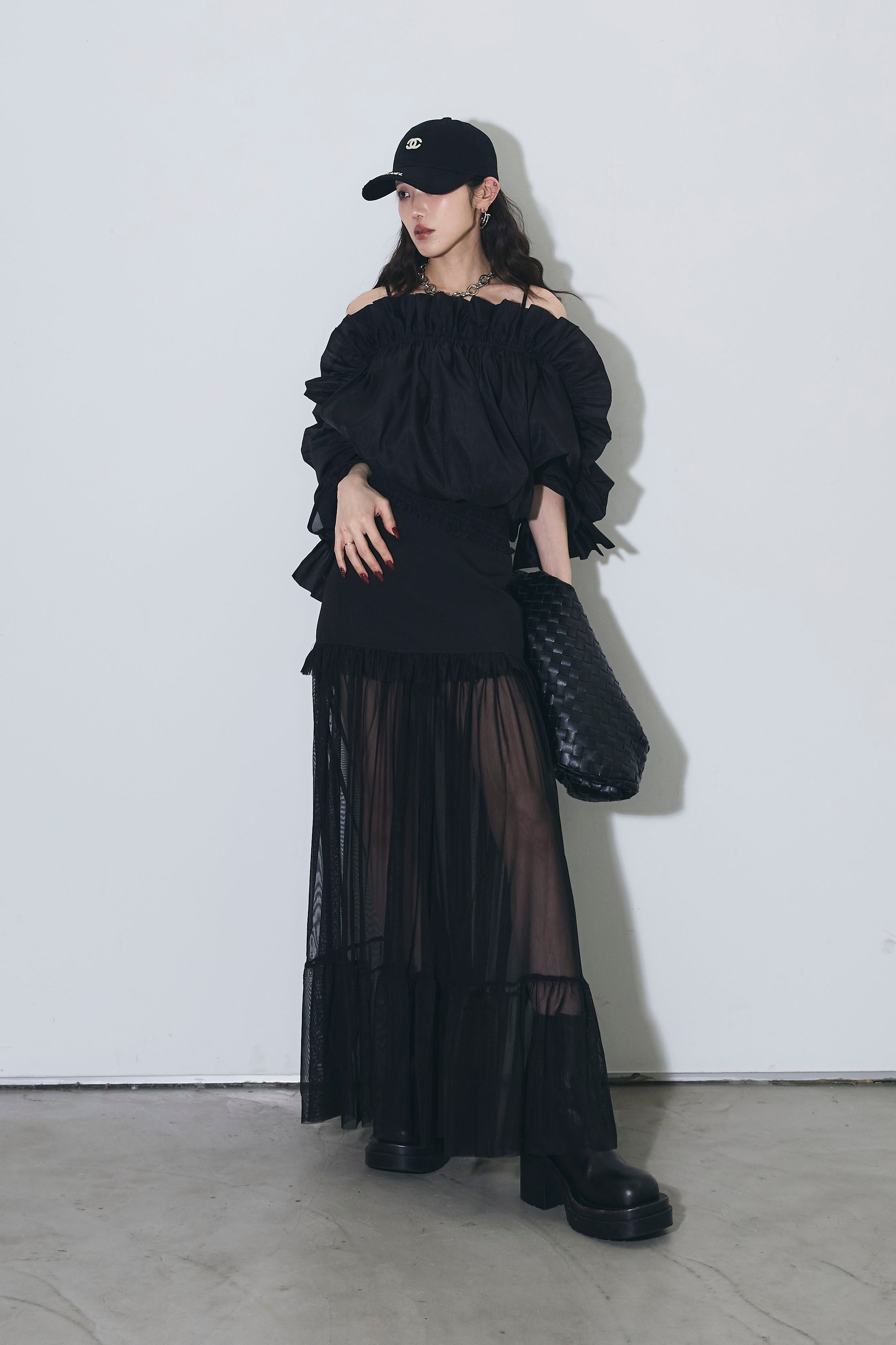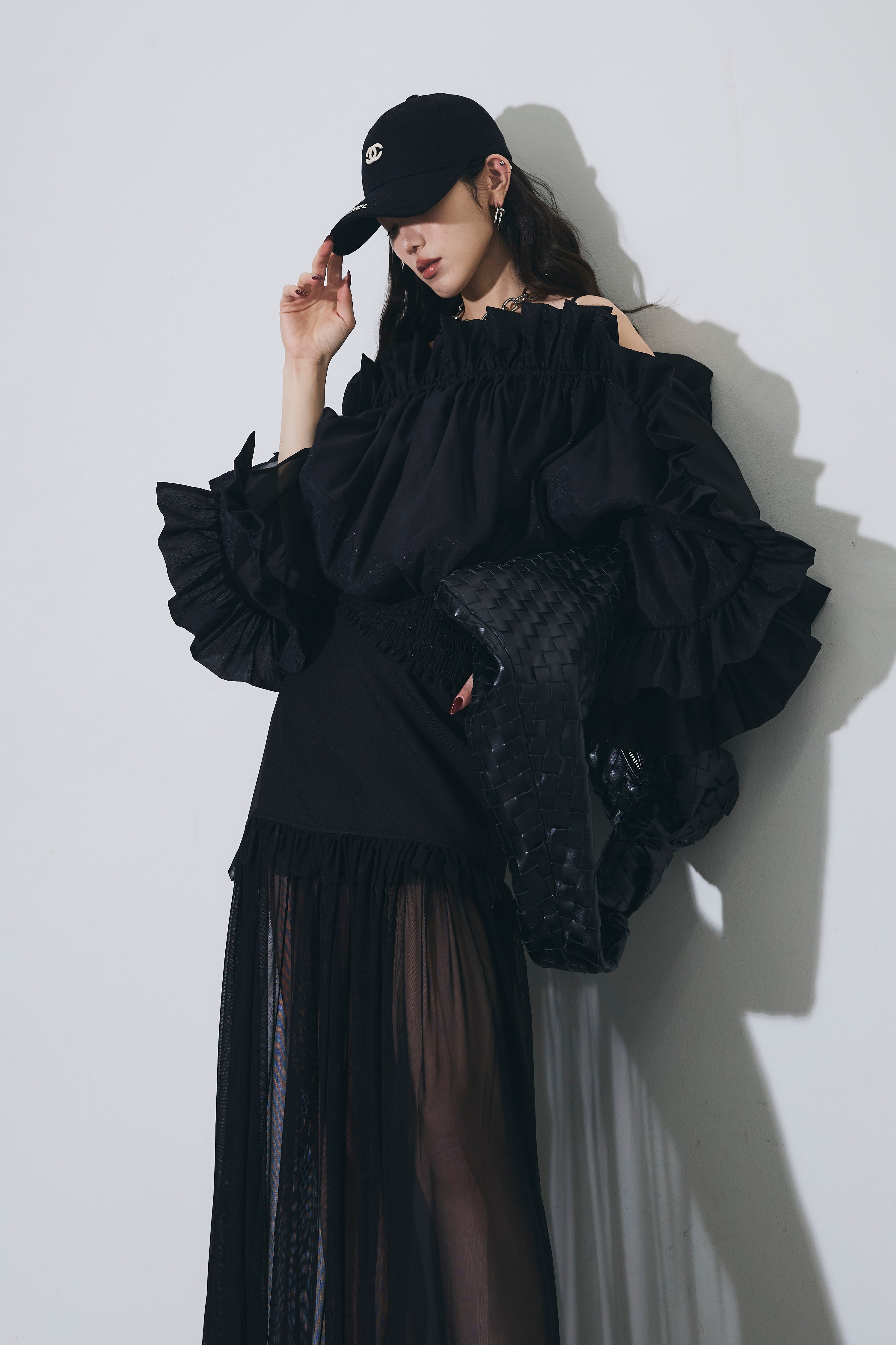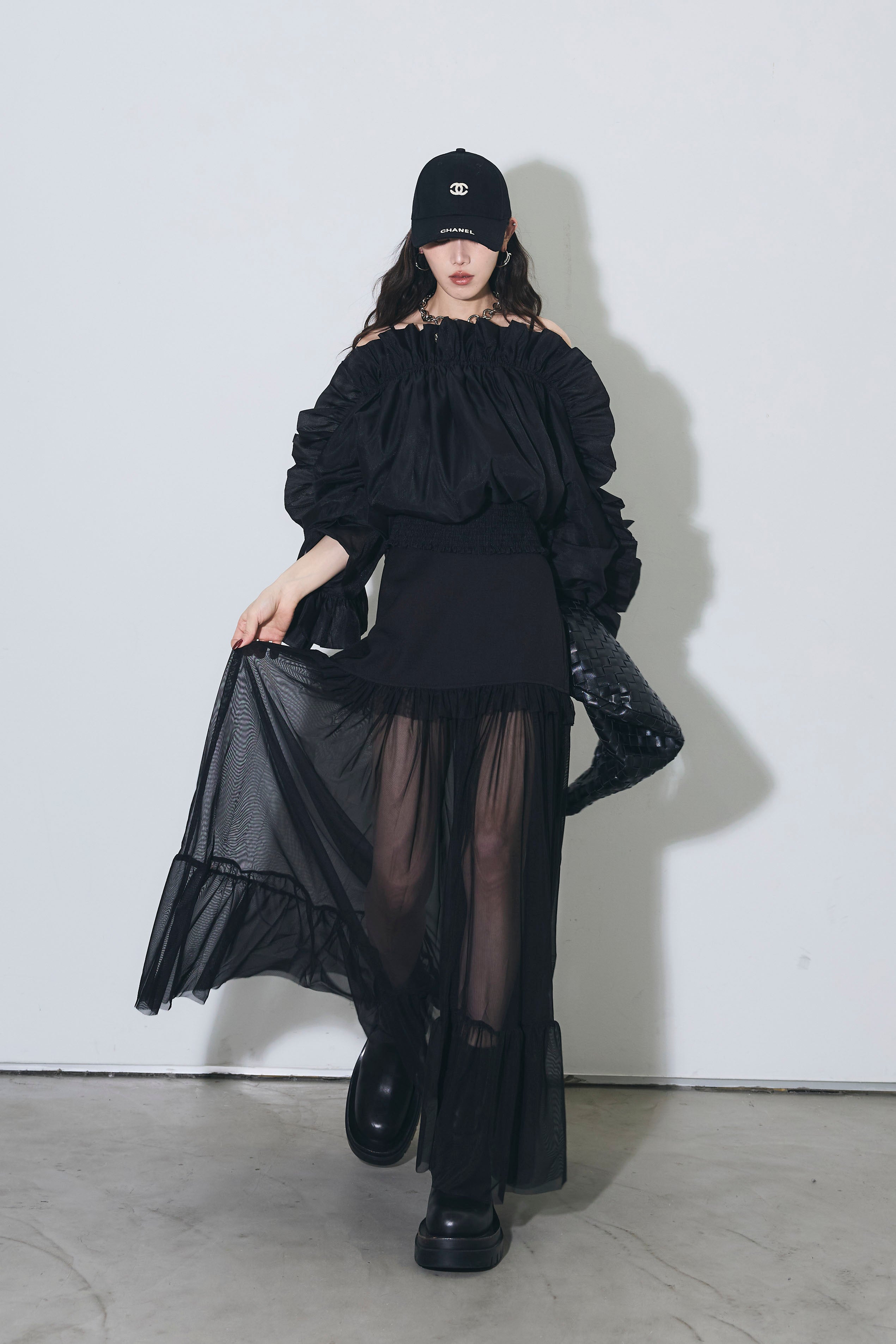 ご注文前に必ずページ下部「お届け期間」をご確認くださいませ。肩まわりを美しく見せるオフショルデザインに、たっぷり寄せたギャザーとボリュームスリーブがドラマティックな表情を添えるブラウスで、シンプルなボトムに合わせるだけで一気に華やぐ主役トップス。