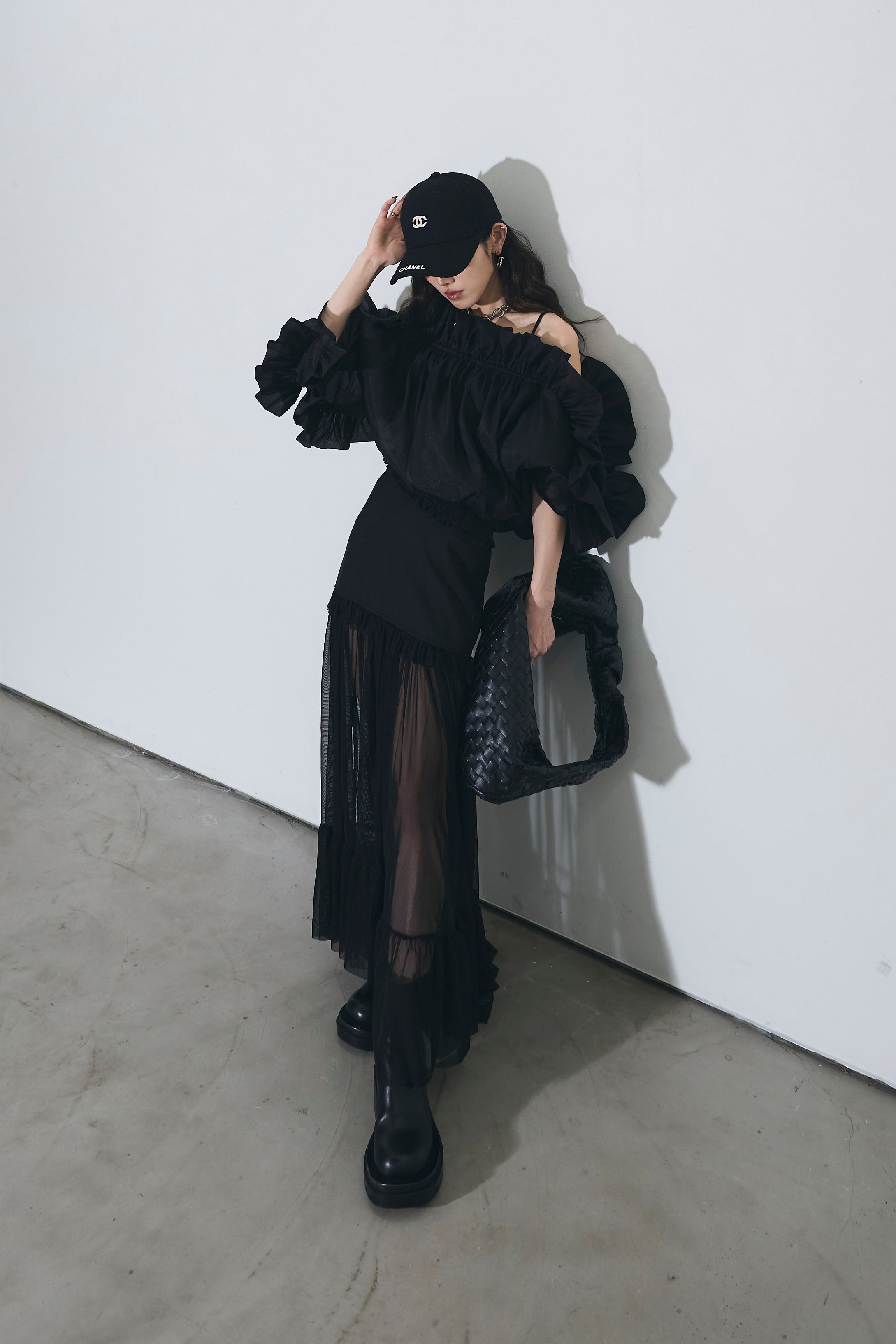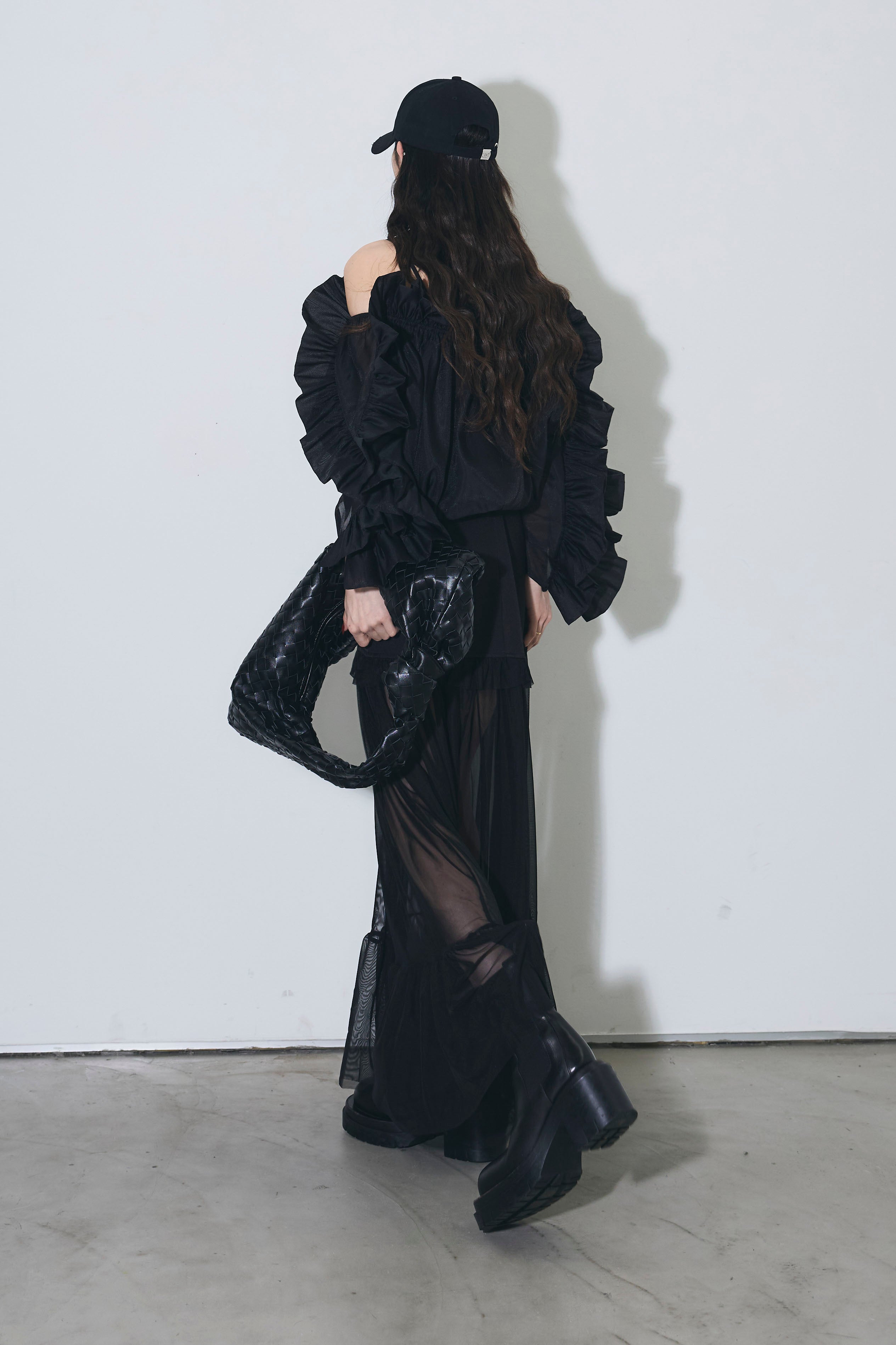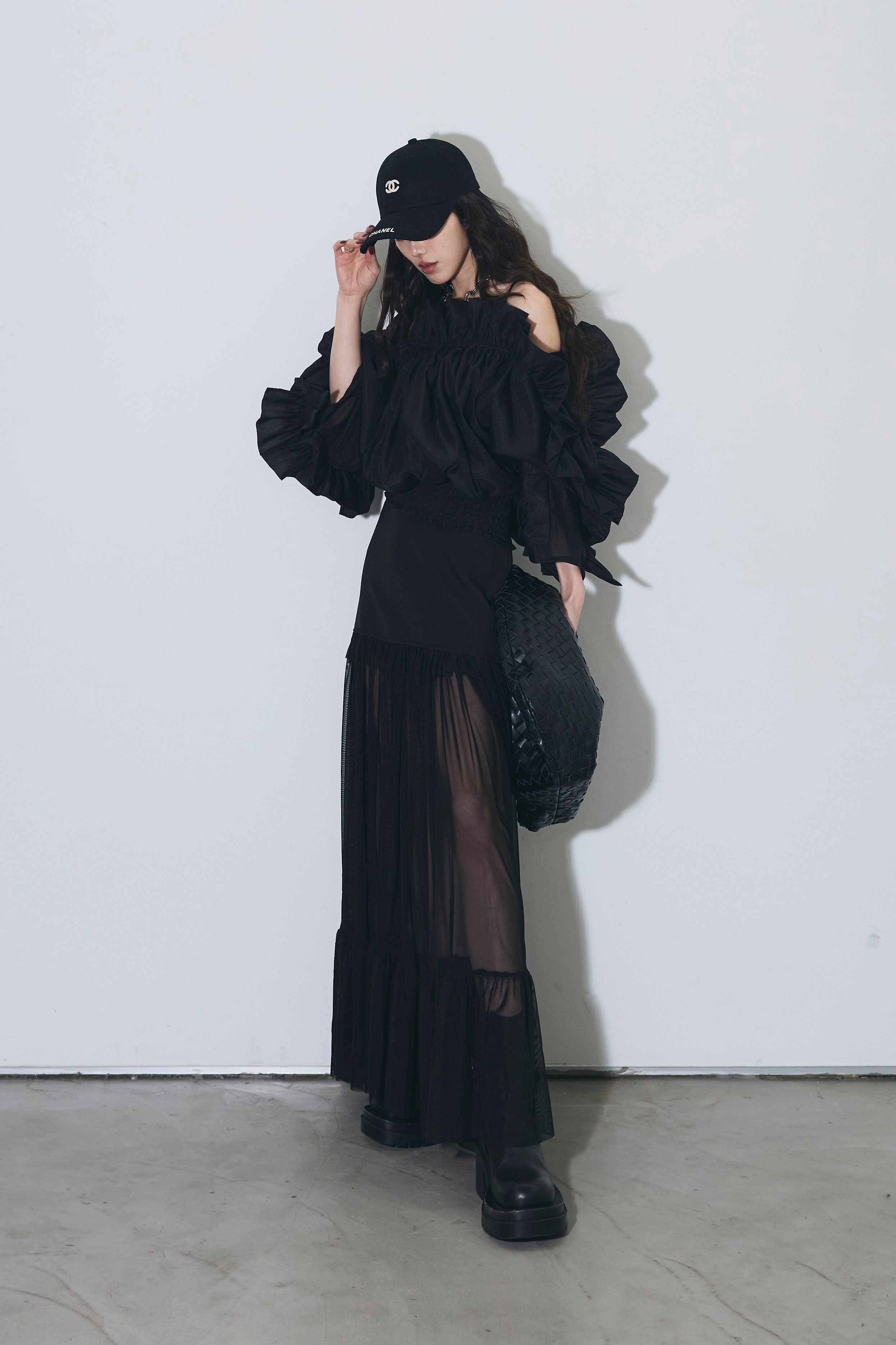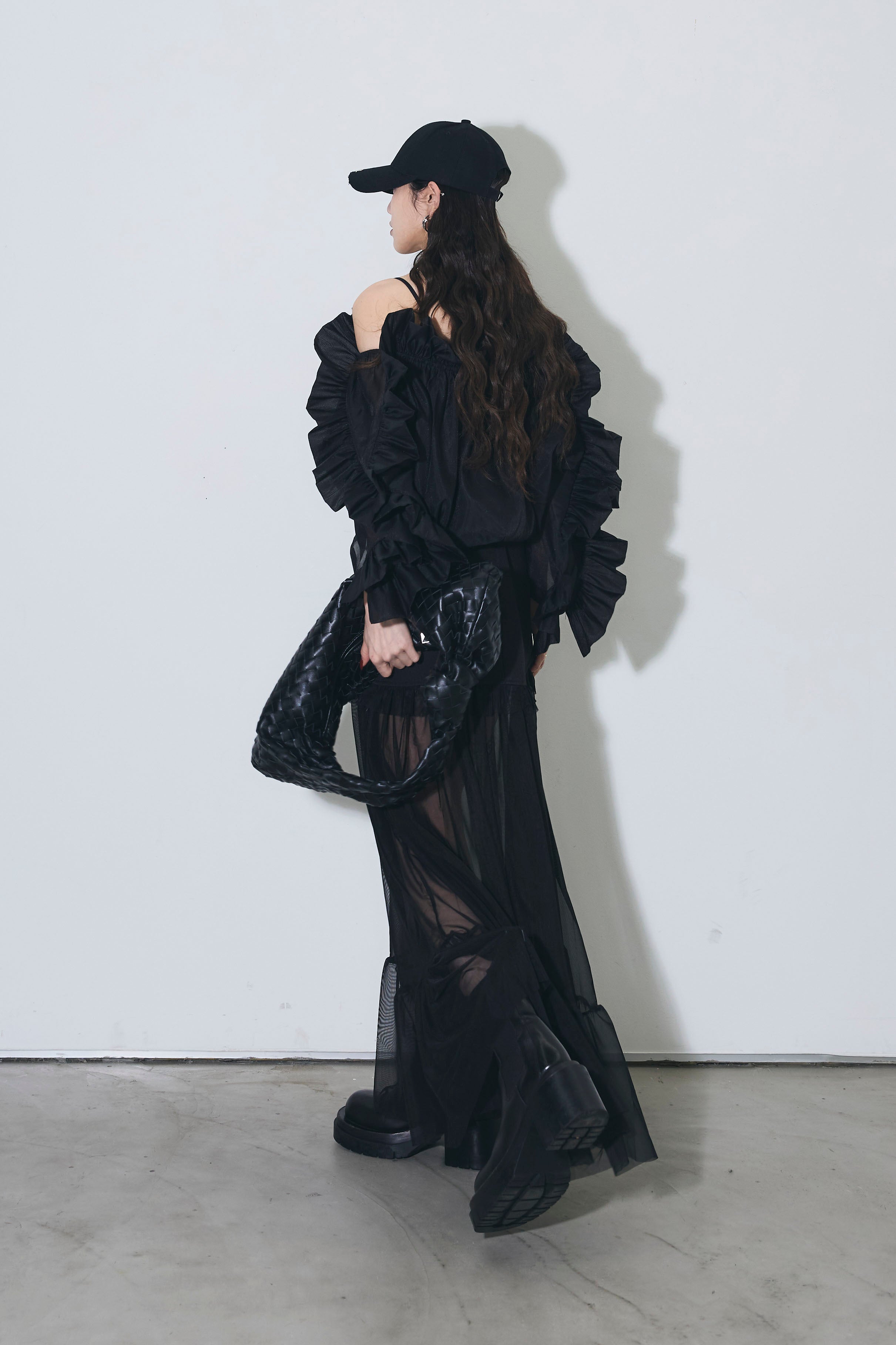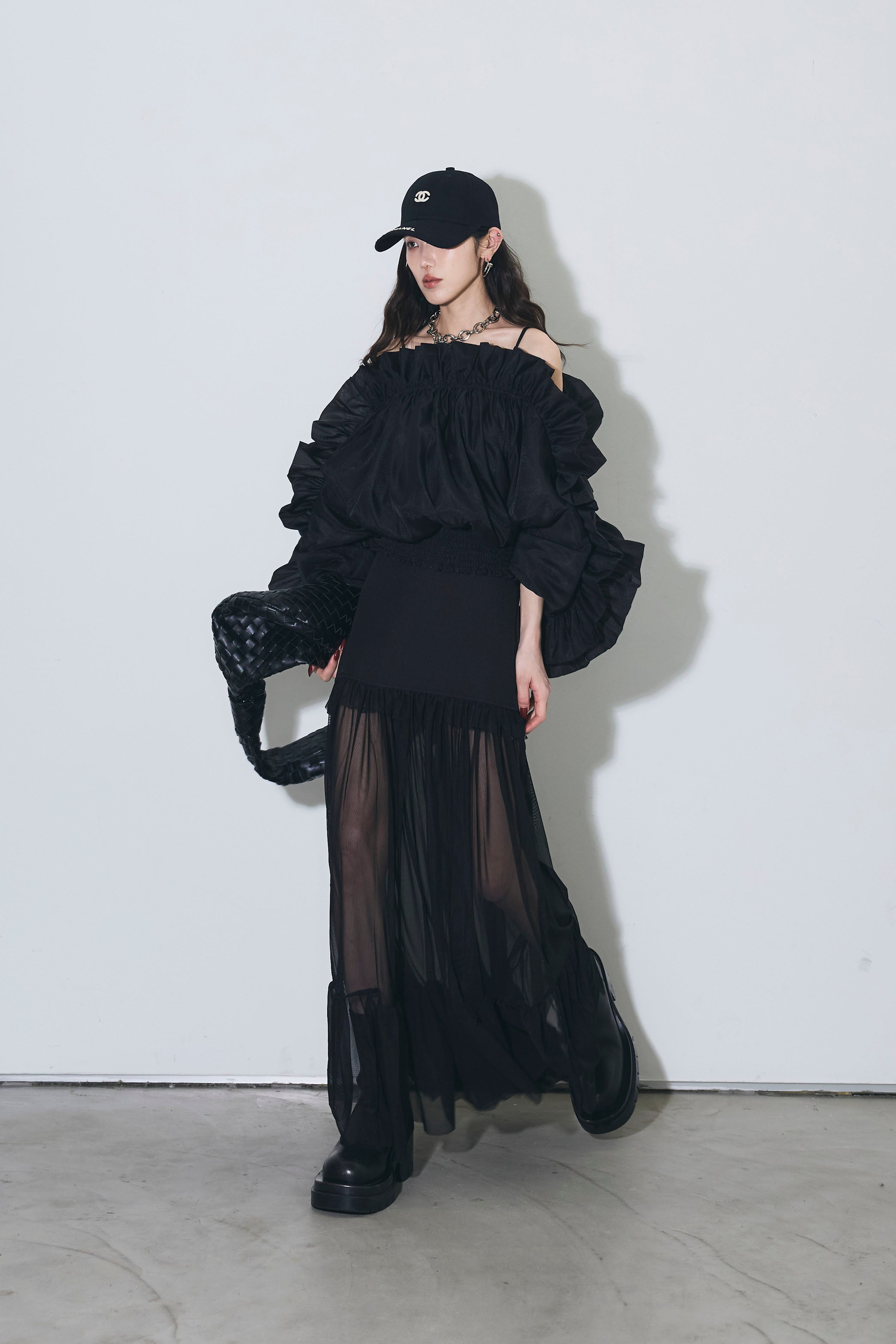 ご注文前に必ずページ下部「お届け期間」をご確認くださいませ。肩まわりを美しく見せるオフショルデザインに、たっぷり寄せたギャザーとボリュームスリーブがドラマティックな表情を添えるブラウスで、シンプルなボトムに合わせるだけで一気に華やぐ主役トップス。