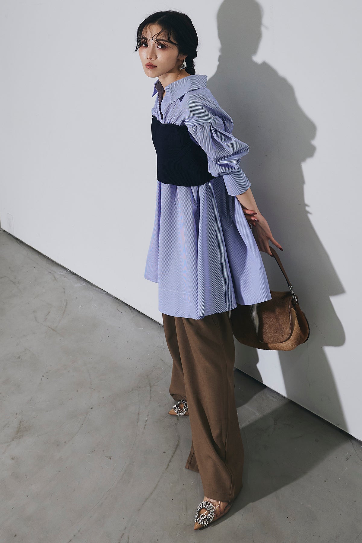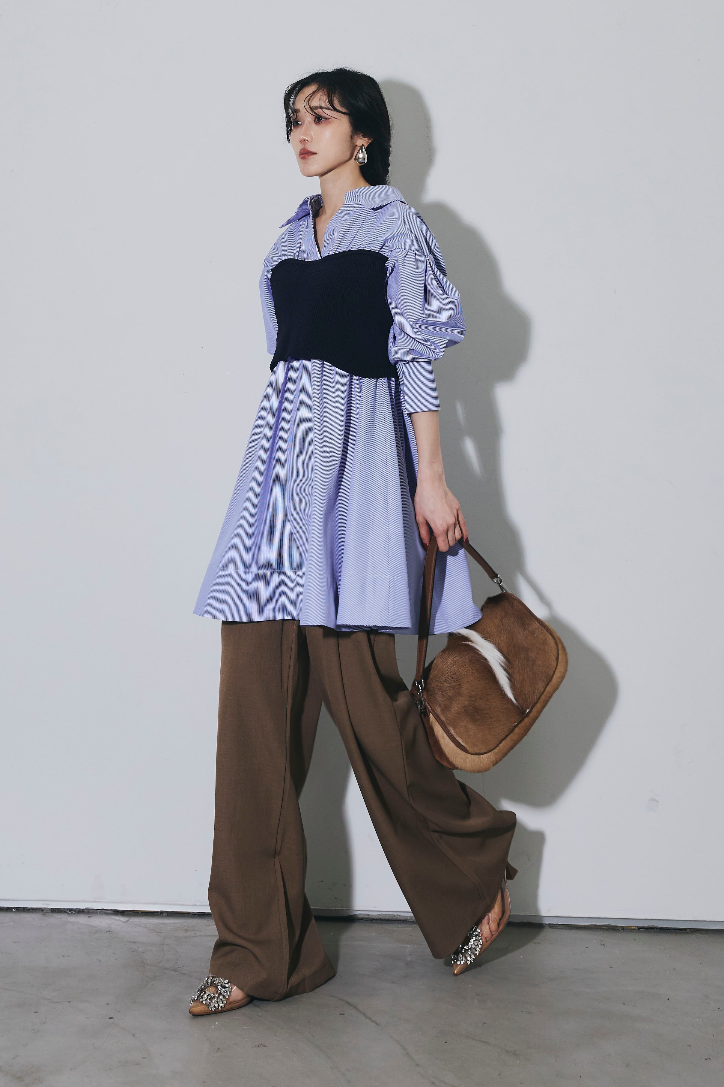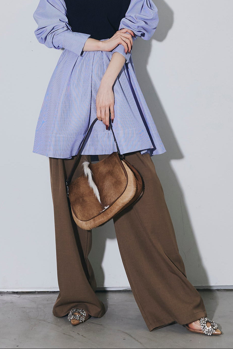 ご注文前に必ずページ下部「お届け期間」をご確認くださいませ。美しいシルエットが魅力のスラックス。センタープレスが縦のラインを強調し、すっきりとした印象に仕上げます。ウエストデザインがさりげないアクセントになり、シンプルながらも上品な雰囲気に。オンオフ問わず着回しやすい万能な一本です。